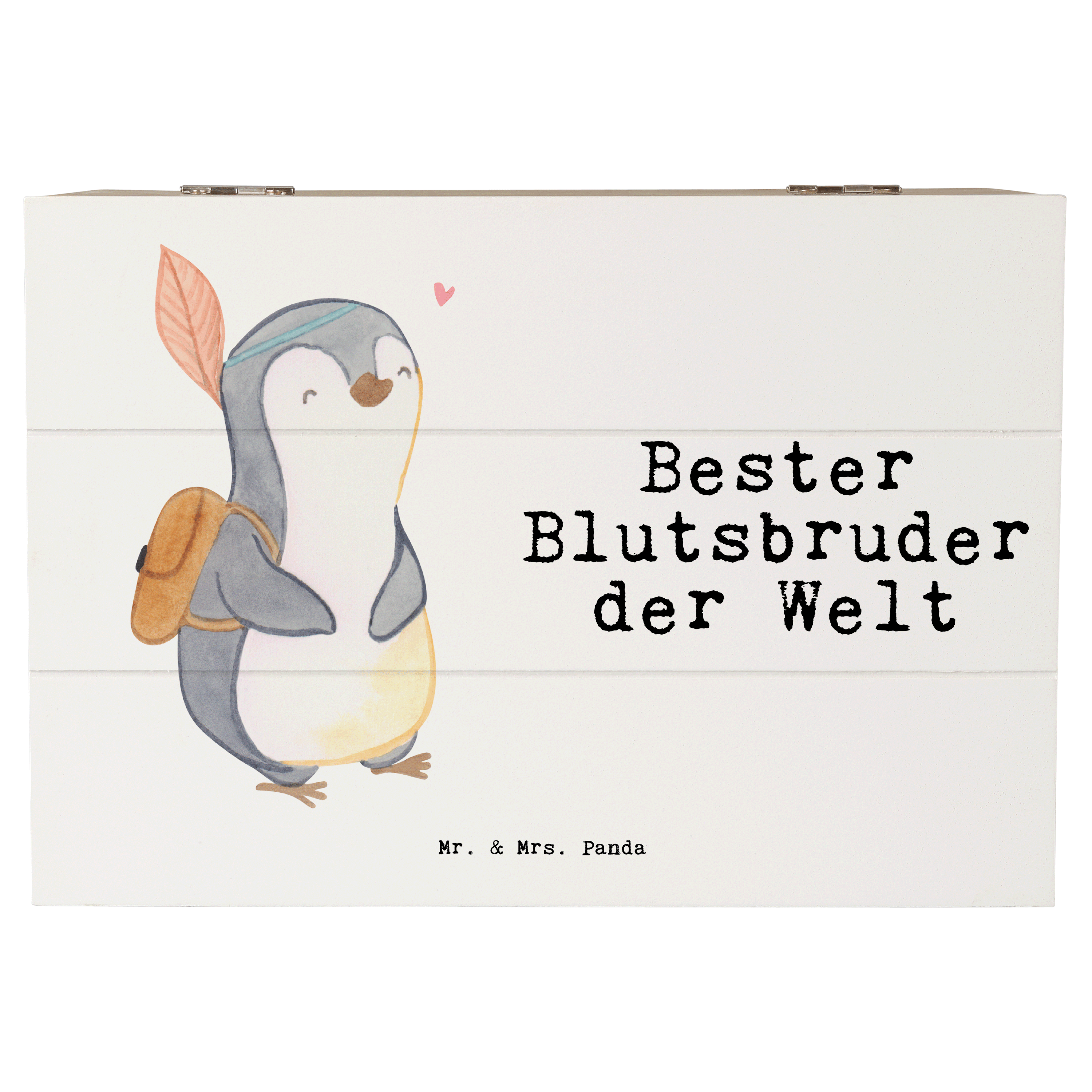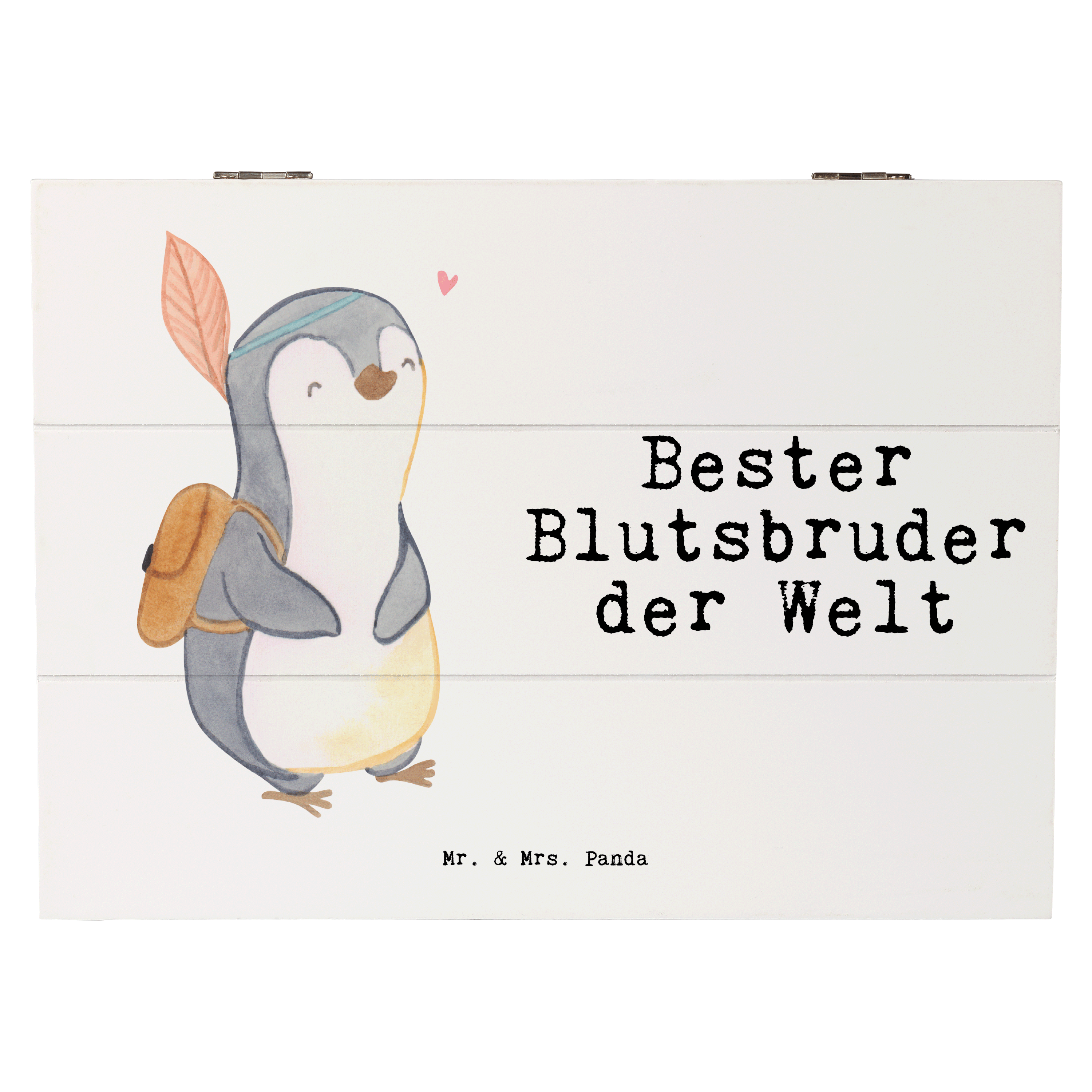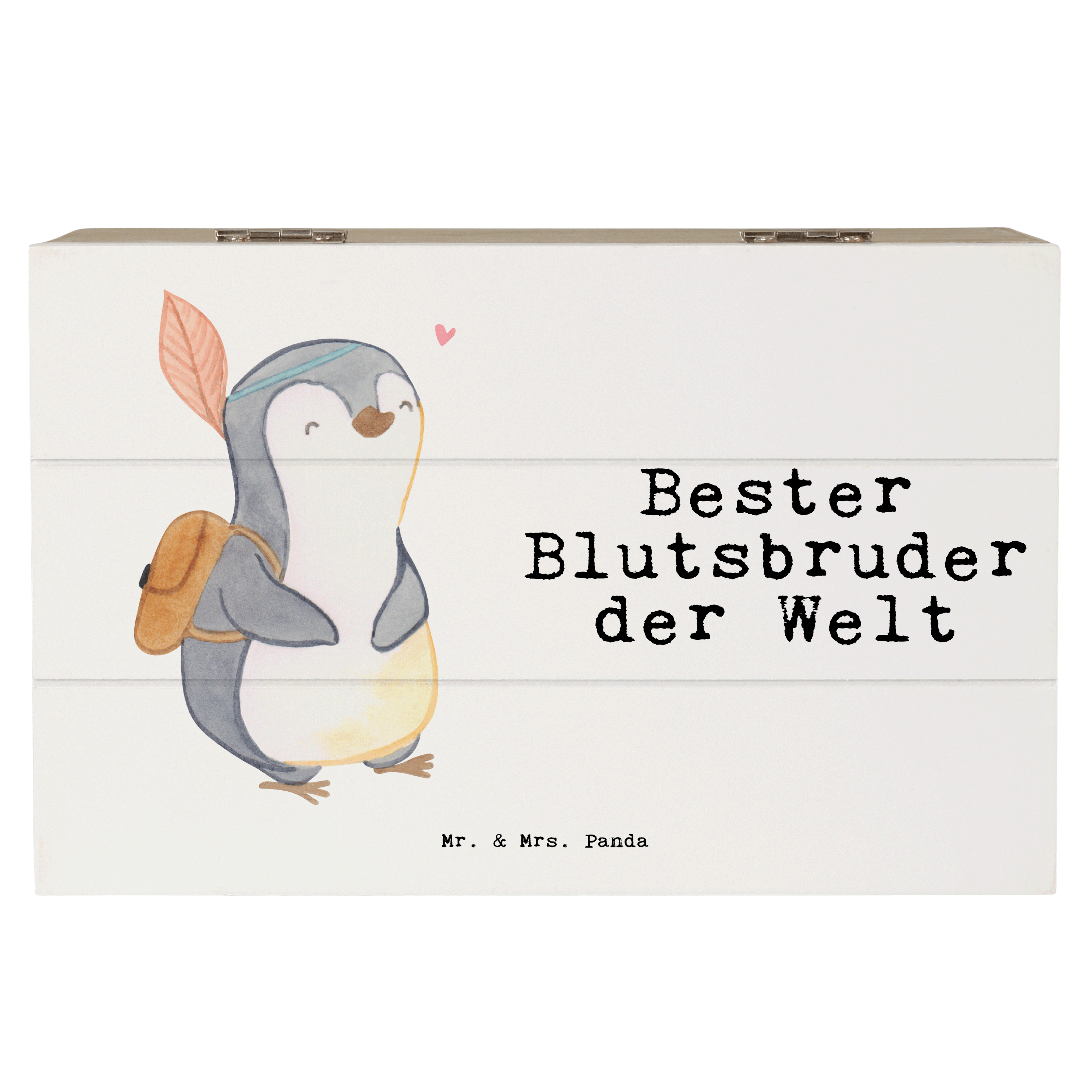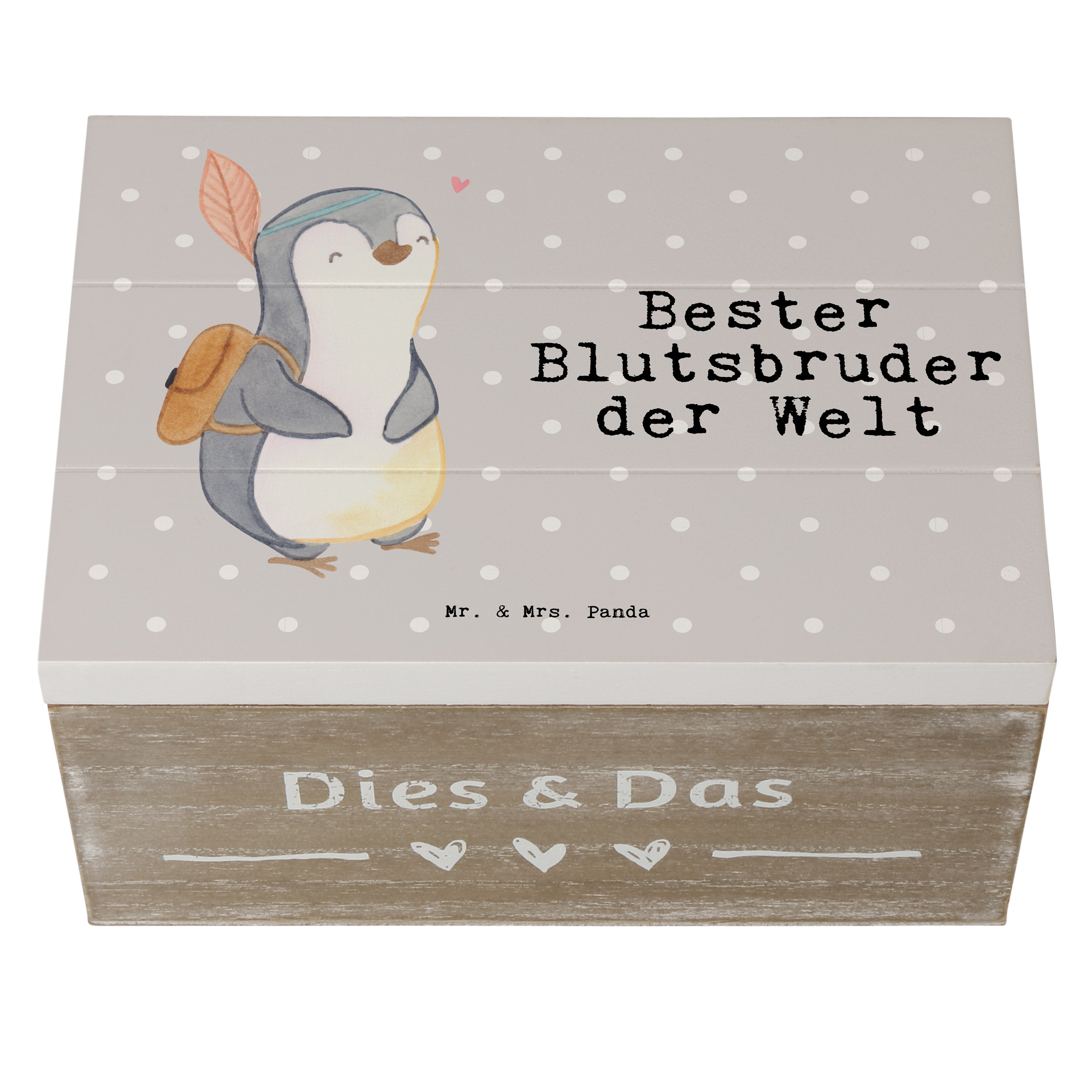 Holzkiste Pinguin Bester Blutsbruder der Welt - 25 x 18 cm - Grau Pastell