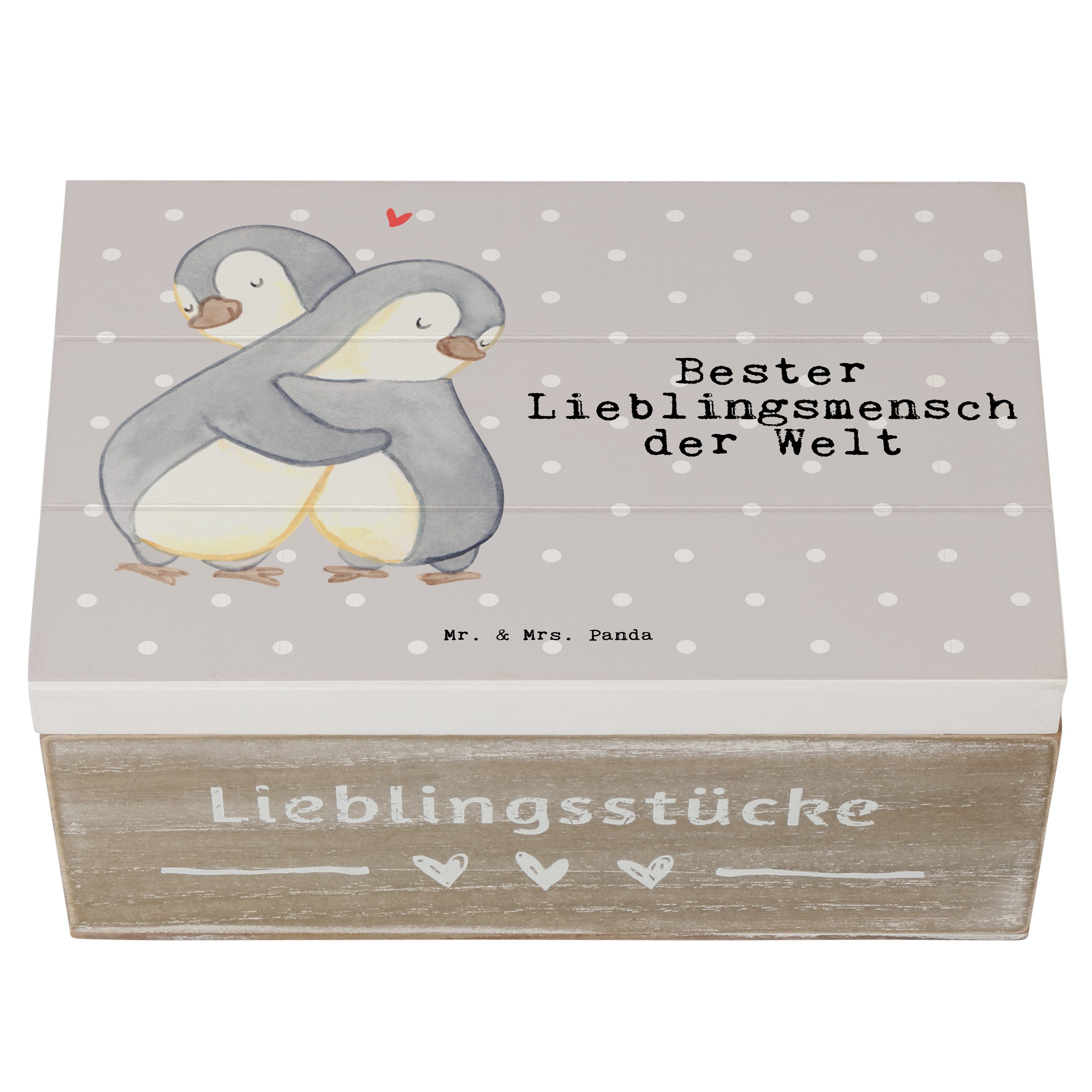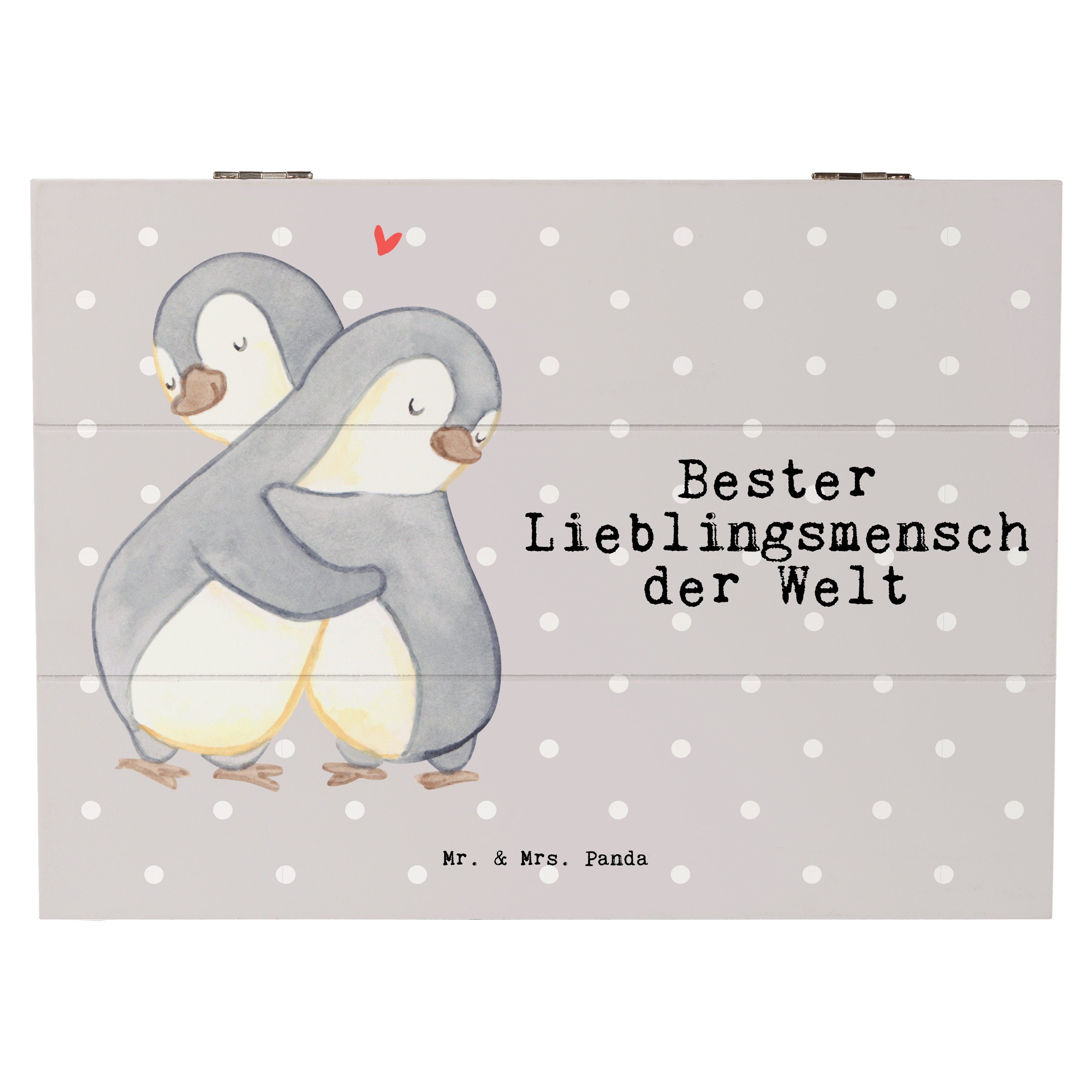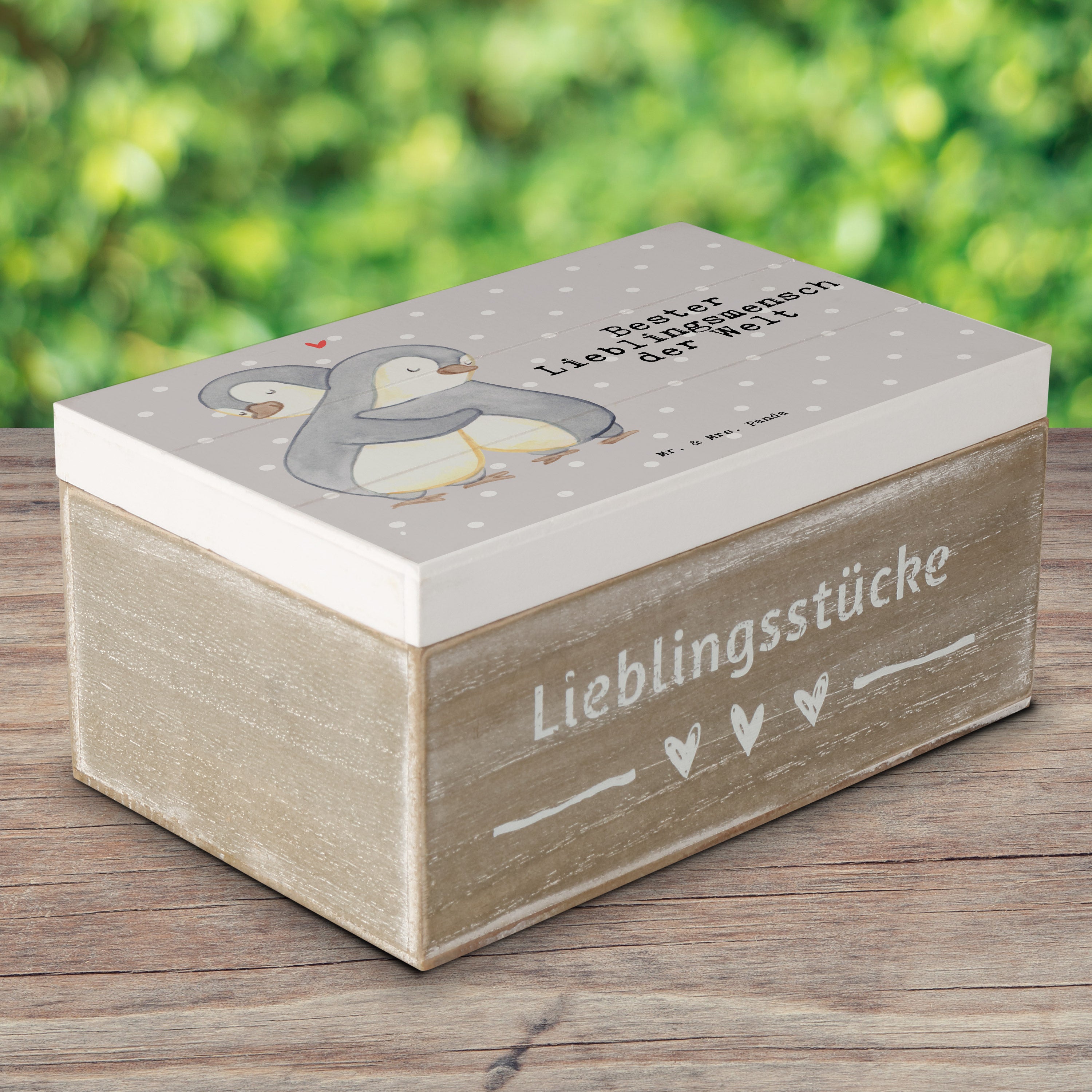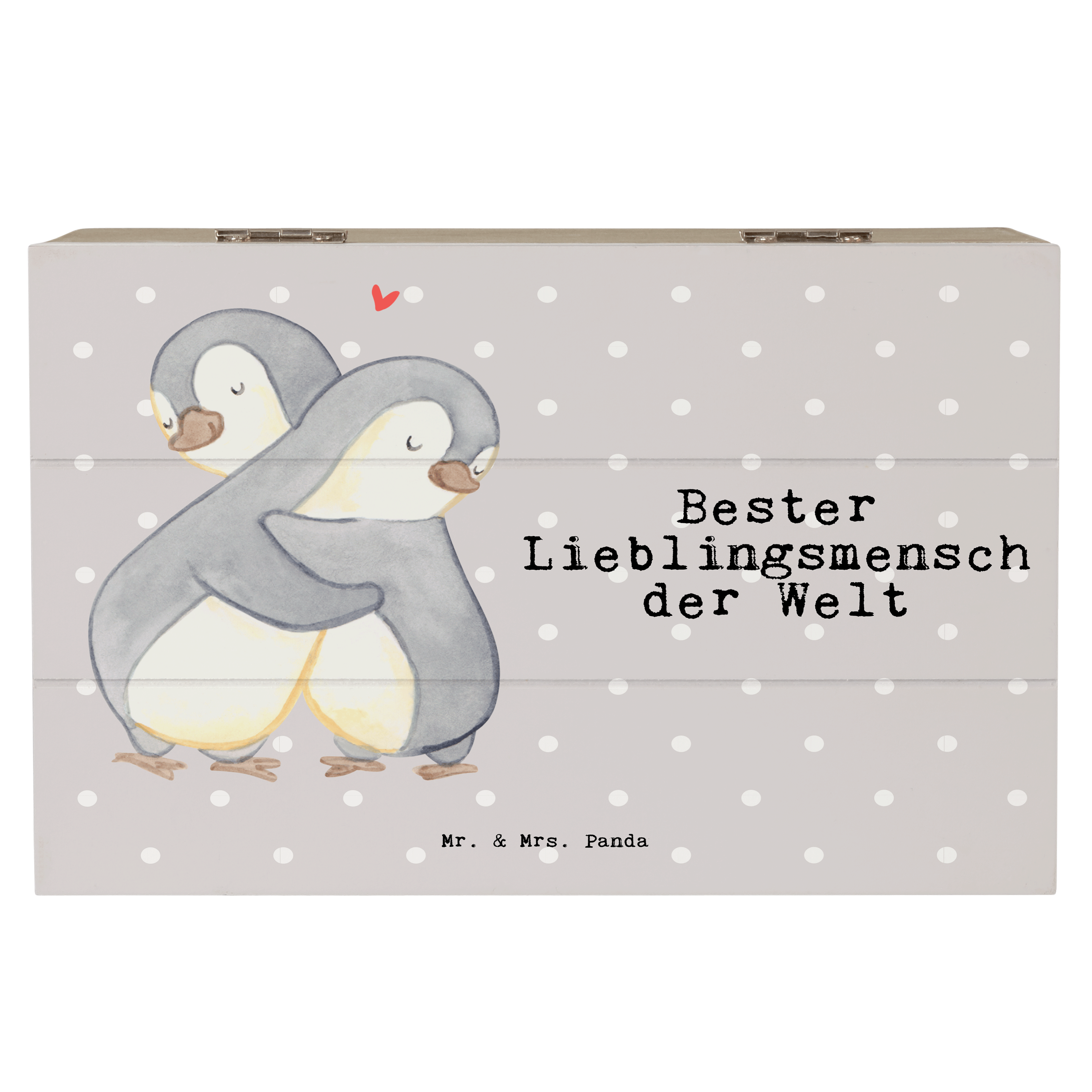 Holzkiste Pinguin Bester Lieblingsmensch der Welt - Grau Pastell - 19 x 12 cm
