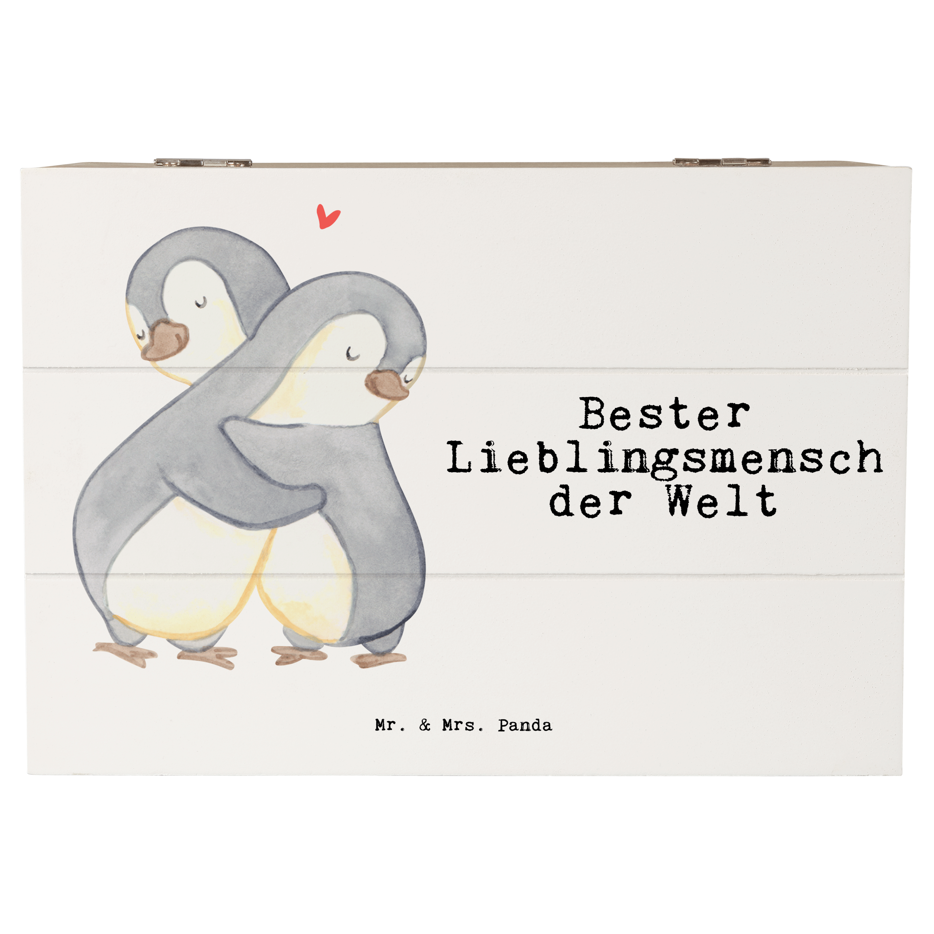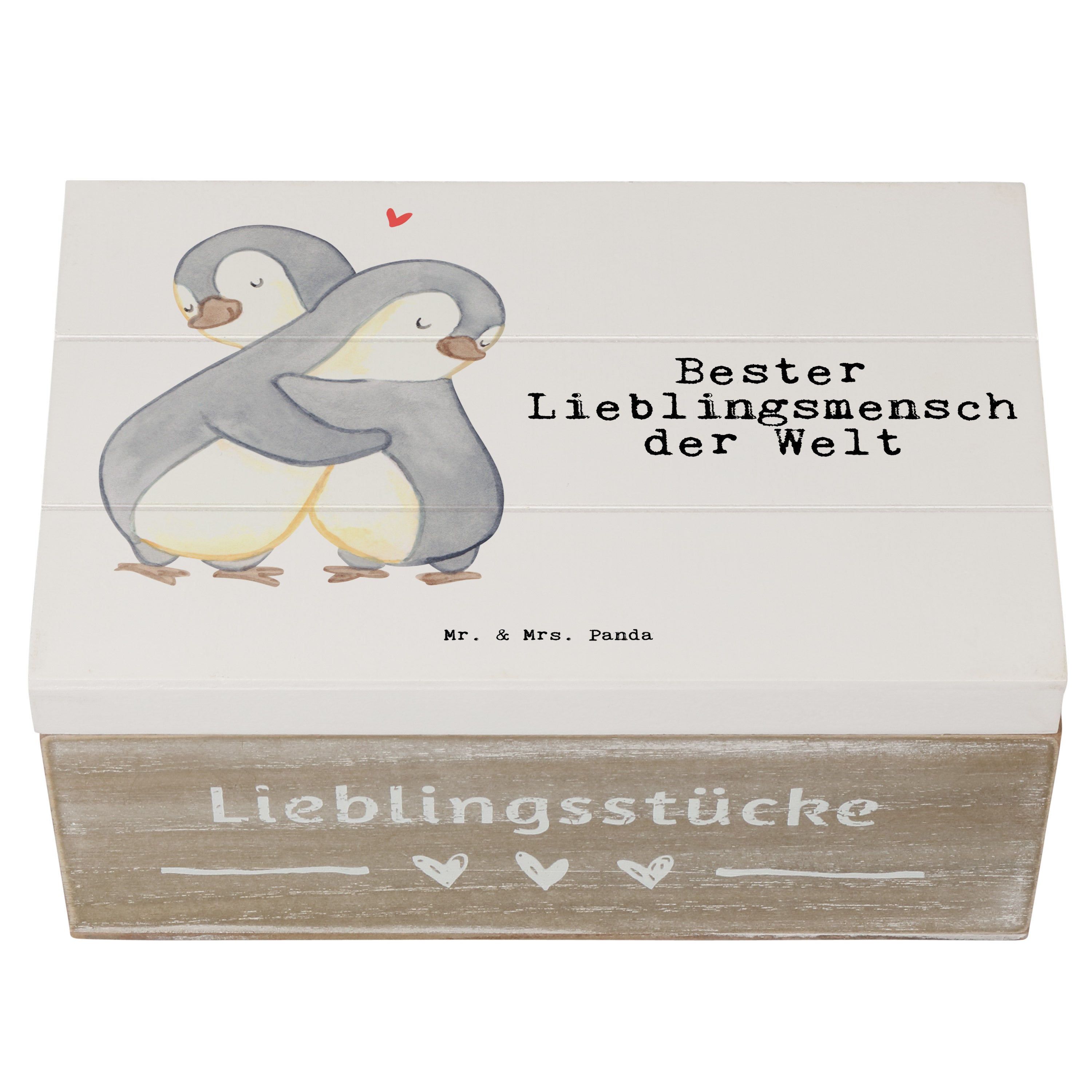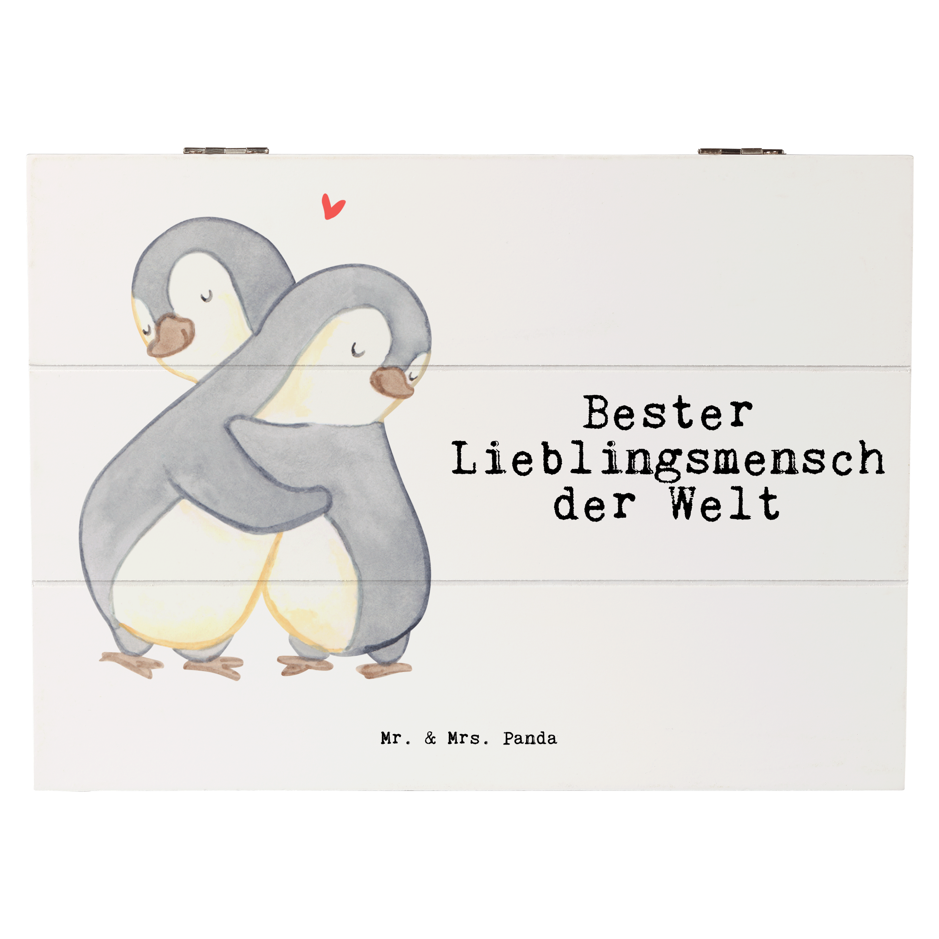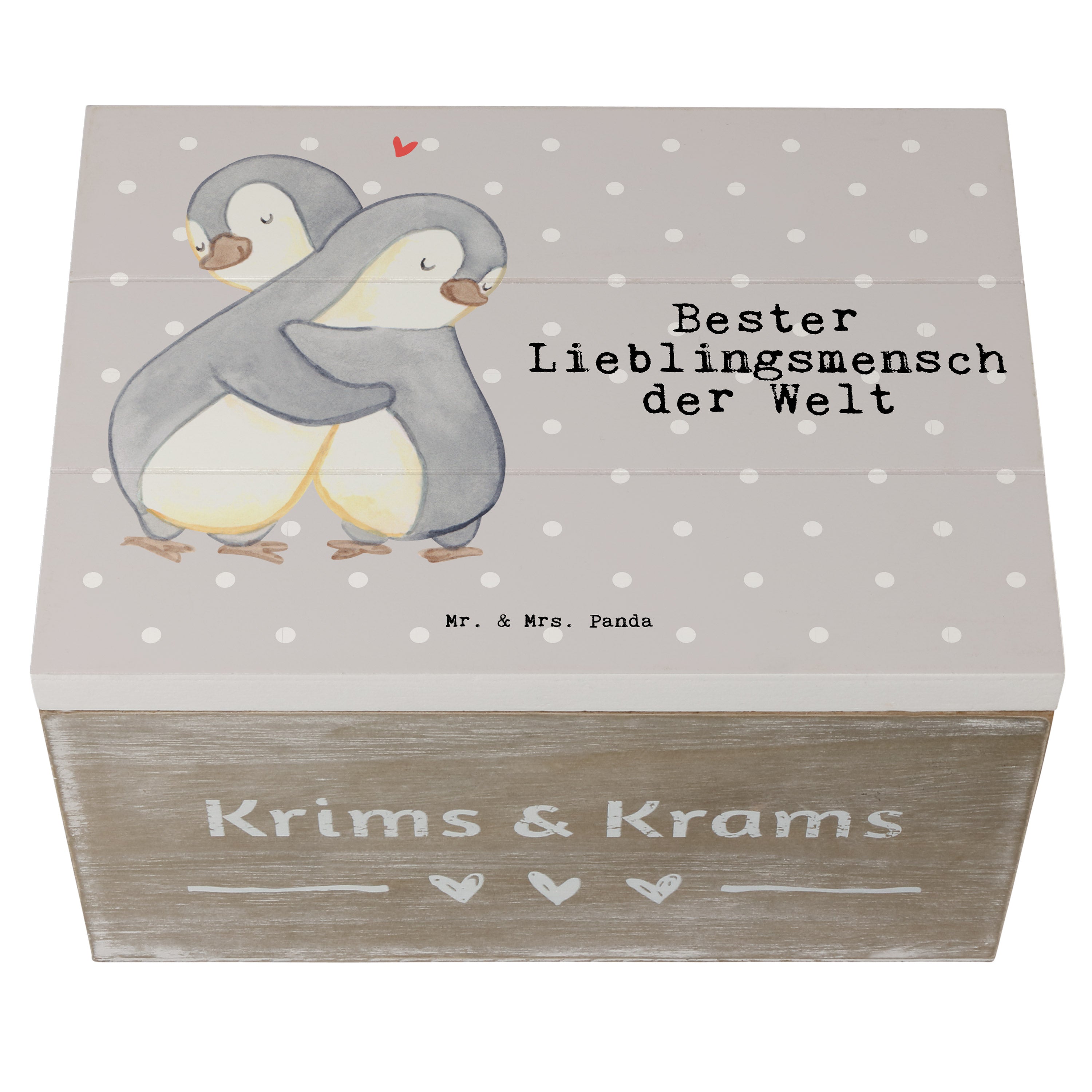 Holzkiste Pinguin Bester Lieblingsmensch der Welt - Grau Pastell - 19 x 12 cm