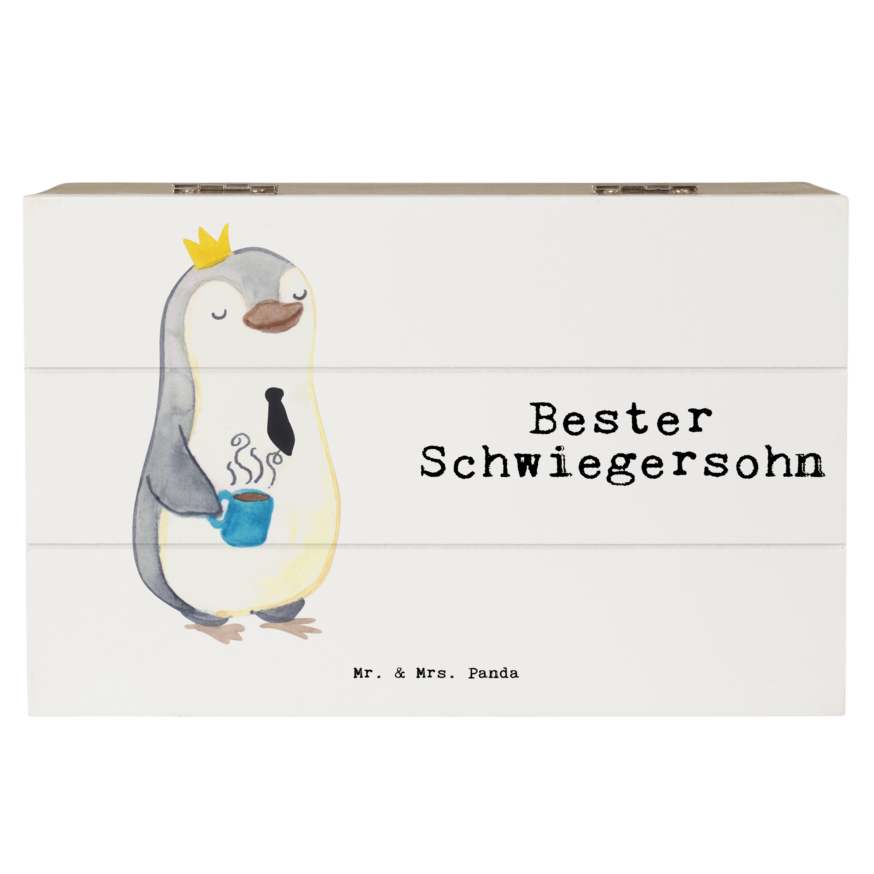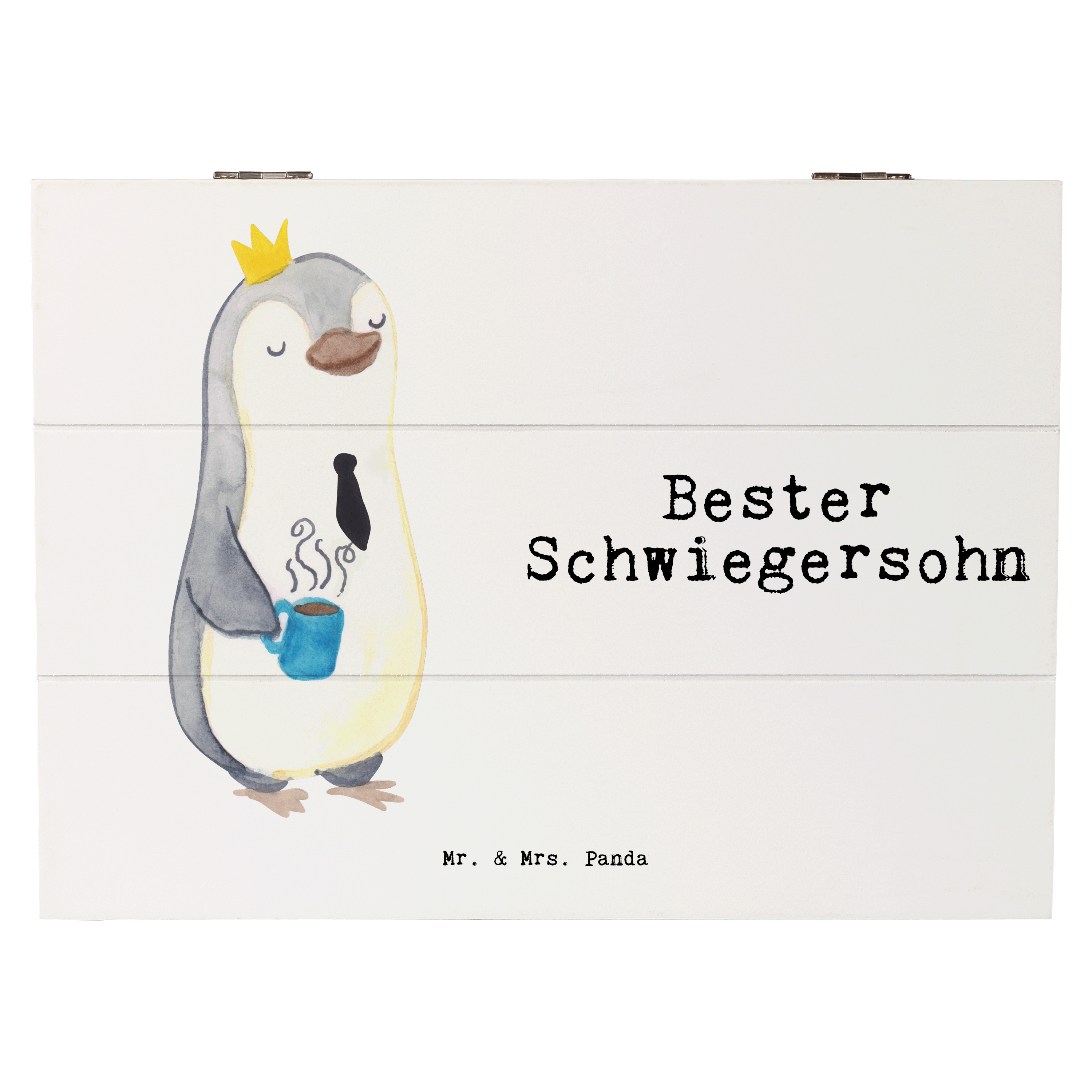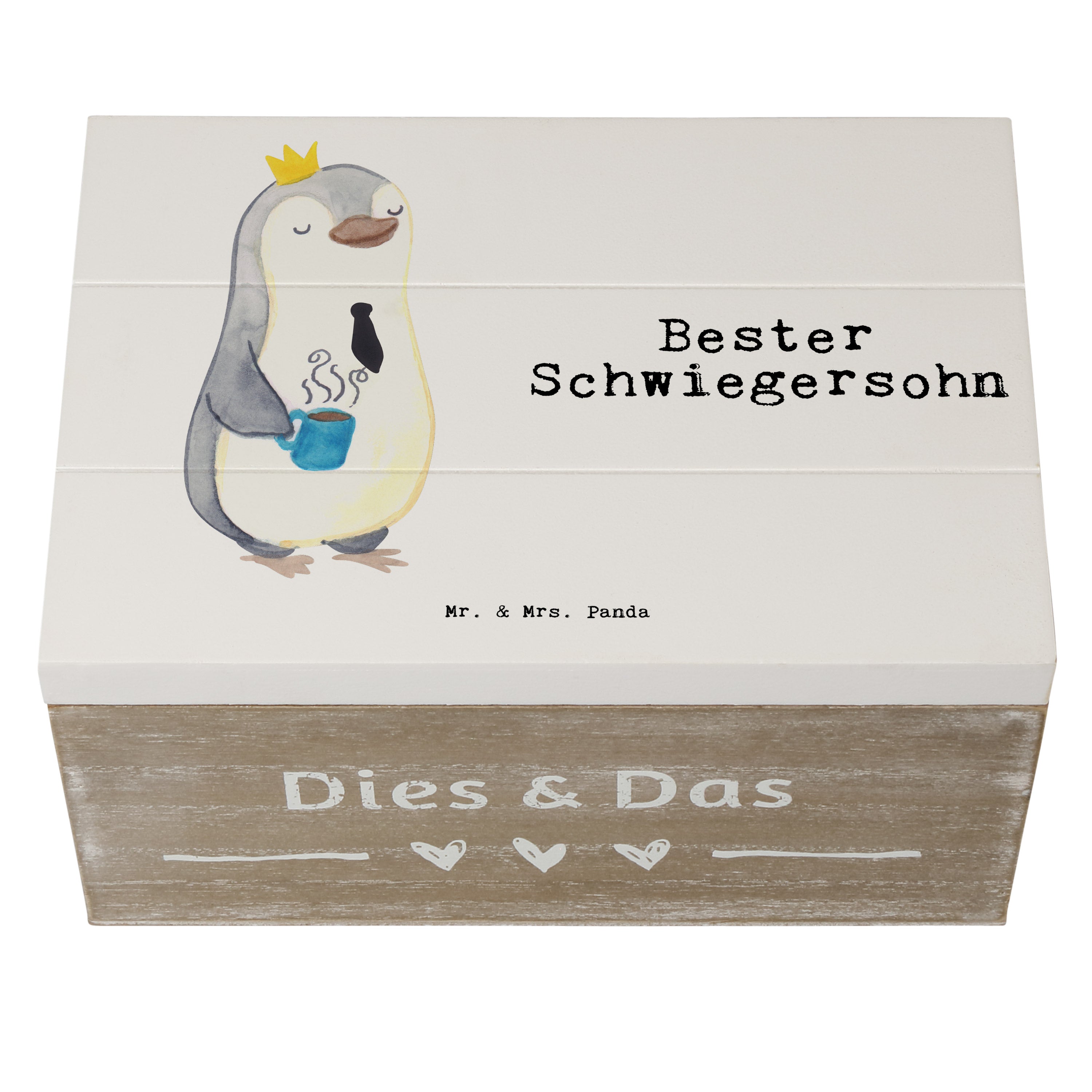 Holzkiste Pinguin Bester Schwiegersohn - Weiß - 19 x 12 cm
