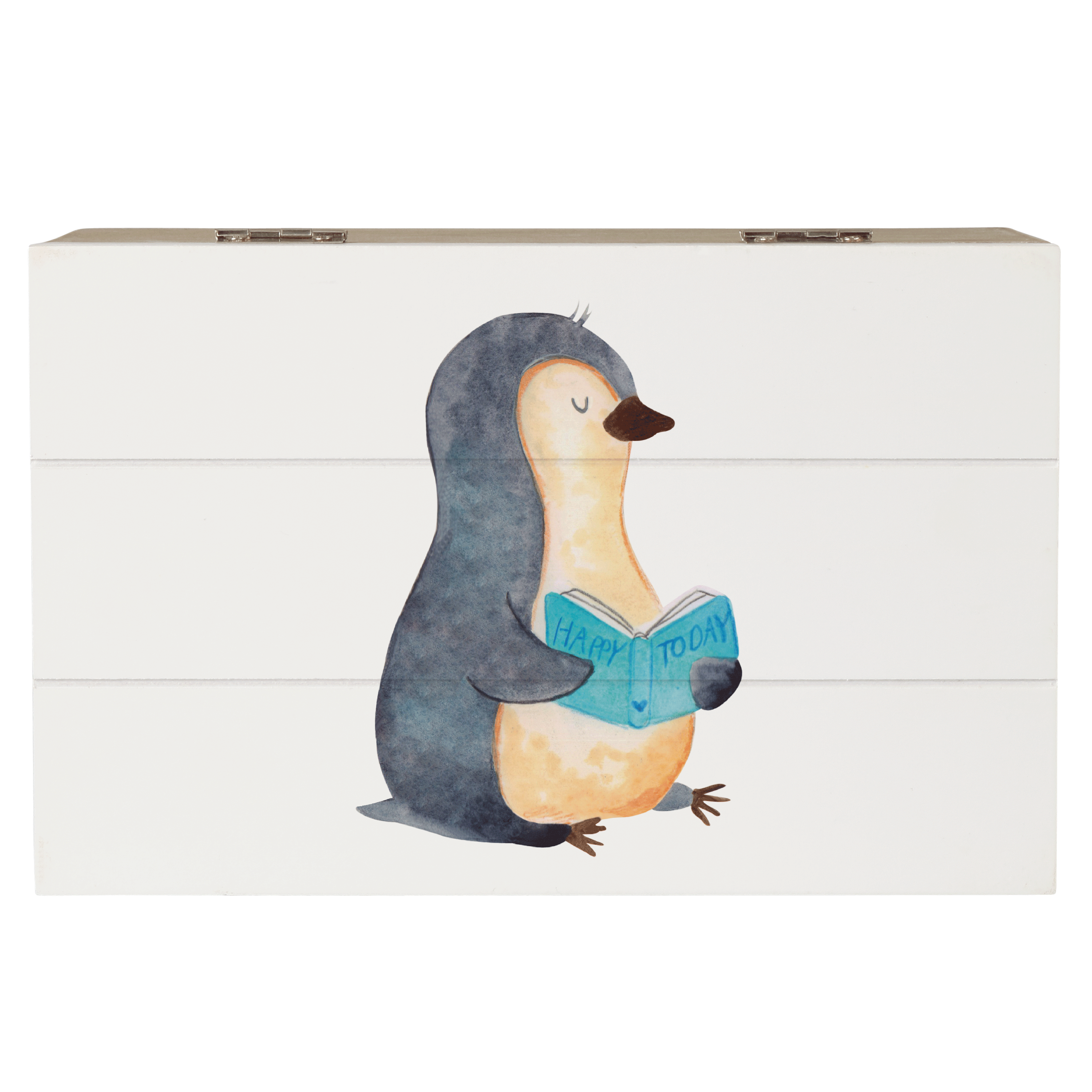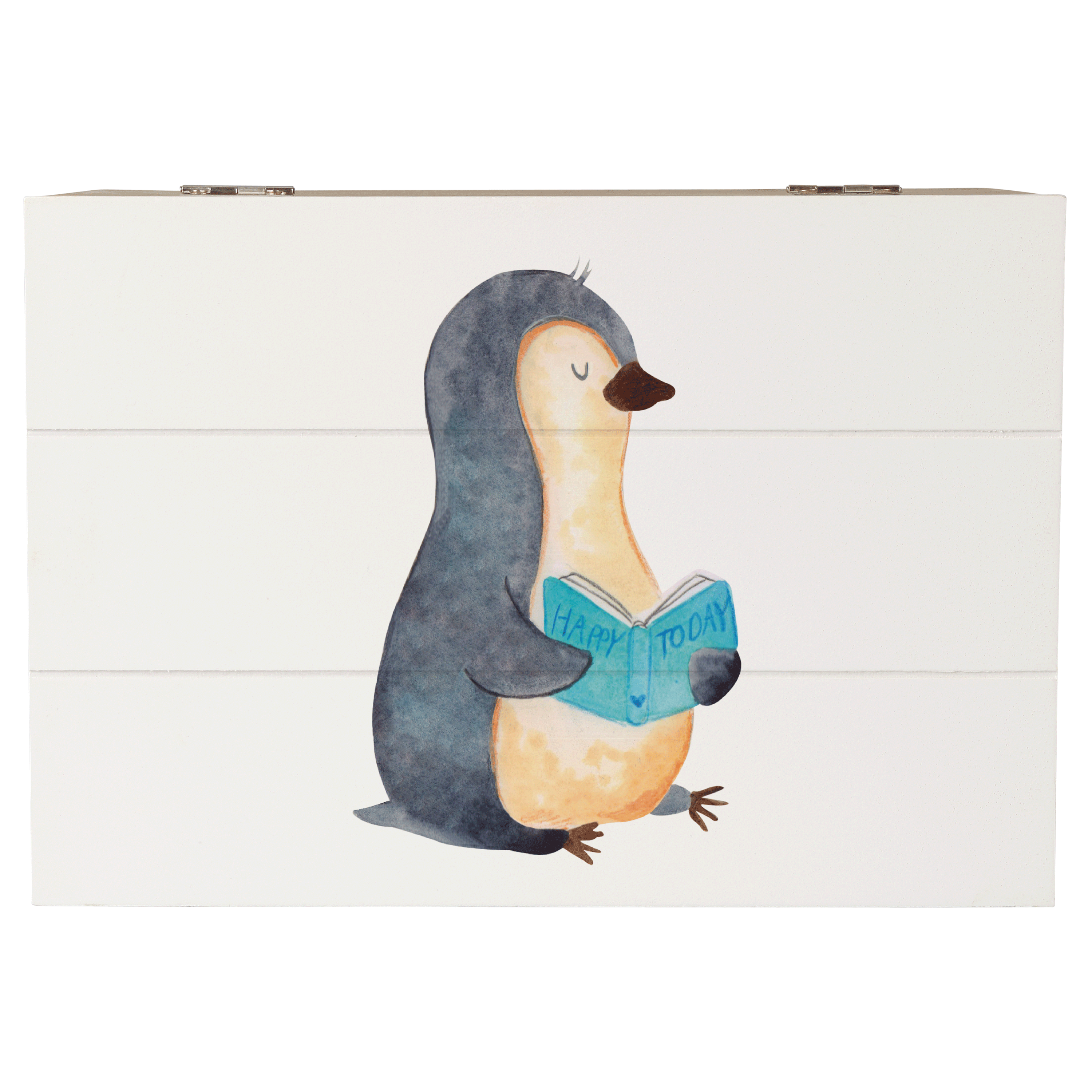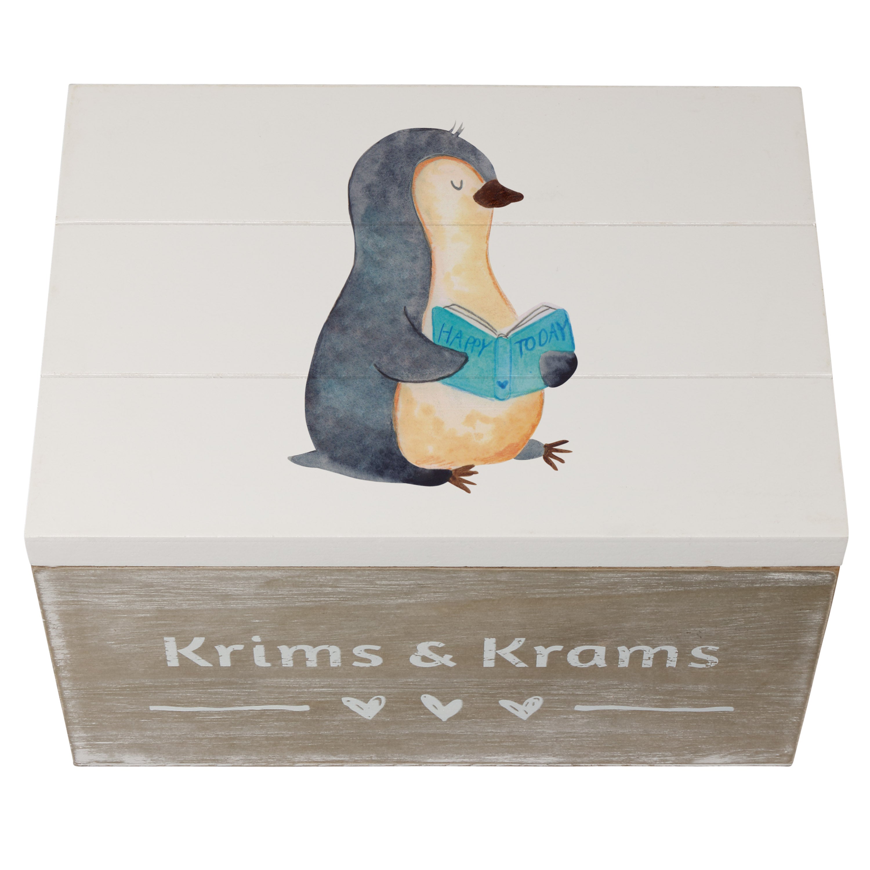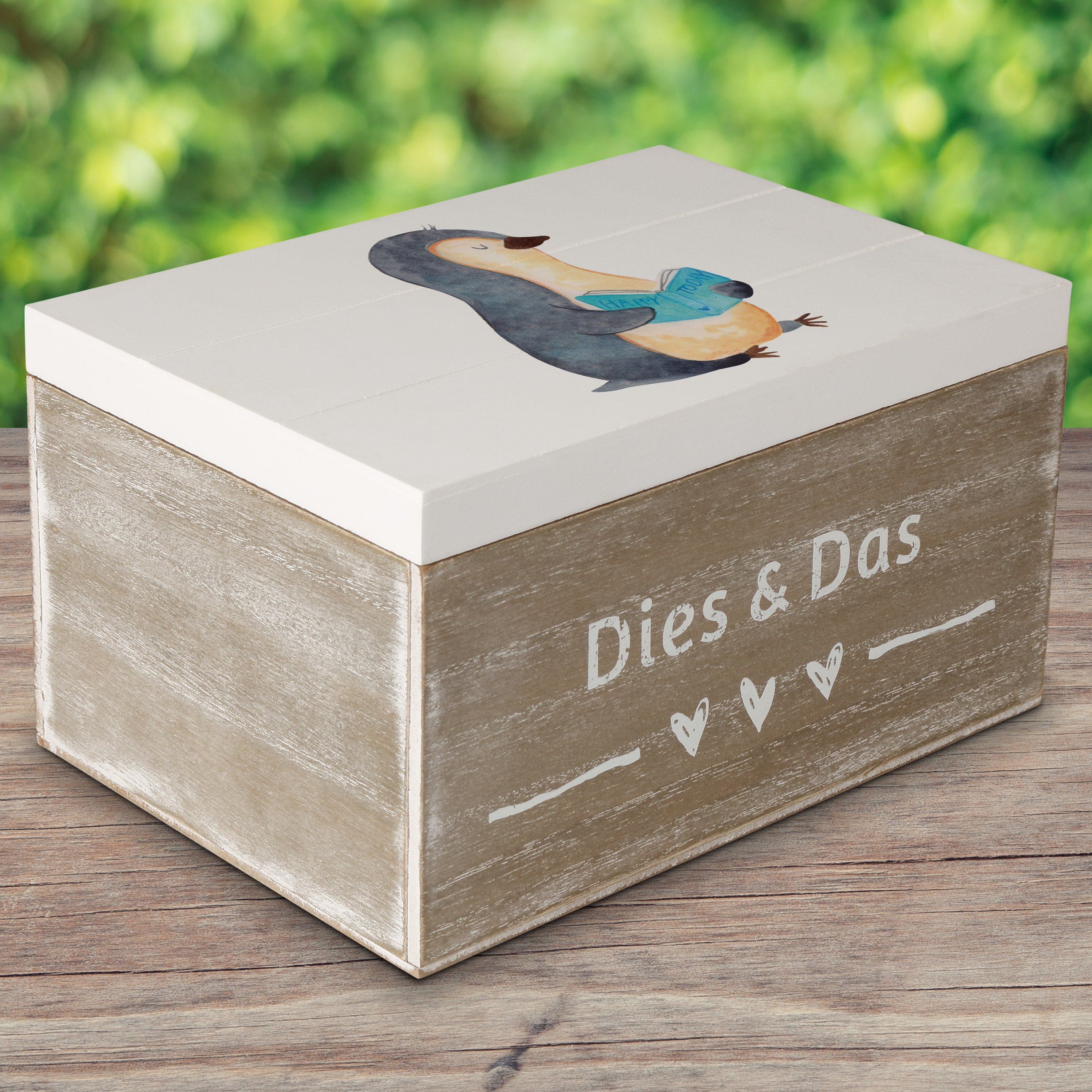 Holzkiste Pinguin Buch - 25 x 18 cm - mit Spruch - Weiß