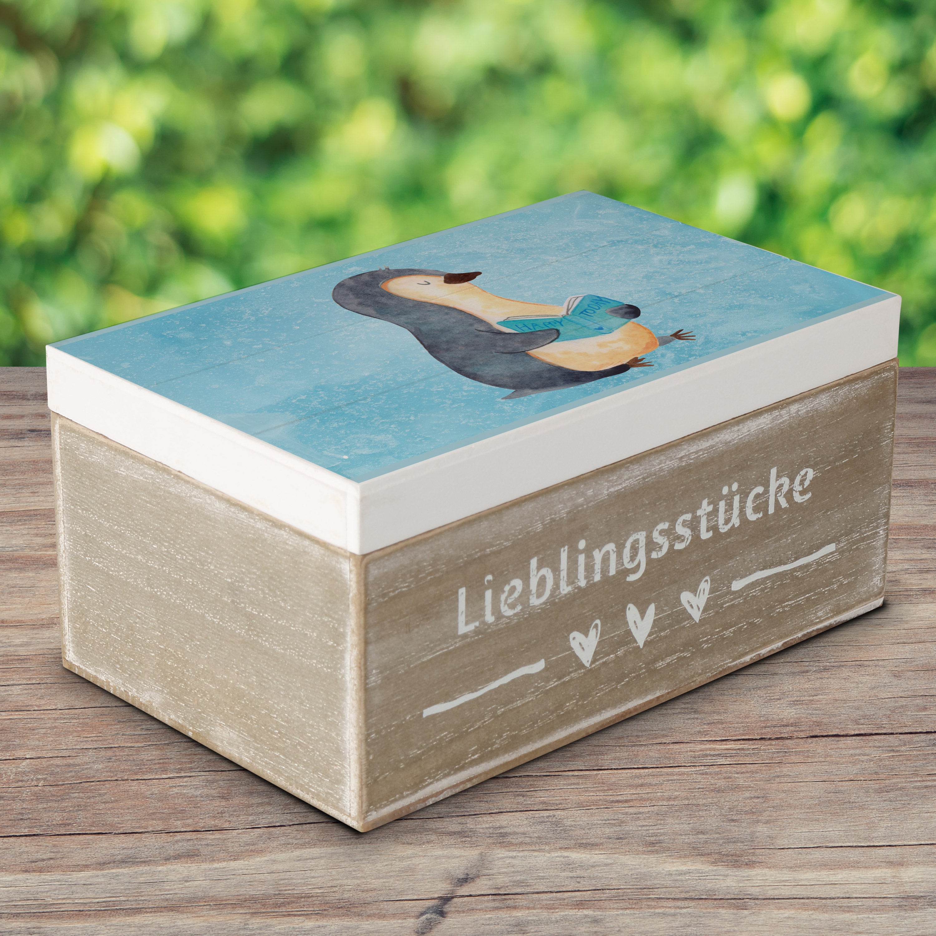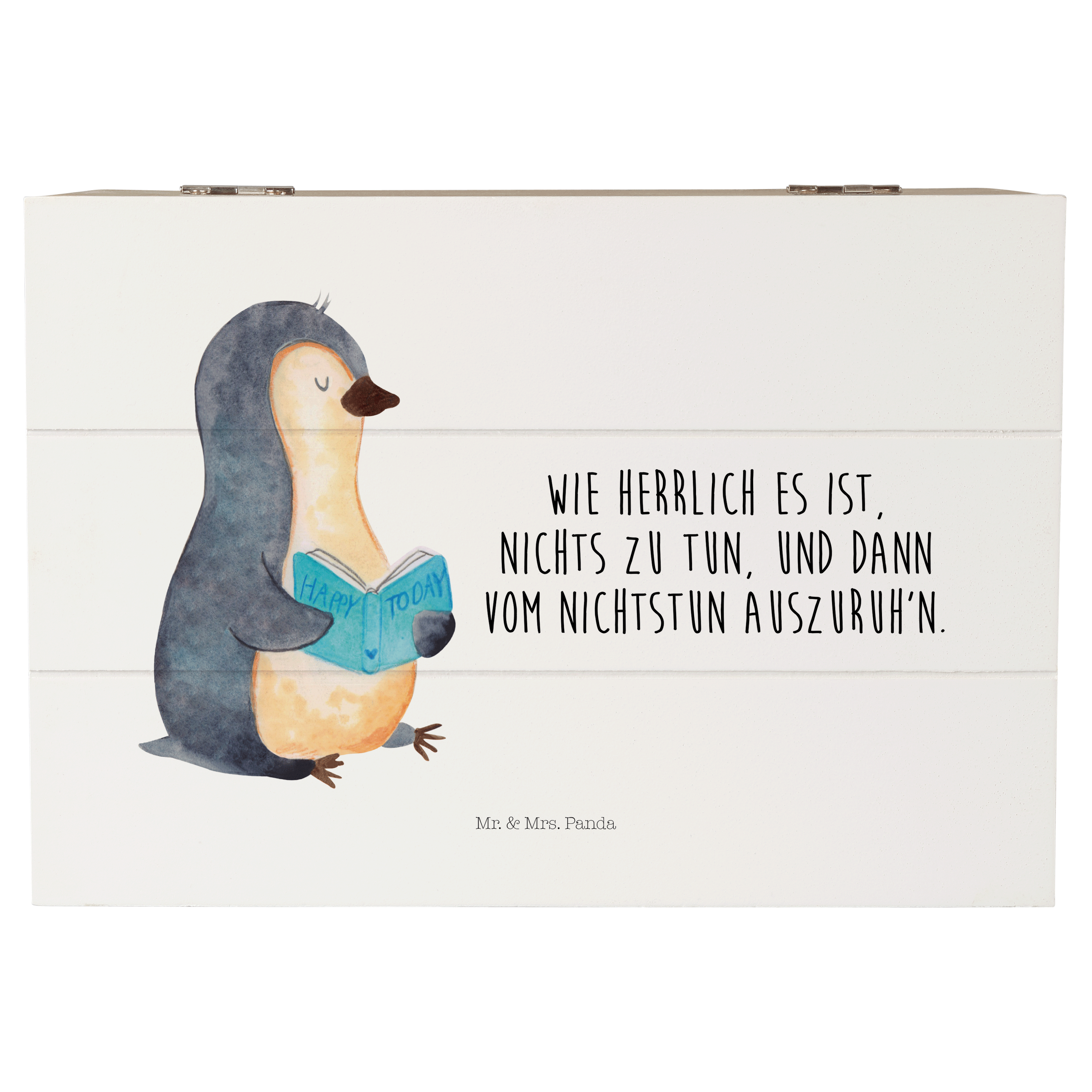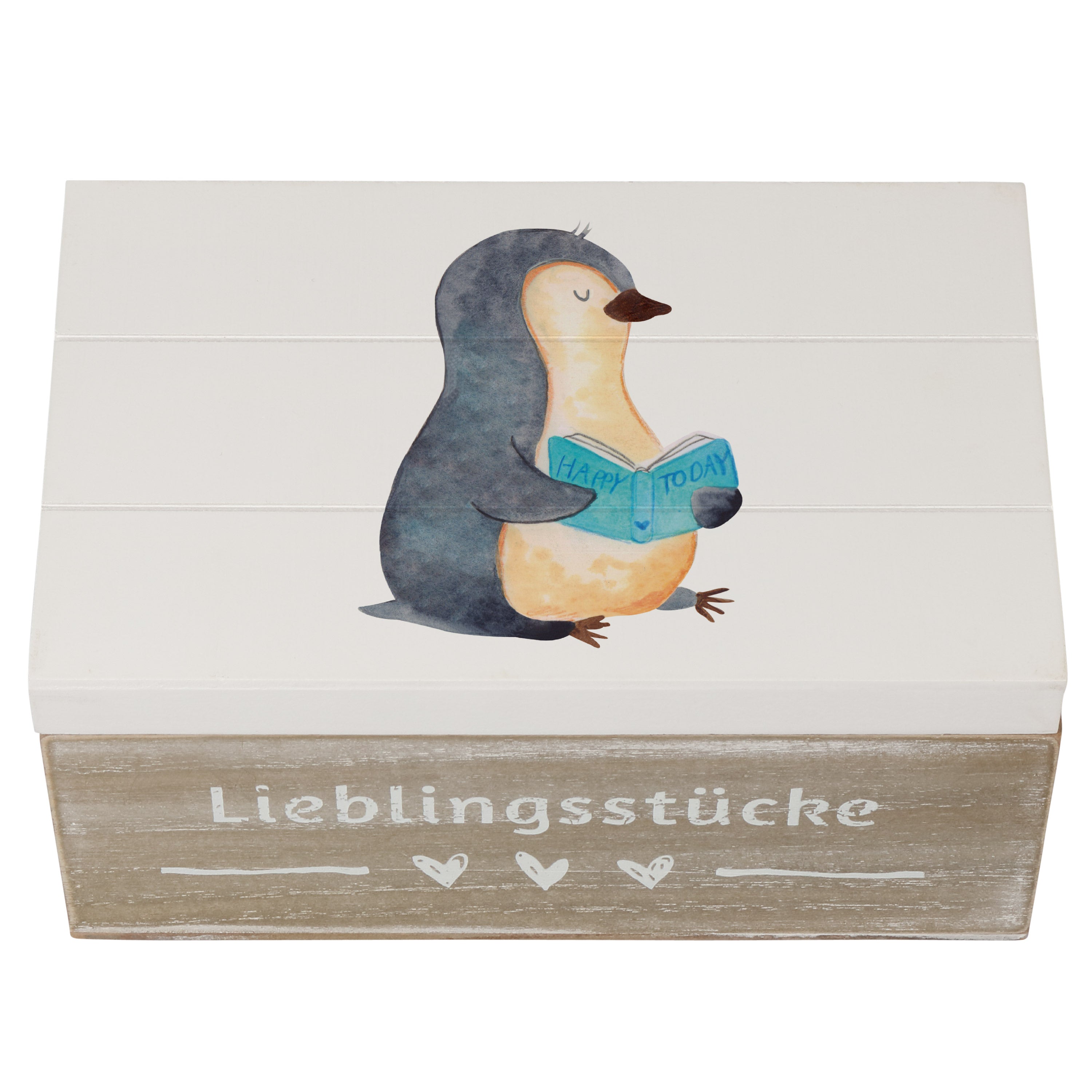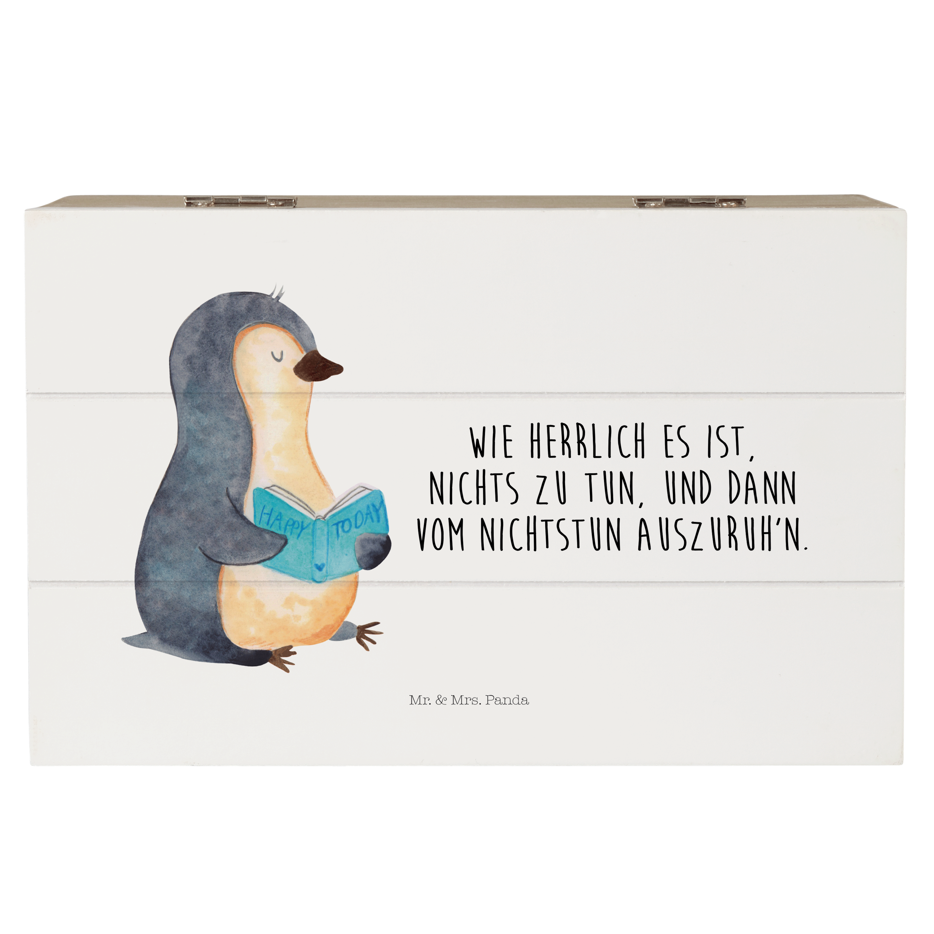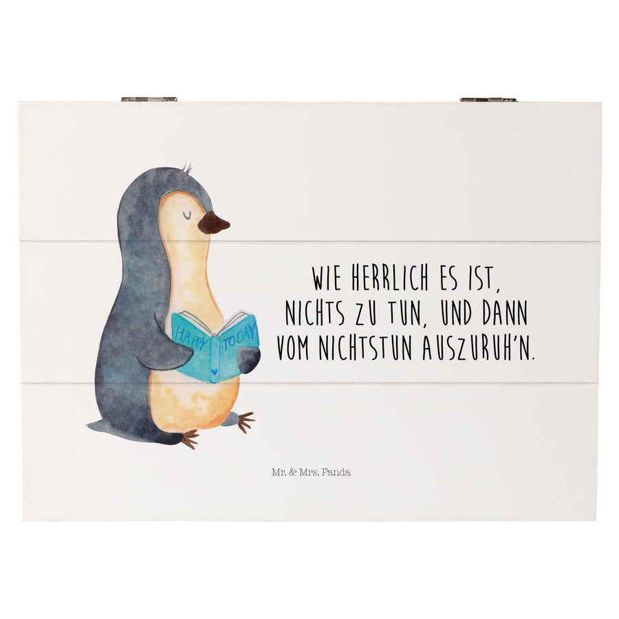 Holzkiste Pinguin Buch - 25 x 18 cm - mit Spruch - Weiß