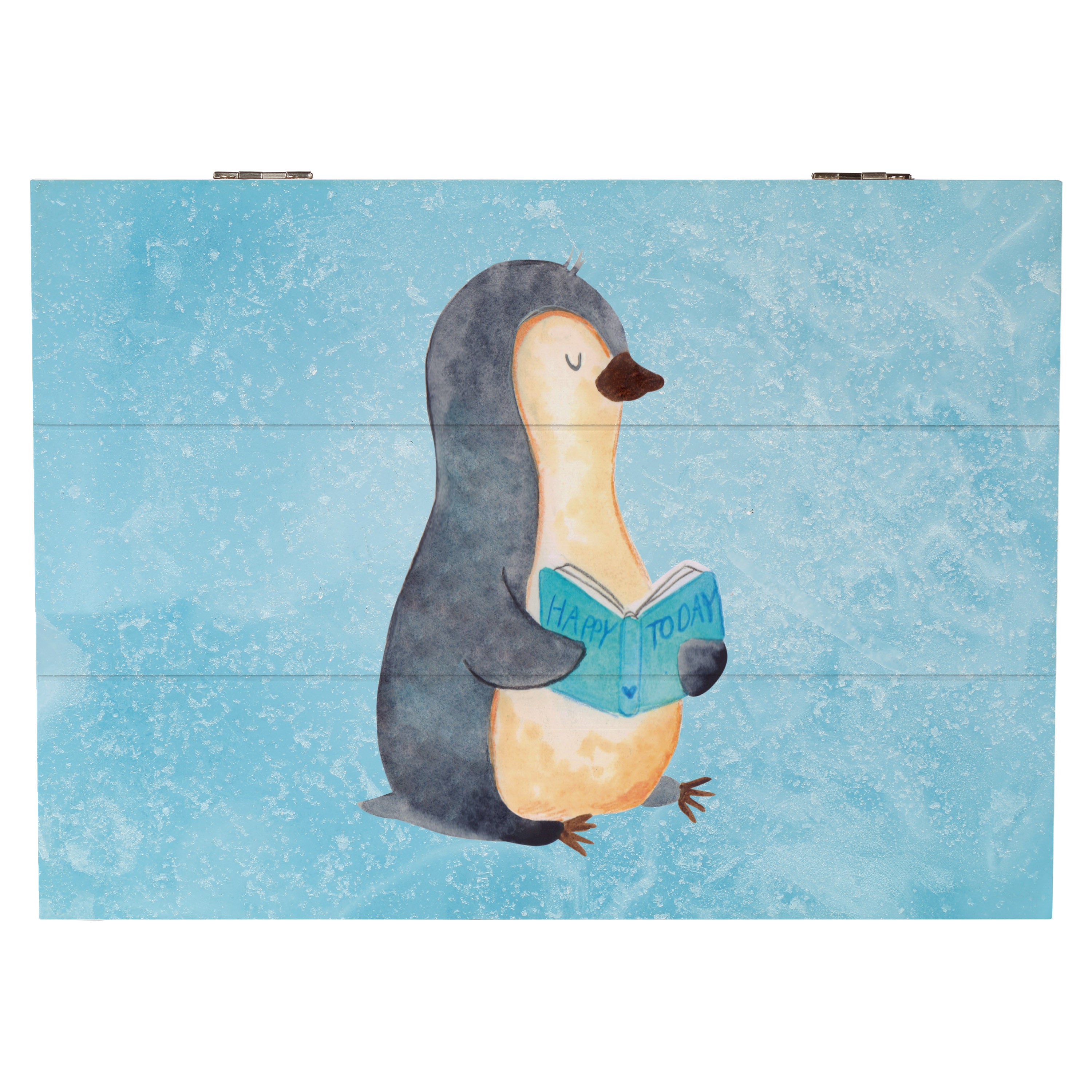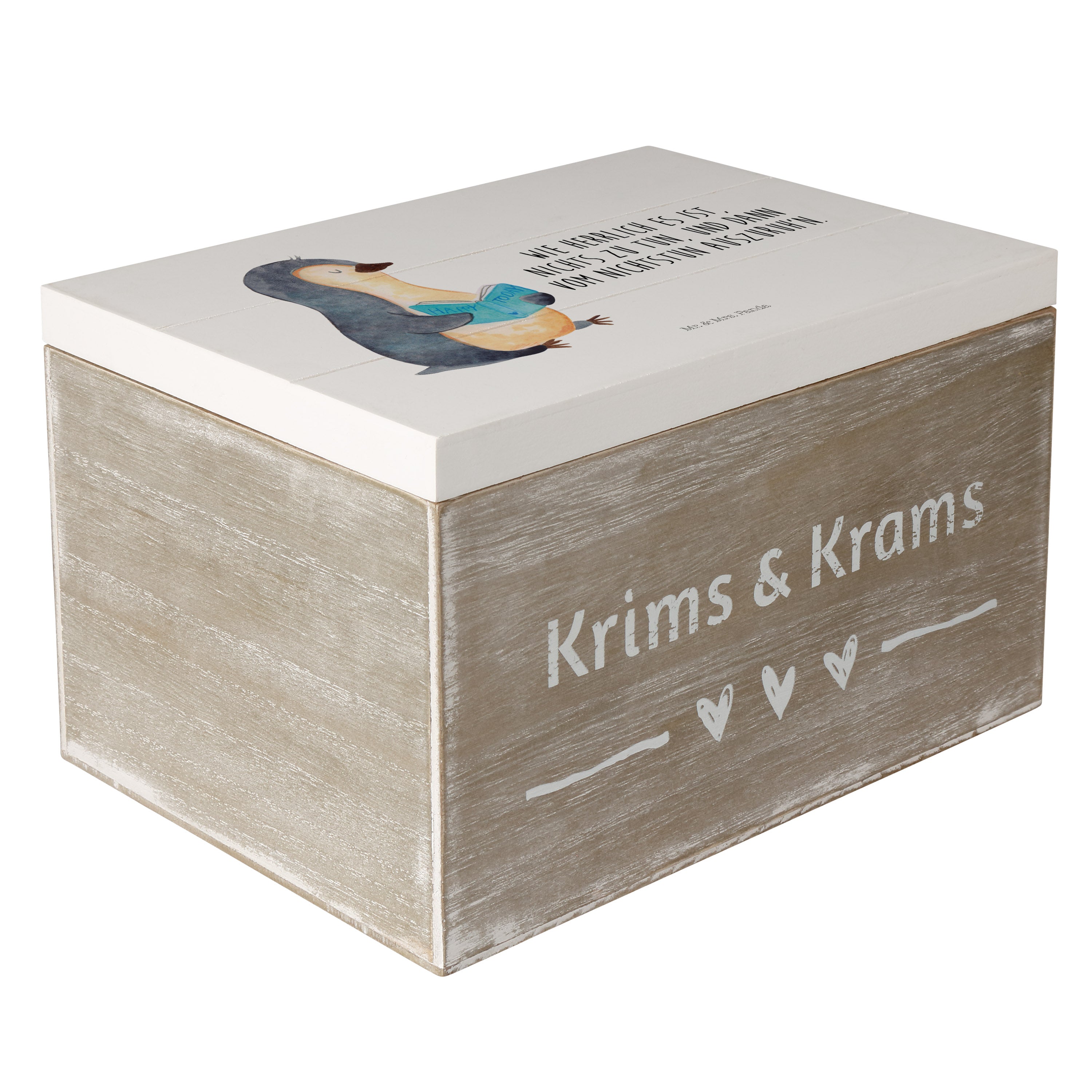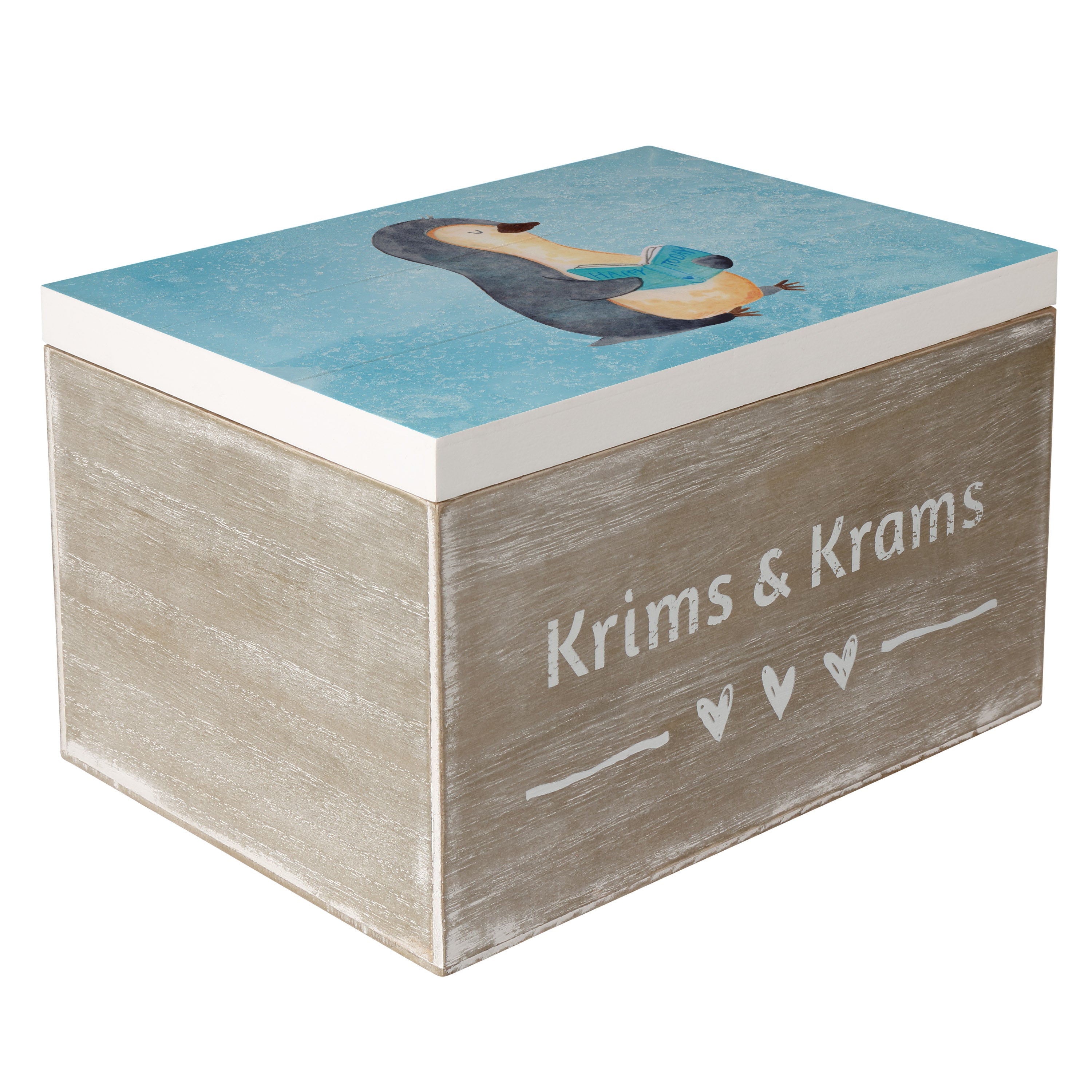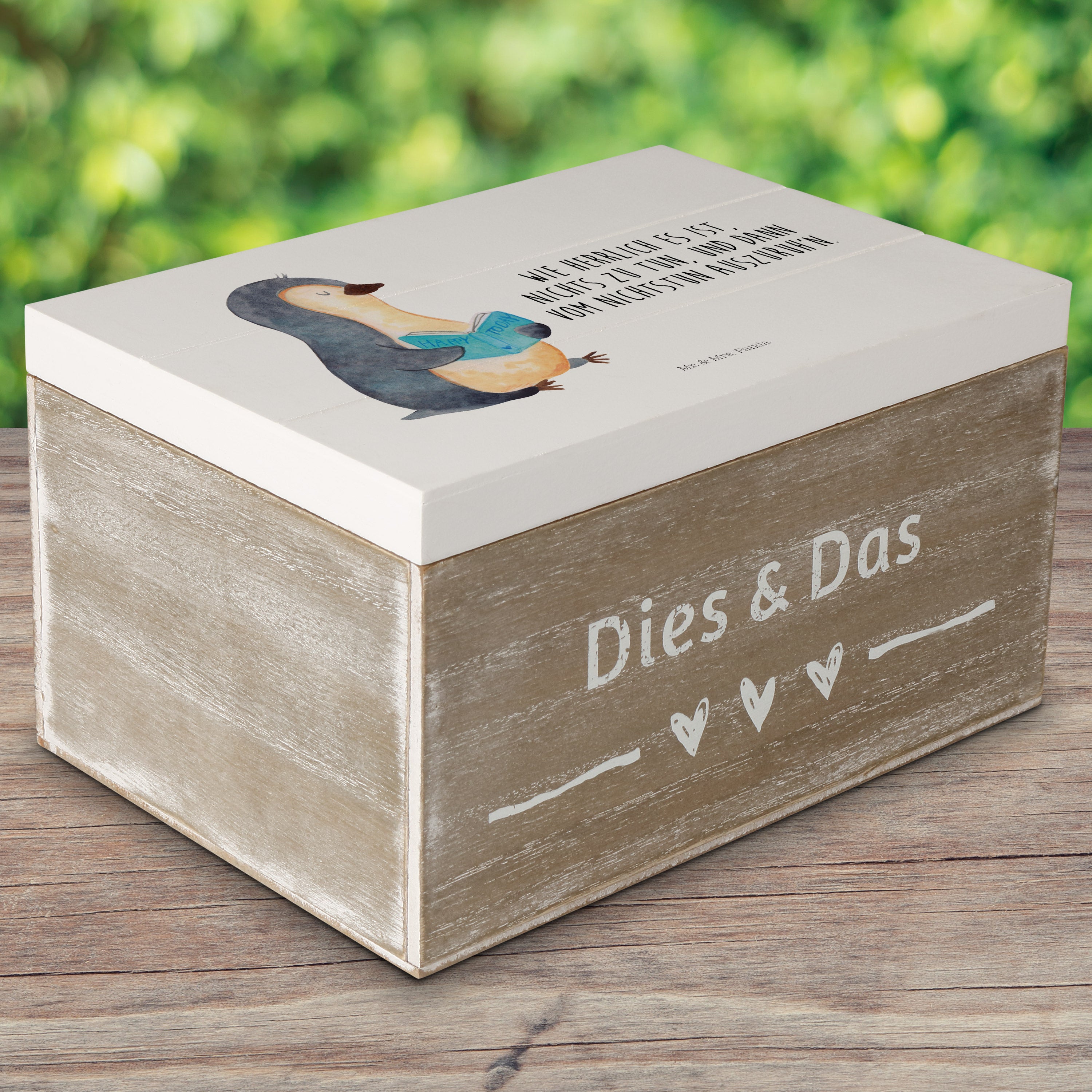 Holzkiste Pinguin Buch - 25 x 18 cm - mit Spruch - Weiß