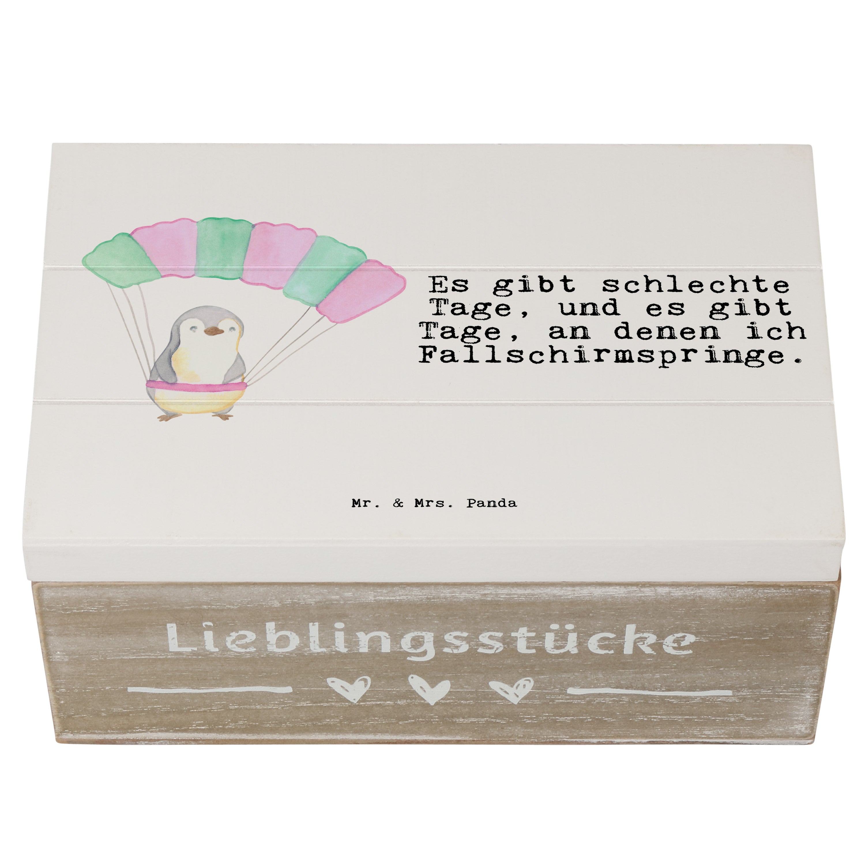 Holzkiste Pinguin Fallschirm springen Tage - 19 x 12 cm