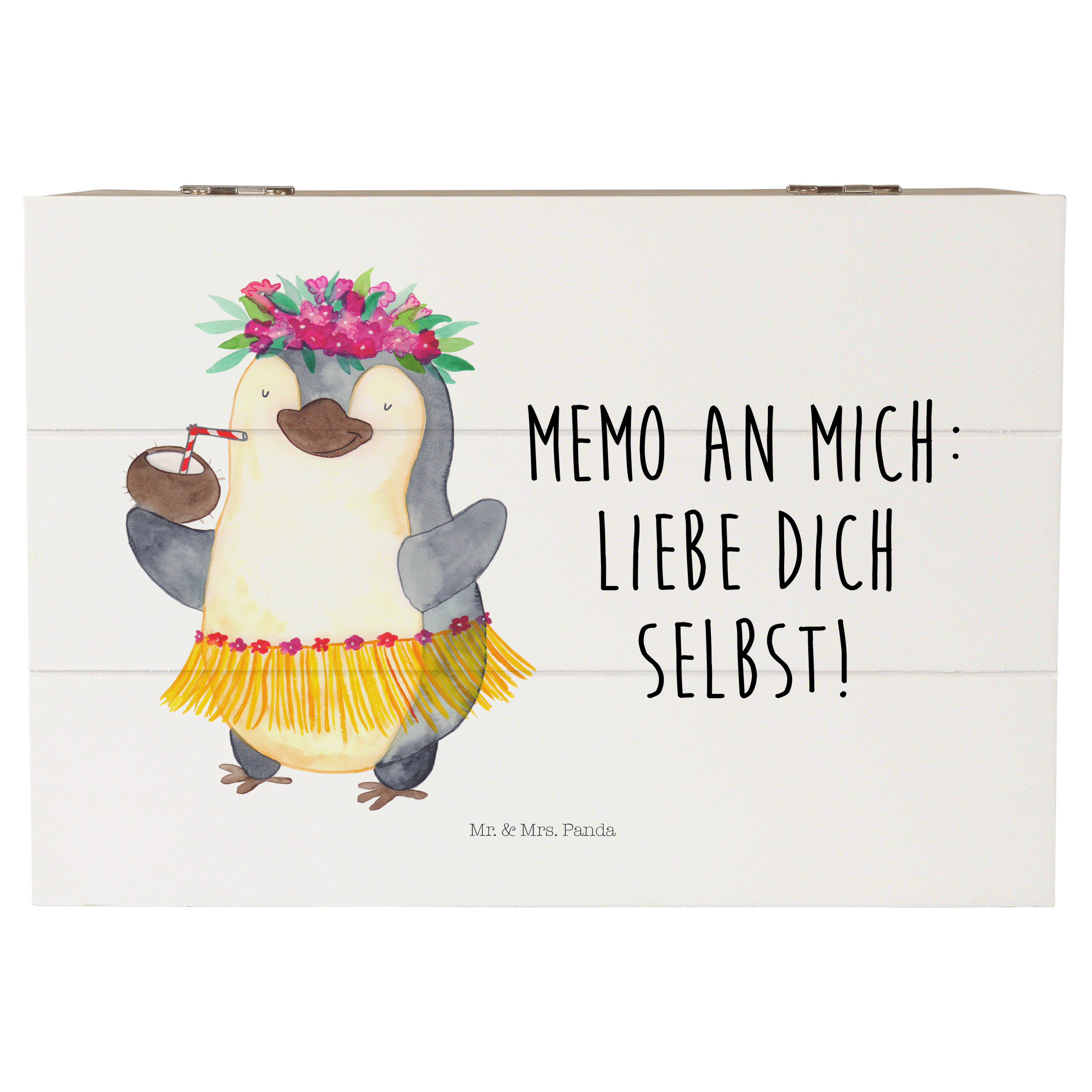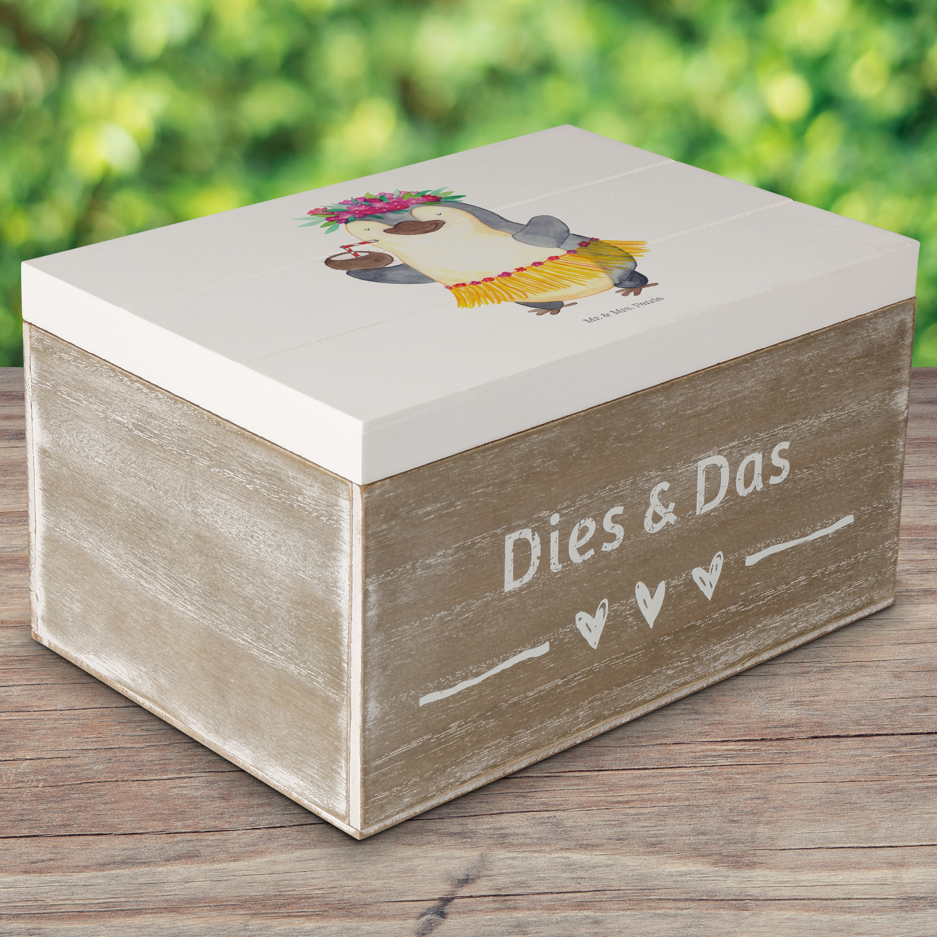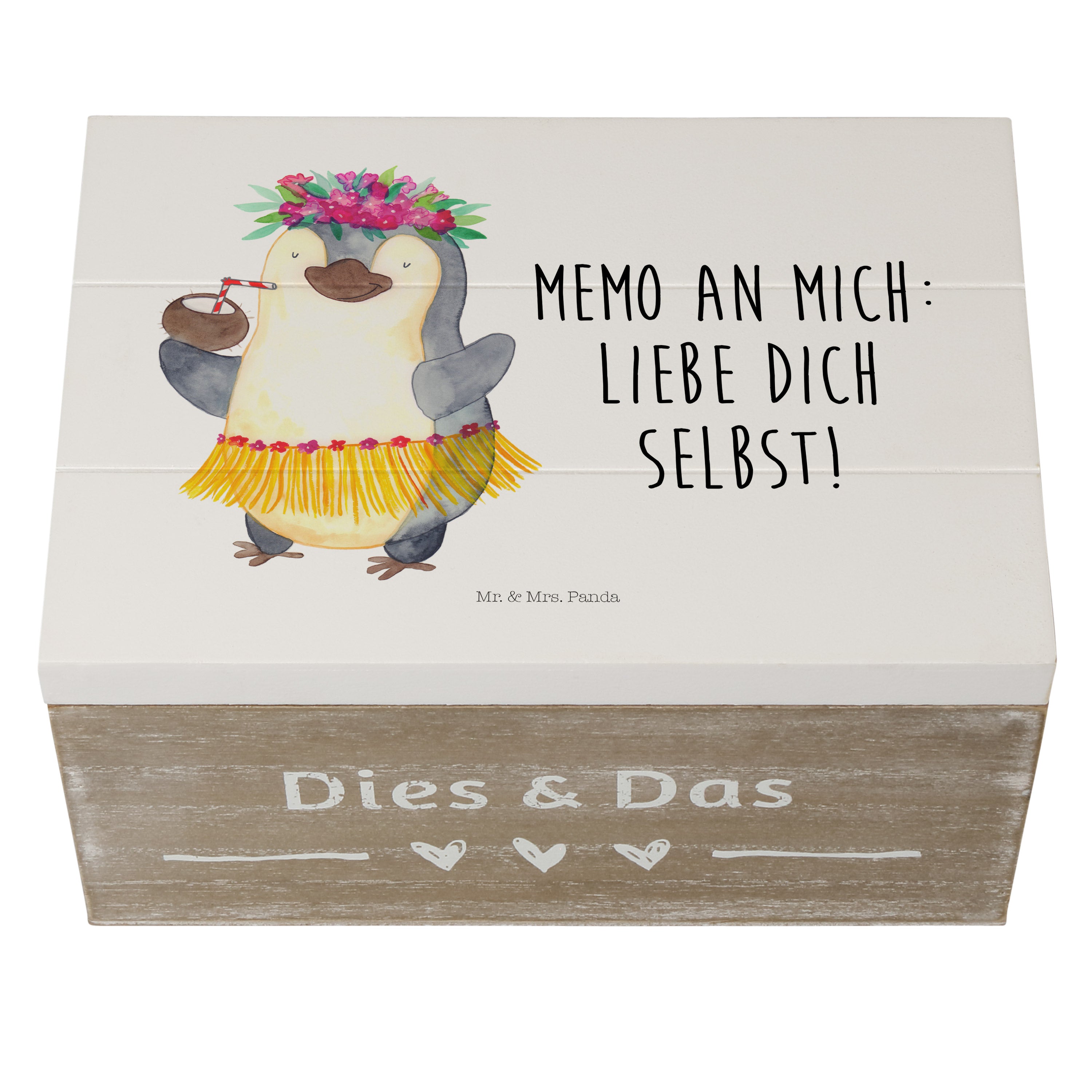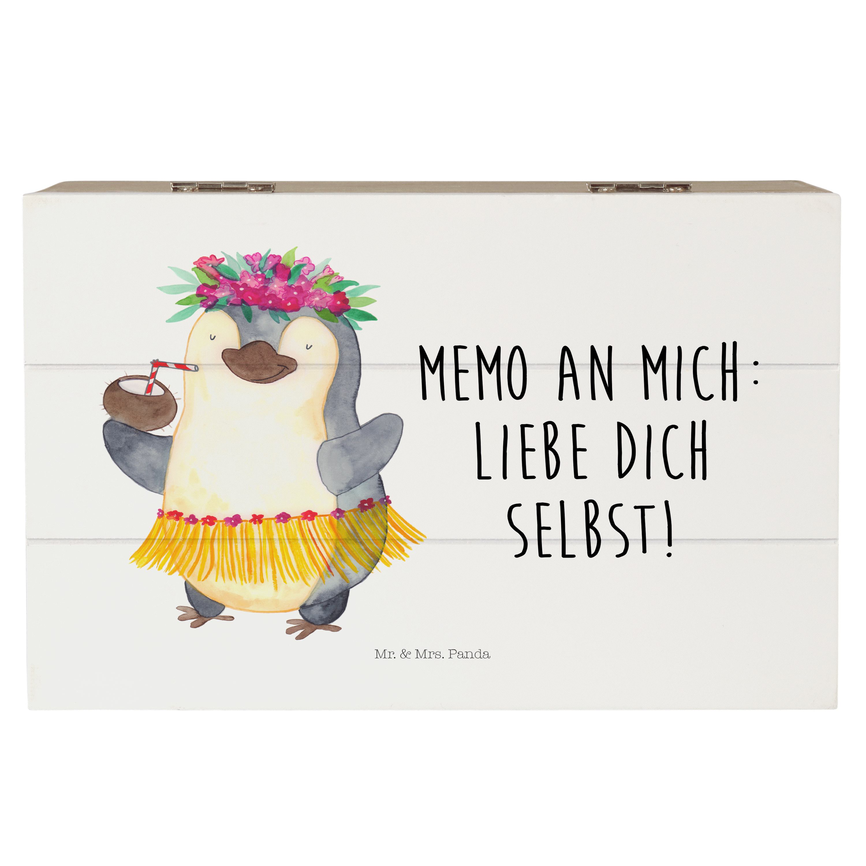 Holzkiste Pinguin Kokosnuss - 25 x 18 cm - mit Spruch - Weiß
