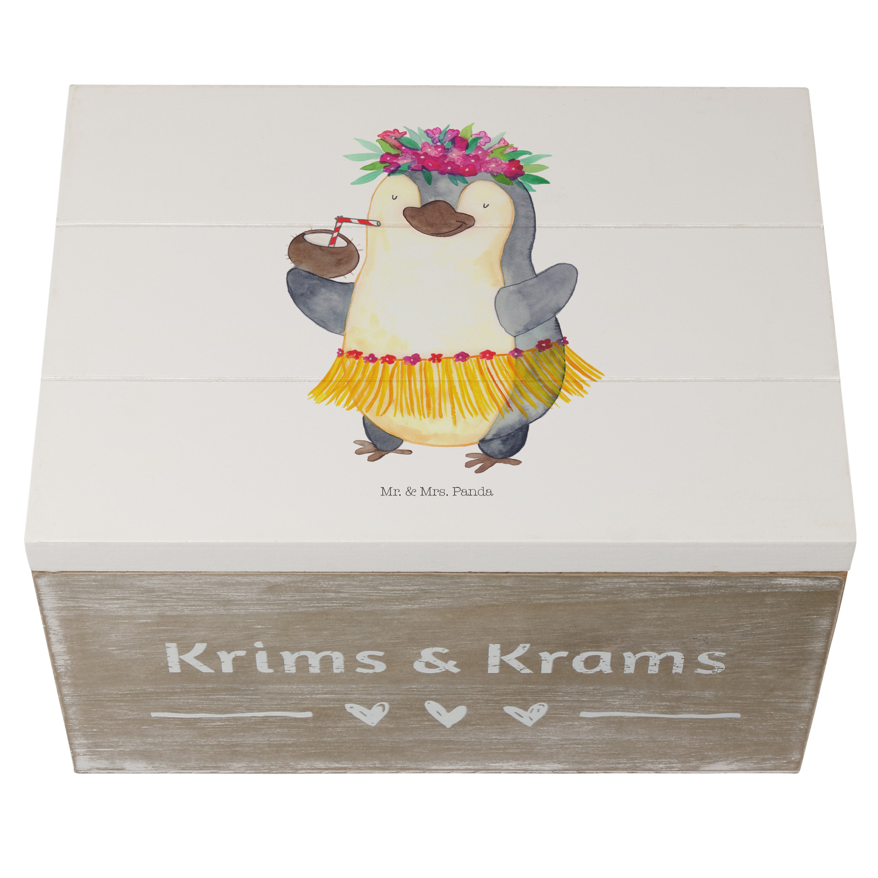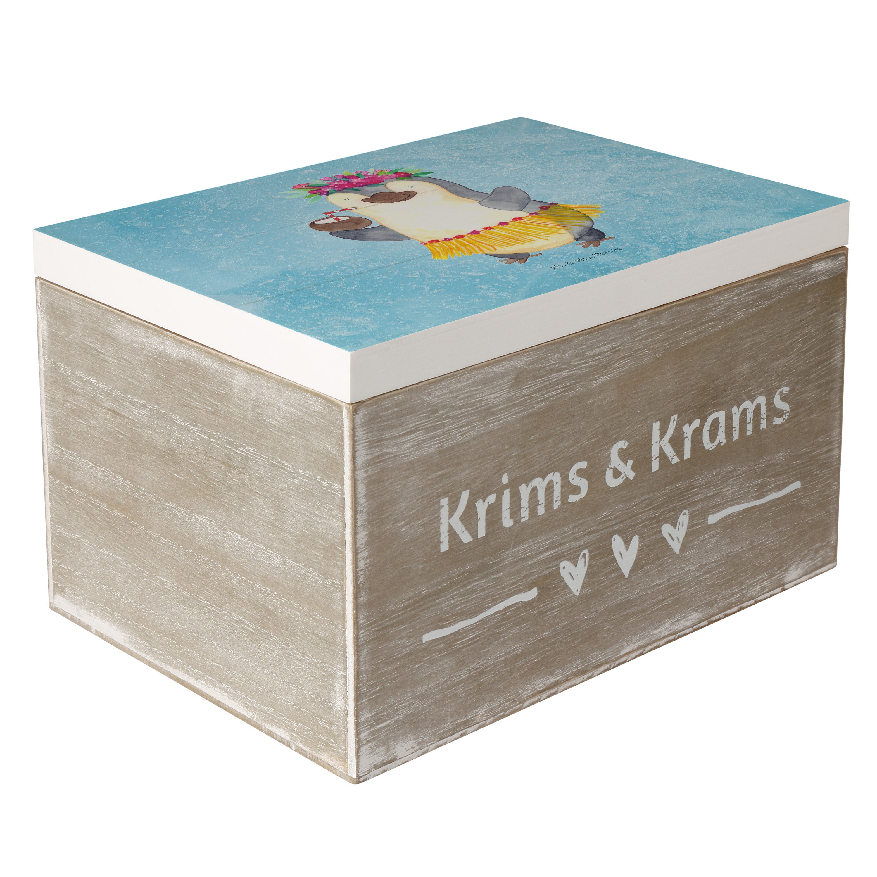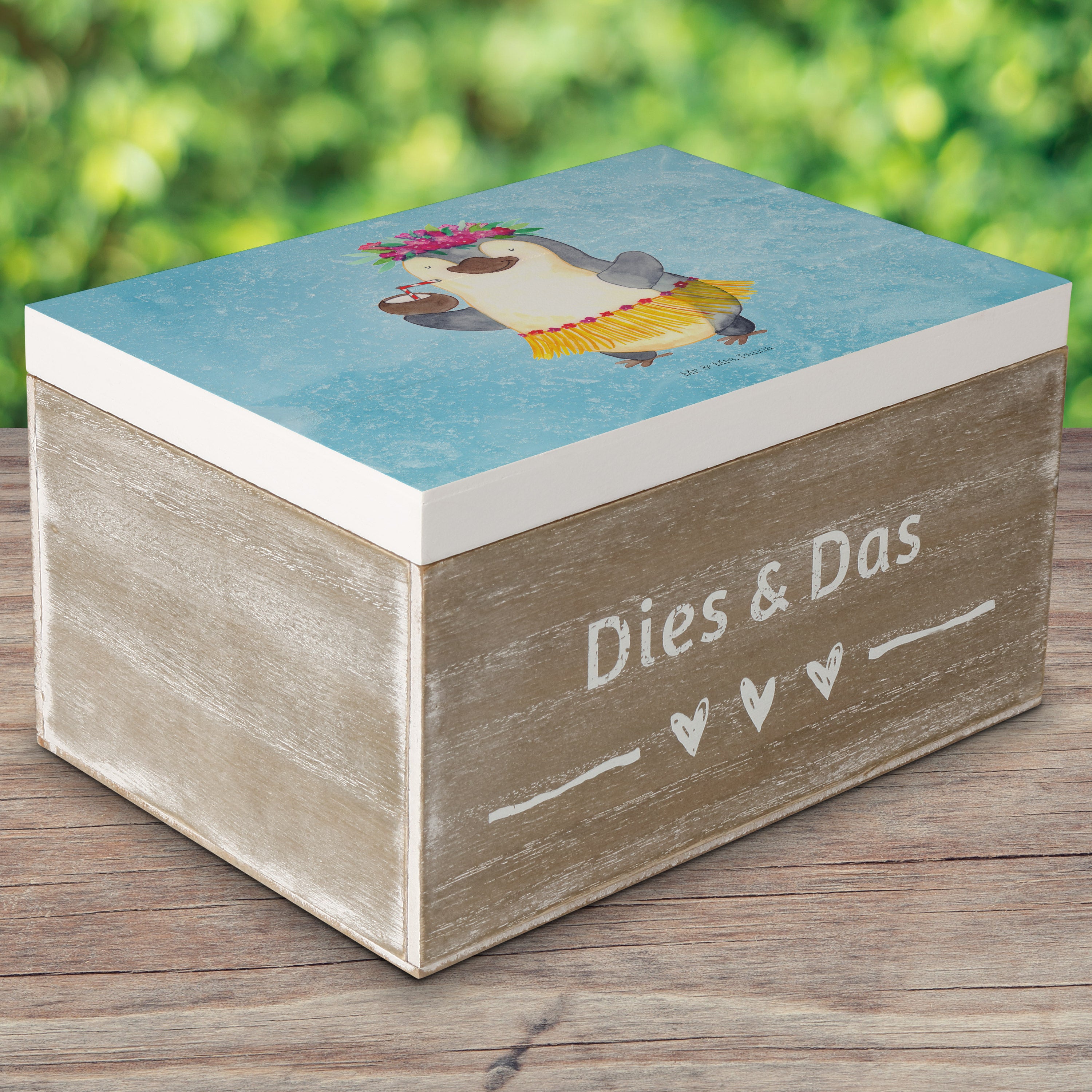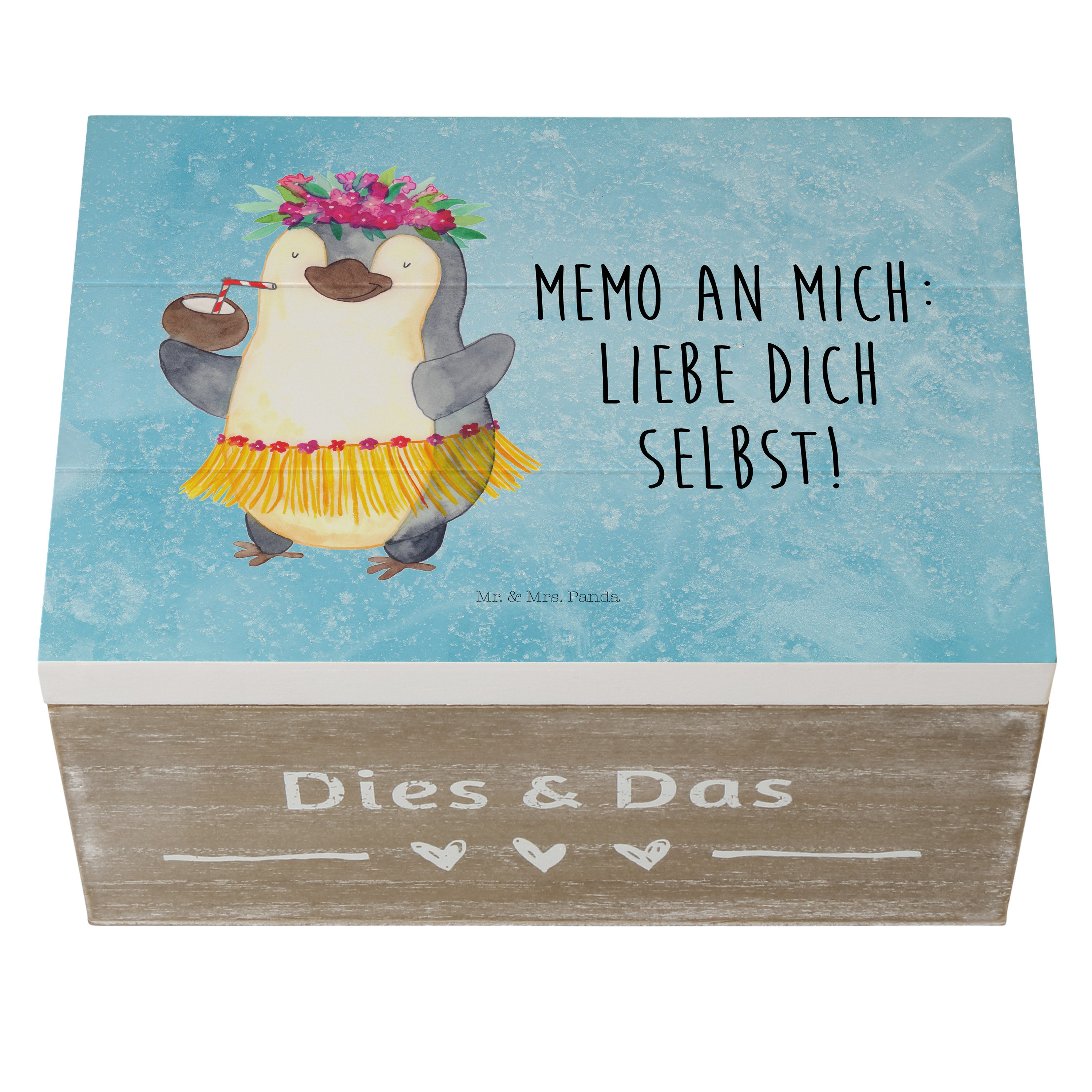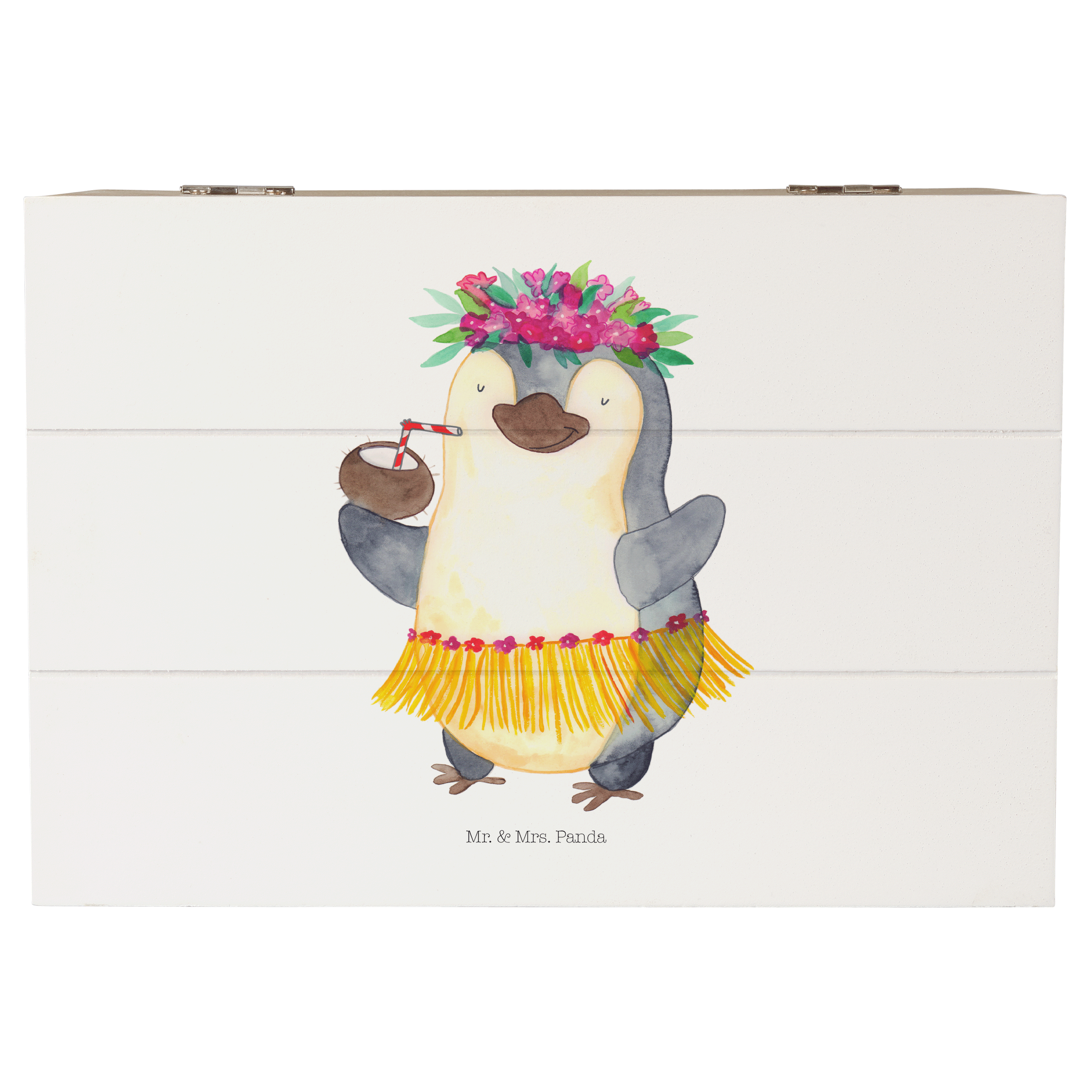 Holzkiste Pinguin Kokosnuss - 25 x 18 cm - mit Spruch - Weiß