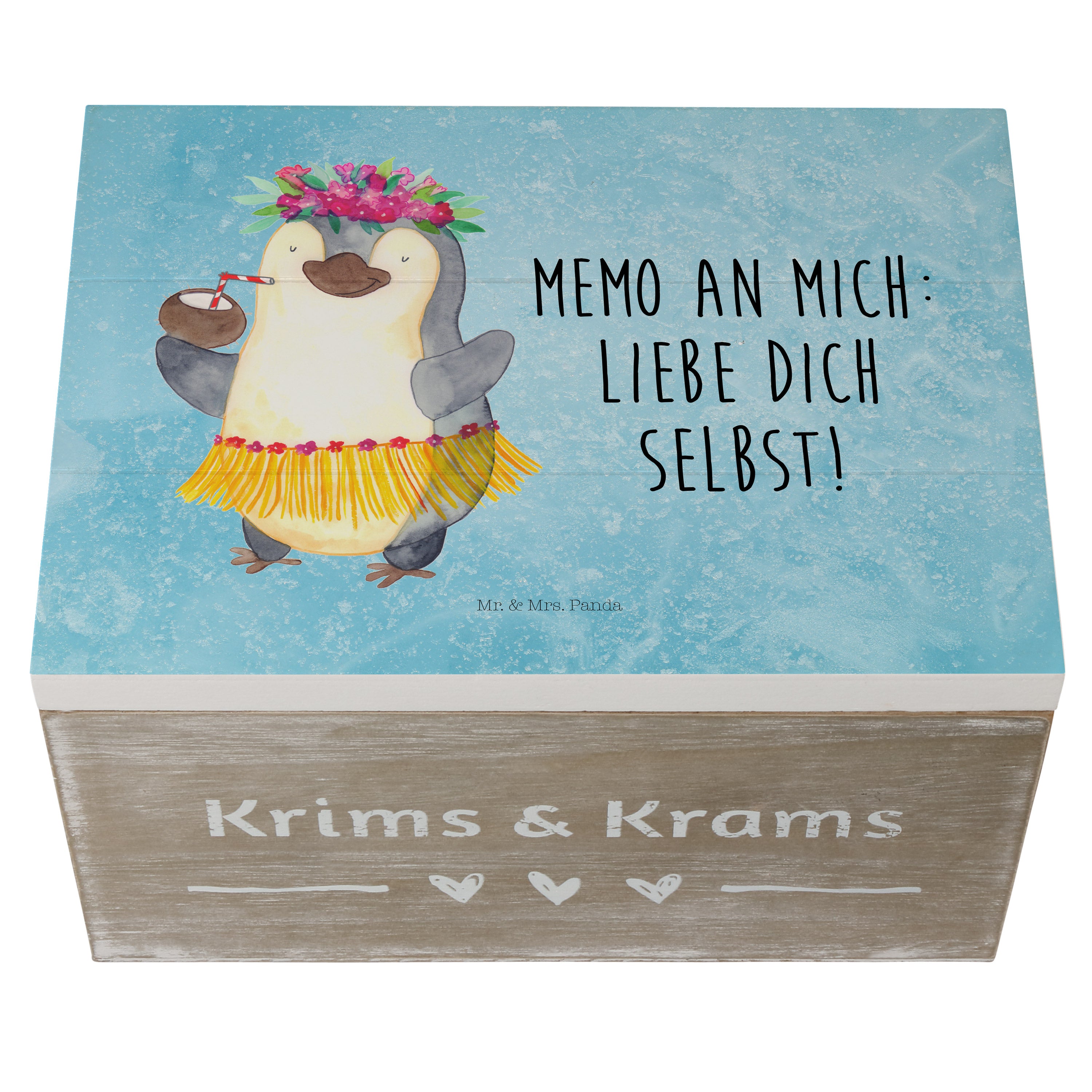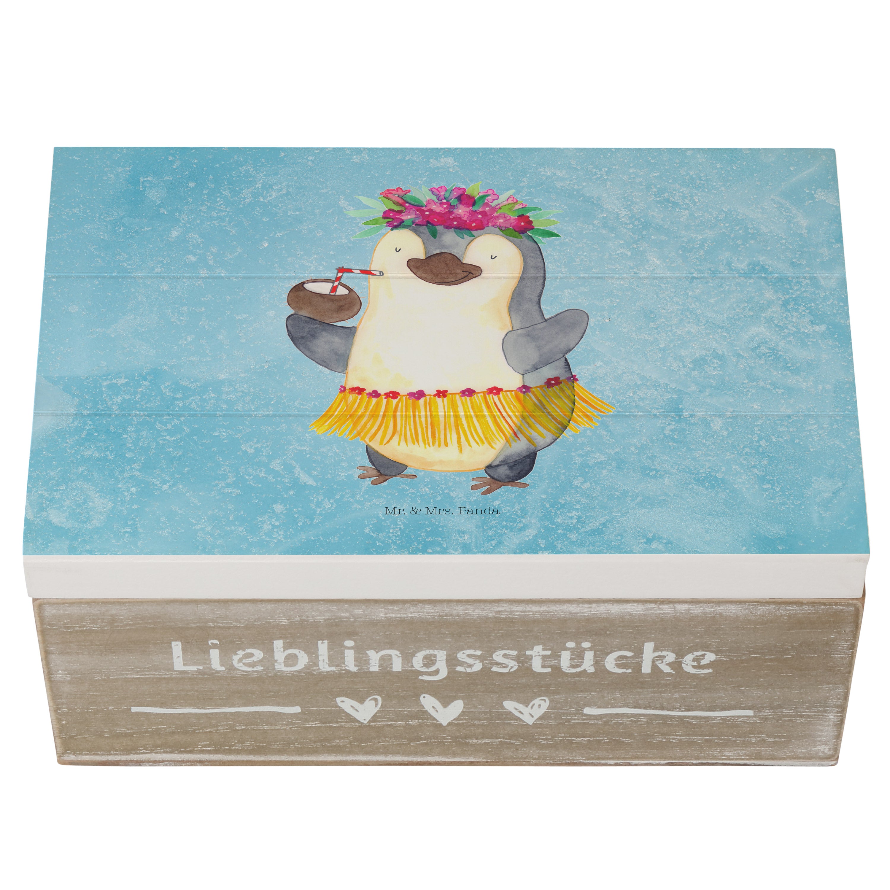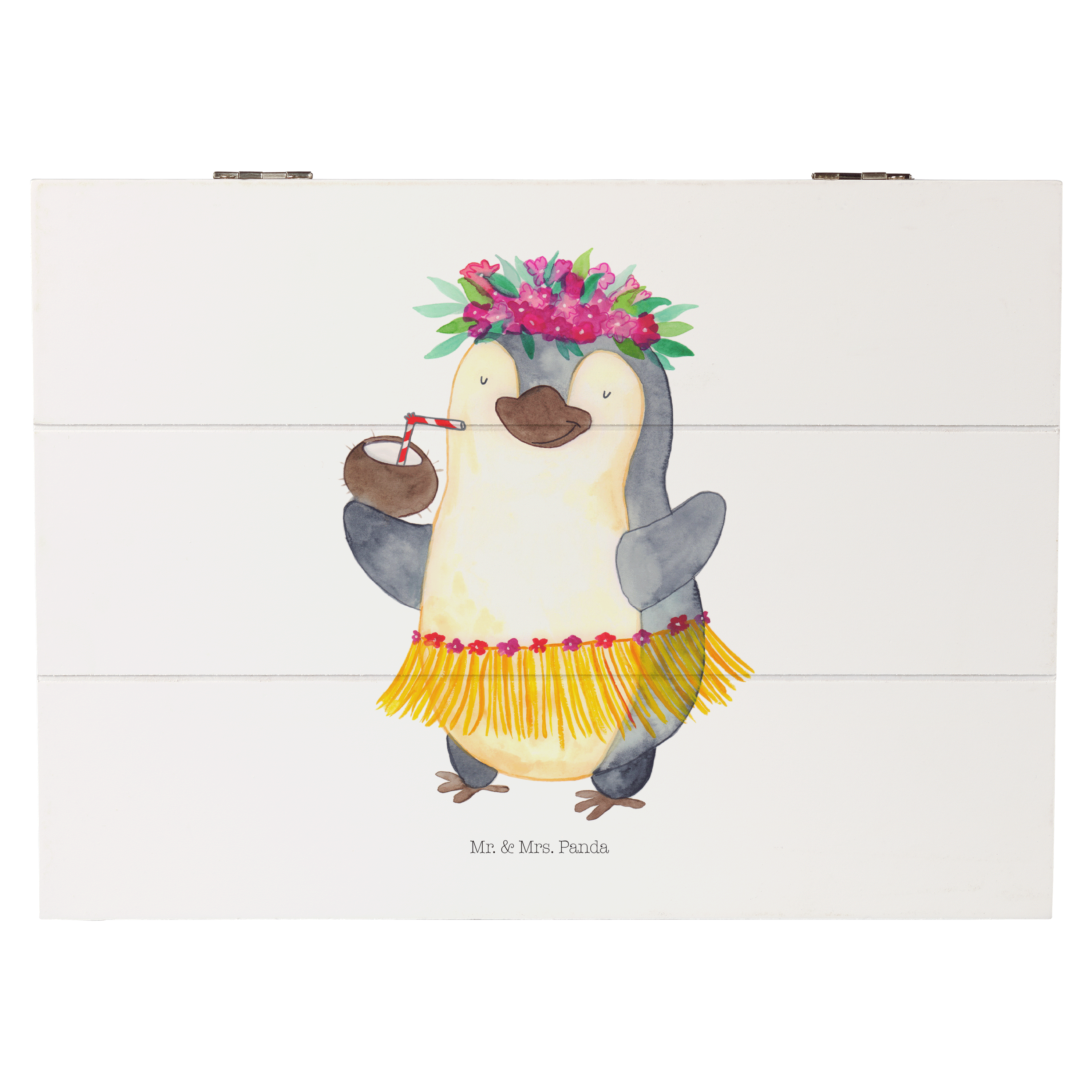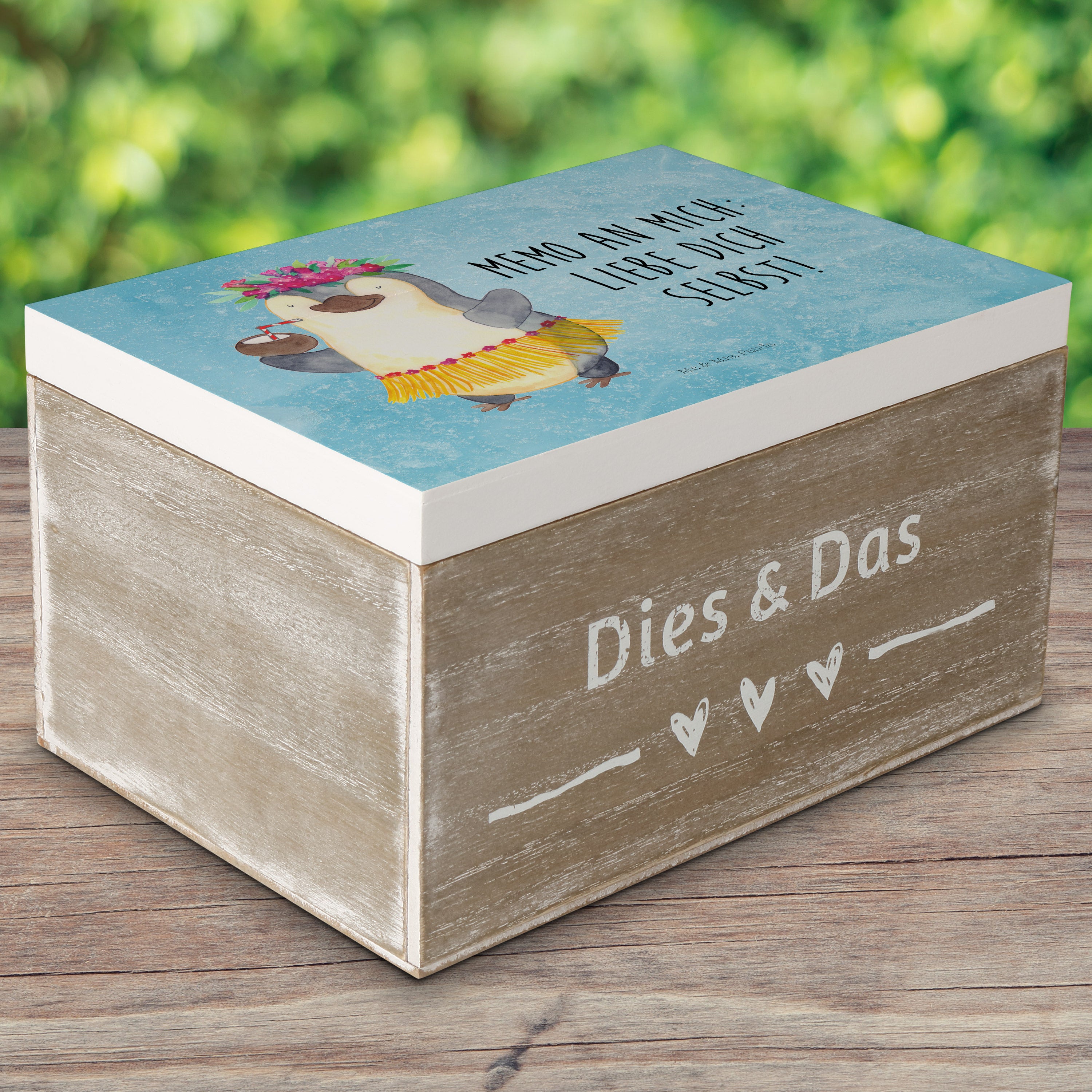 Holzkiste Pinguin Kokosnuss - 25 x 18 cm - mit Spruch - Weiß