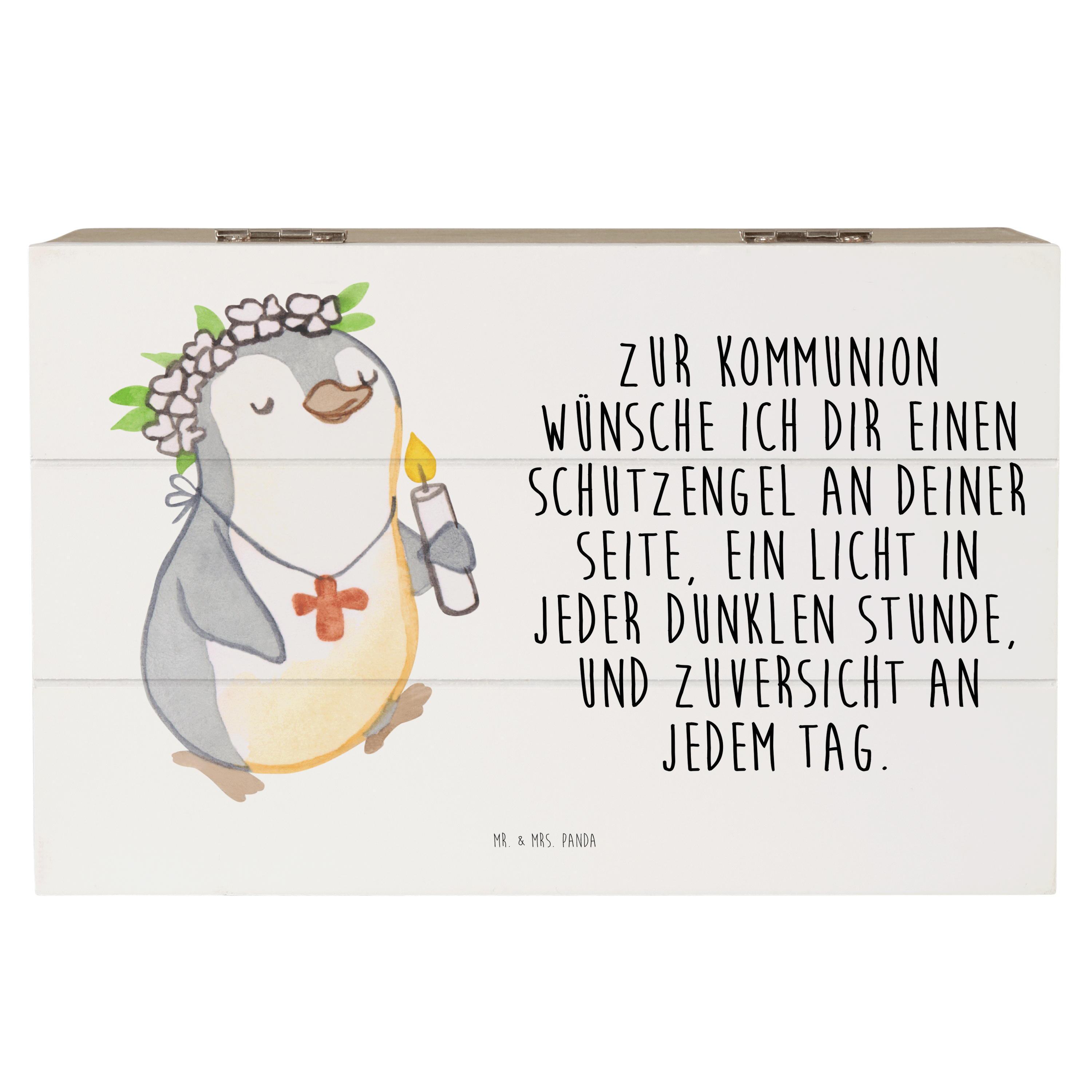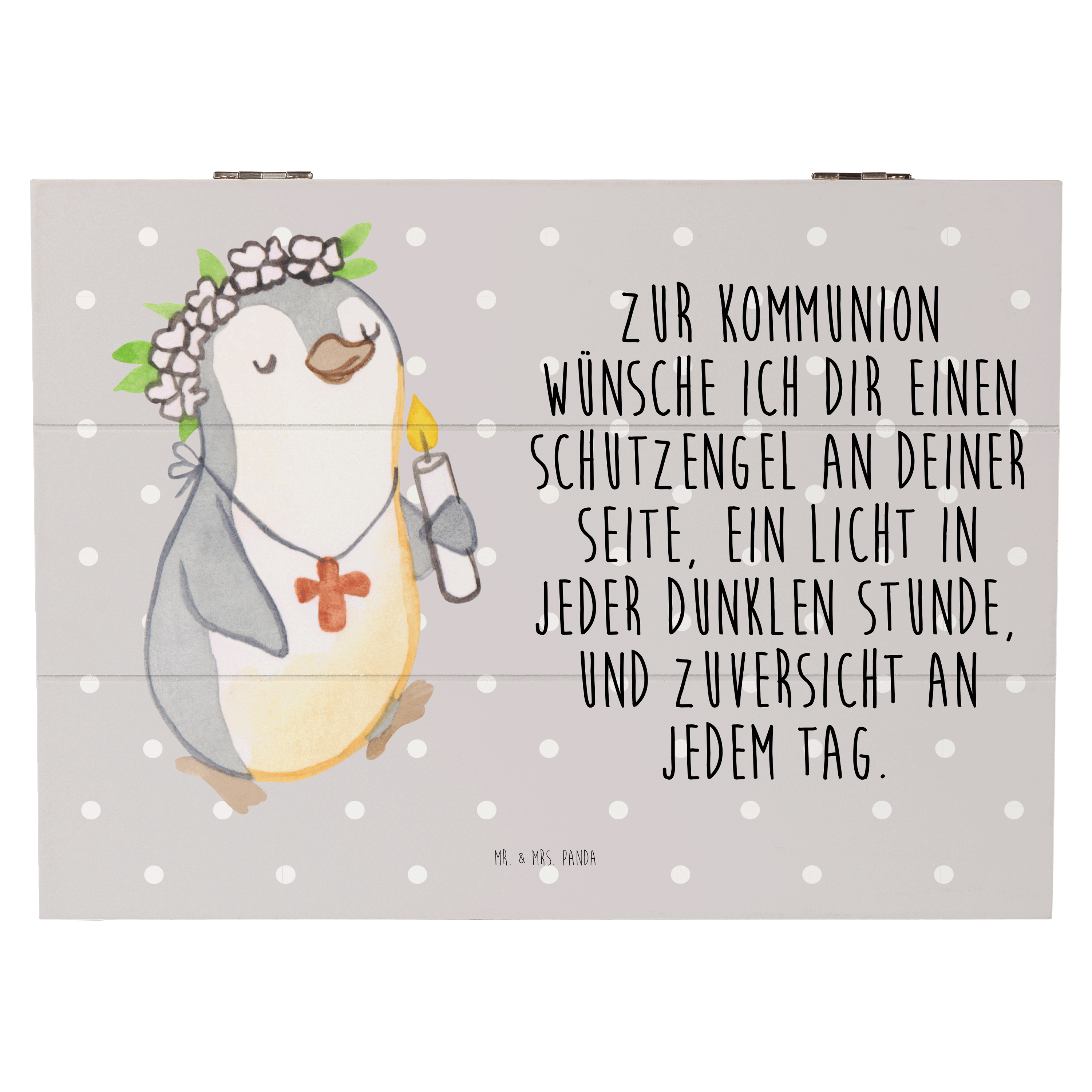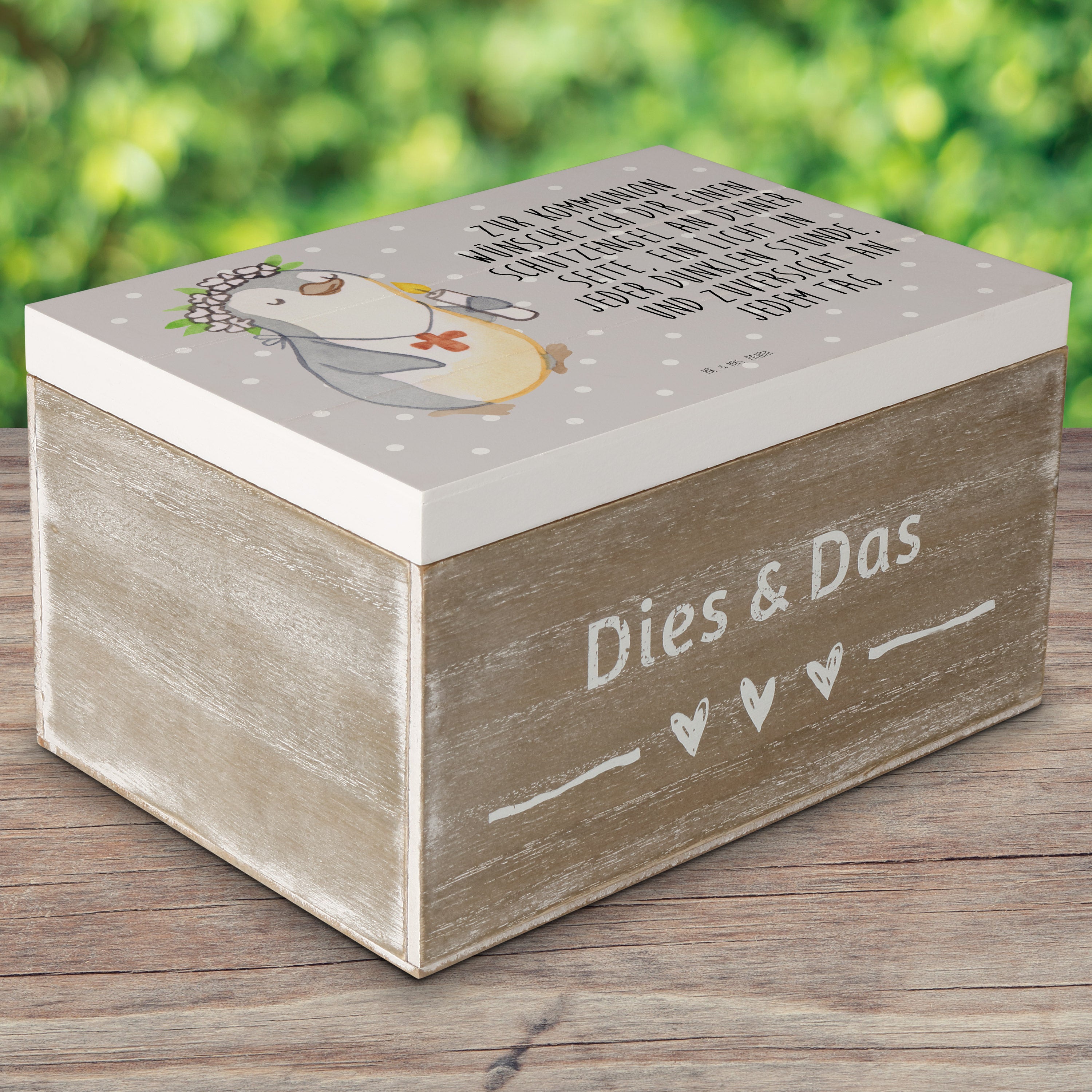 Holzkiste Pinguin Kommunion Mädchen - Grau Pastell - 19 x 12 cm