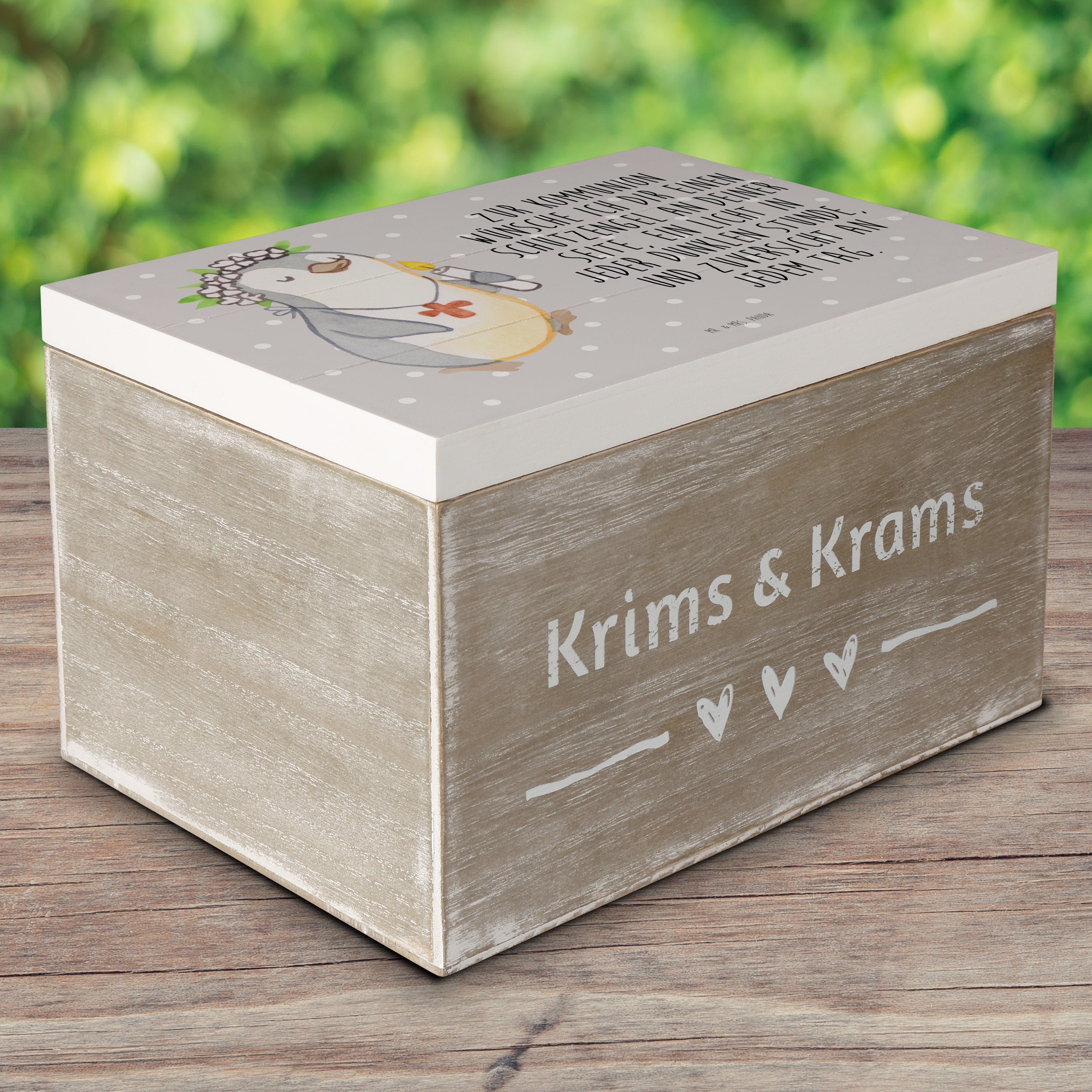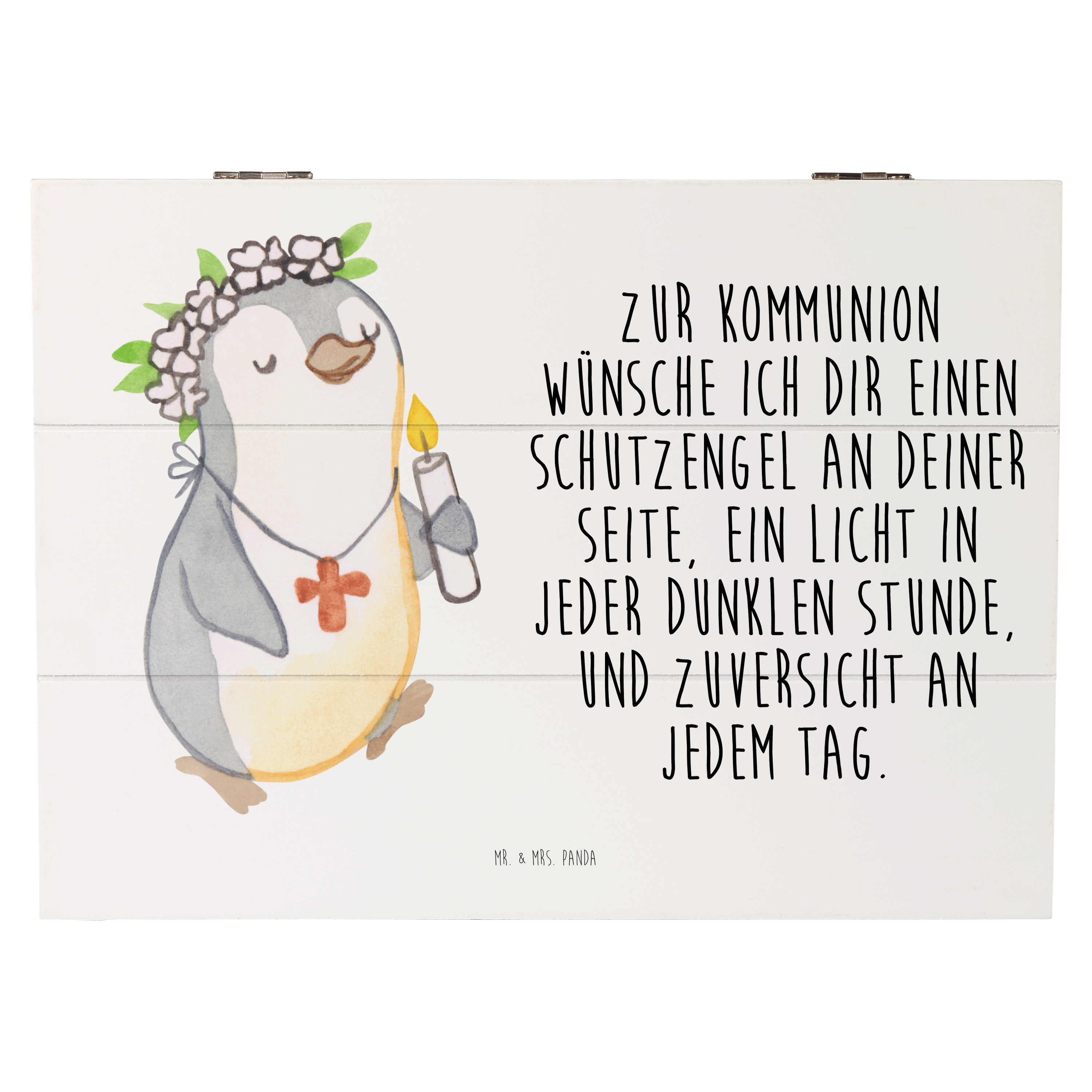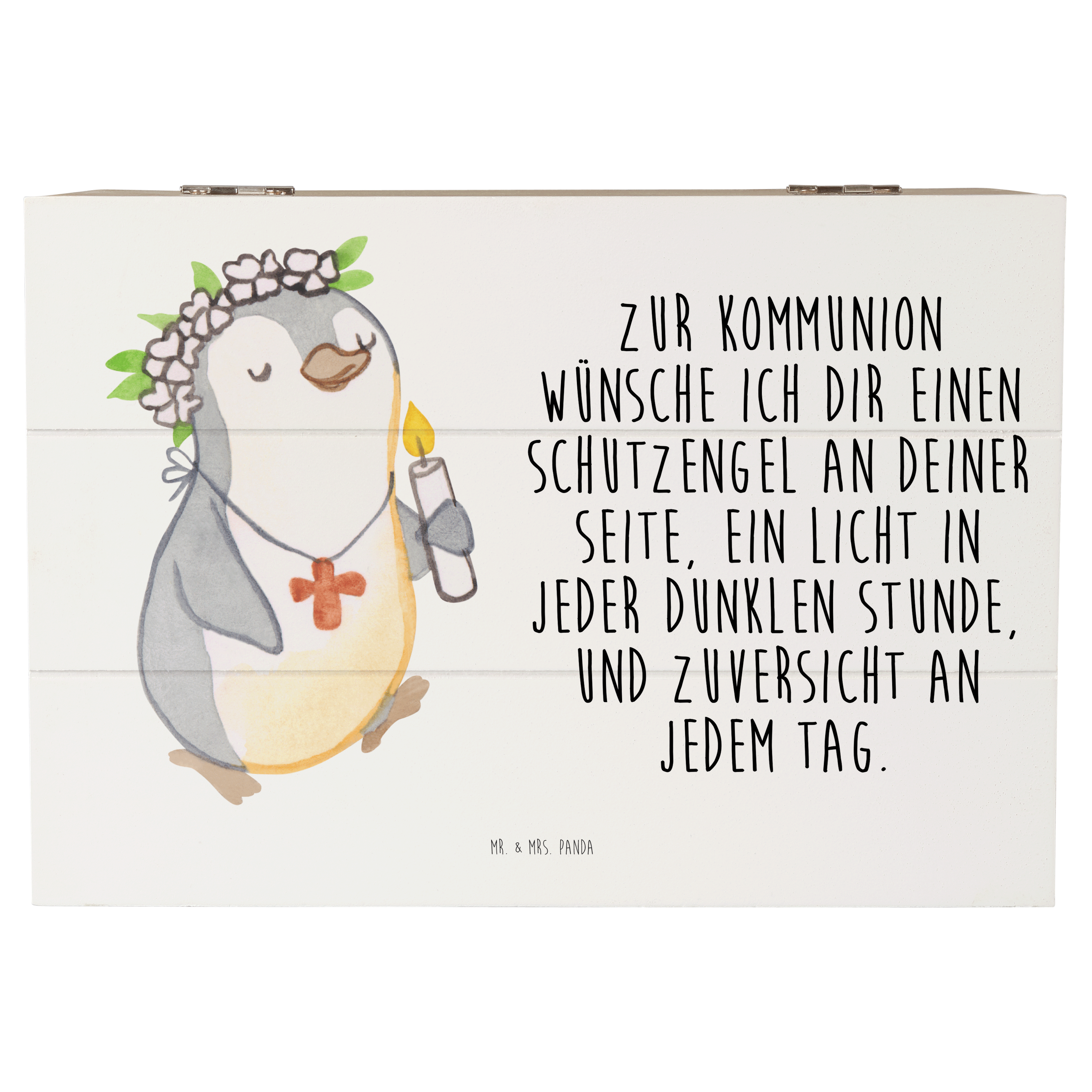 Holzkiste Pinguin Kommunion Mädchen - Grau Pastell - 19 x 12 cm