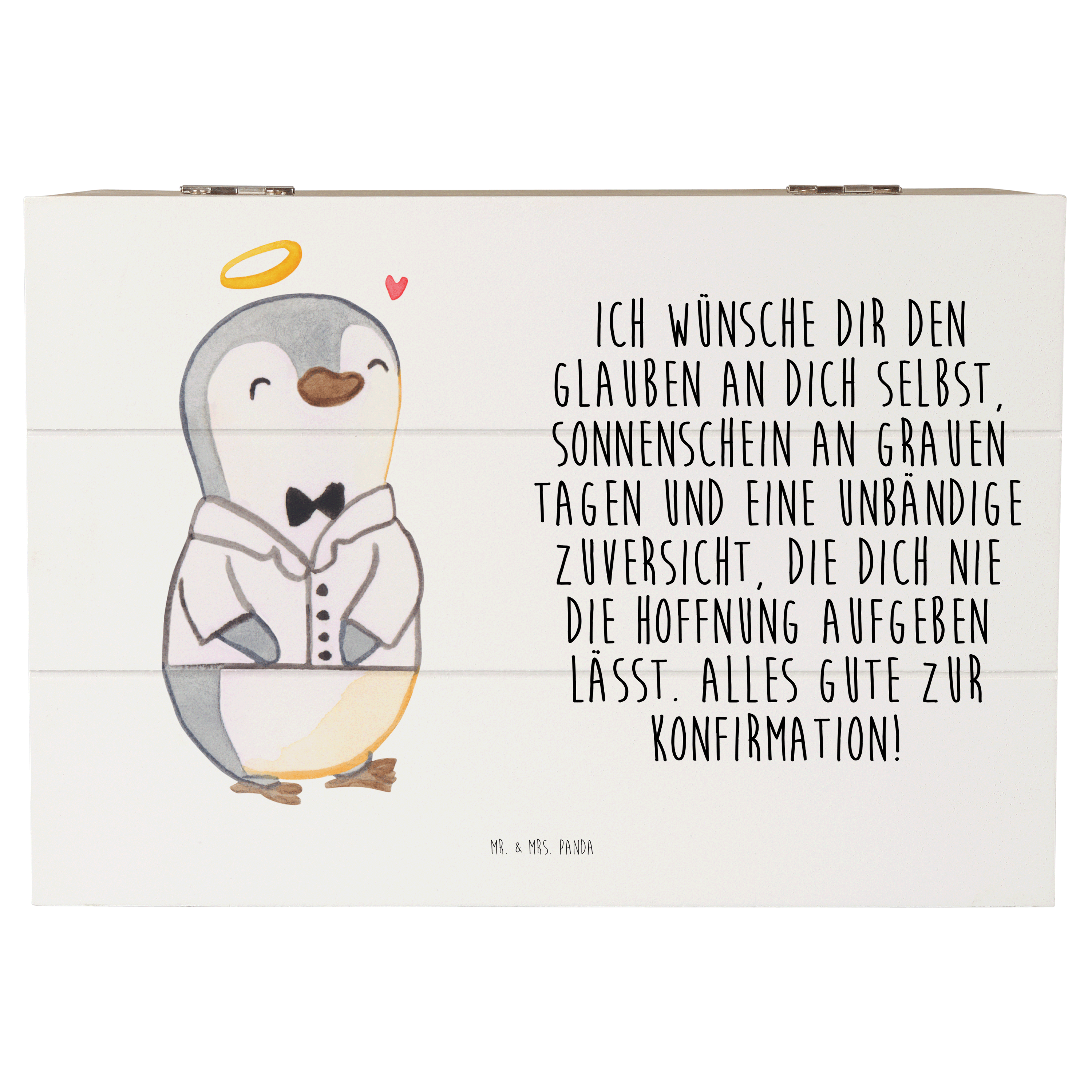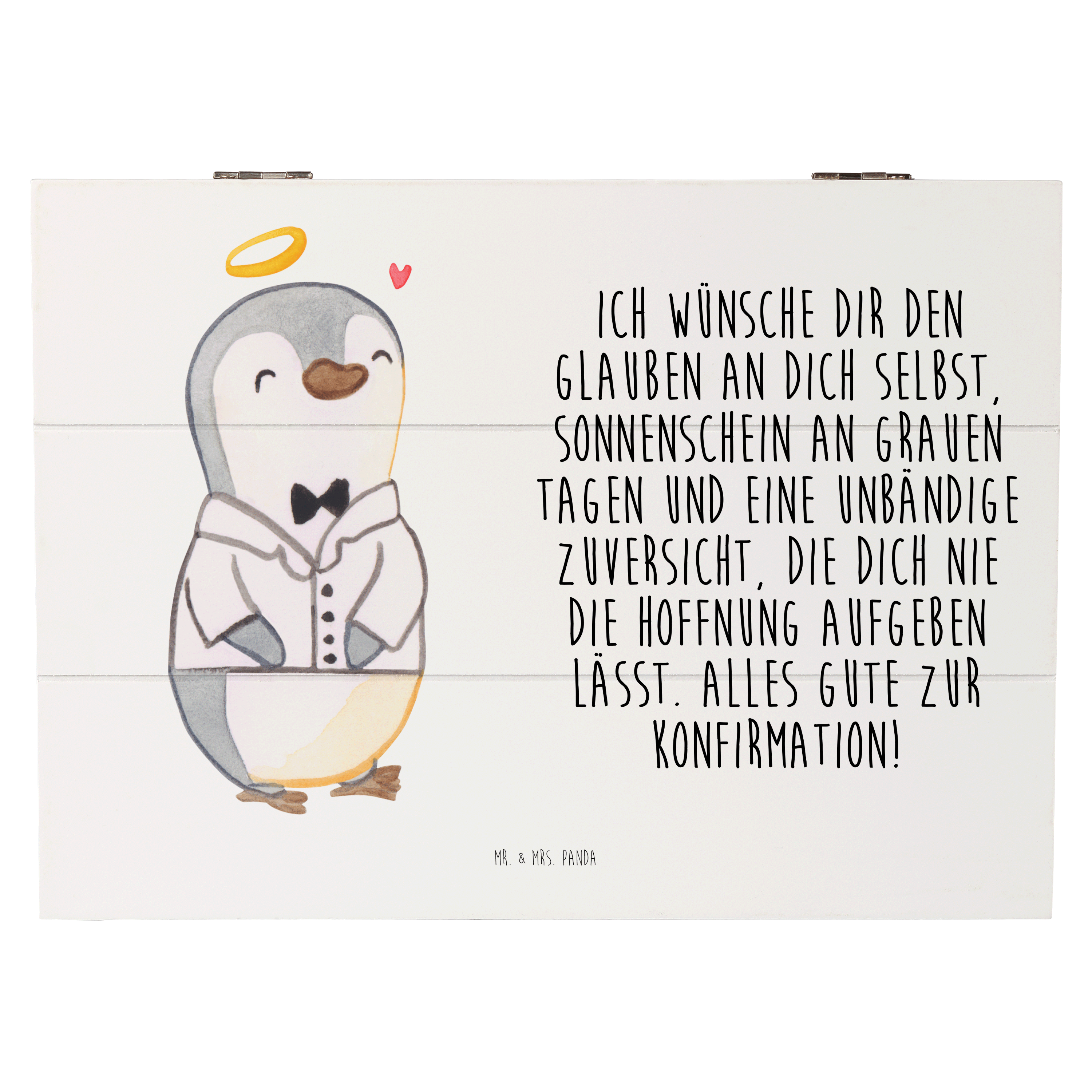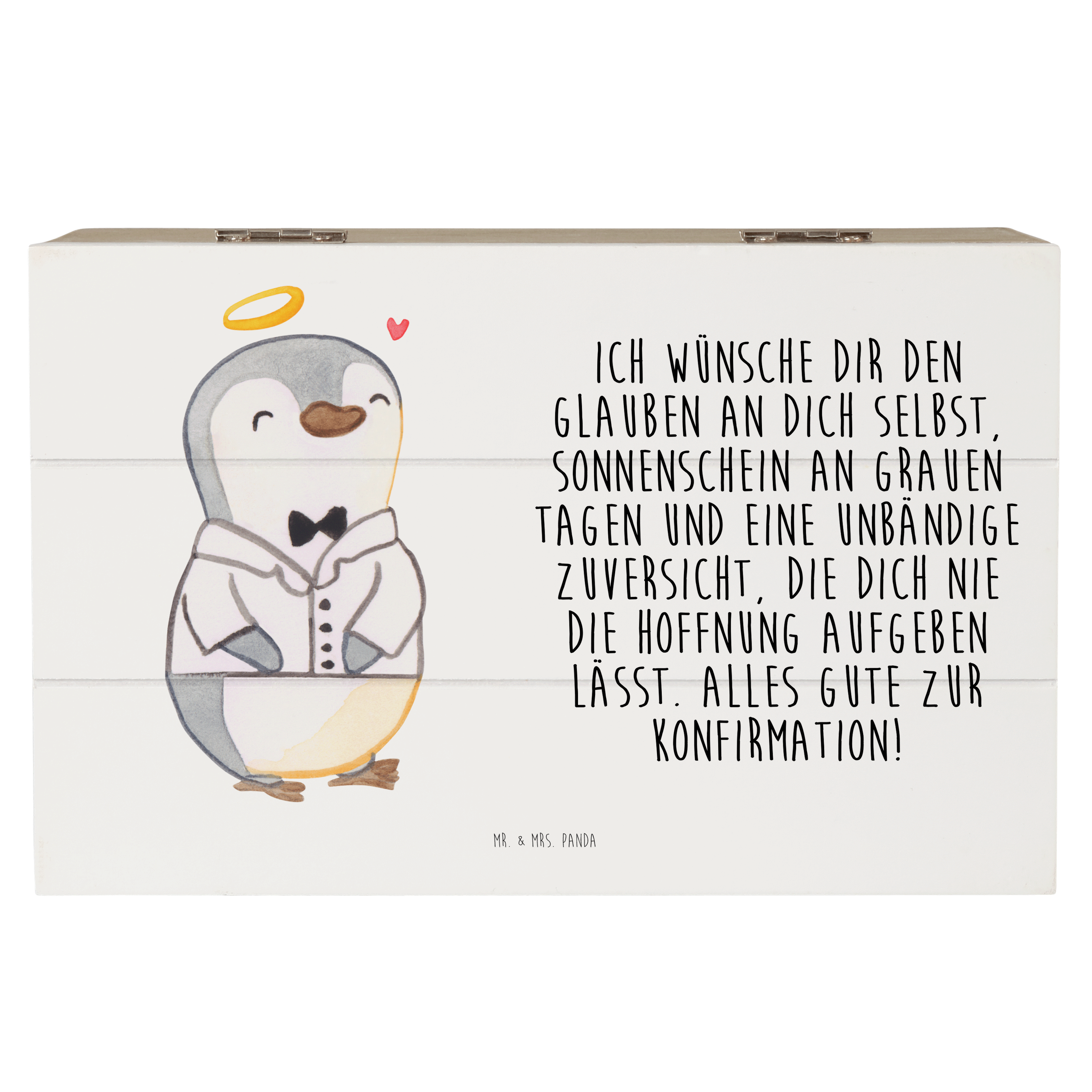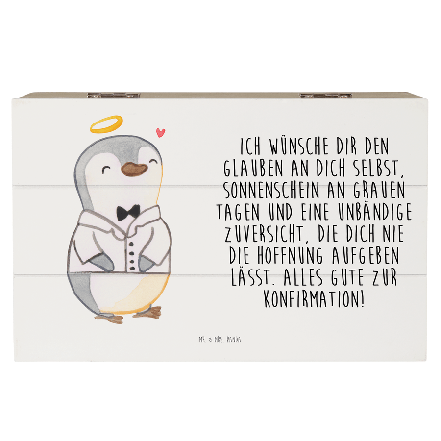 Holzkiste Pinguin Konfirmation Hemd - Weiß - 19 x 12 cm