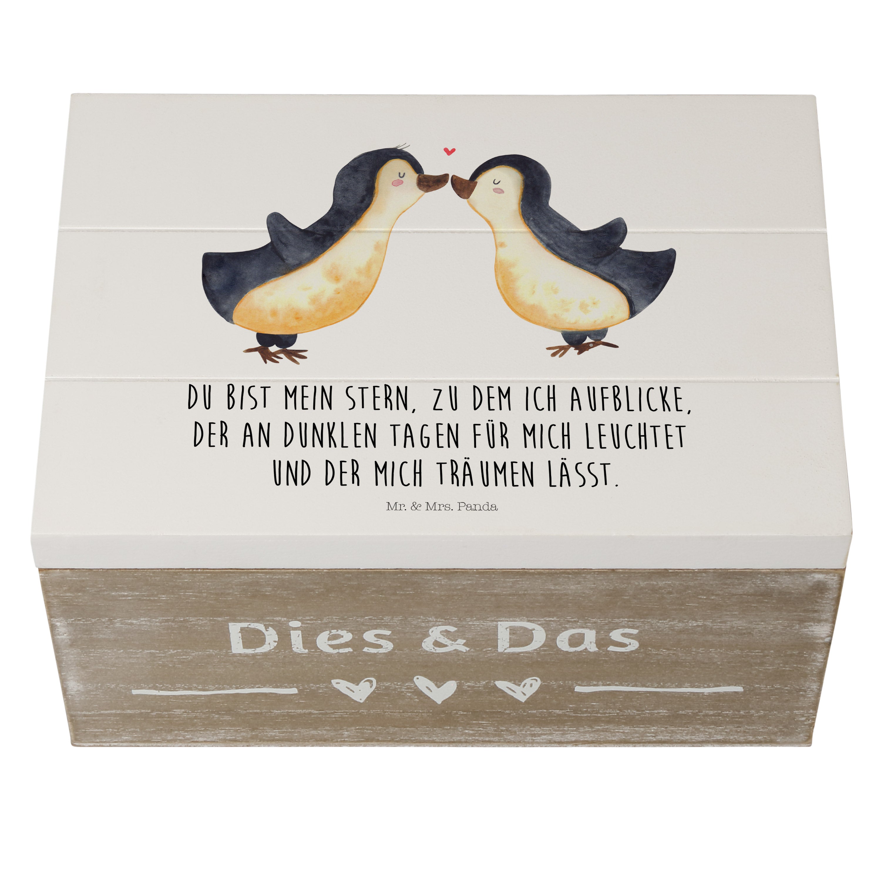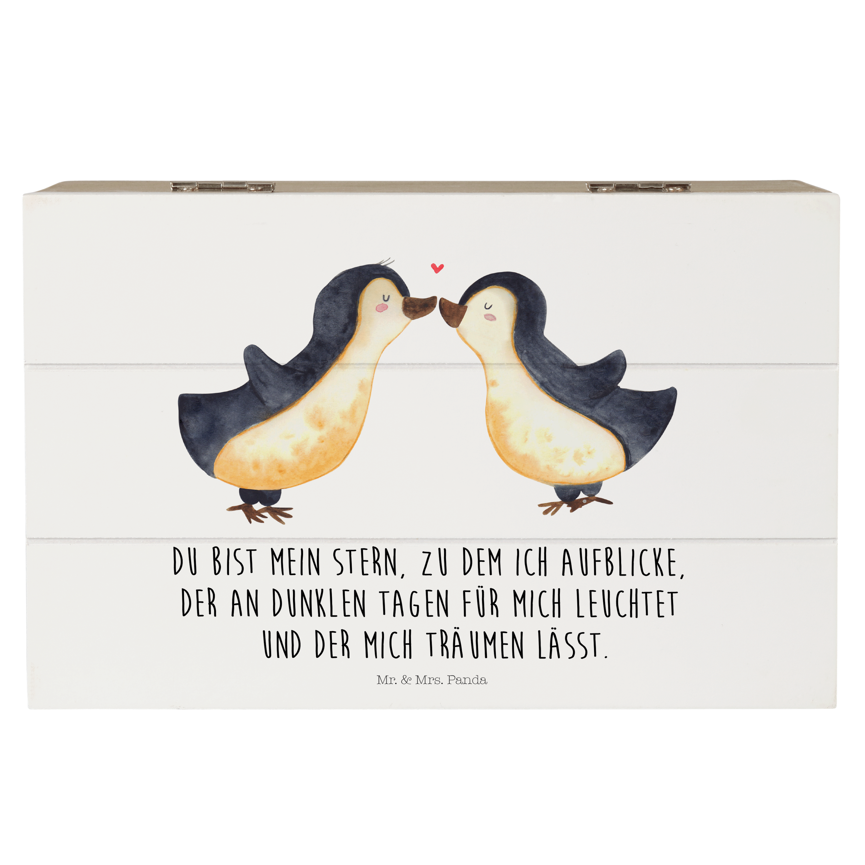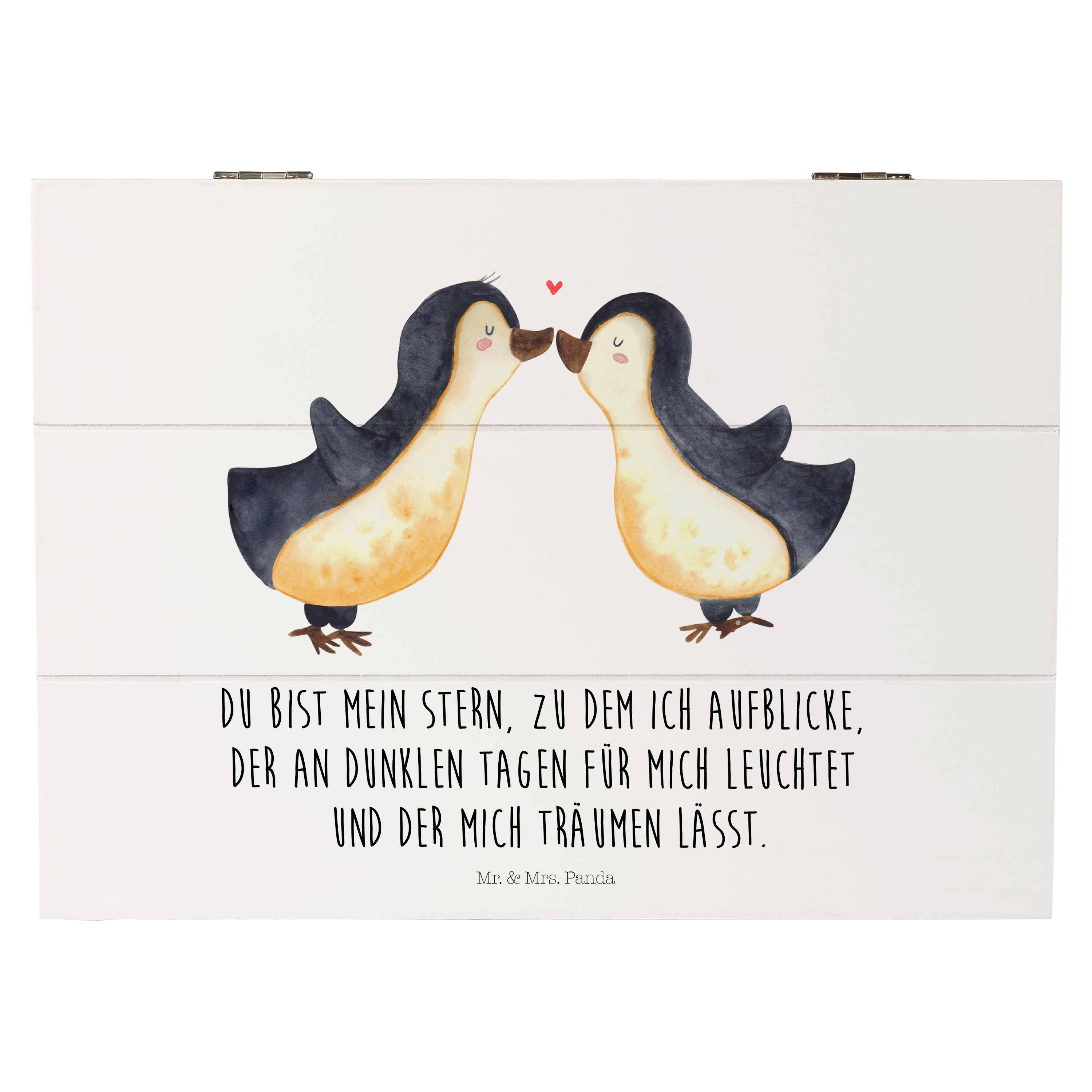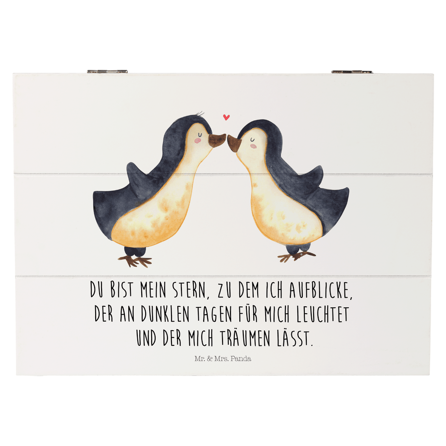 Holzkiste Pinguin Liebe - 25 x 18 cm - mit Spruch - Weiß