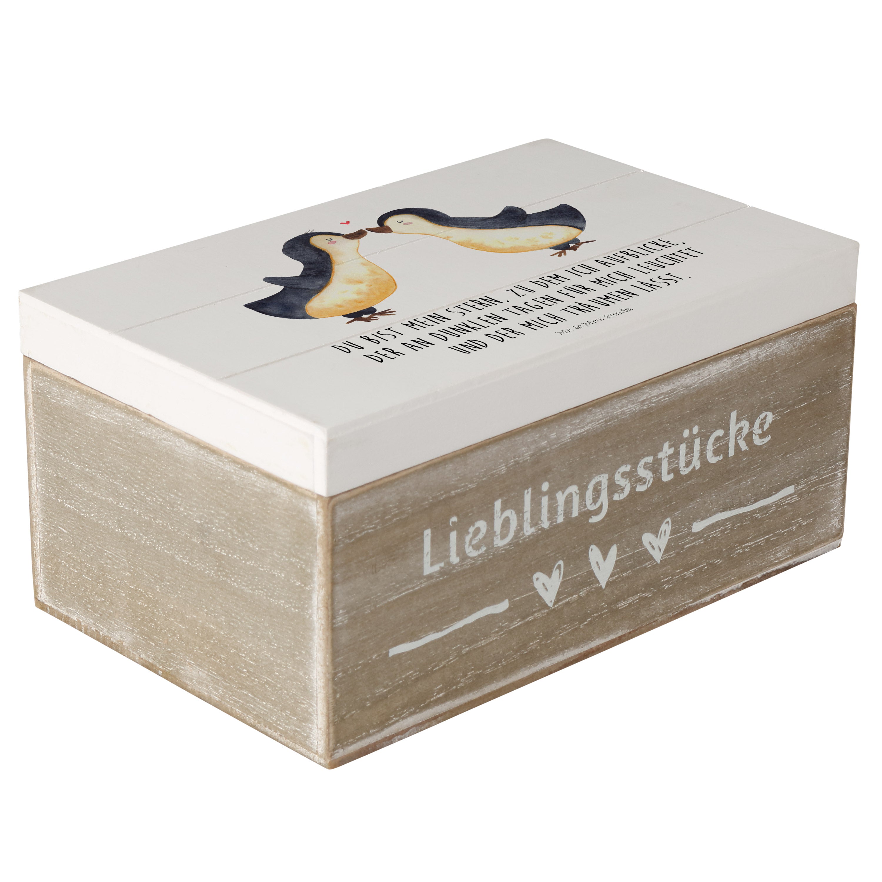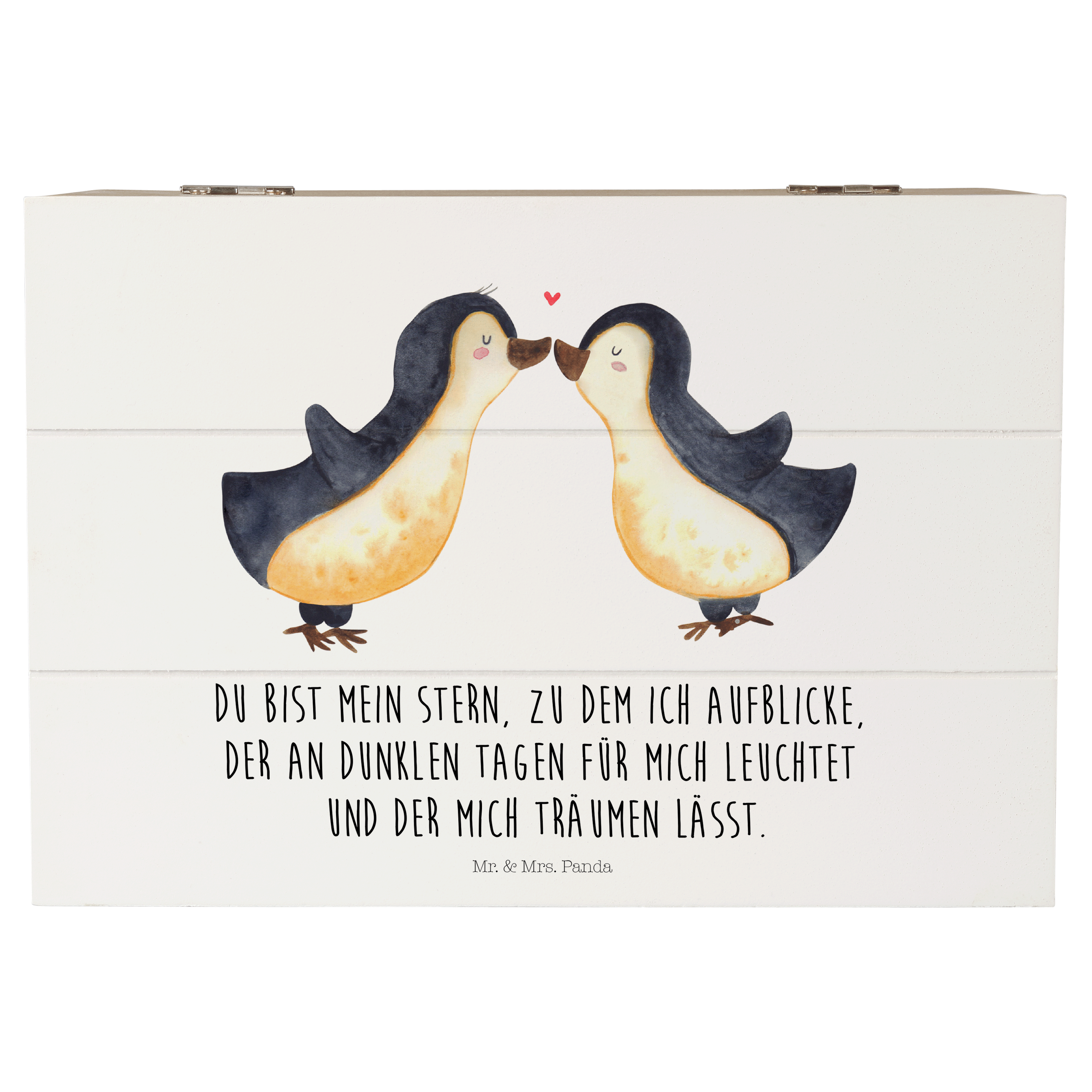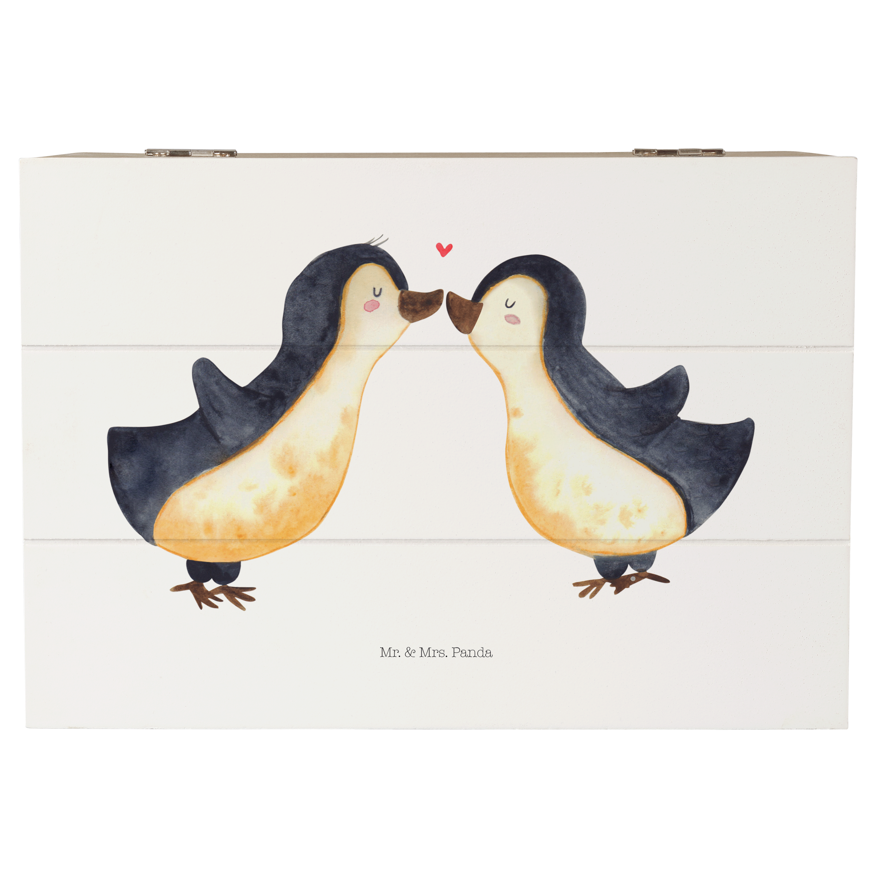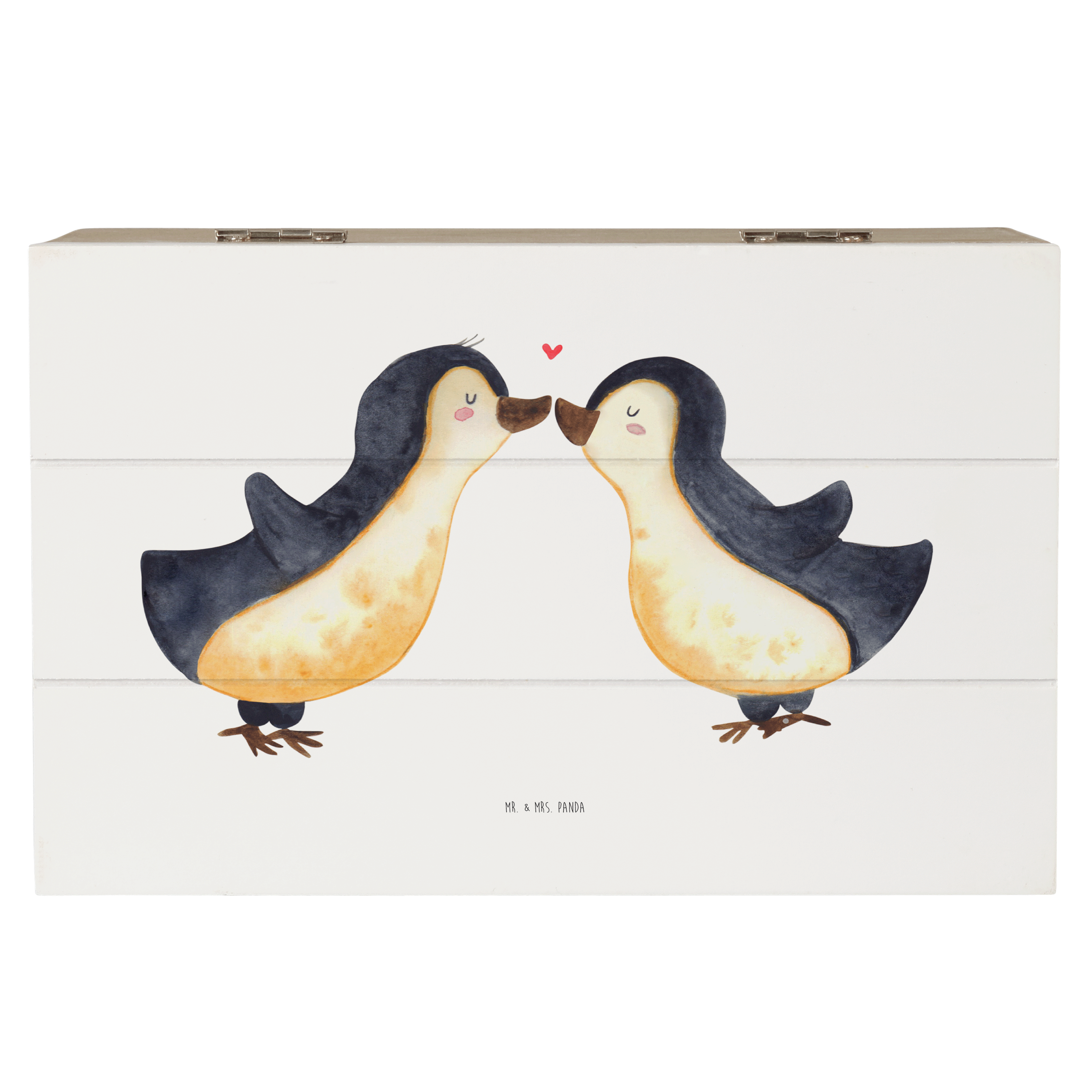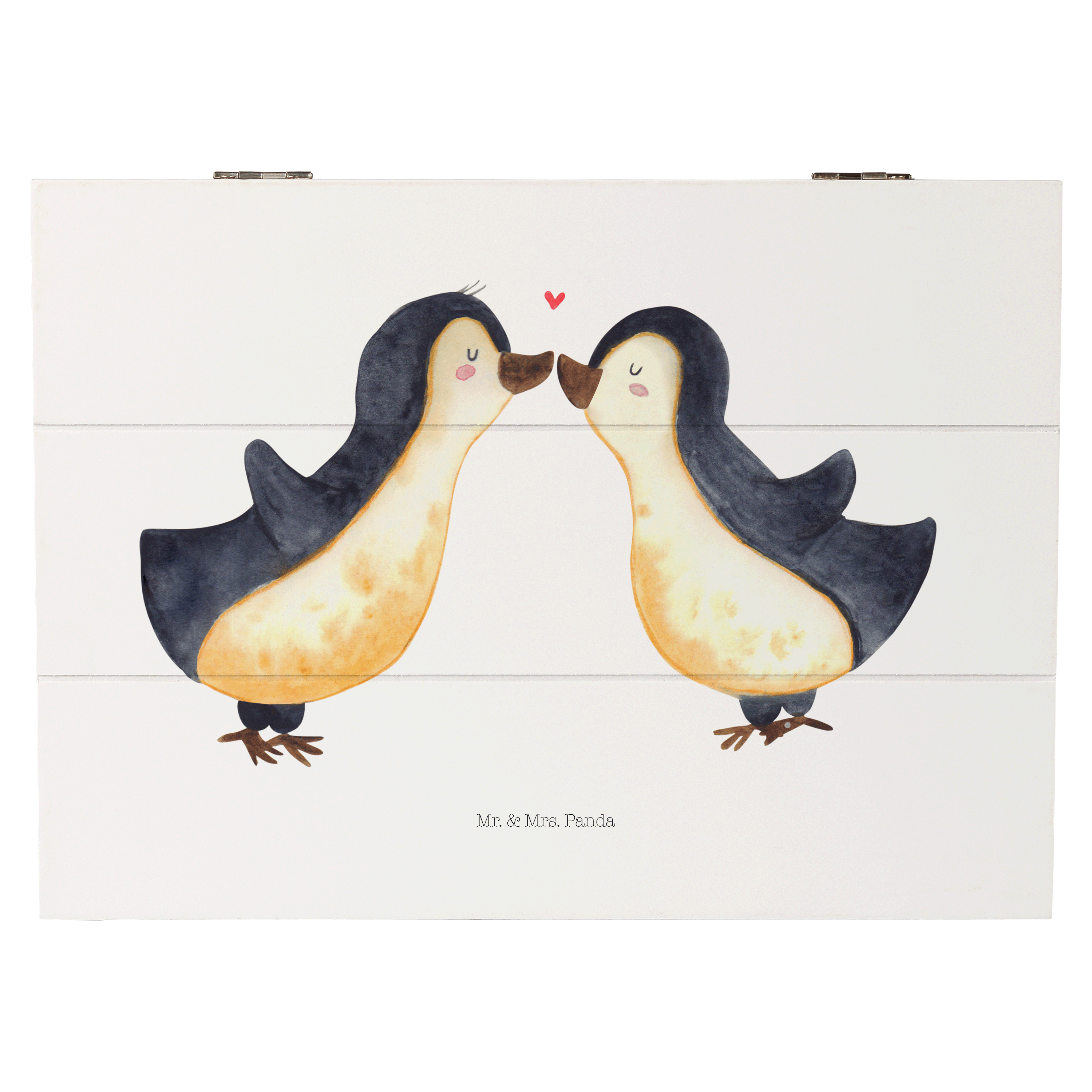 Holzkiste Pinguin Liebe - 25 x 18 cm - mit Spruch - Weiß