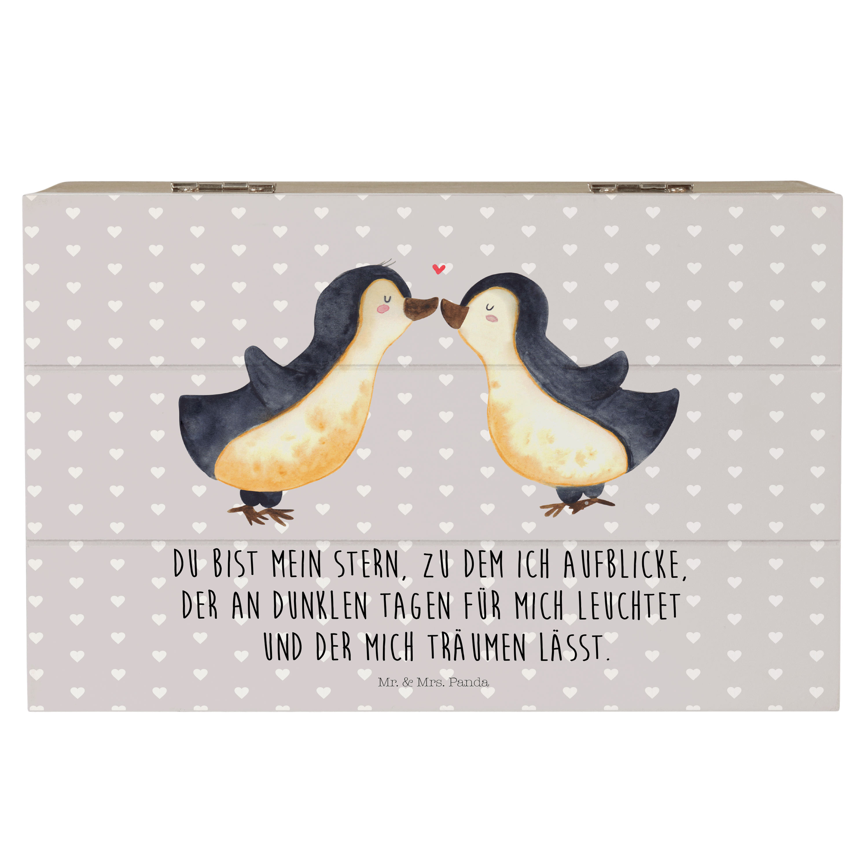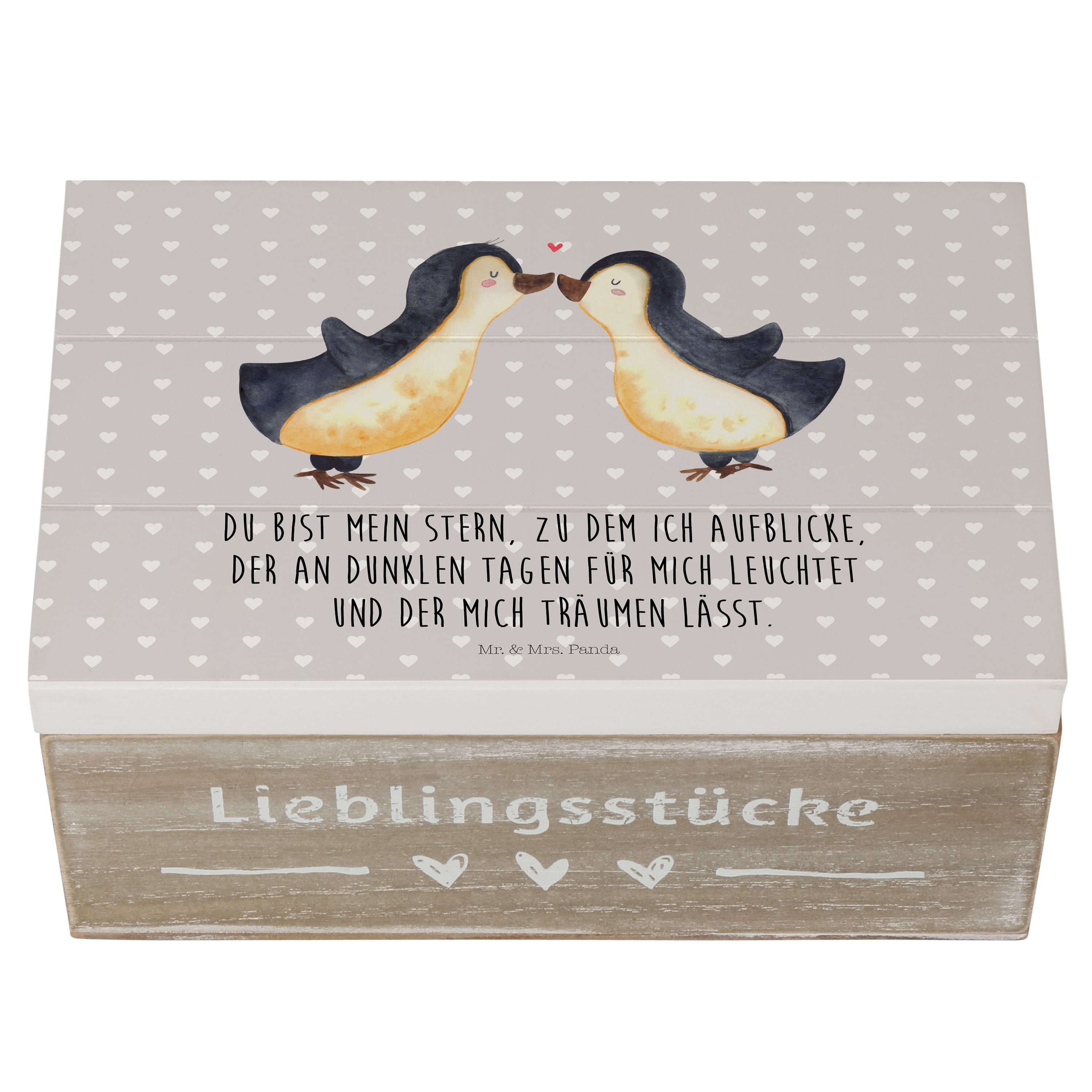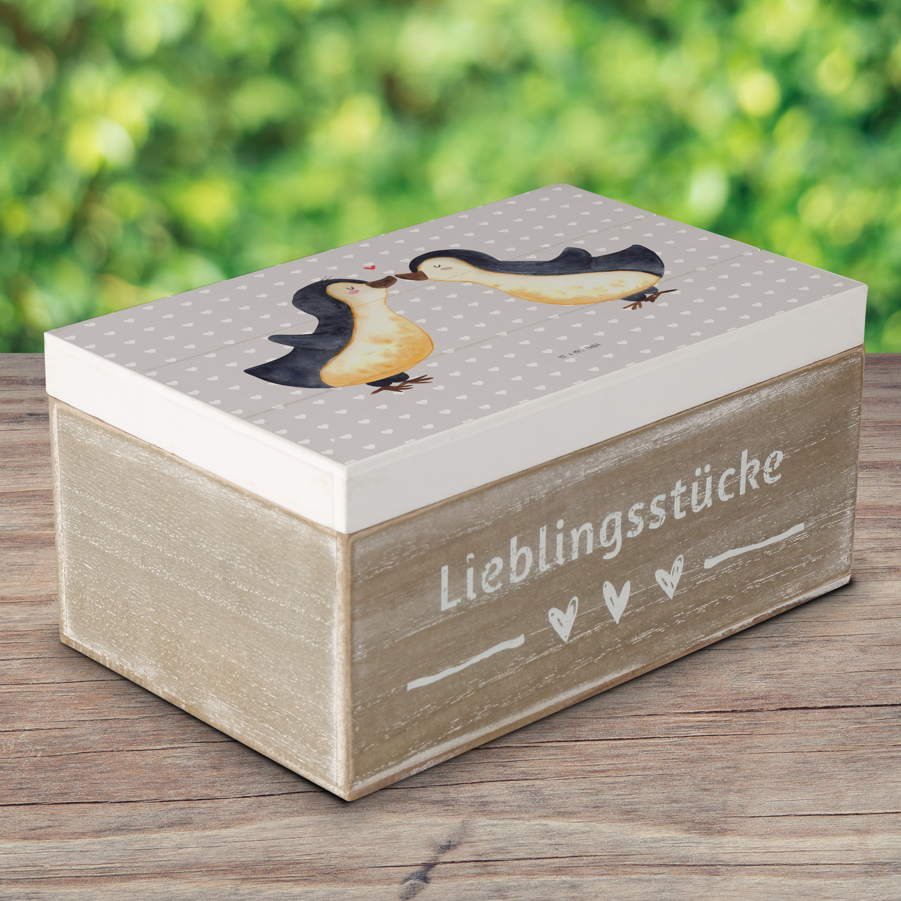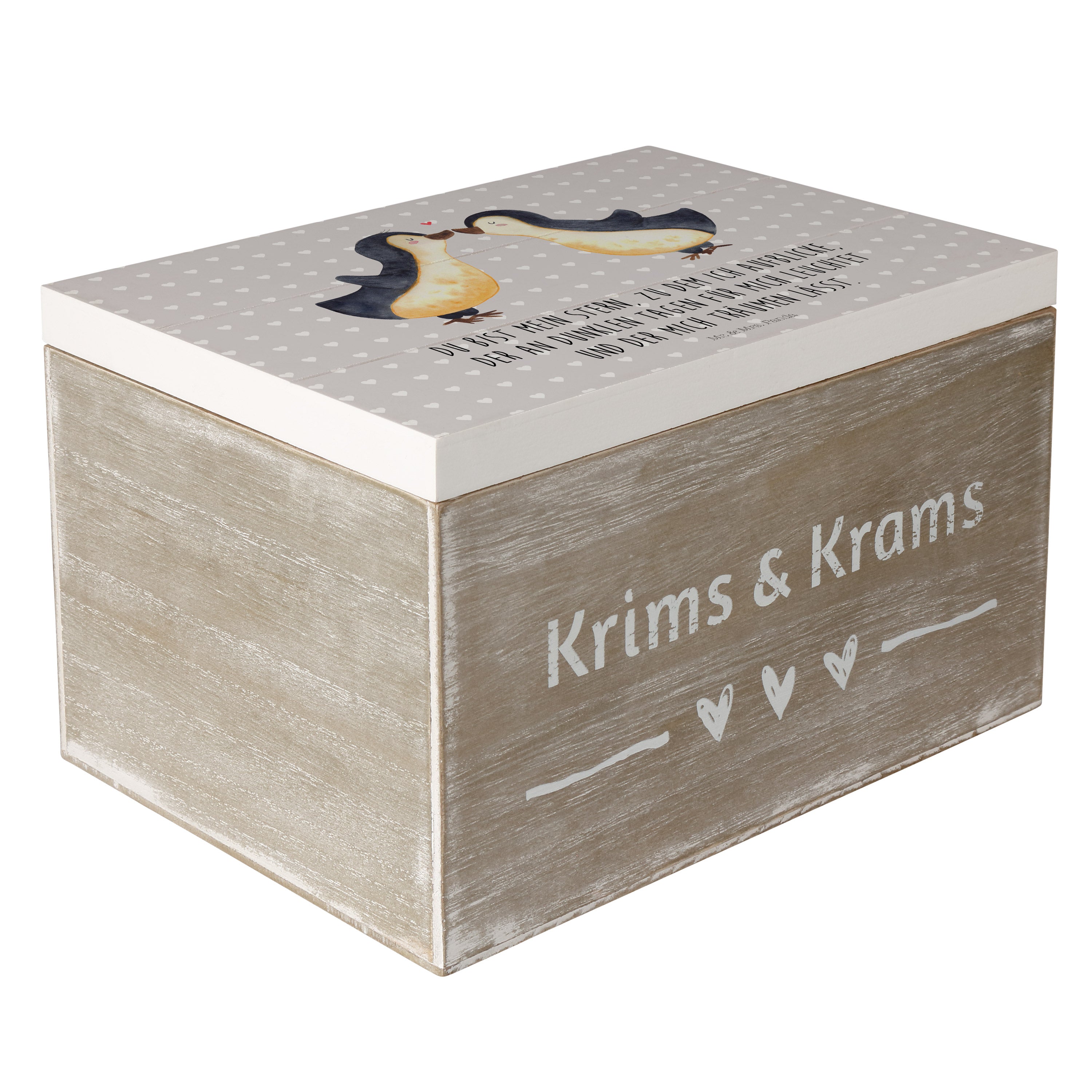 Holzkiste Pinguin Liebe - 25 x 18 cm - mit Spruch - Weiß