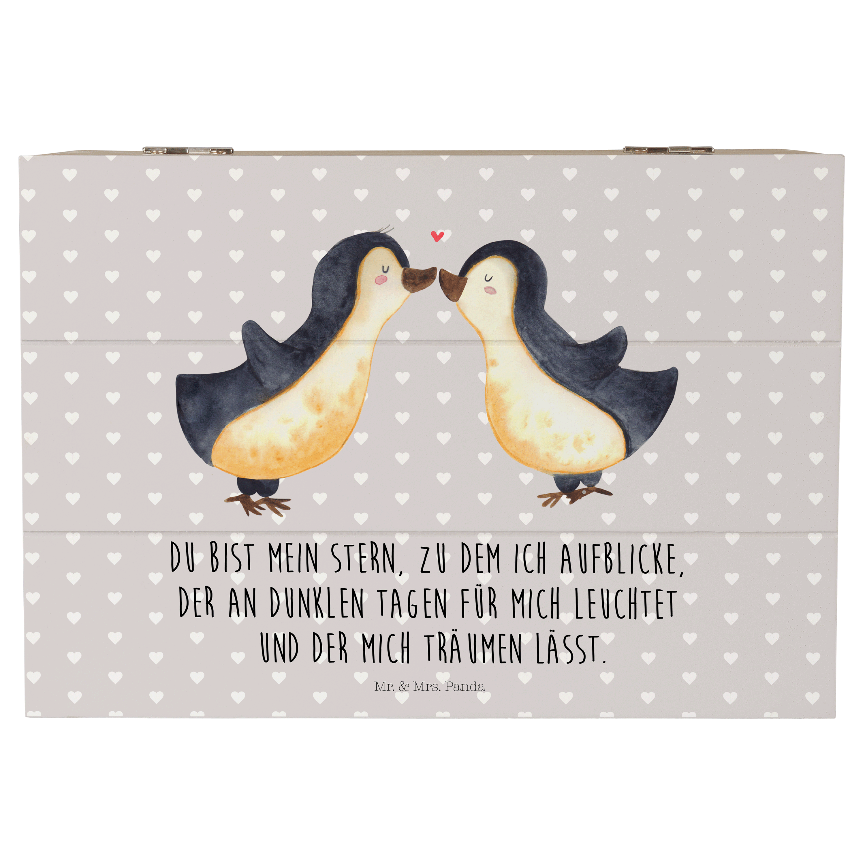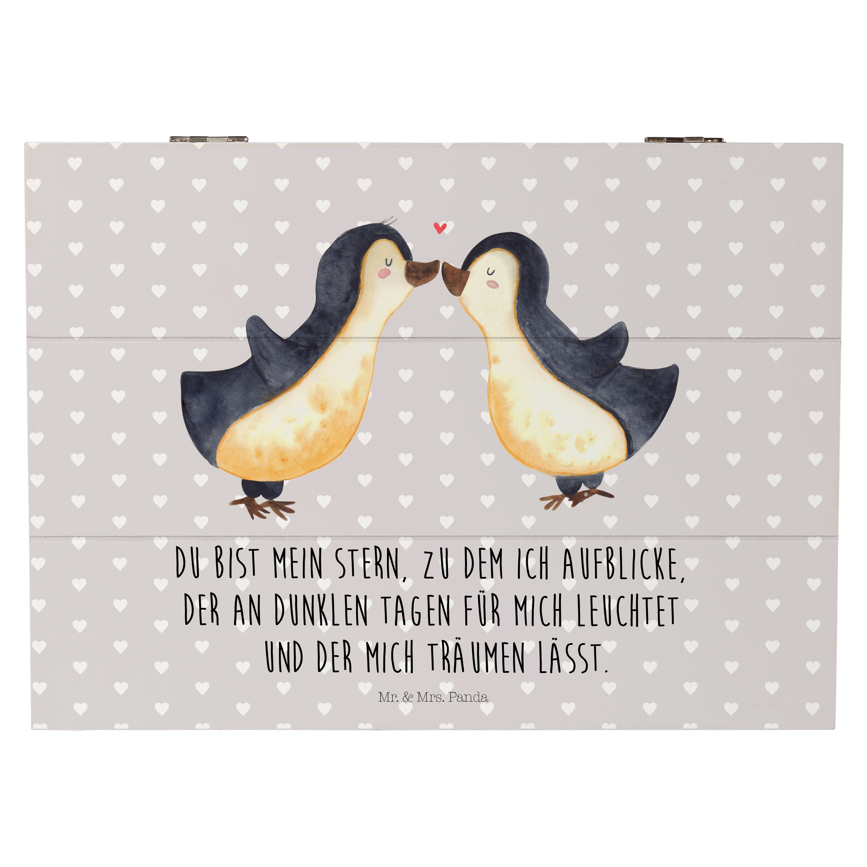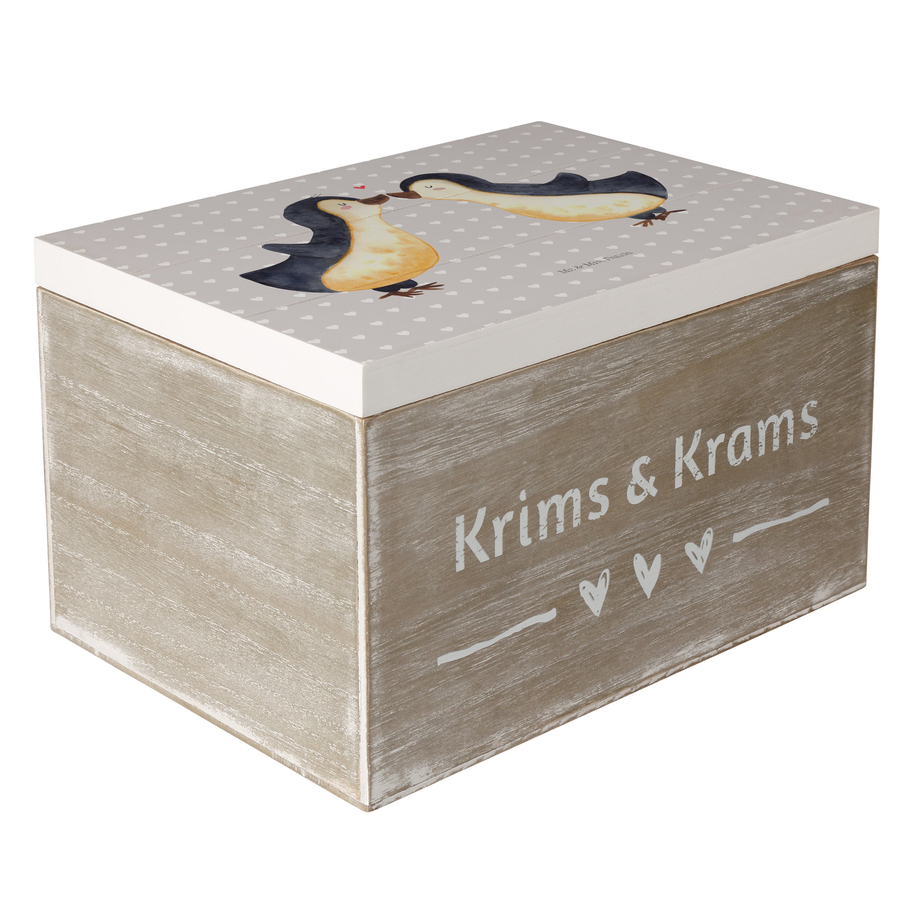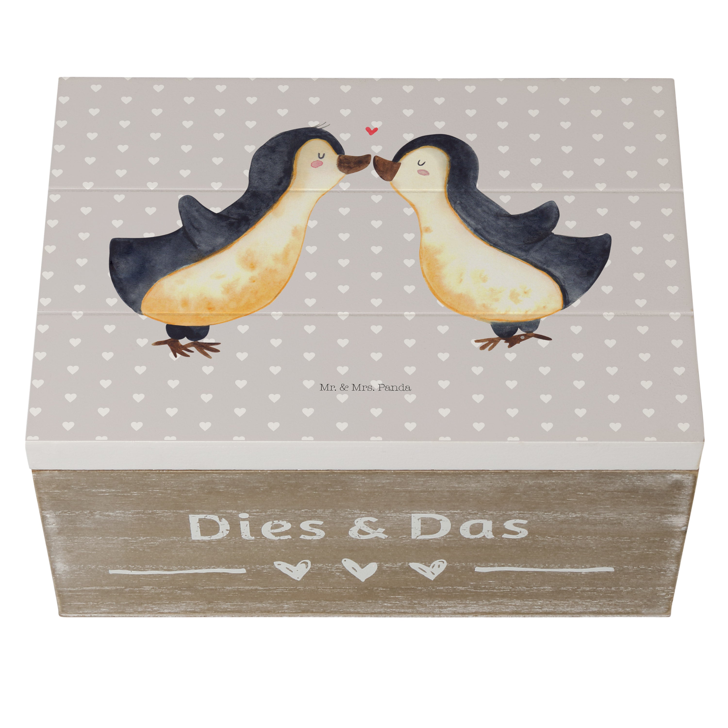 Holzkiste Pinguin Liebe - 25 x 18 cm - mit Spruch - Weiß