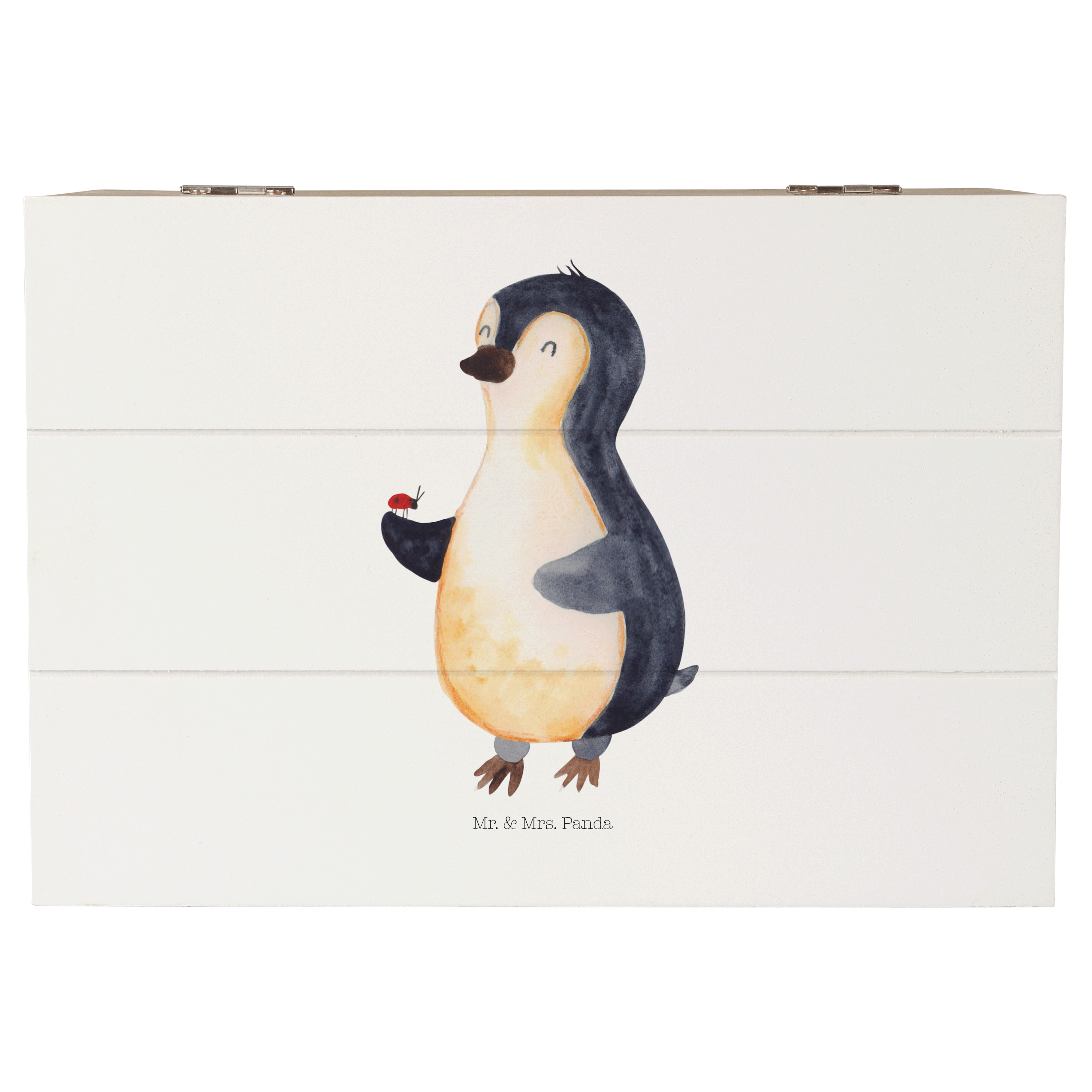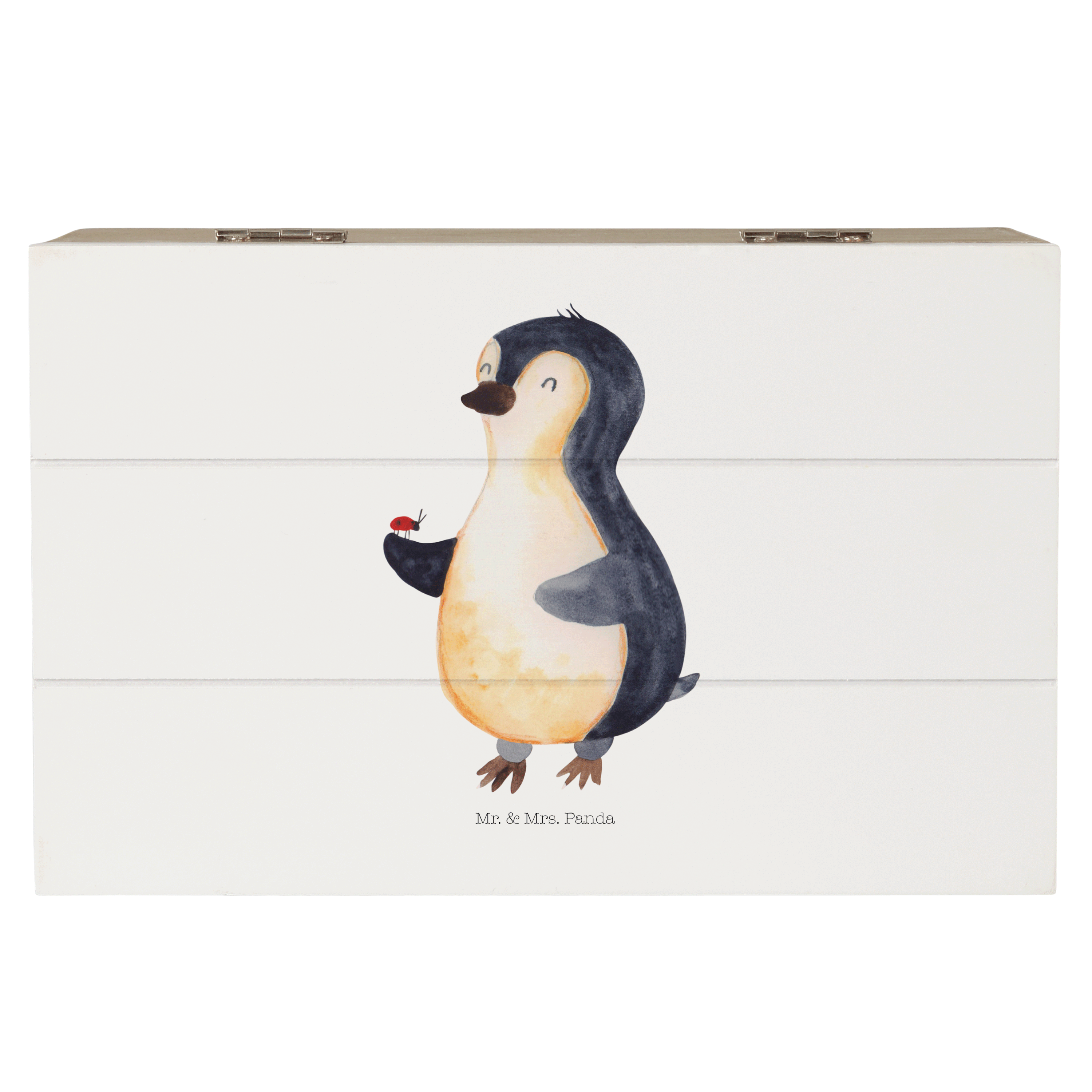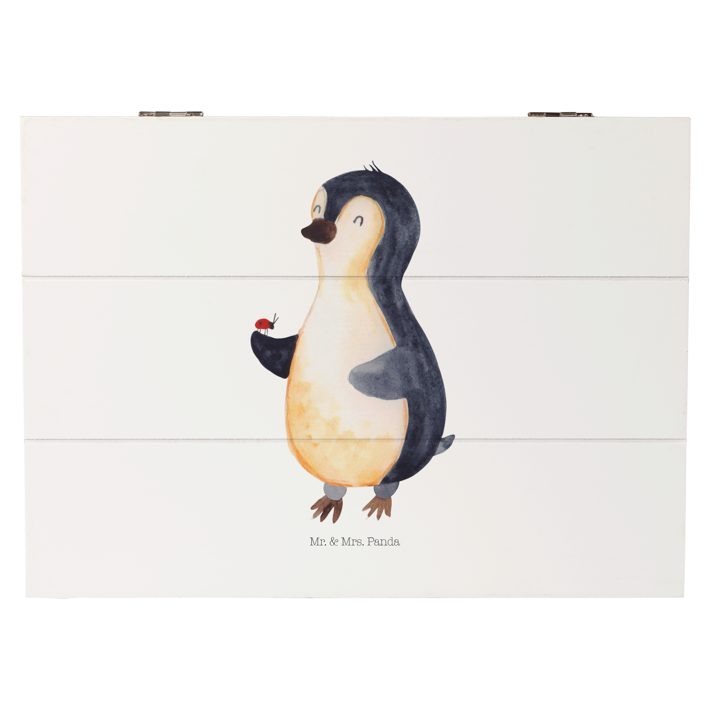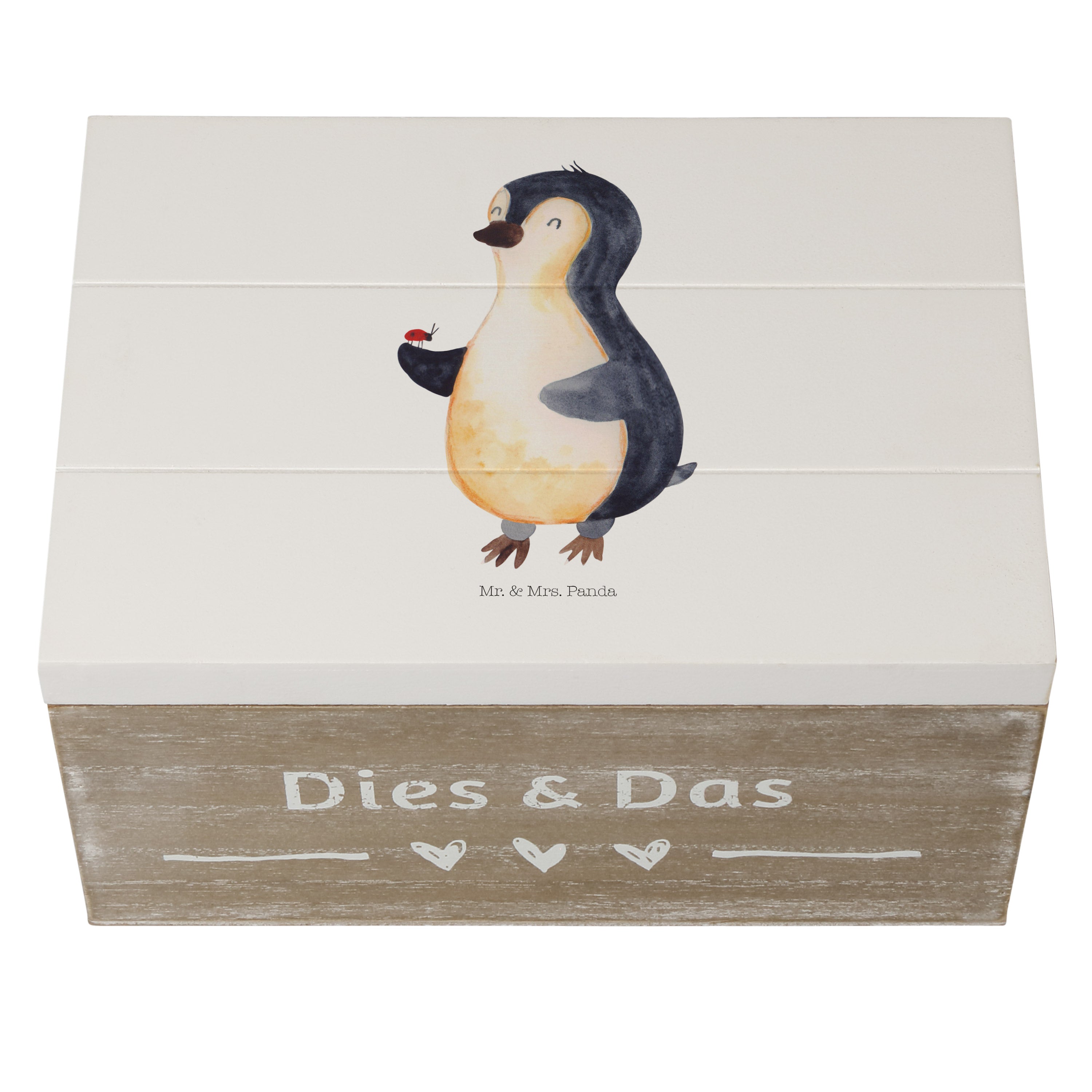 Holzkiste Pinguin Marienkäfer - 25 x 18 cm - mit Spruch - Weiß