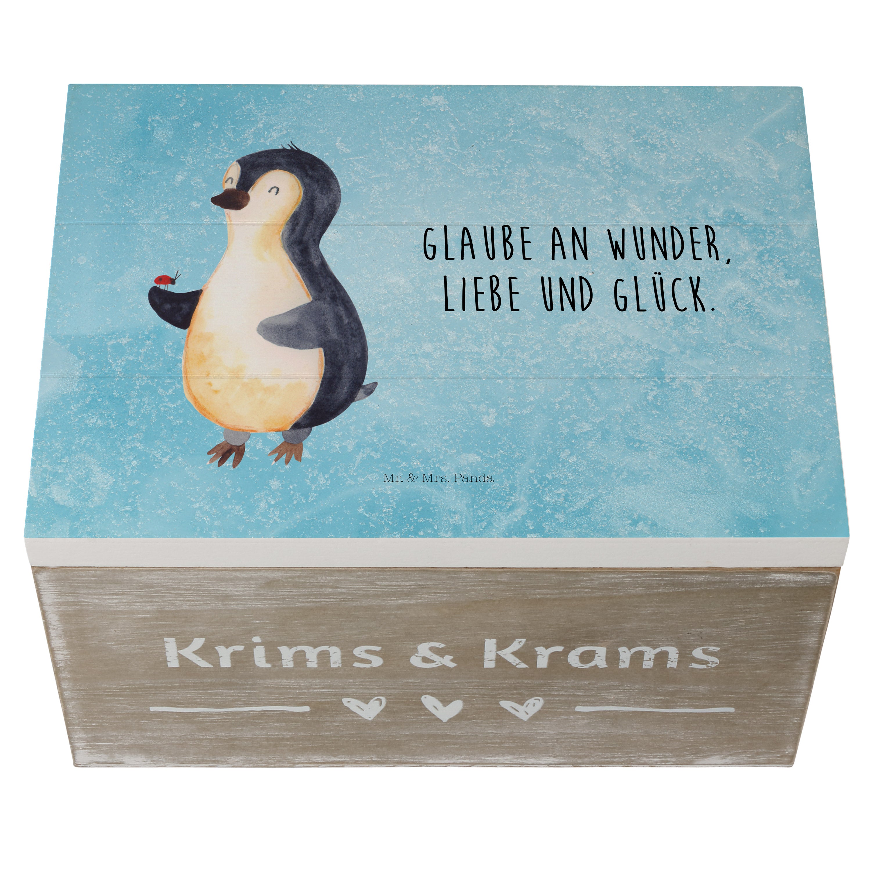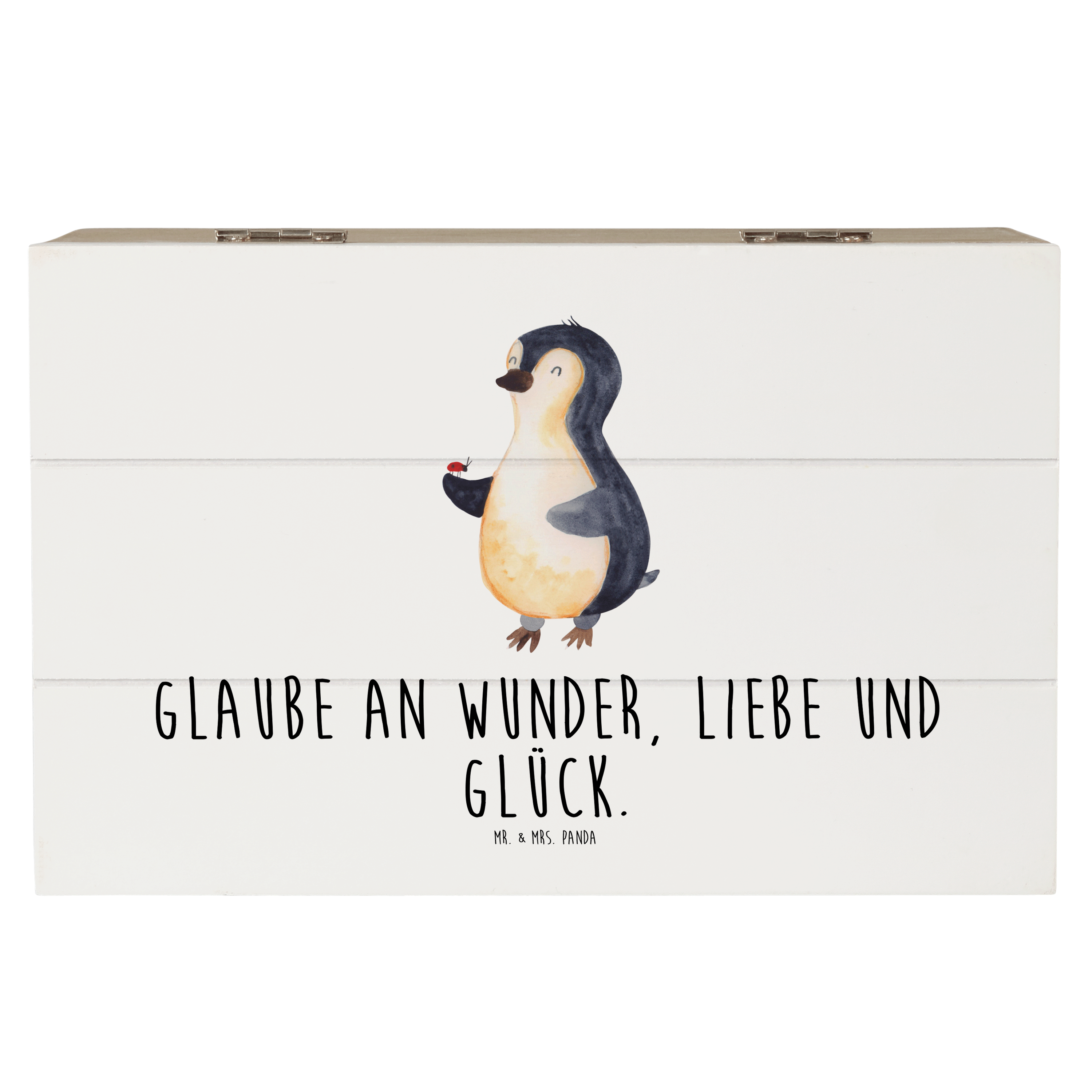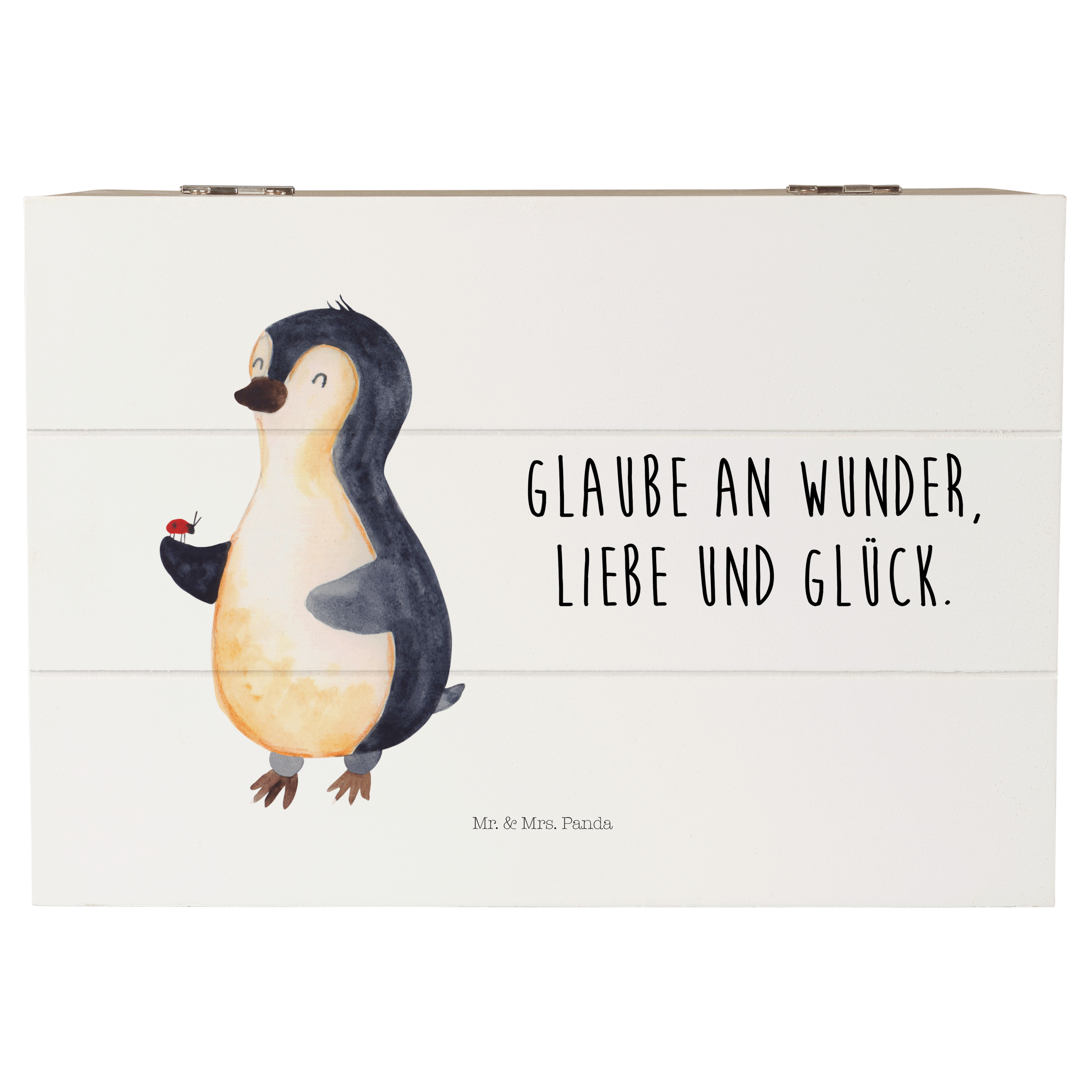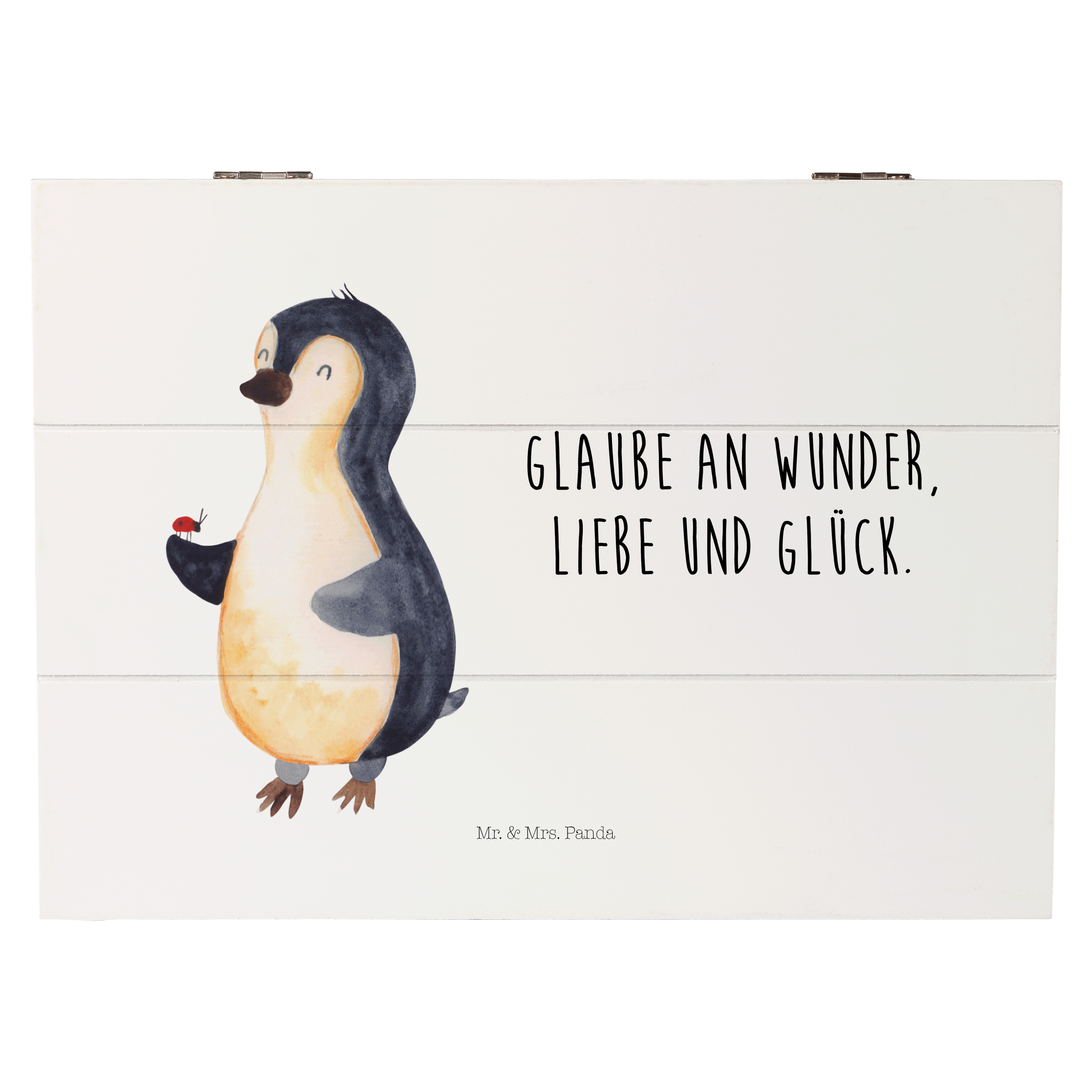 Holzkiste Pinguin Marienkäfer - 25 x 18 cm - mit Spruch - Weiß