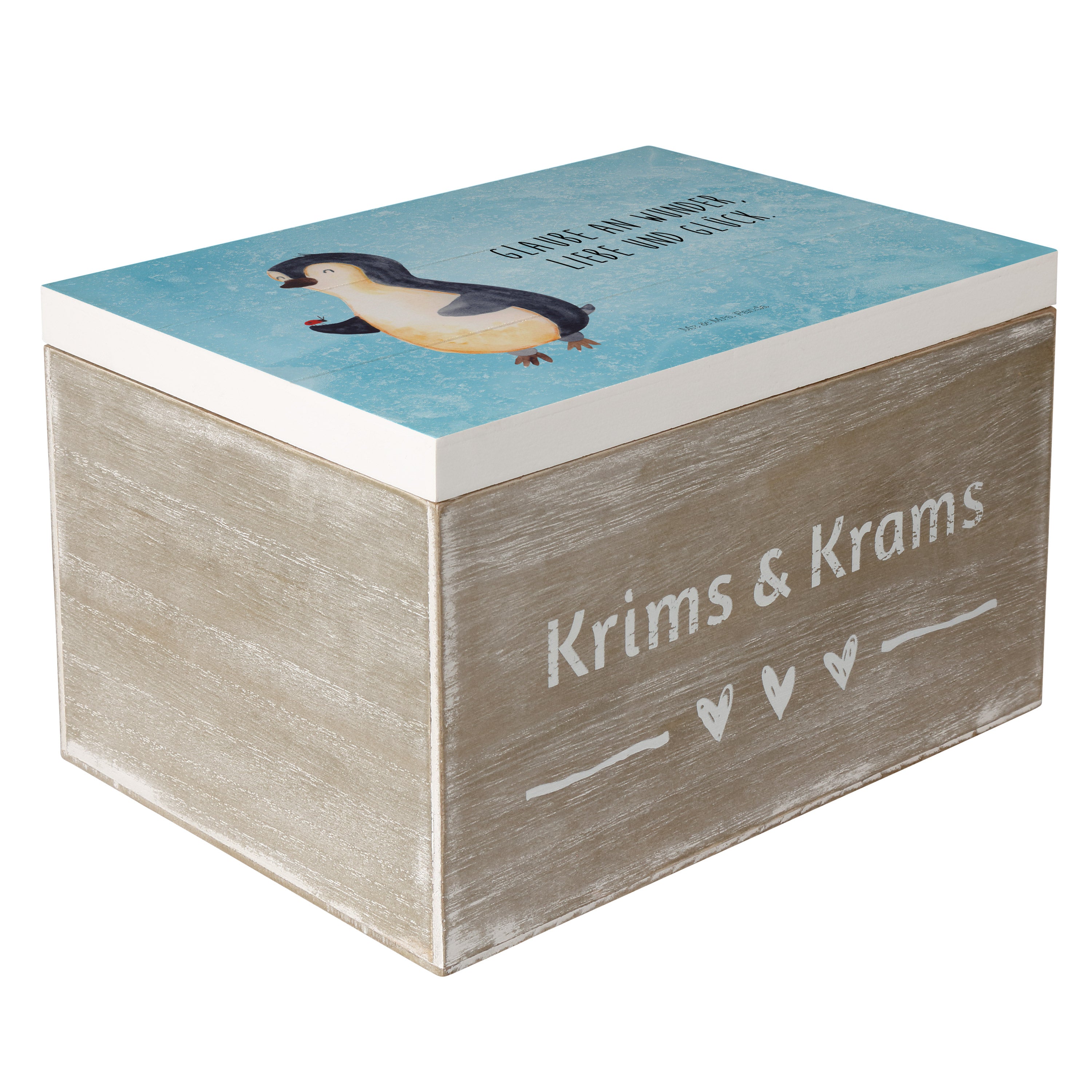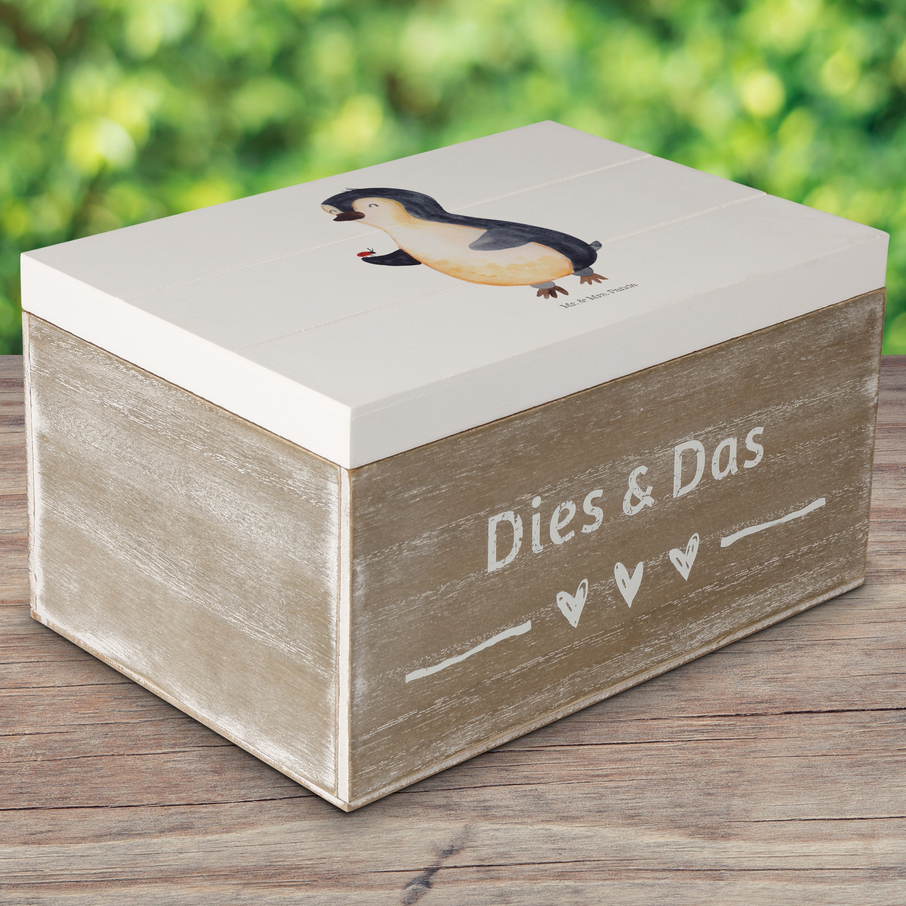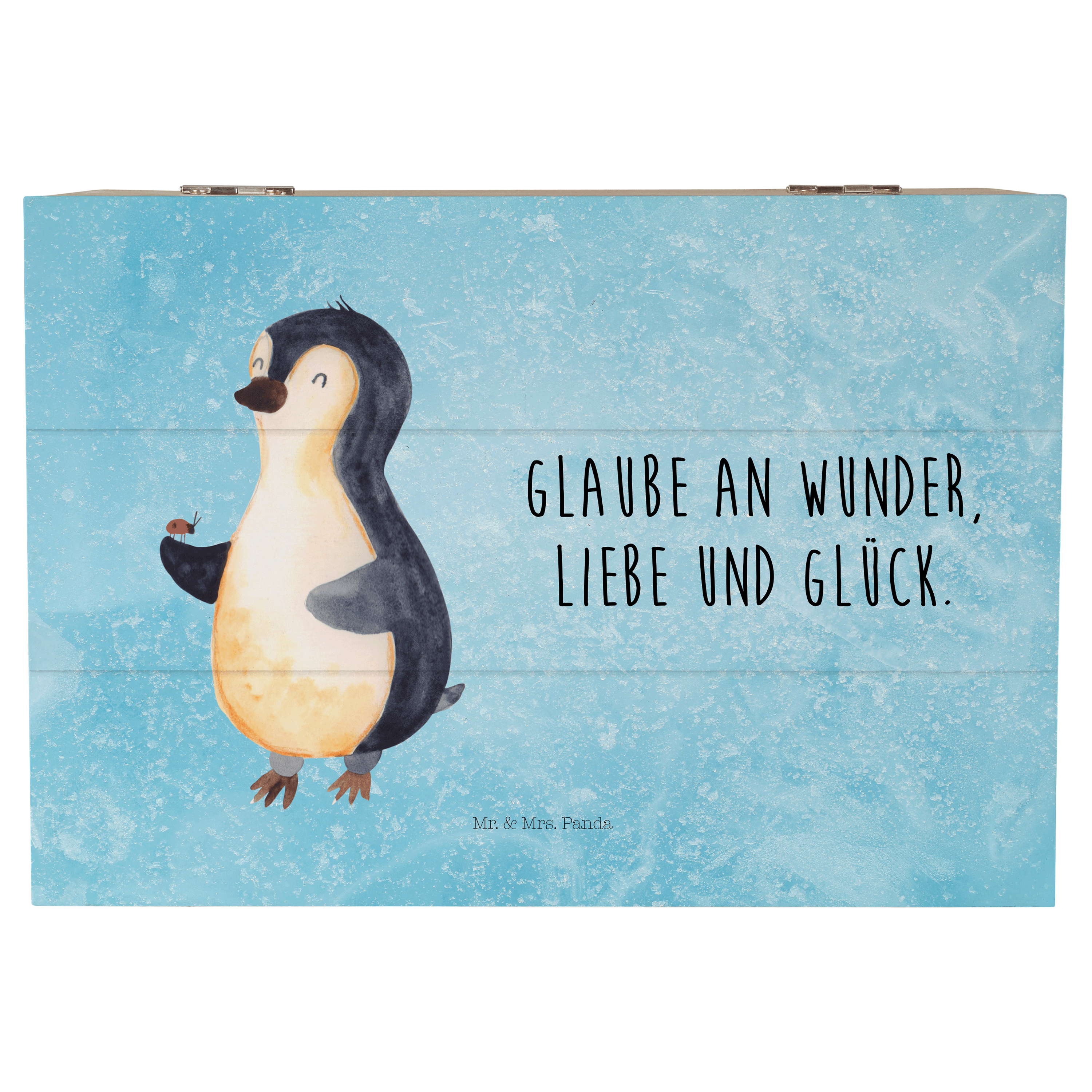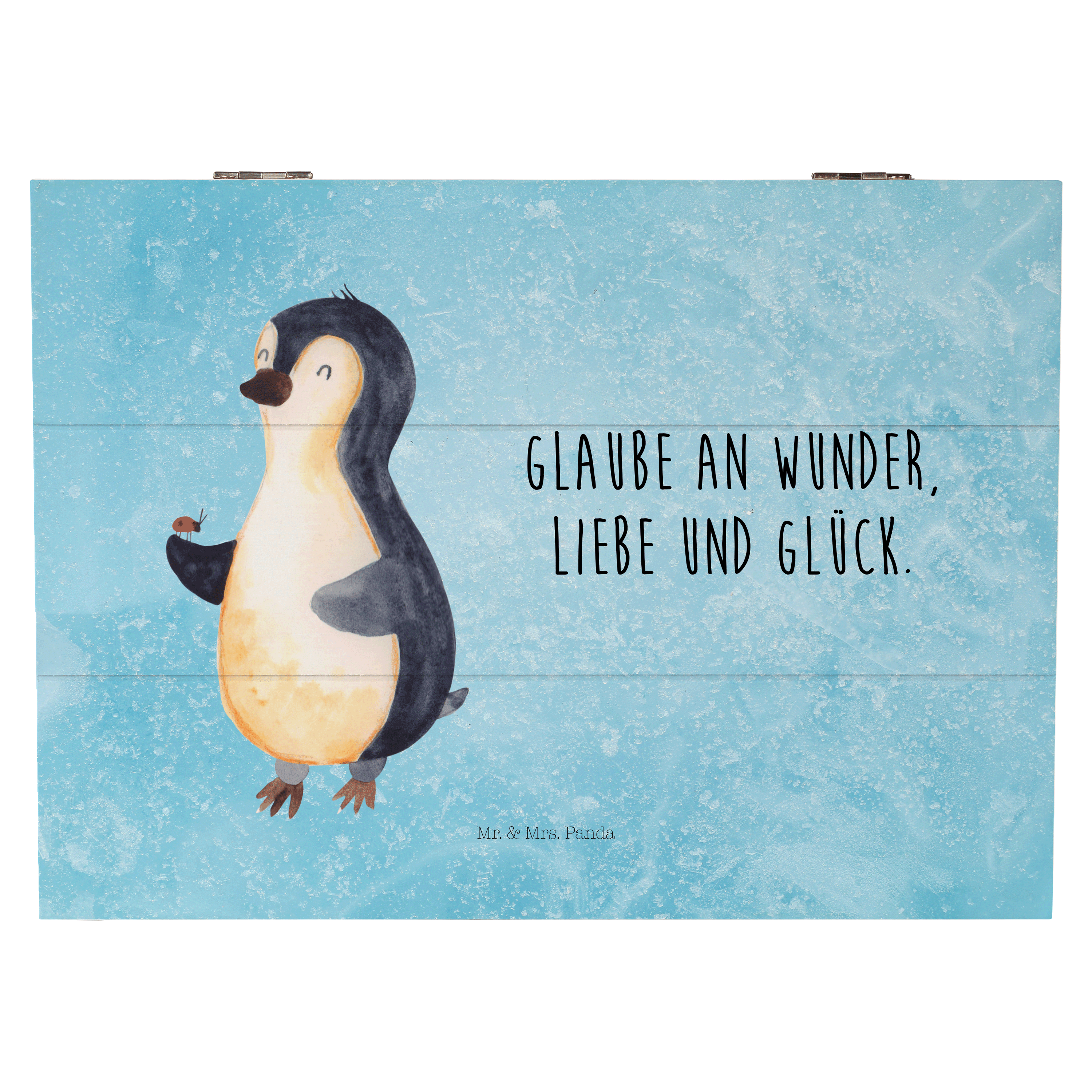Holzkiste Pinguin Marienkäfer - 25 x 18 cm - mit Spruch - Weiß