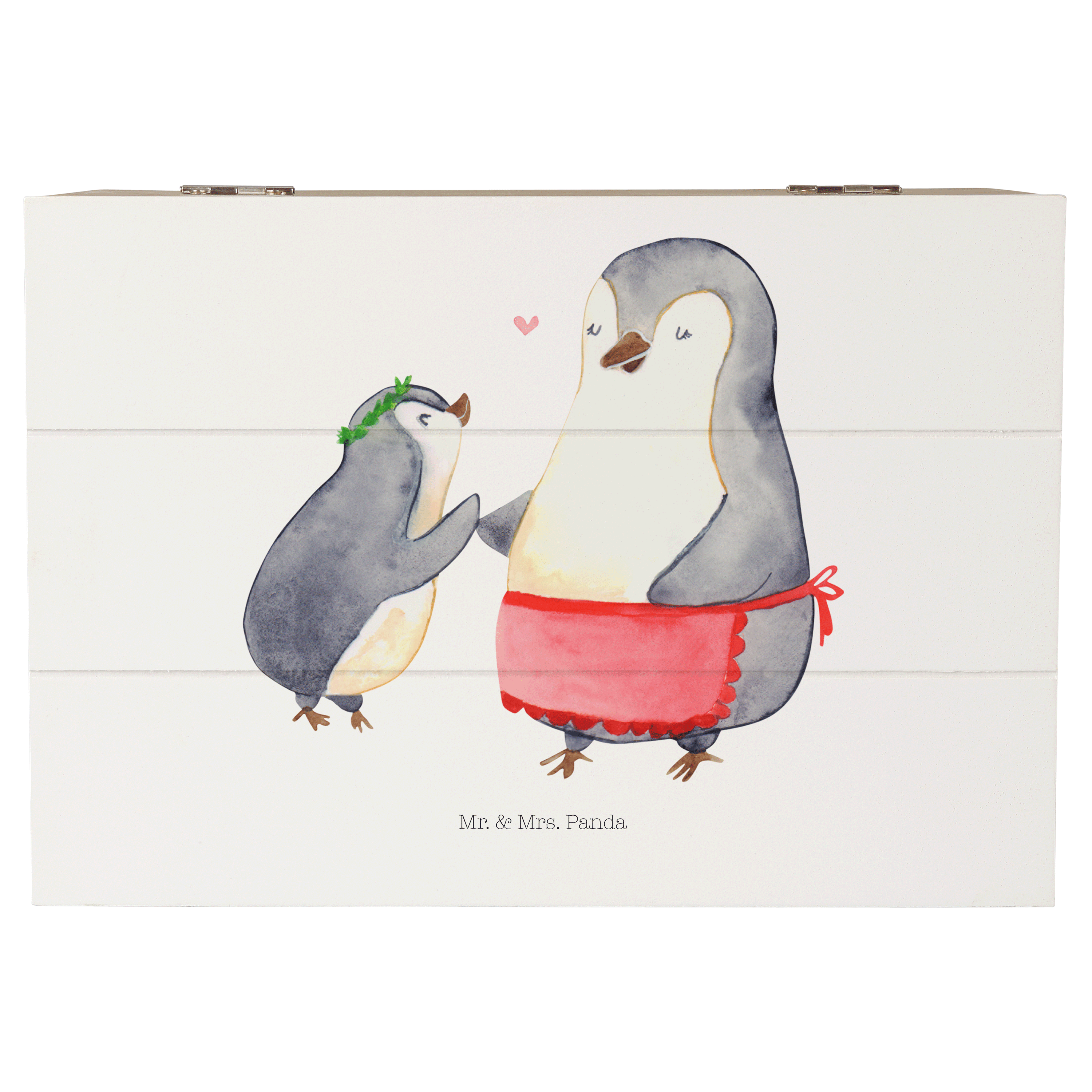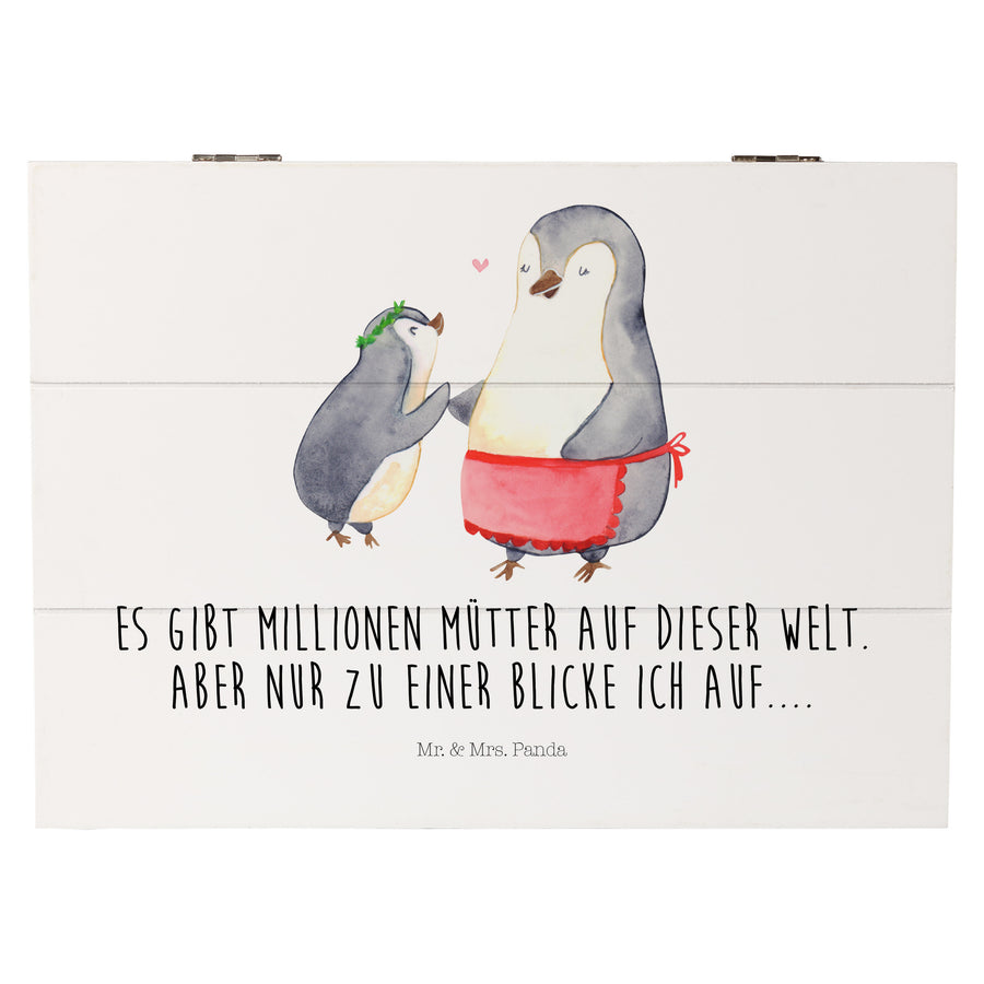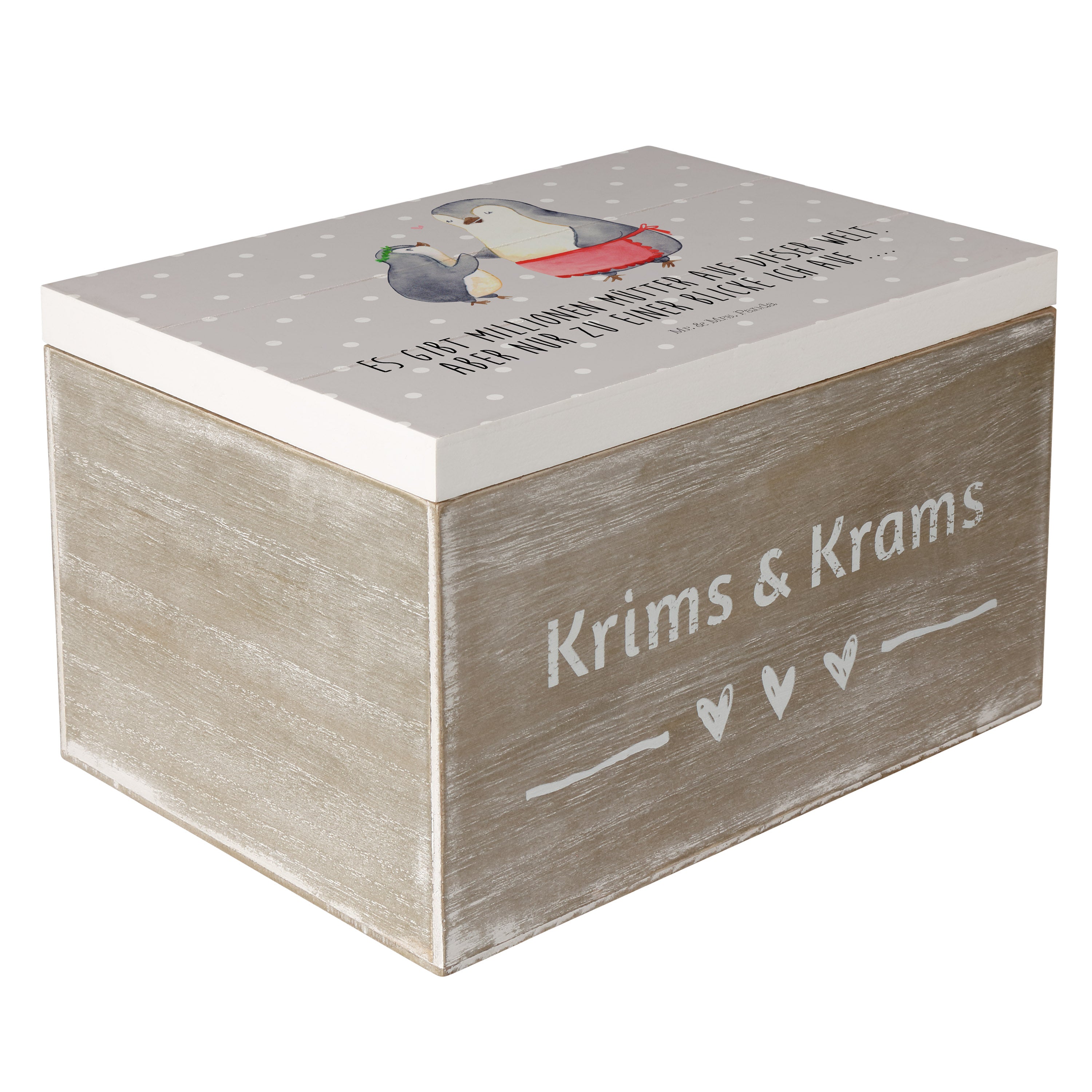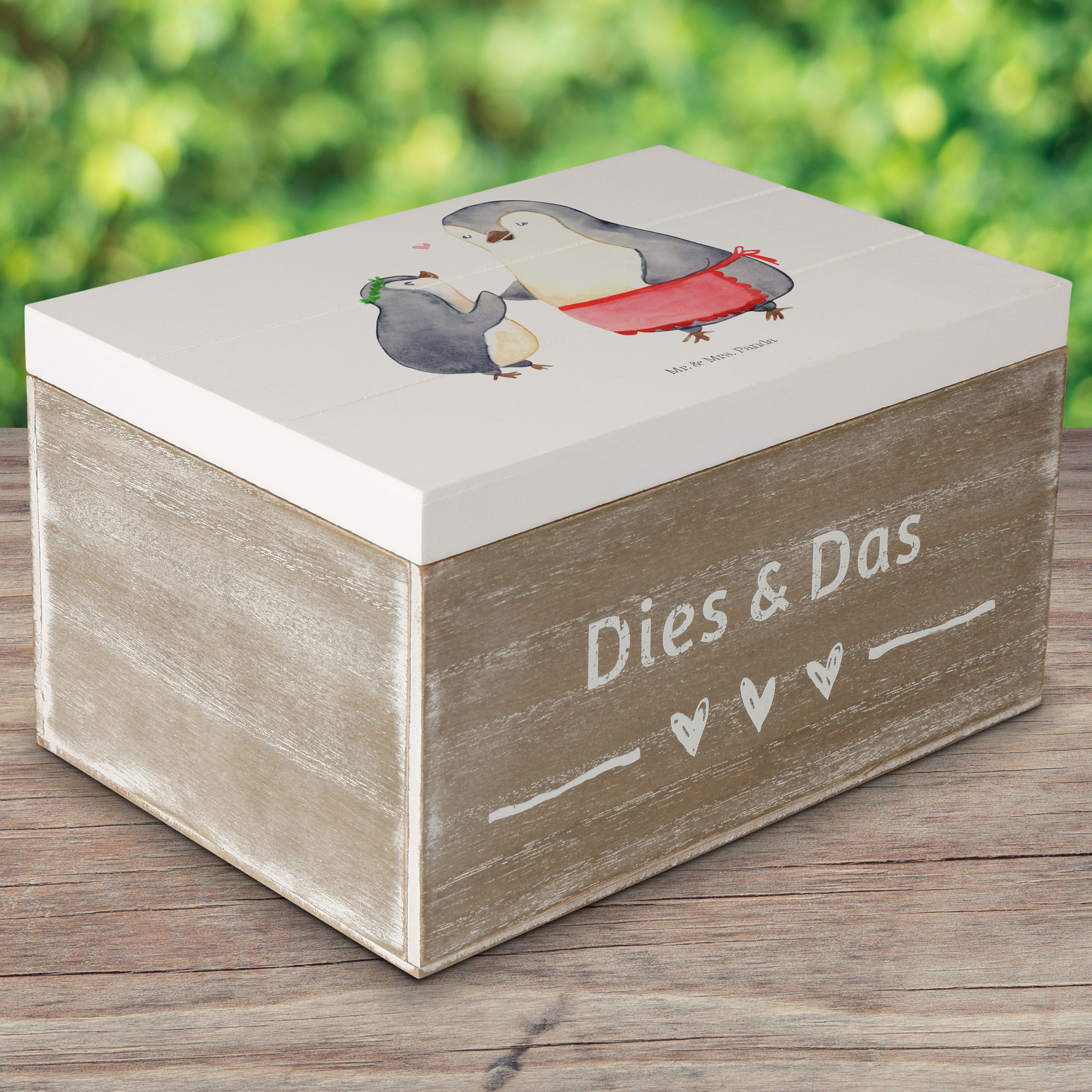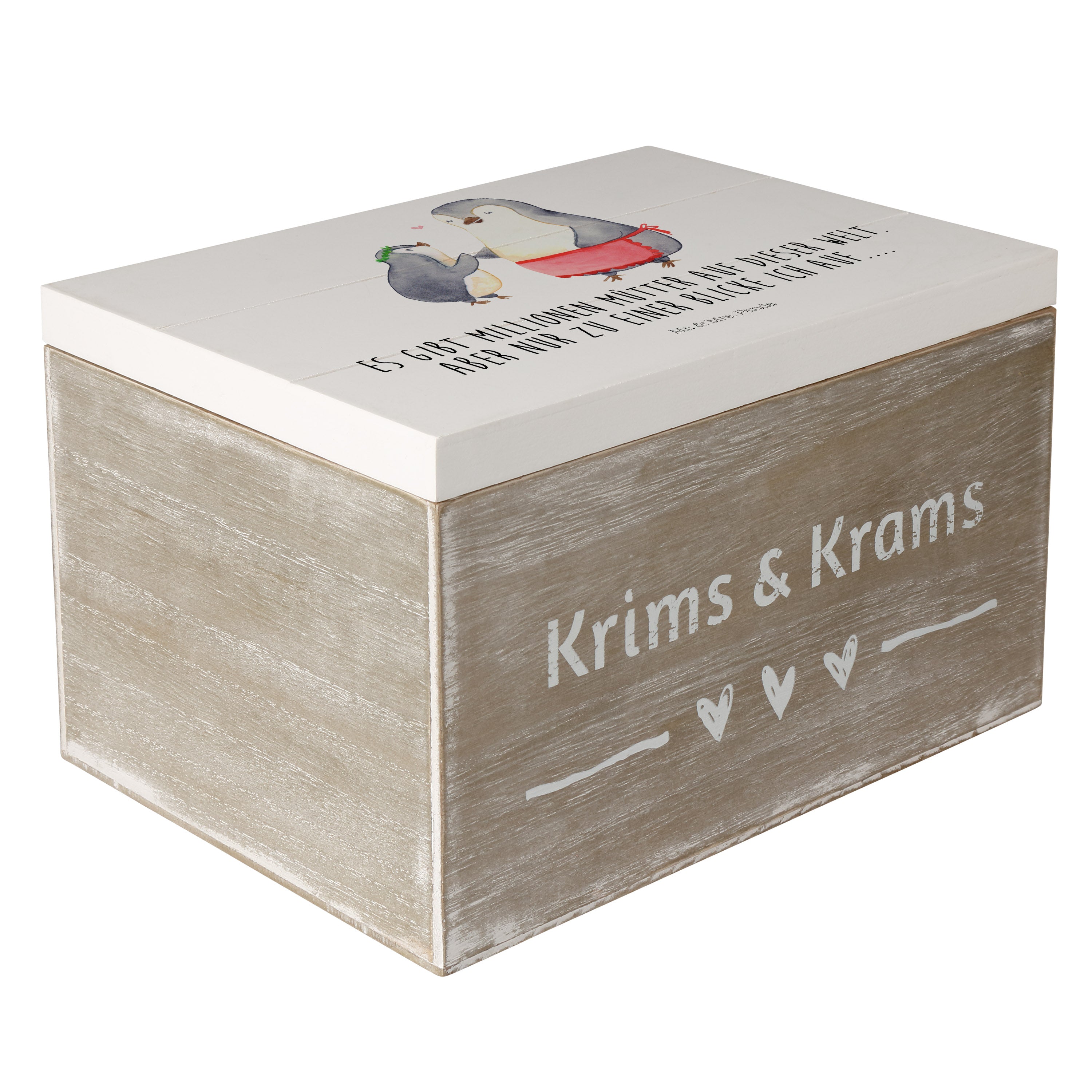 Holzkiste Pinguin mit Kind - 25 x 18 cm - mit Spruch - Weiß