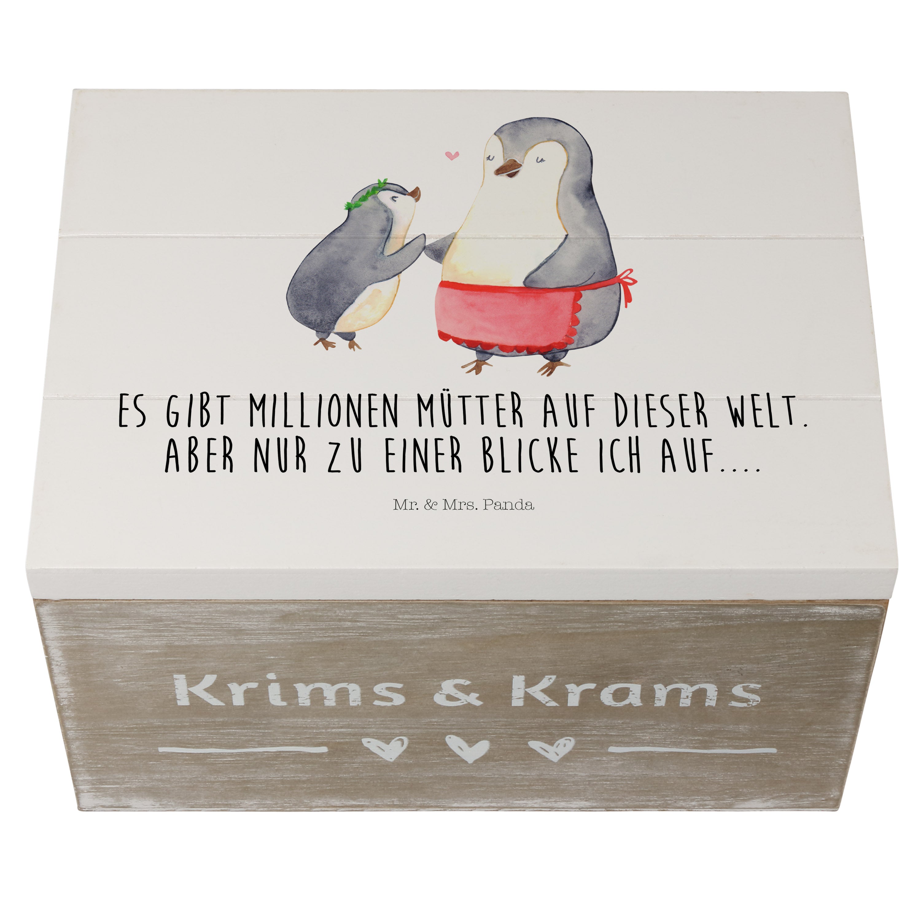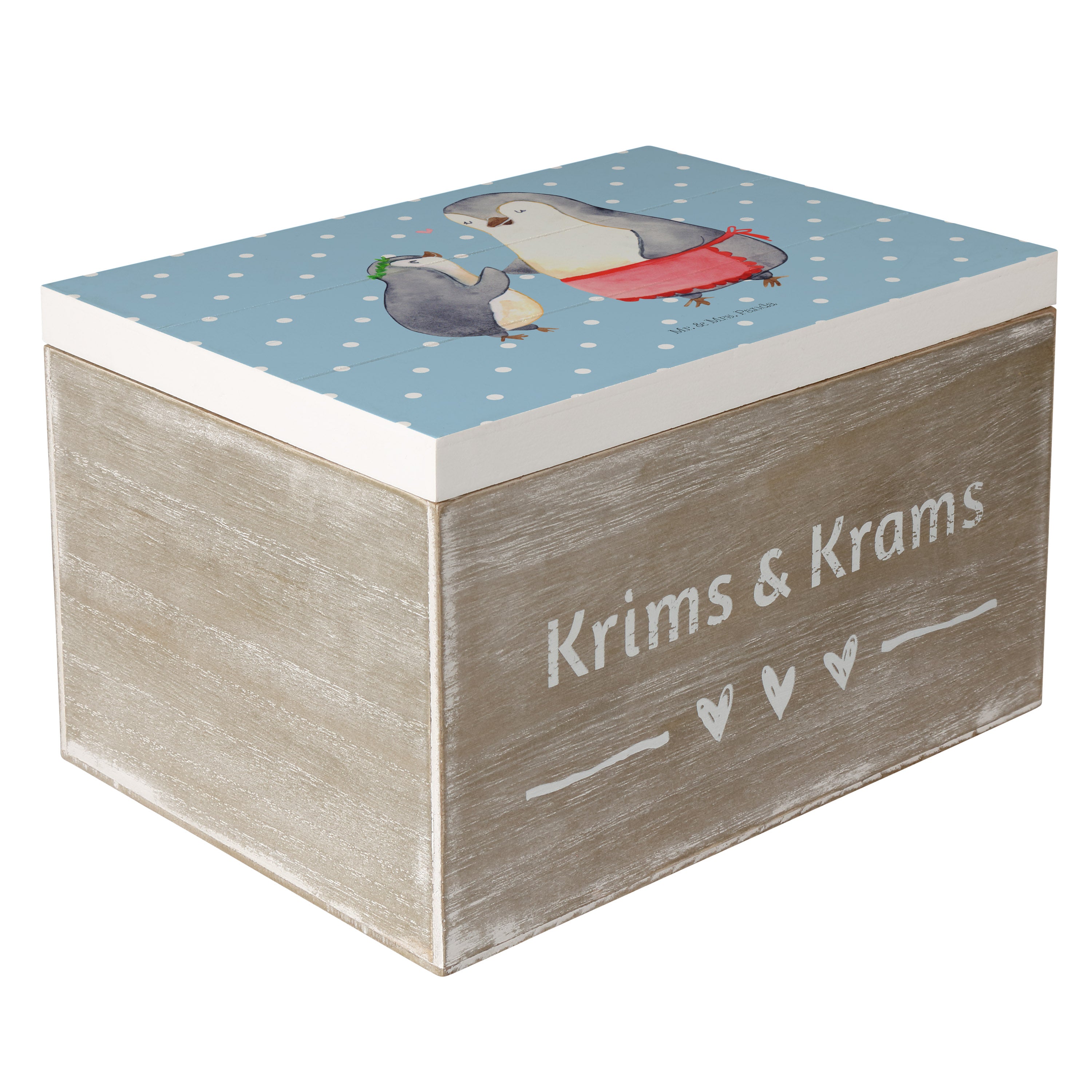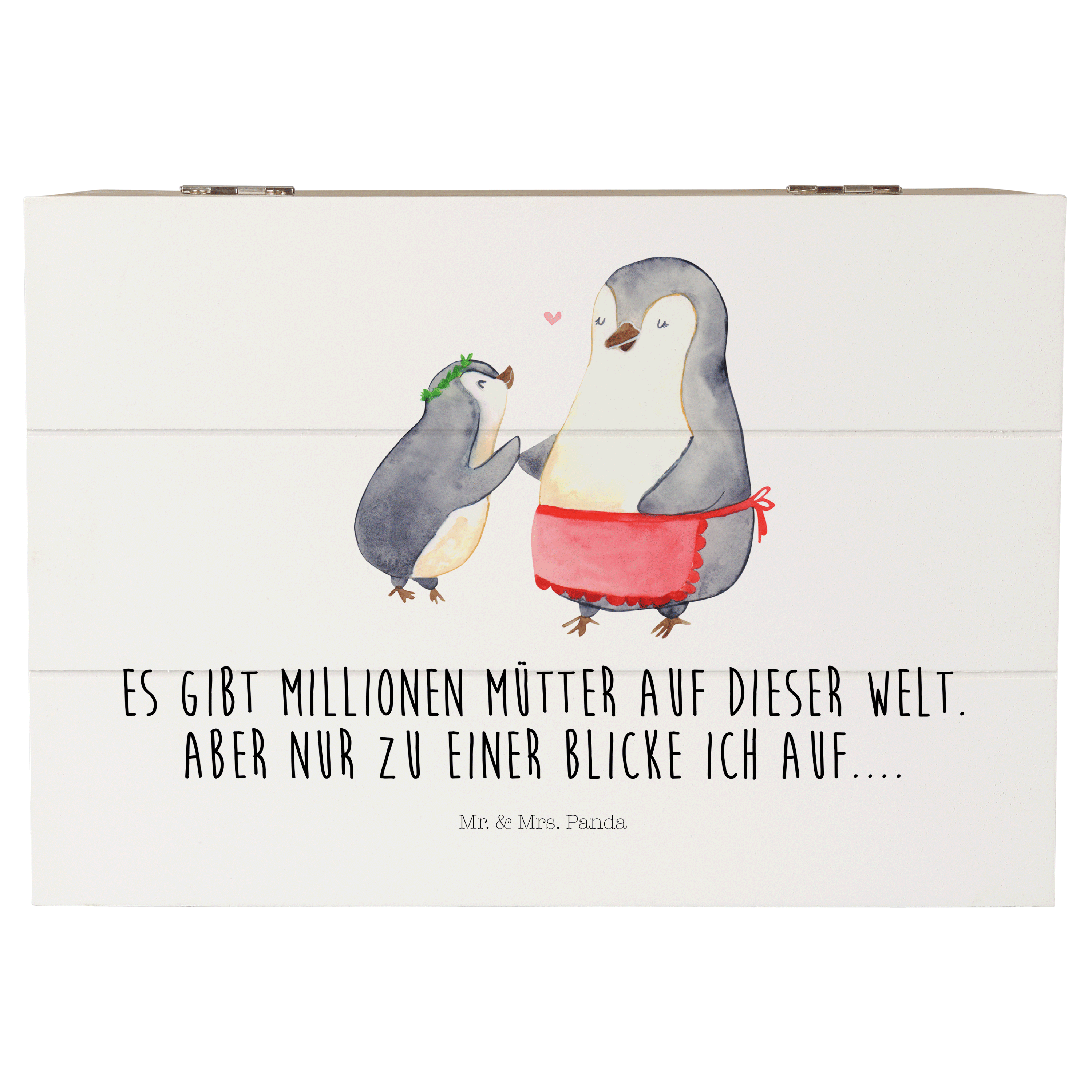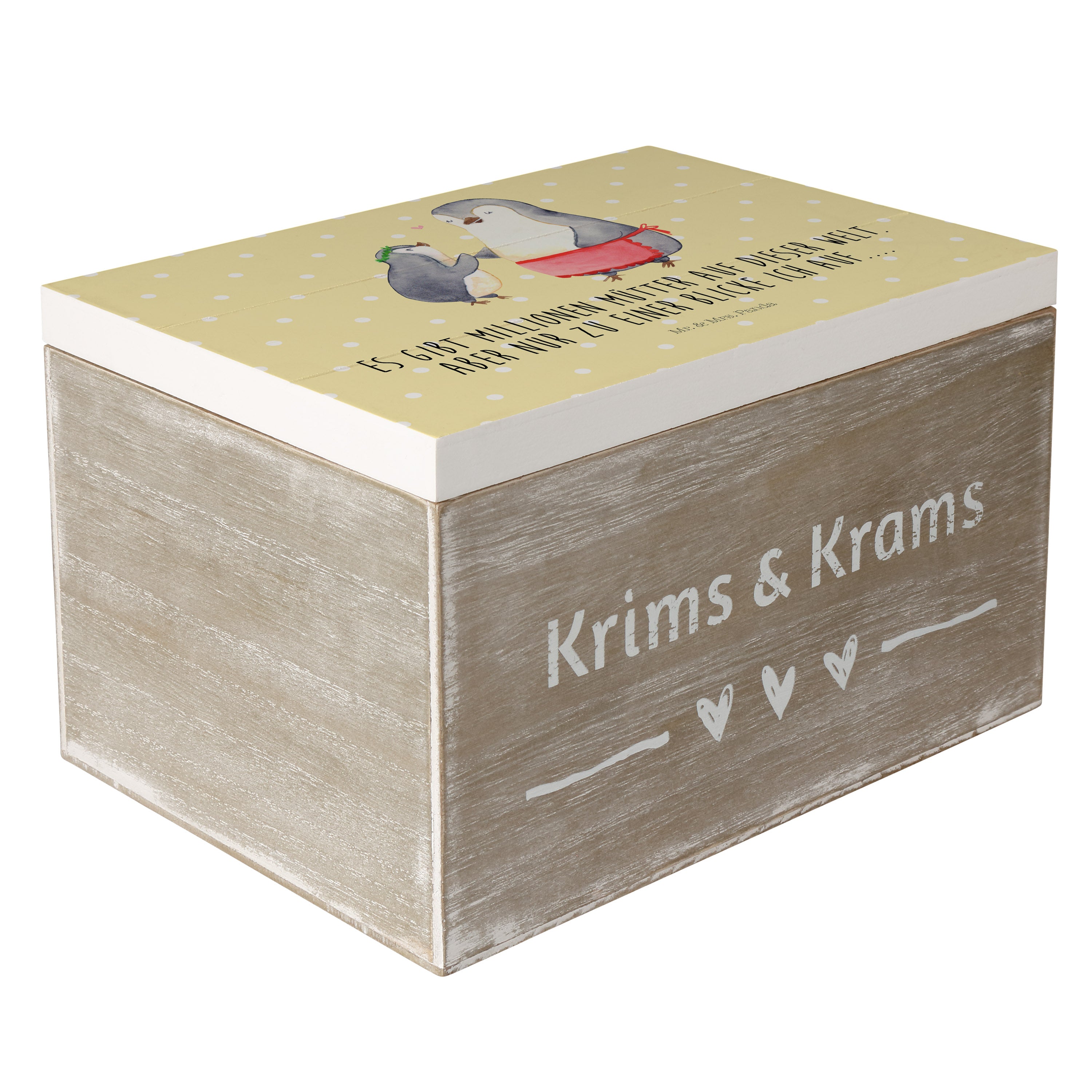 Holzkiste Pinguin mit Kind - 25 x 18 cm - mit Spruch - Weiß
