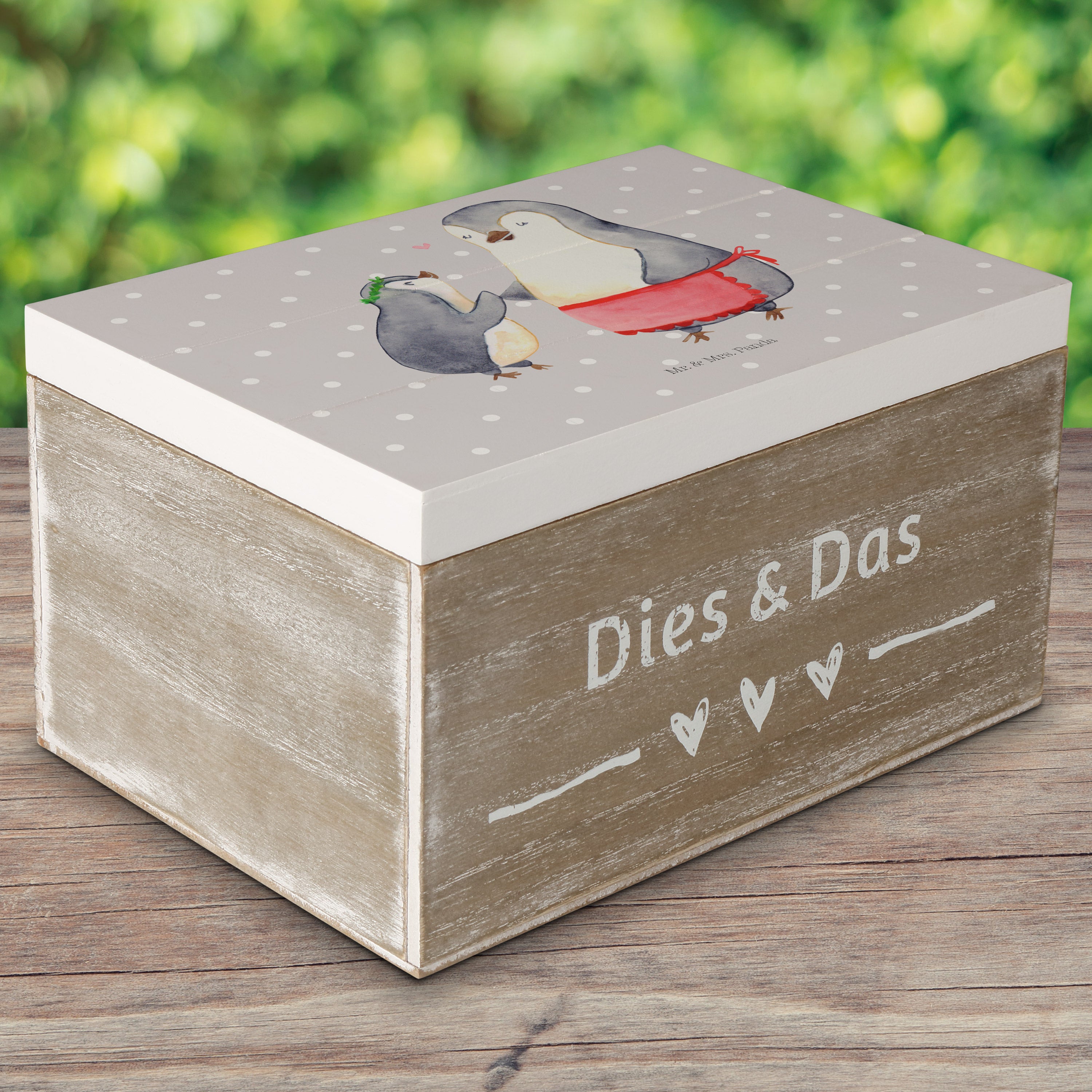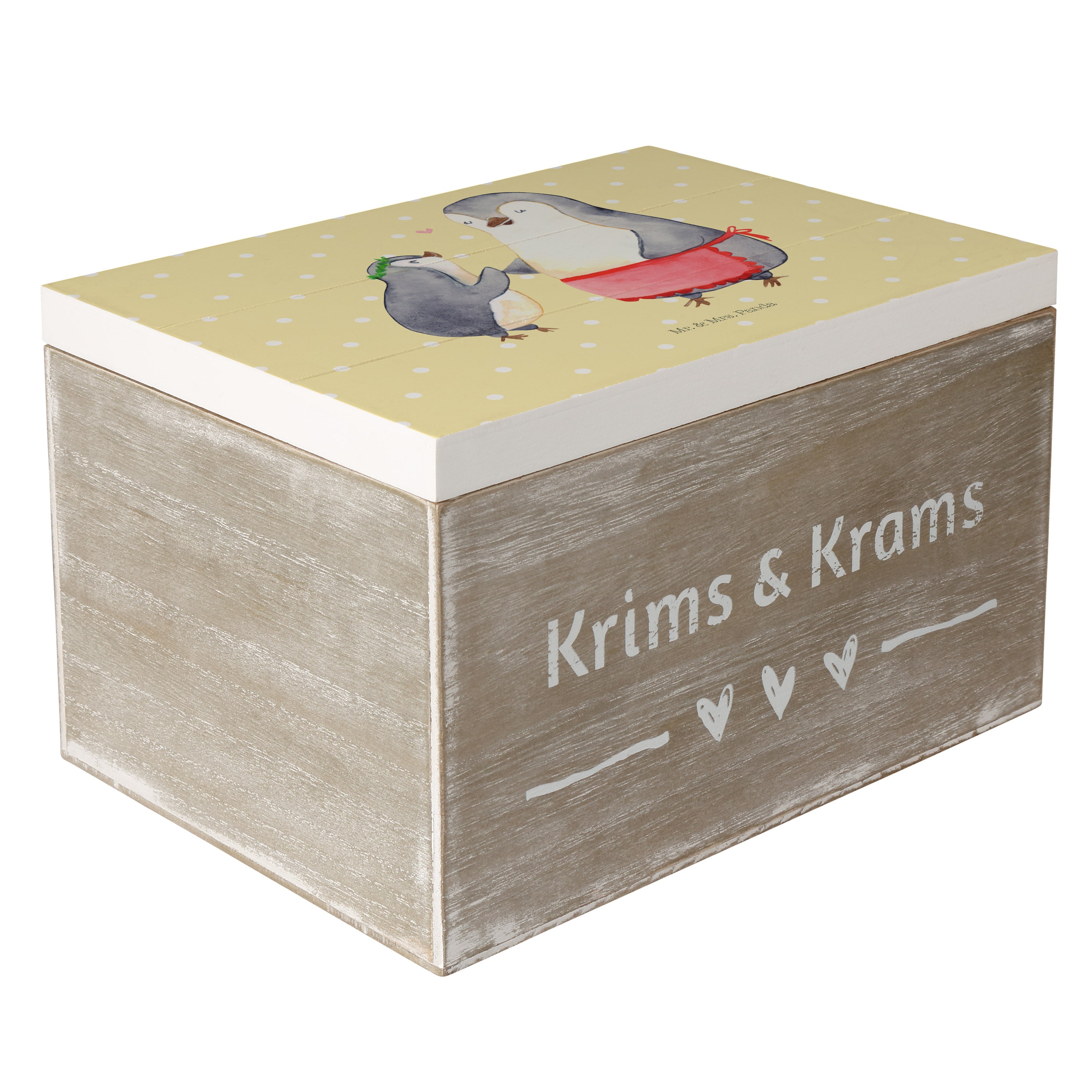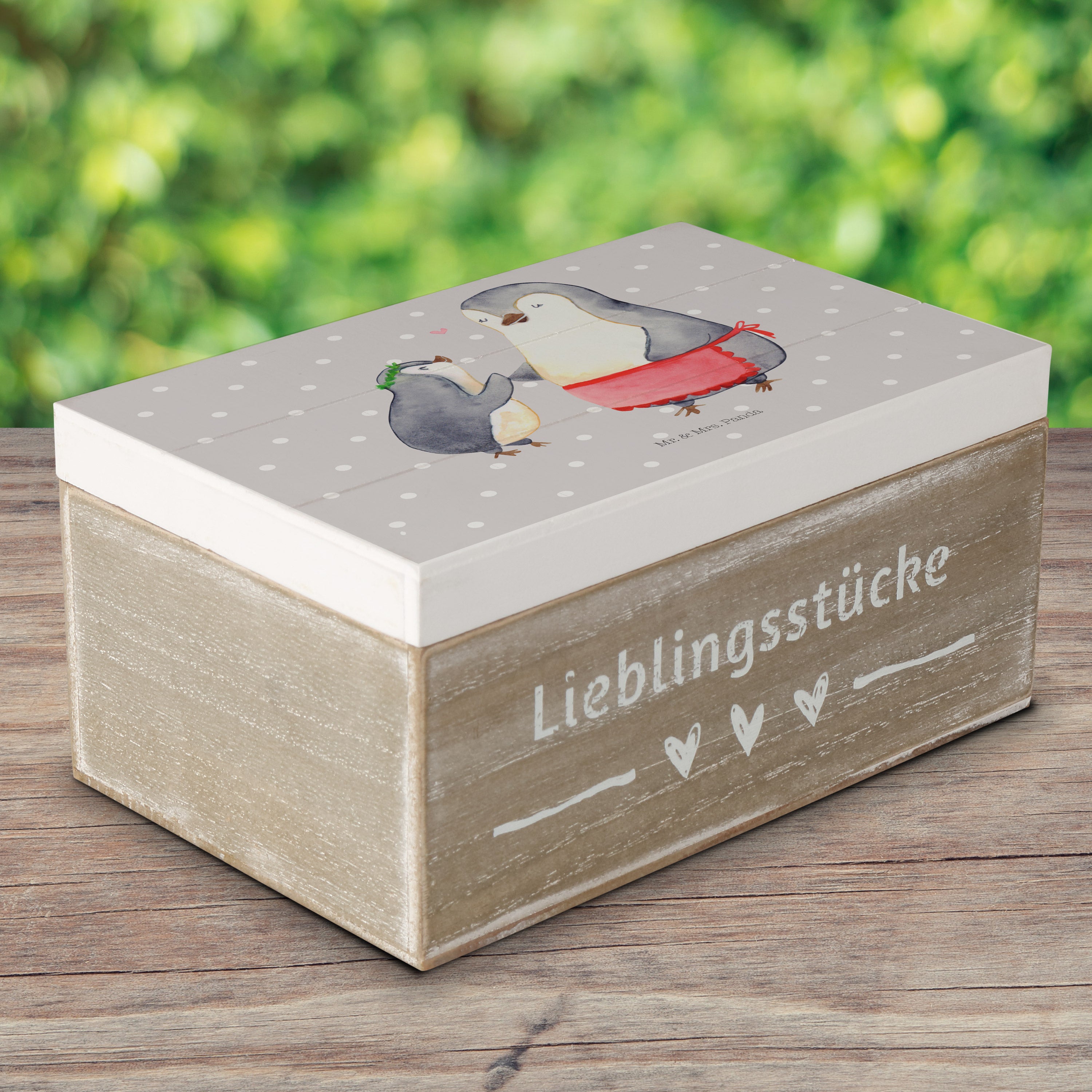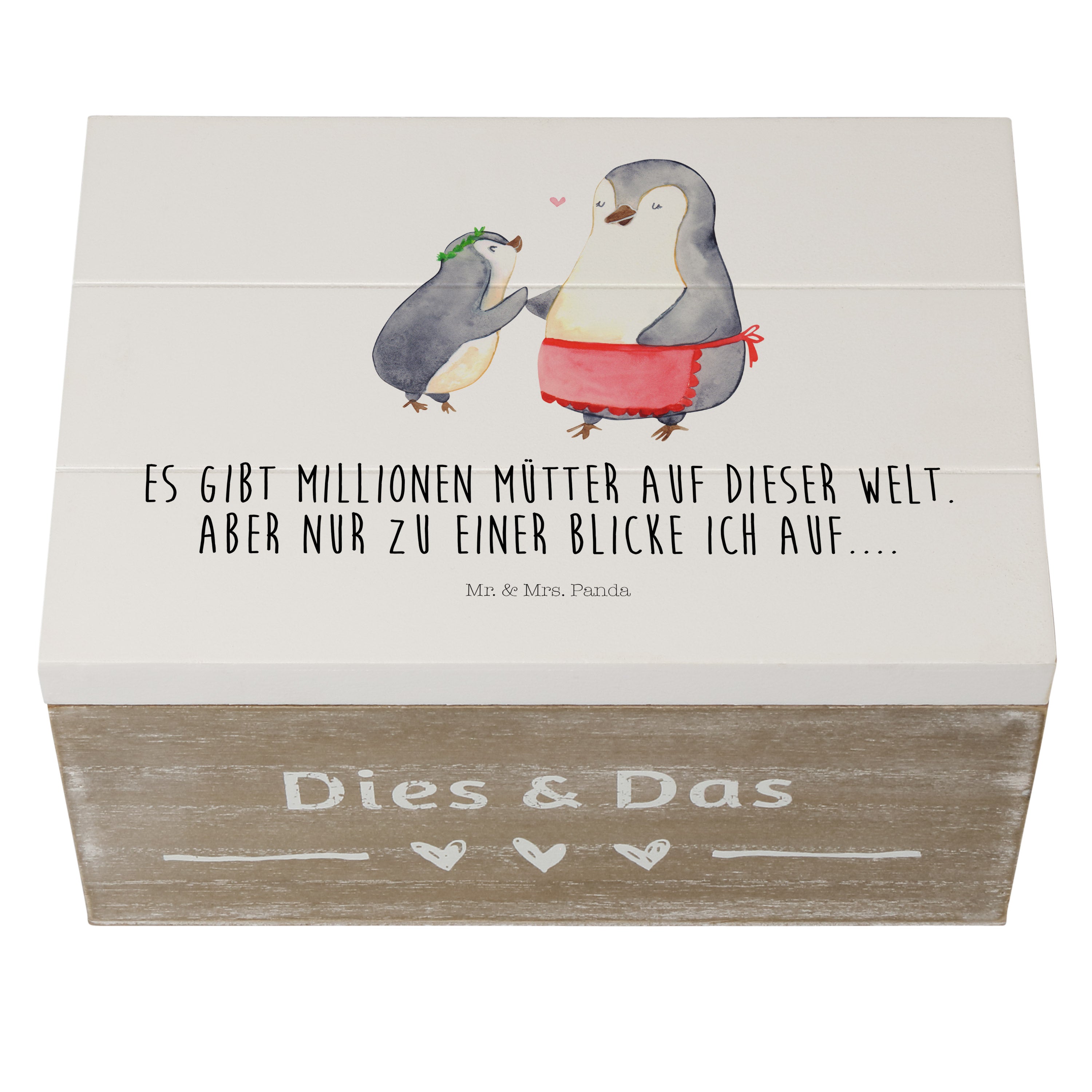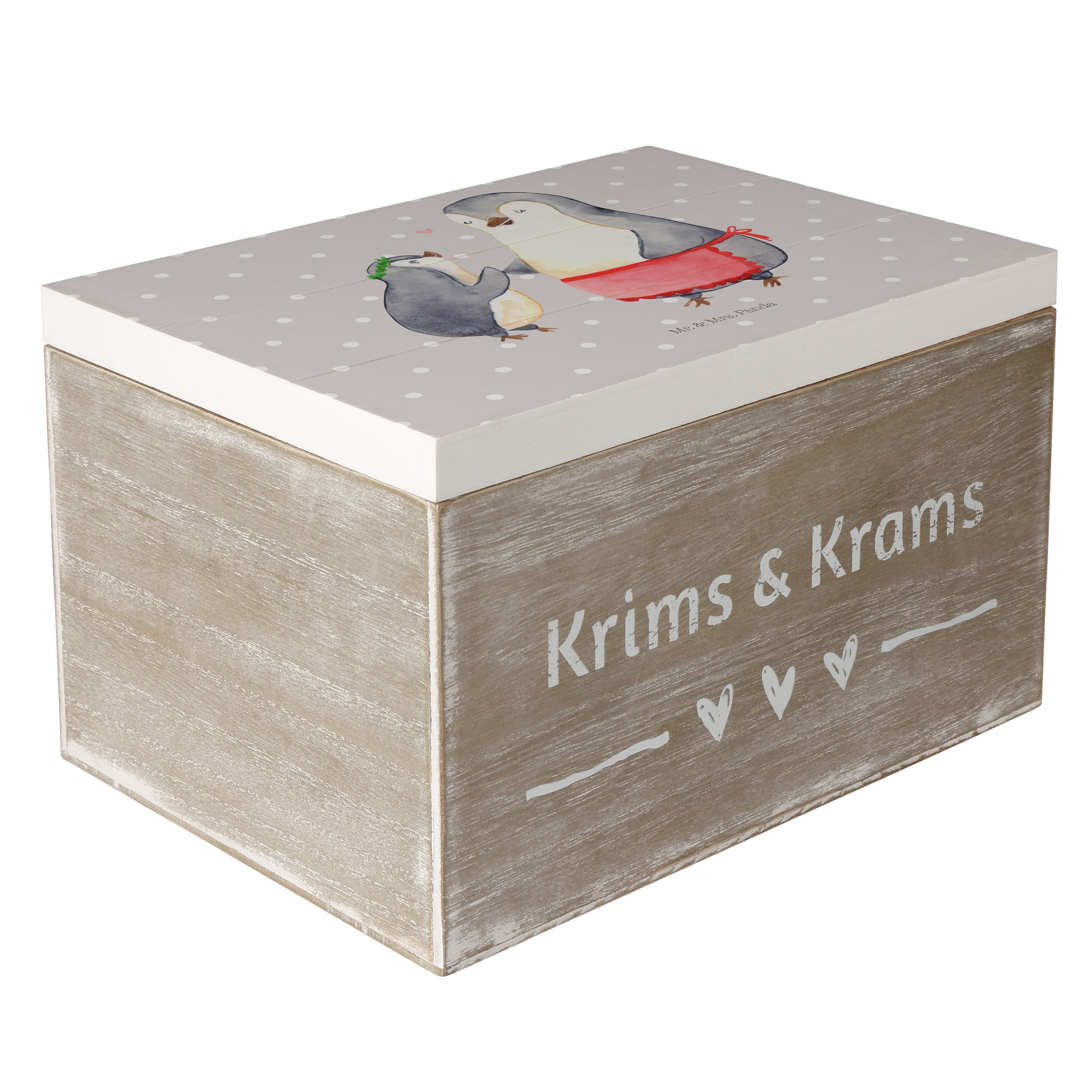 Holzkiste Pinguin mit Kind - 25 x 18 cm - mit Spruch - Weiß