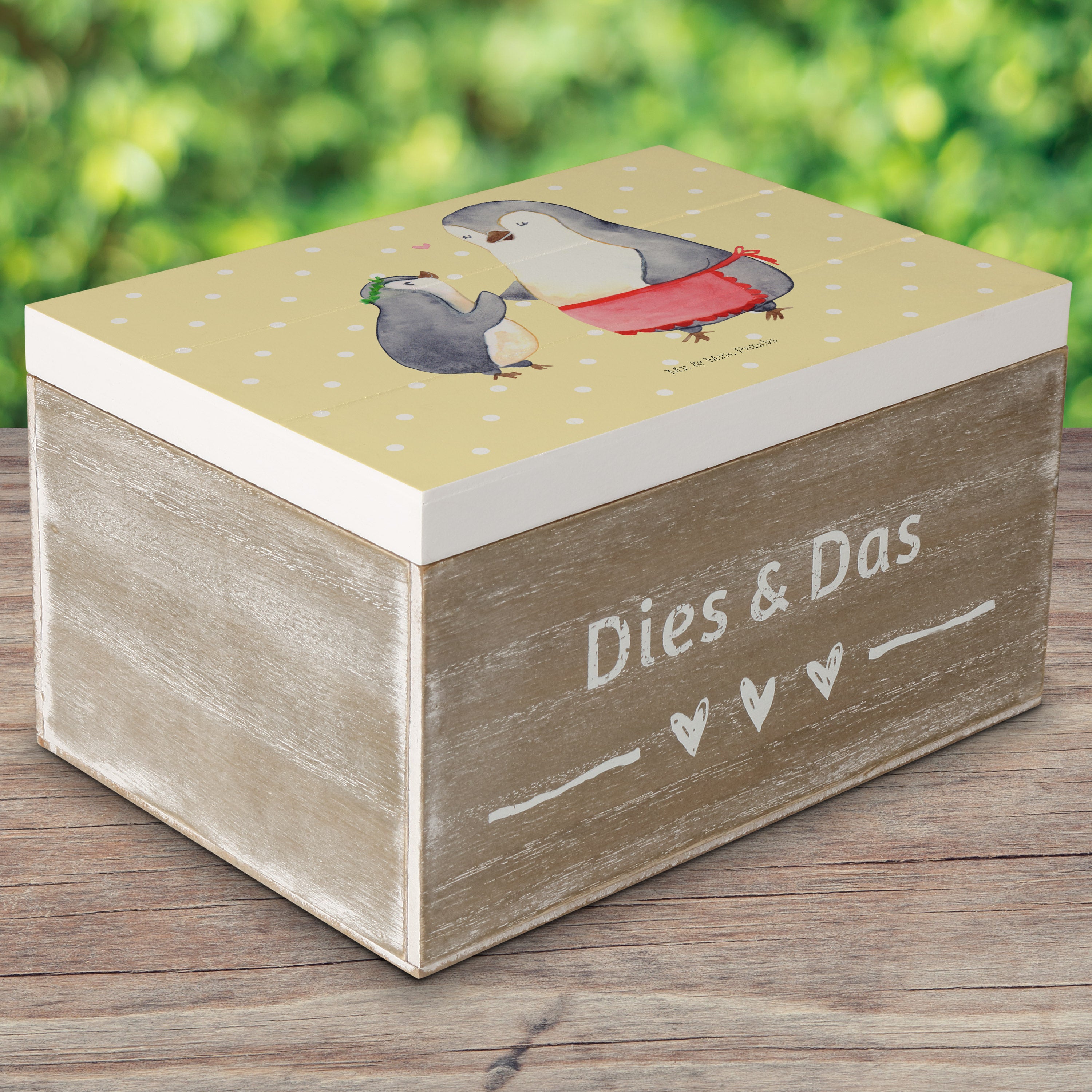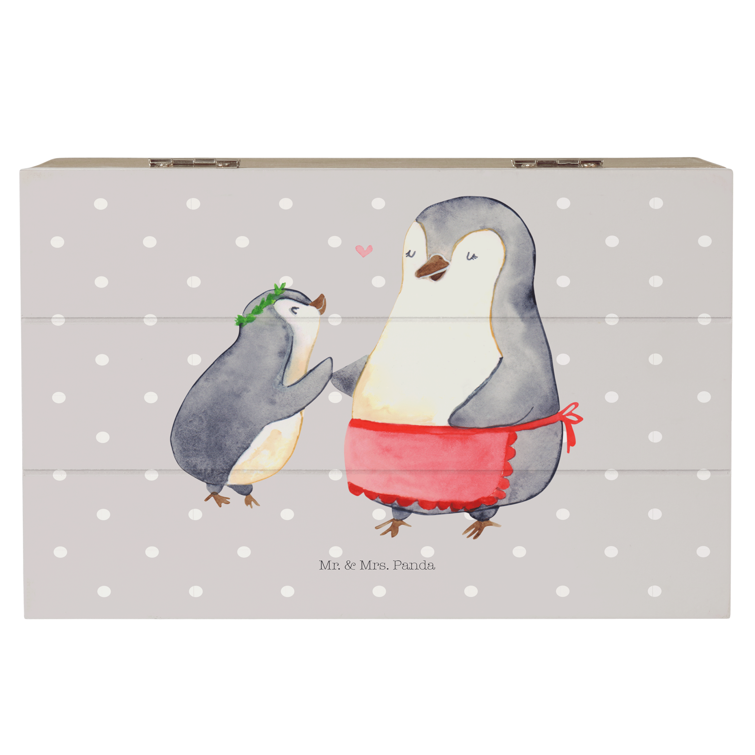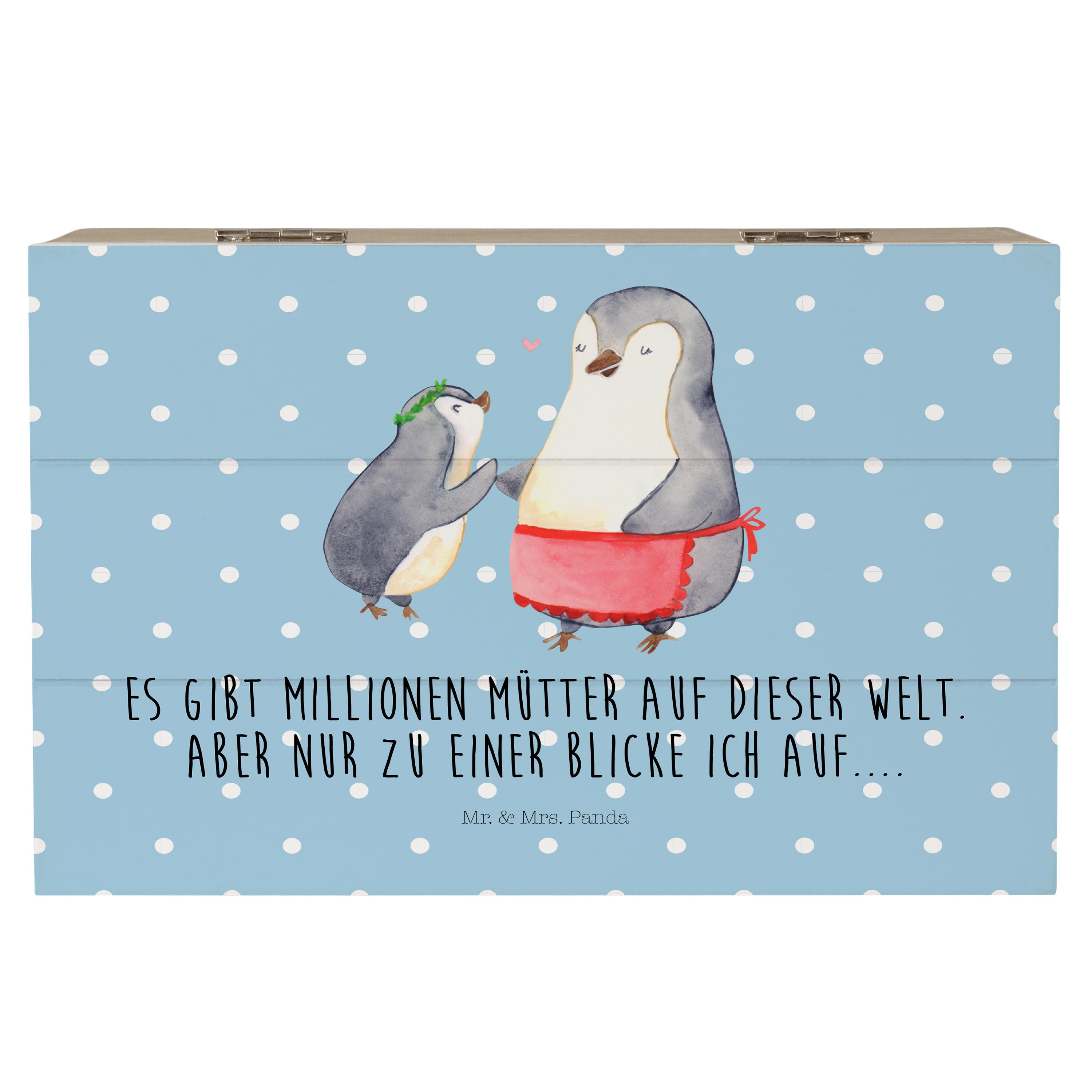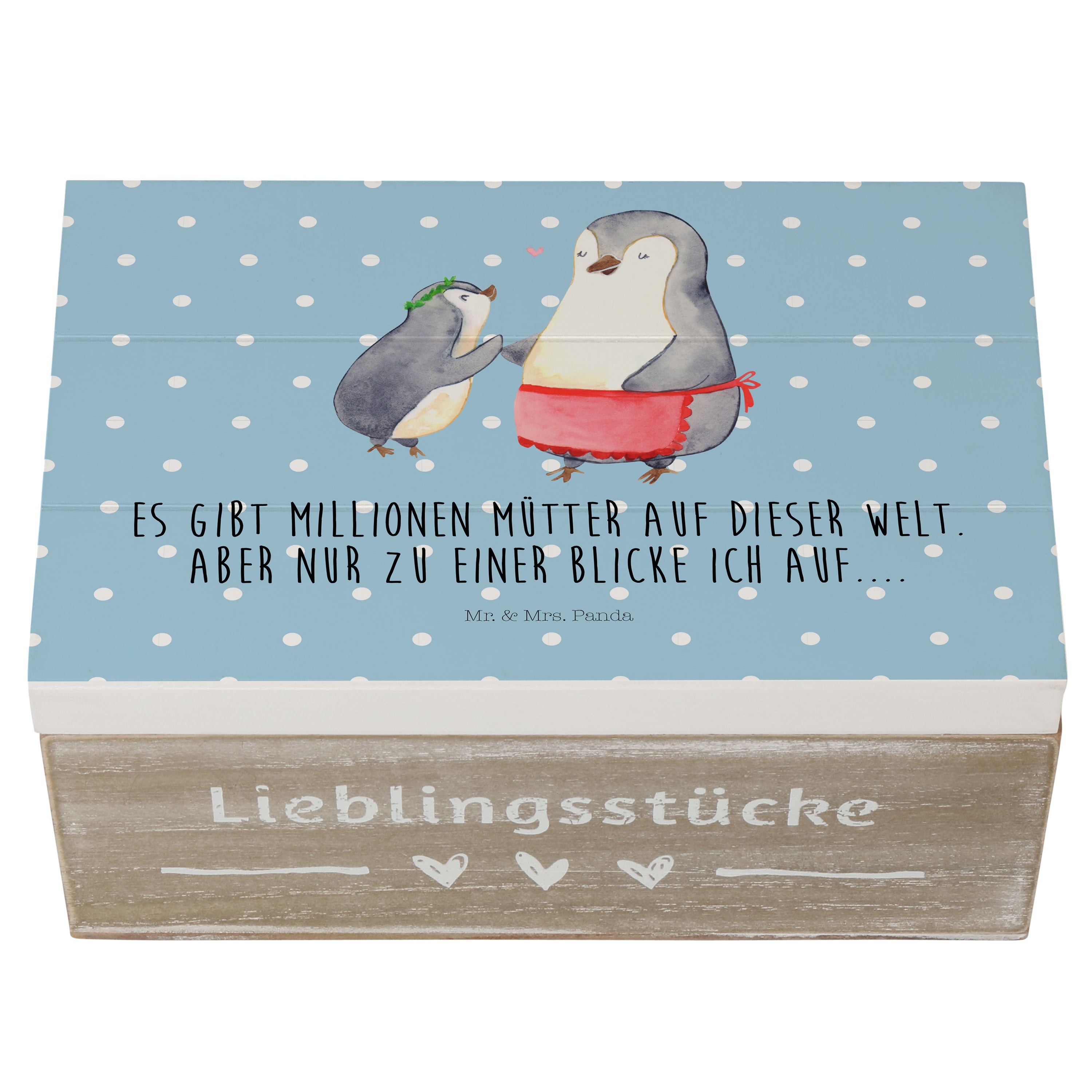 Holzkiste Pinguin mit Kind - 25 x 18 cm - mit Spruch - Weiß