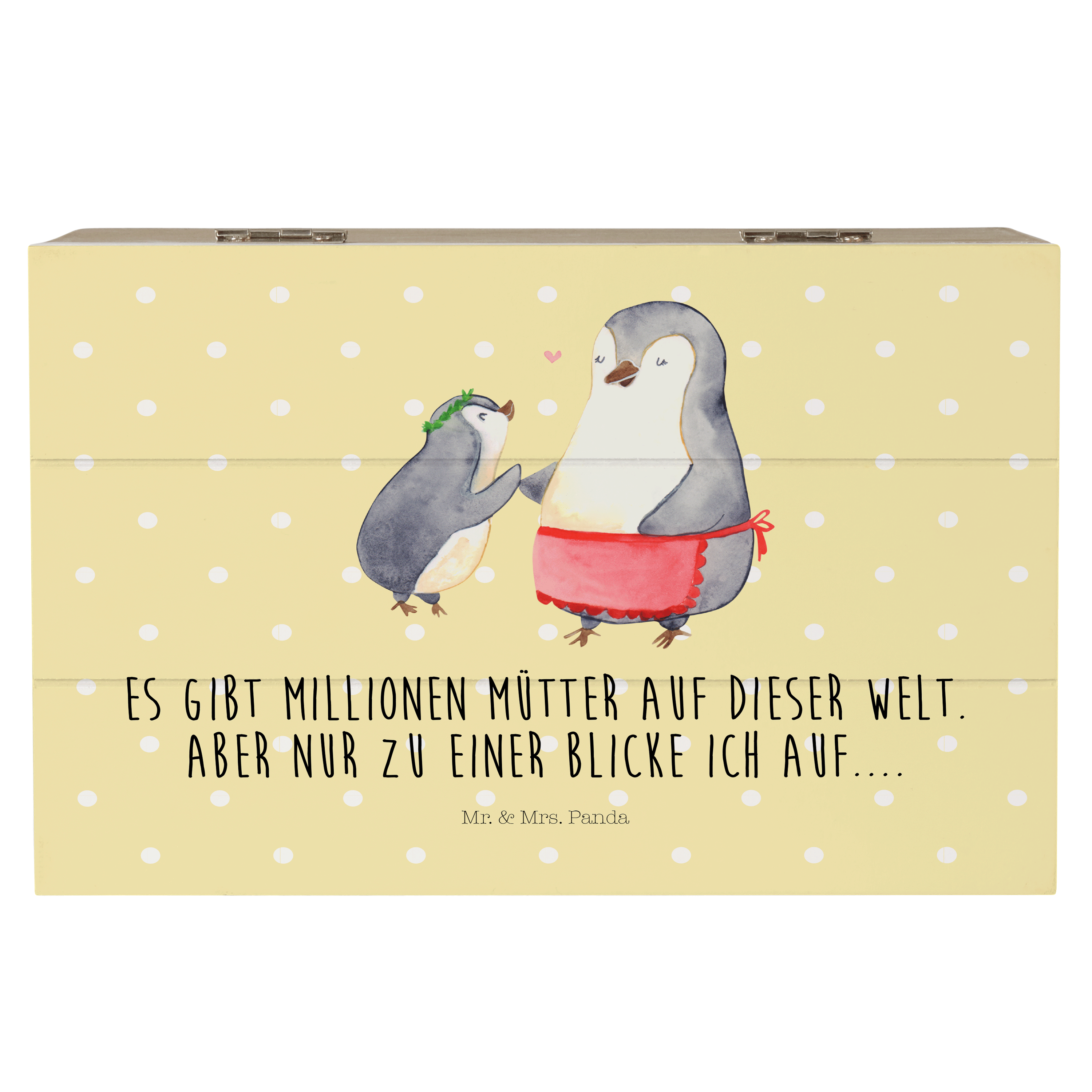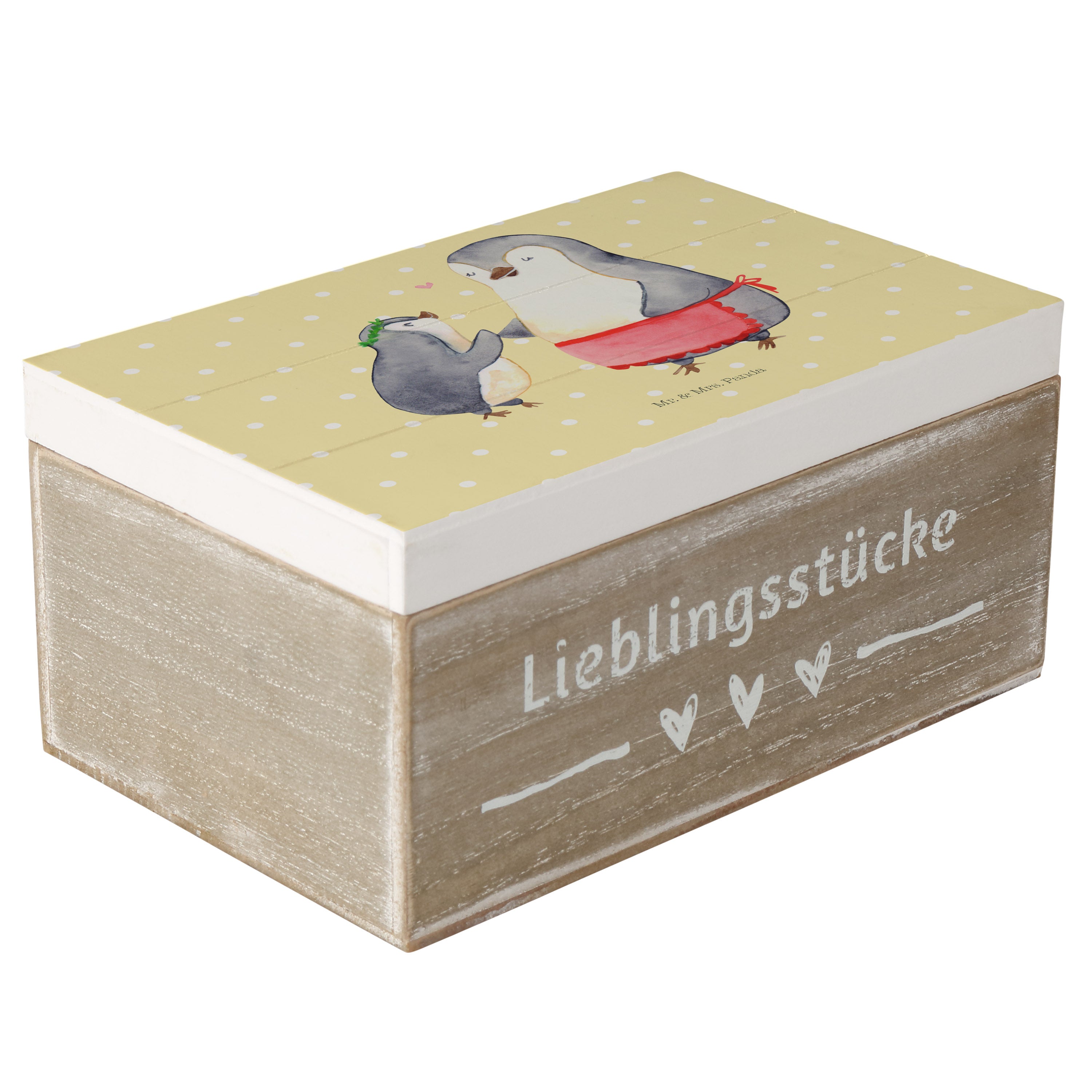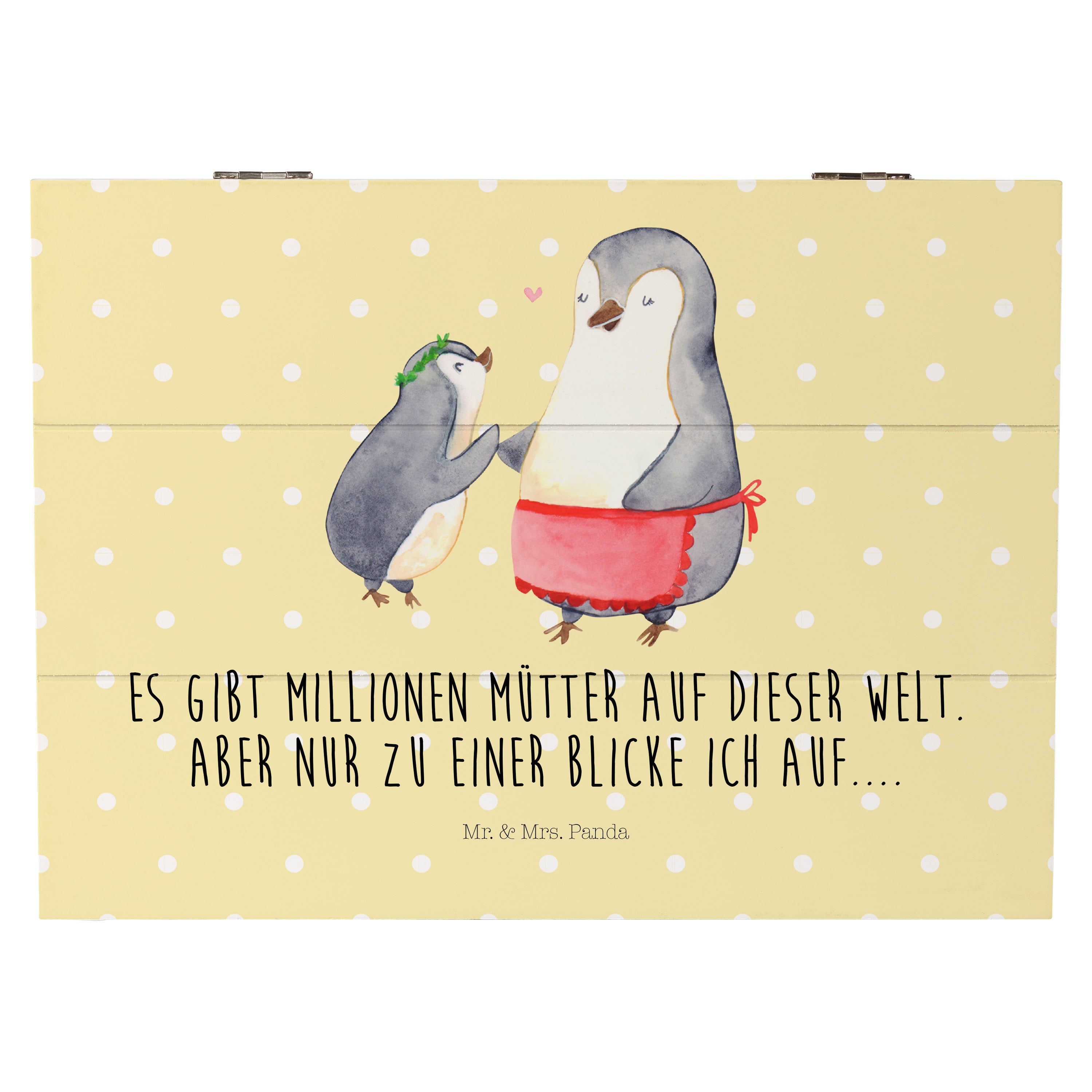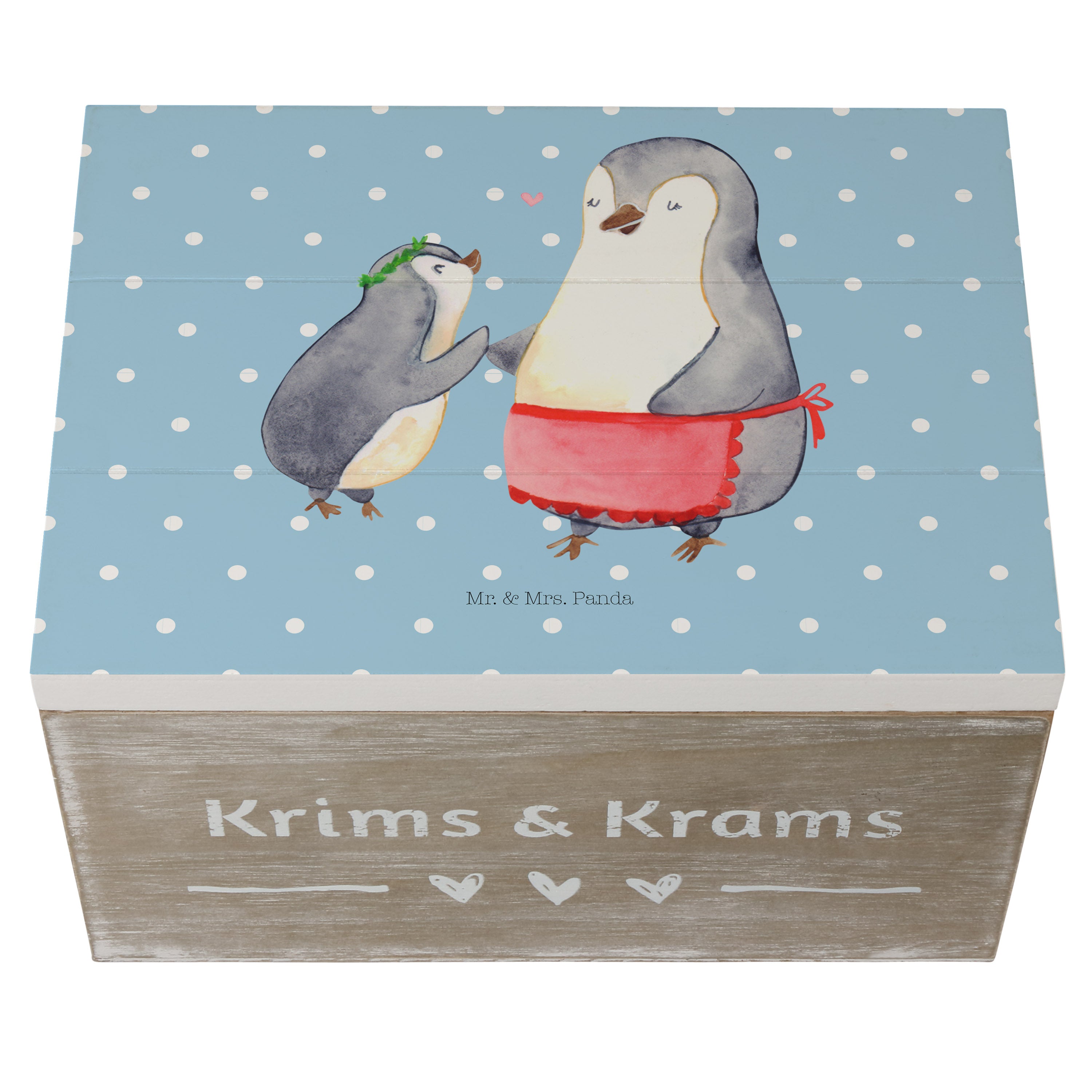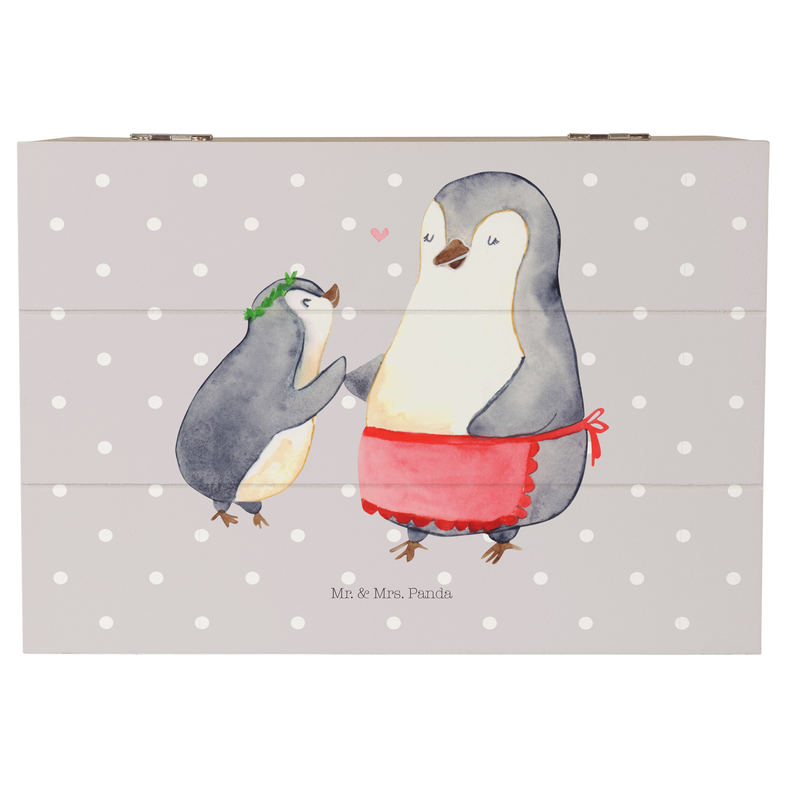 Holzkiste Pinguin mit Kind - 25 x 18 cm - mit Spruch - Weiß