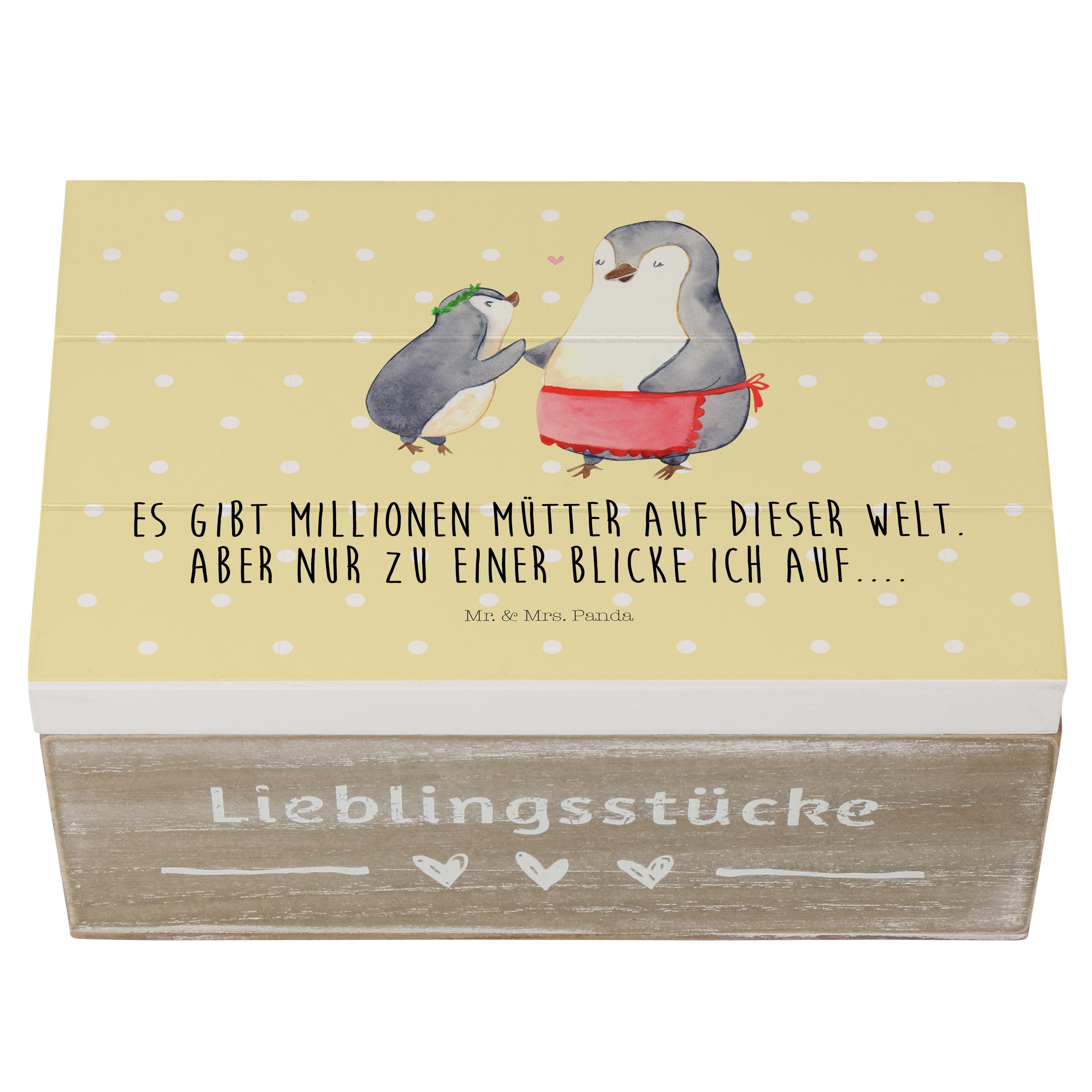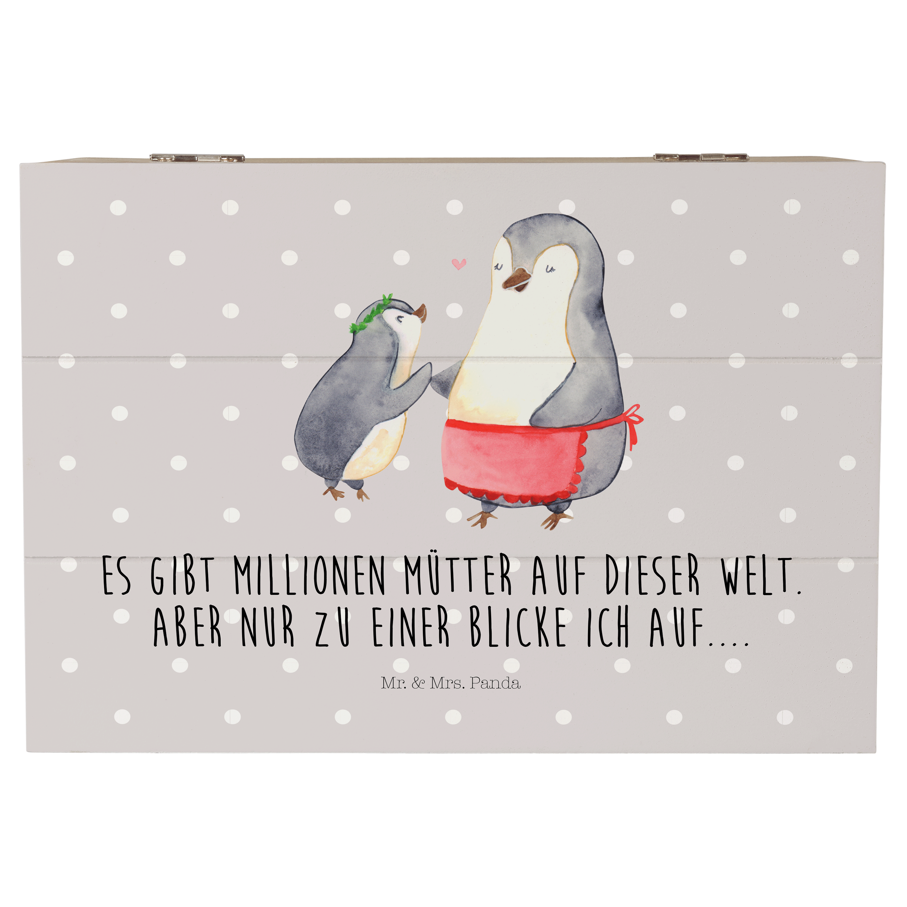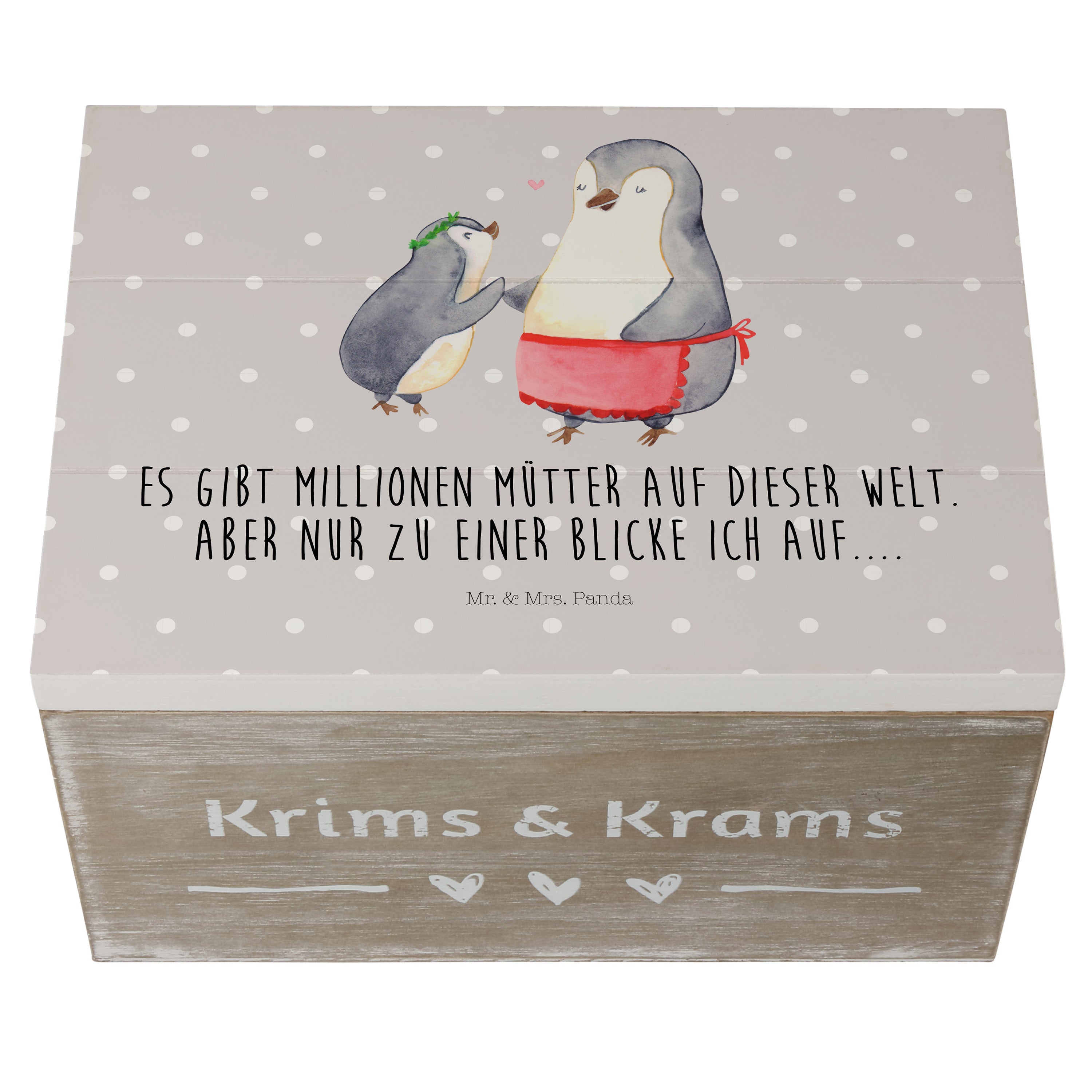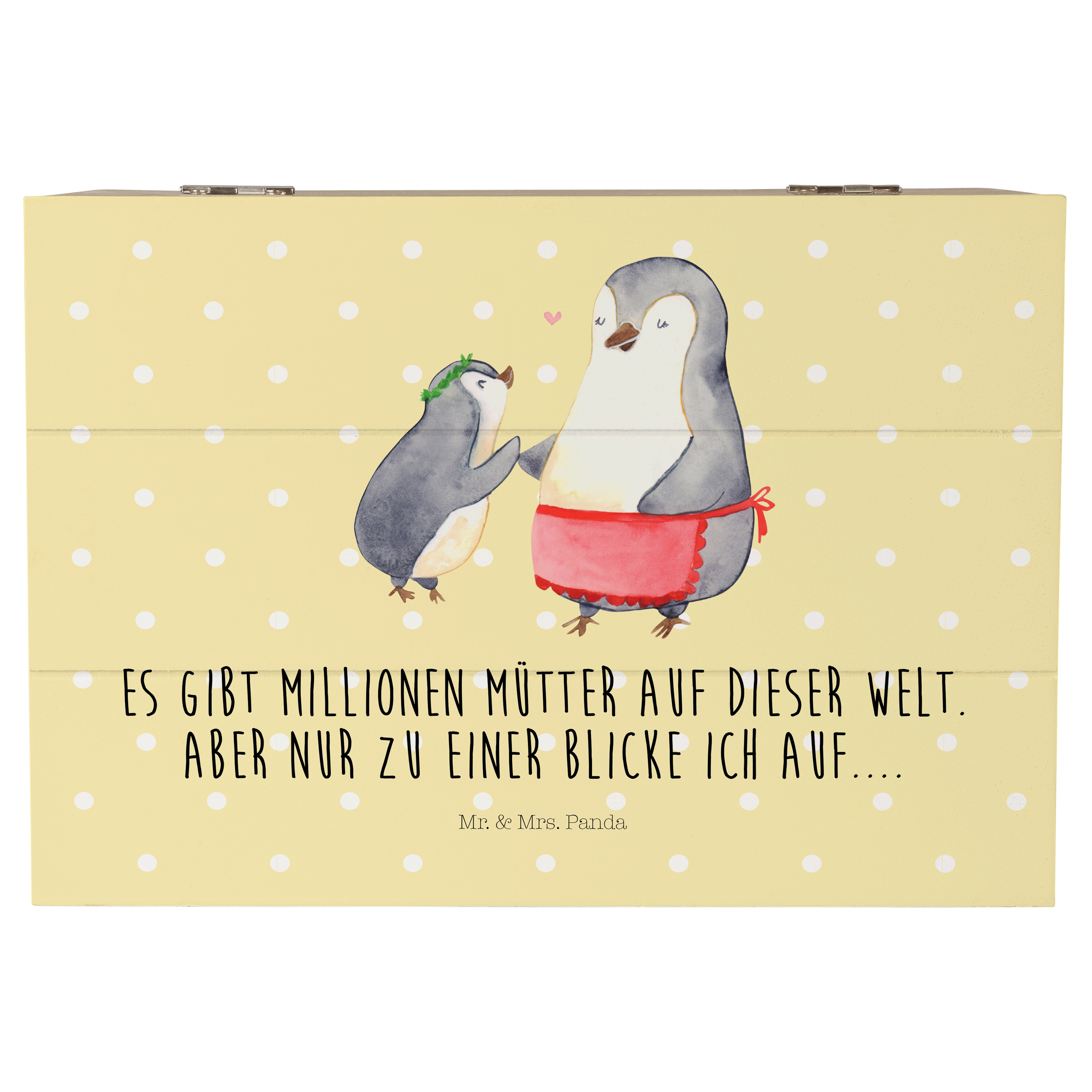 Holzkiste Pinguin mit Kind - 25 x 18 cm - mit Spruch - Weiß