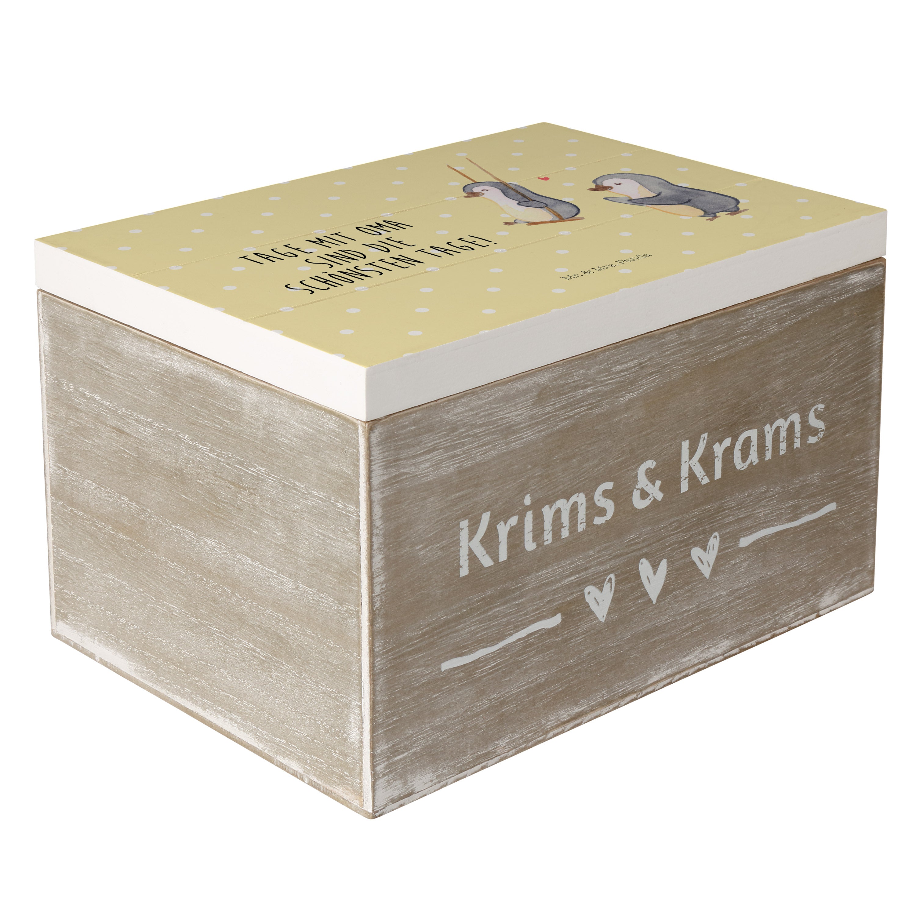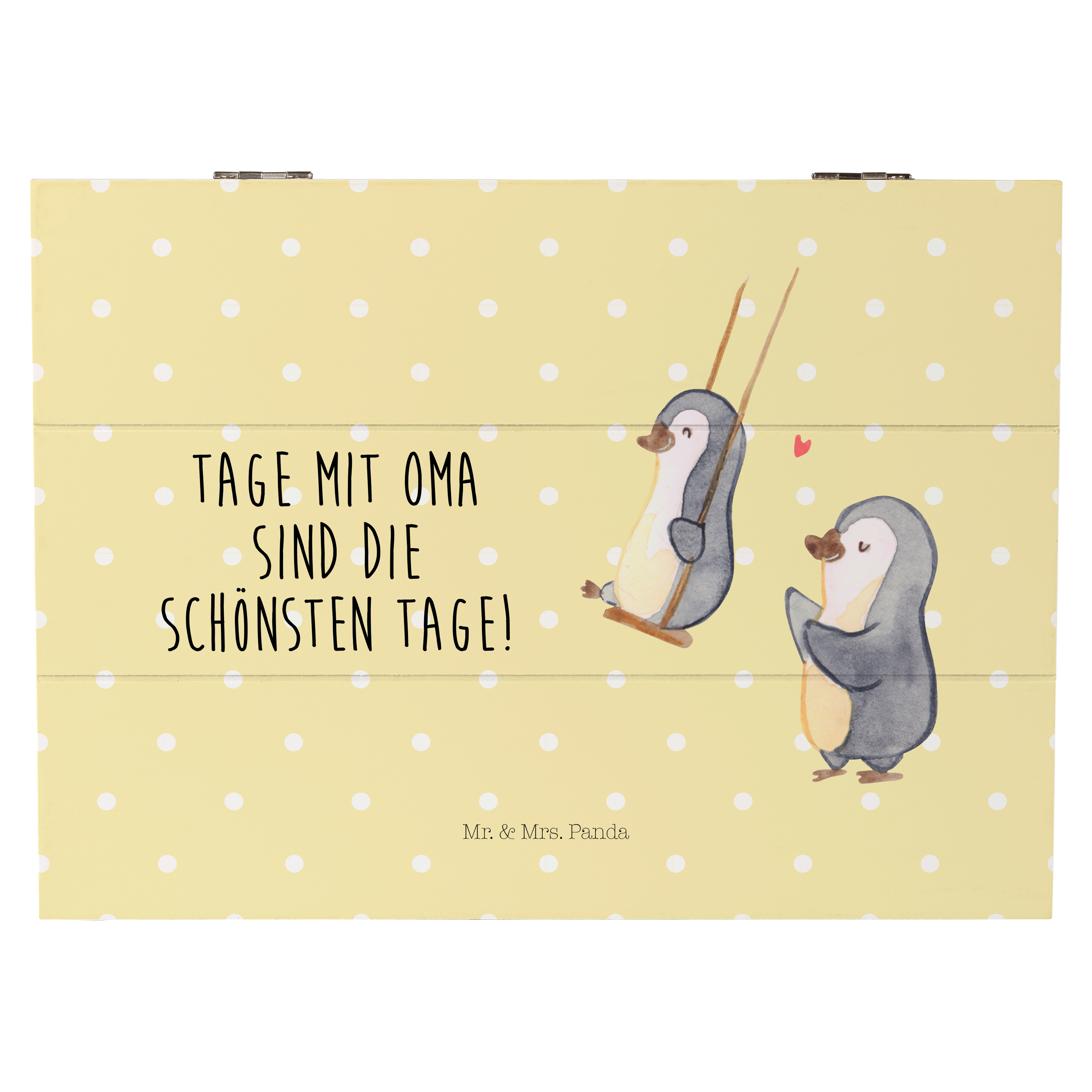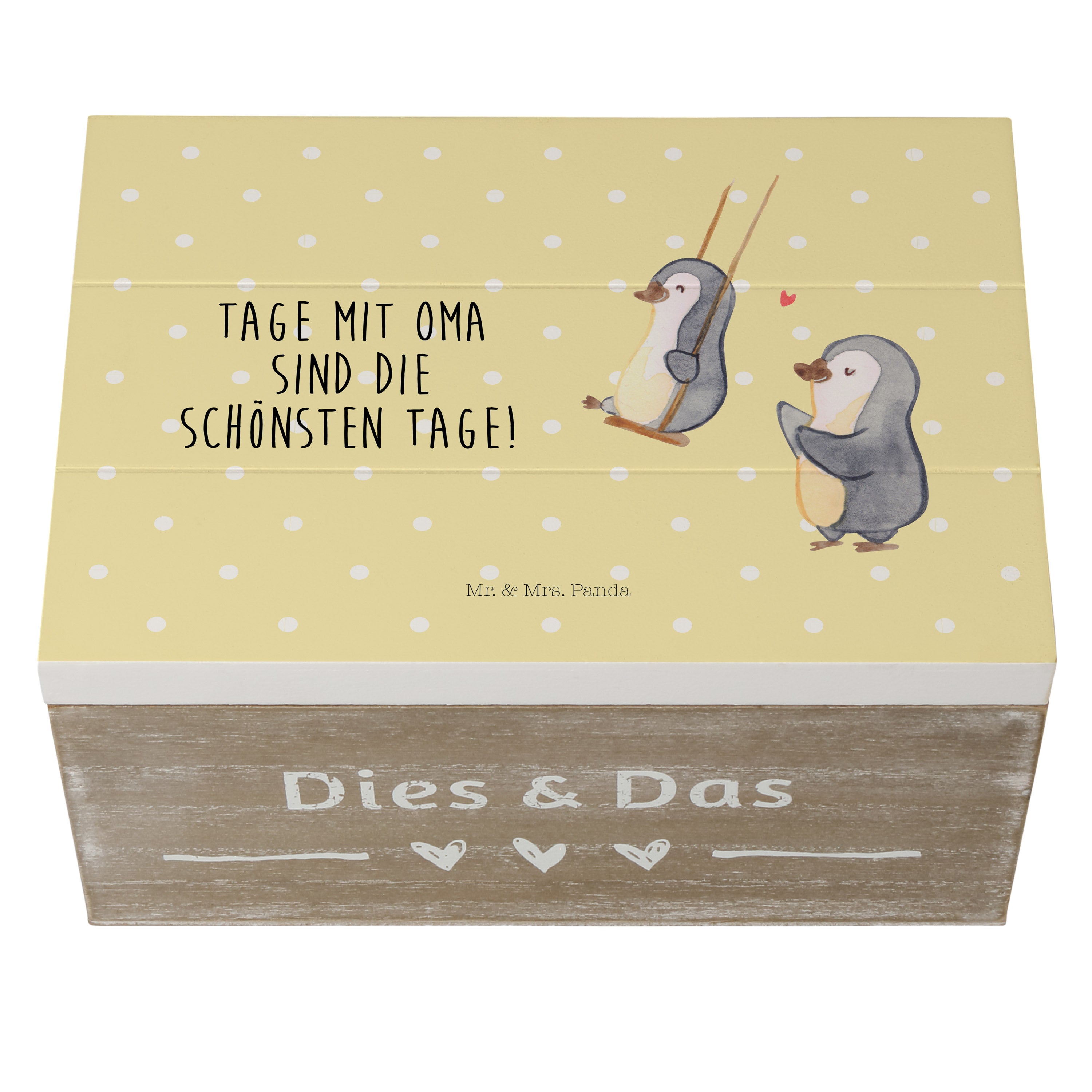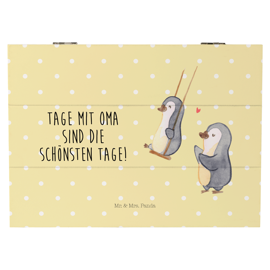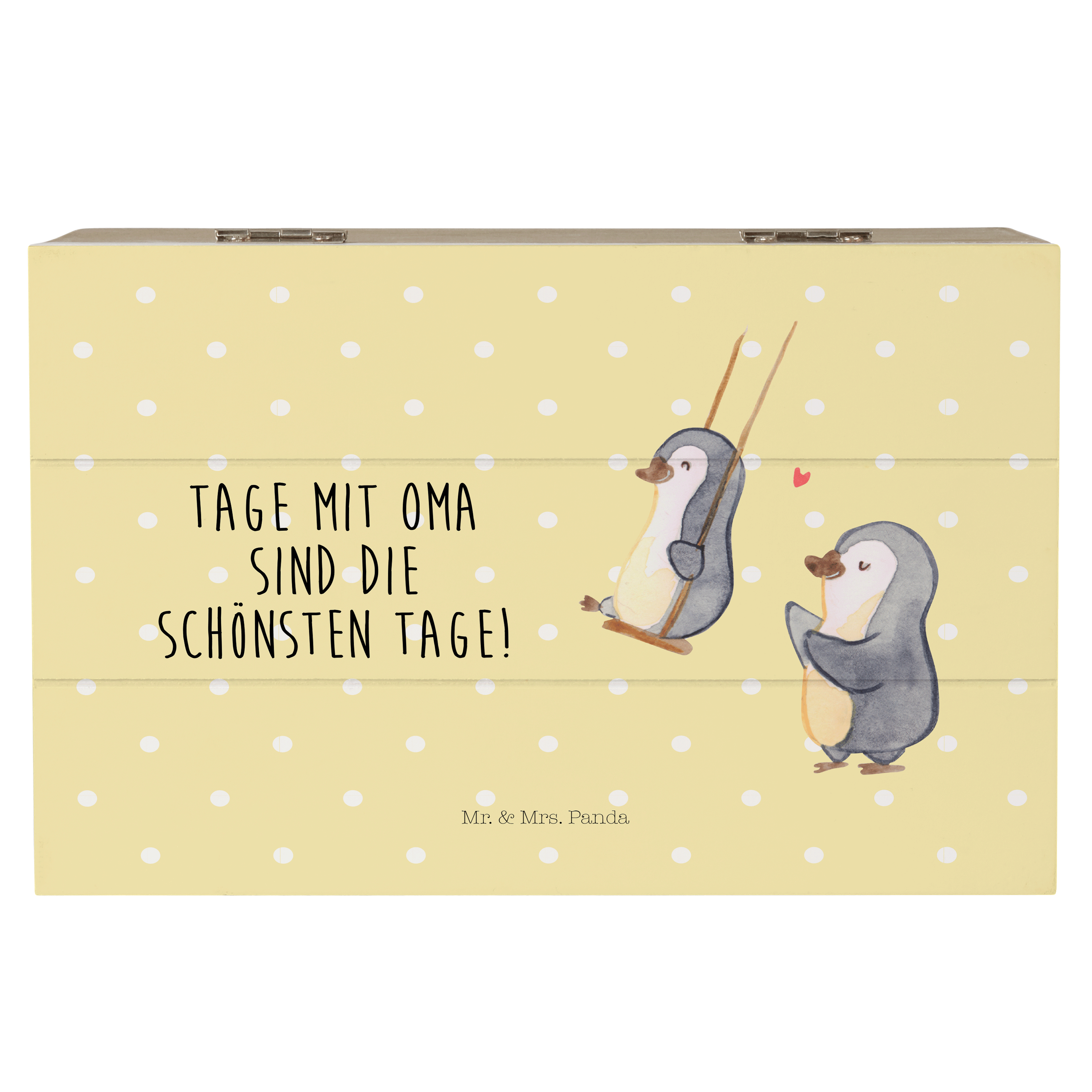 Holzkiste Pinguin Oma schaukeln - 25 x 18 cm - mit Spruch - Gelb Pastell