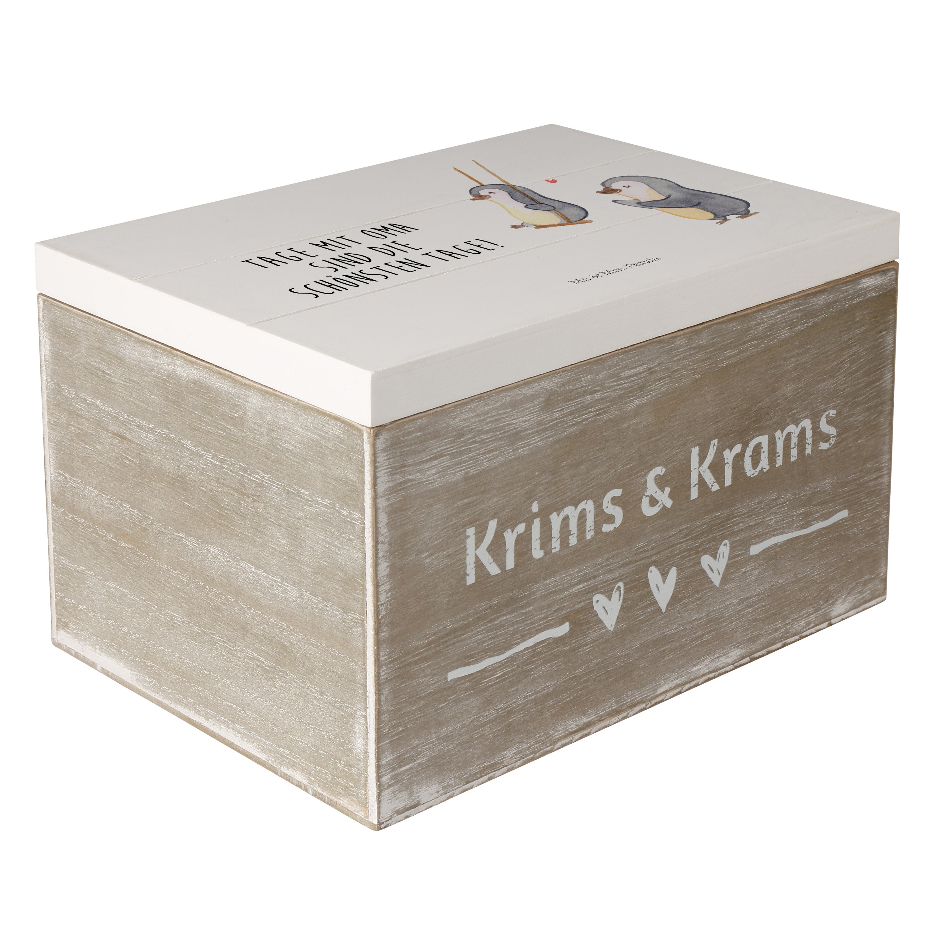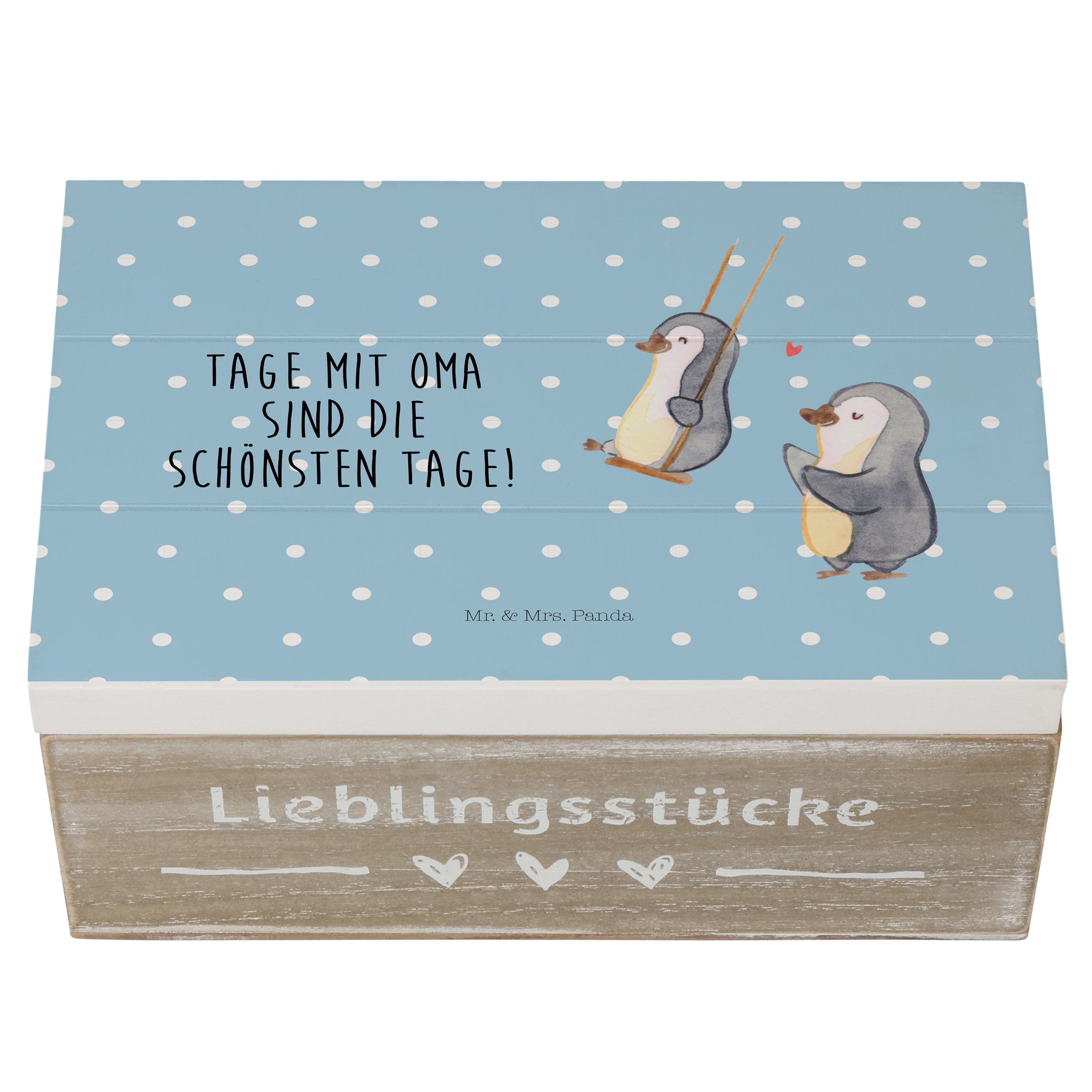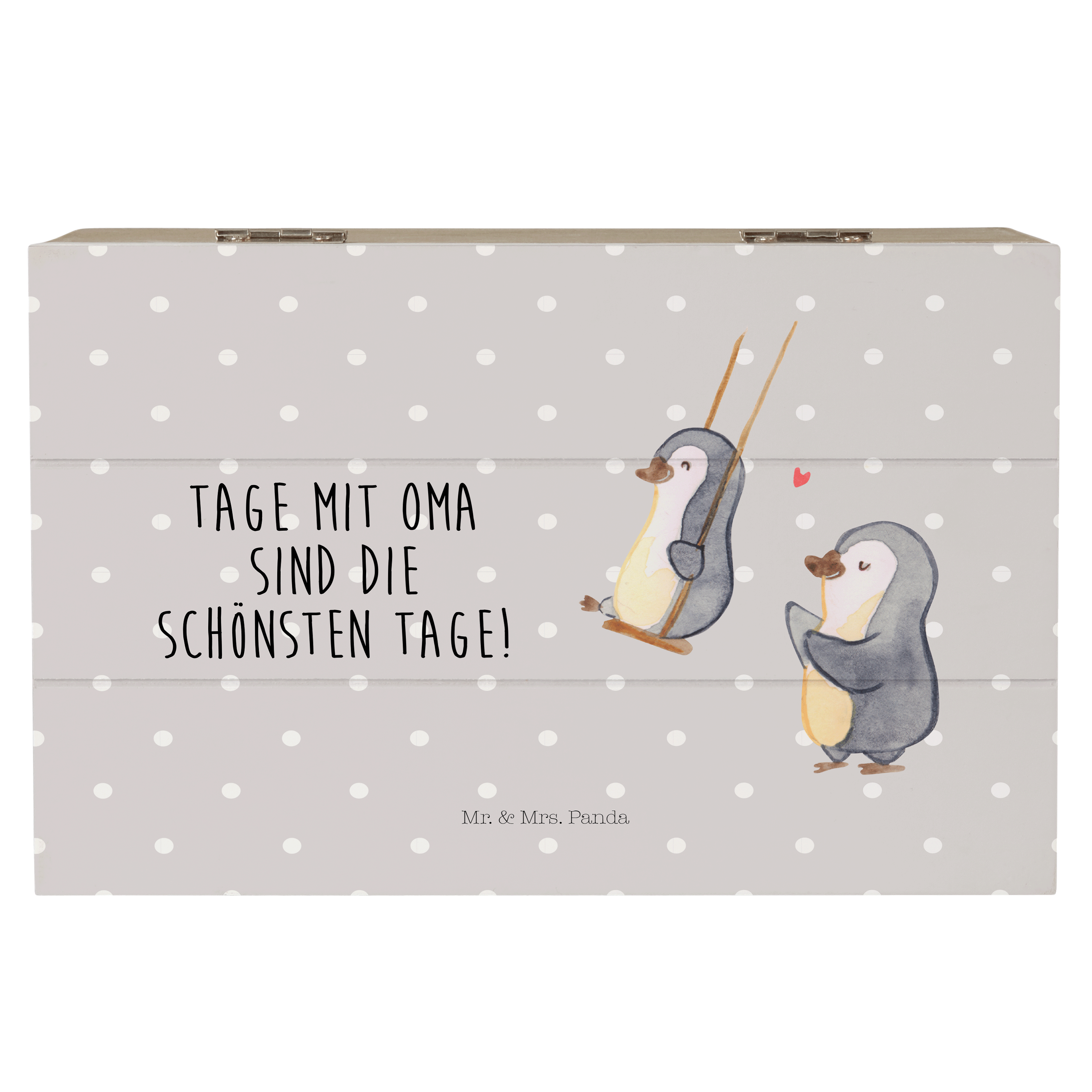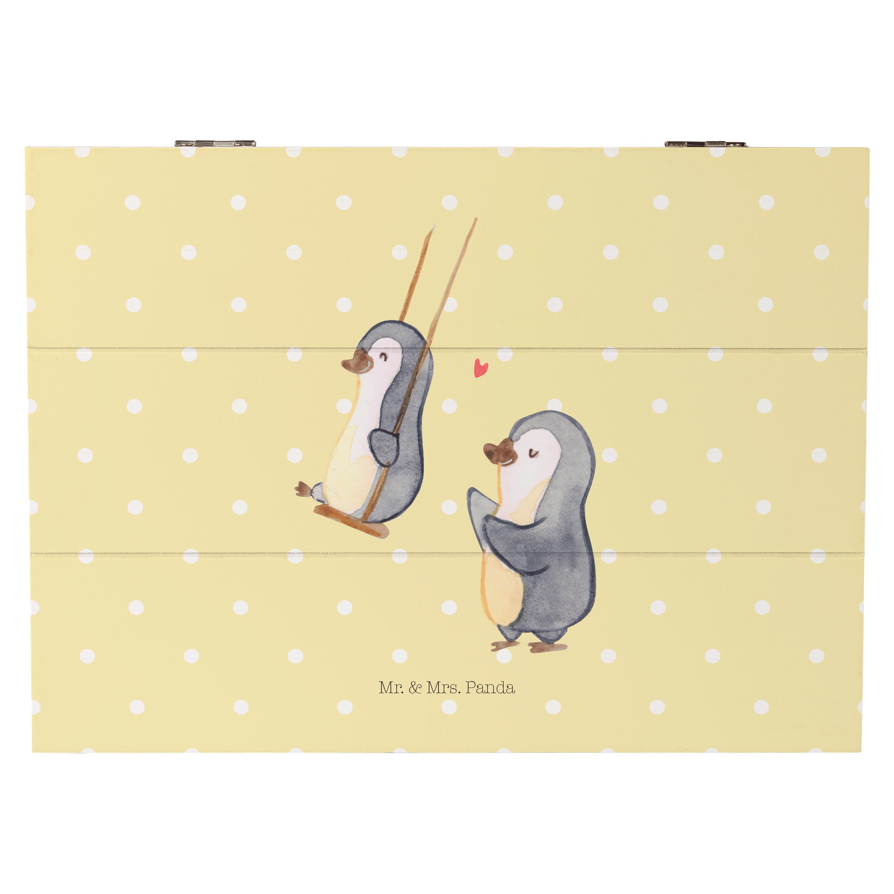 Holzkiste Pinguin Oma schaukeln - 25 x 18 cm - mit Spruch - Gelb Pastell