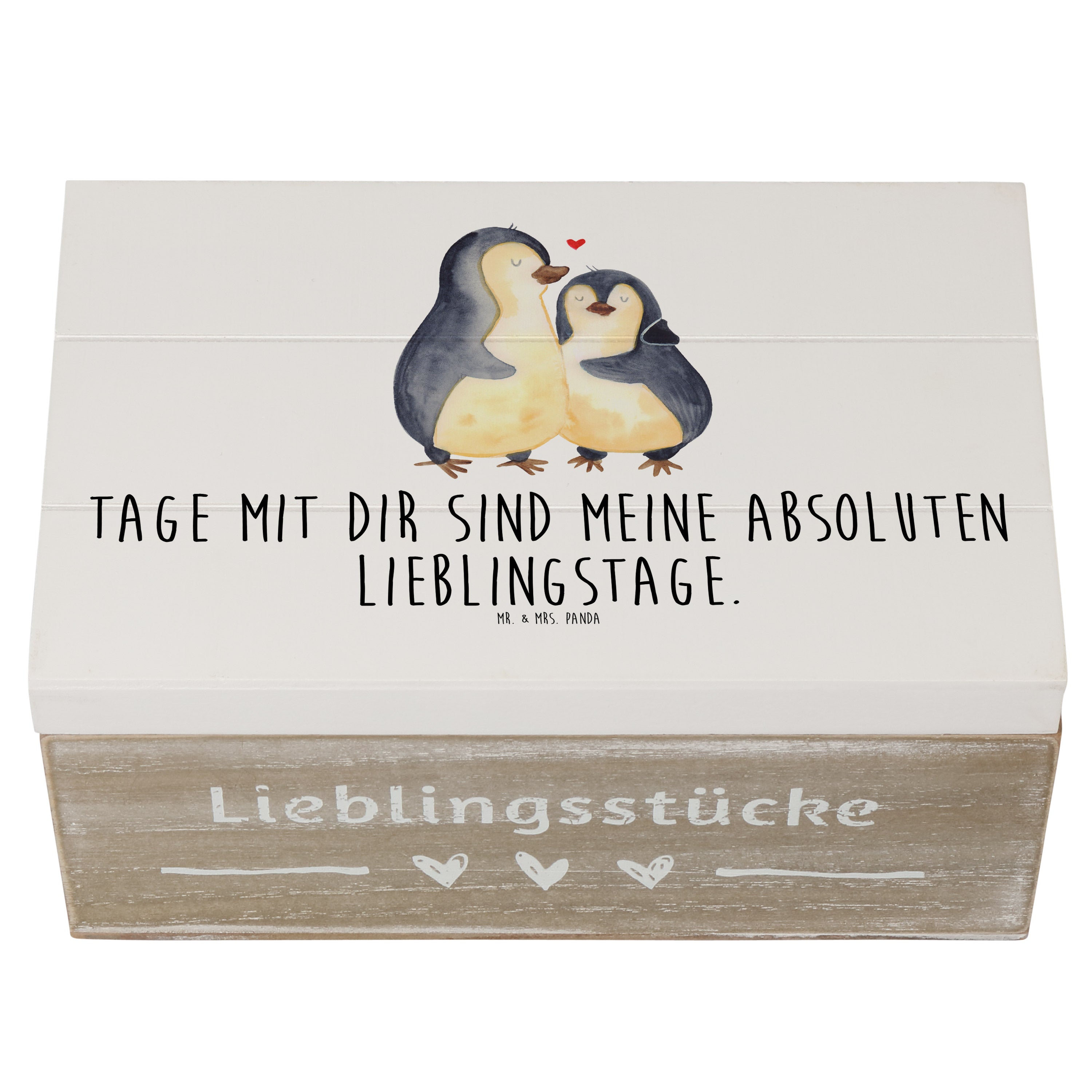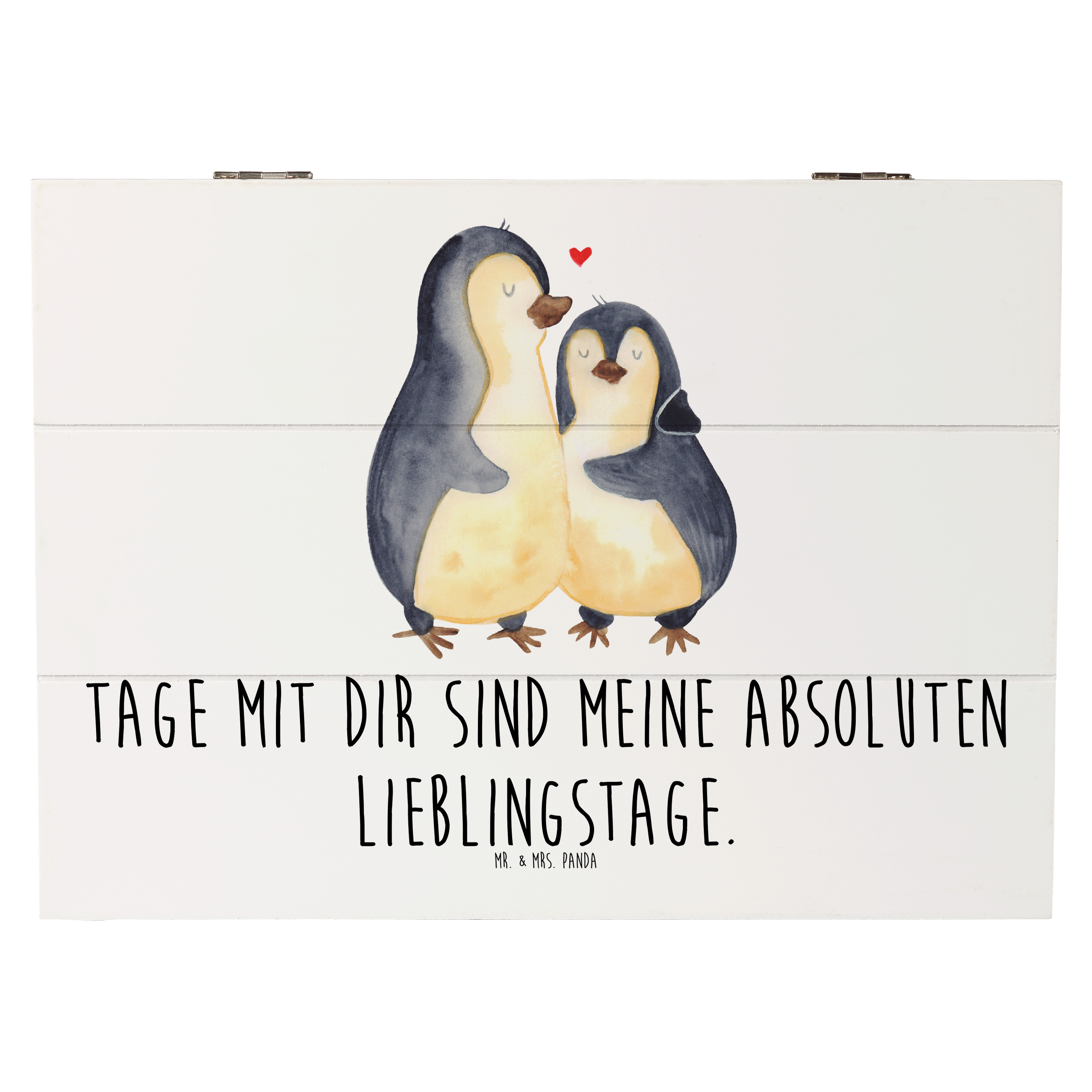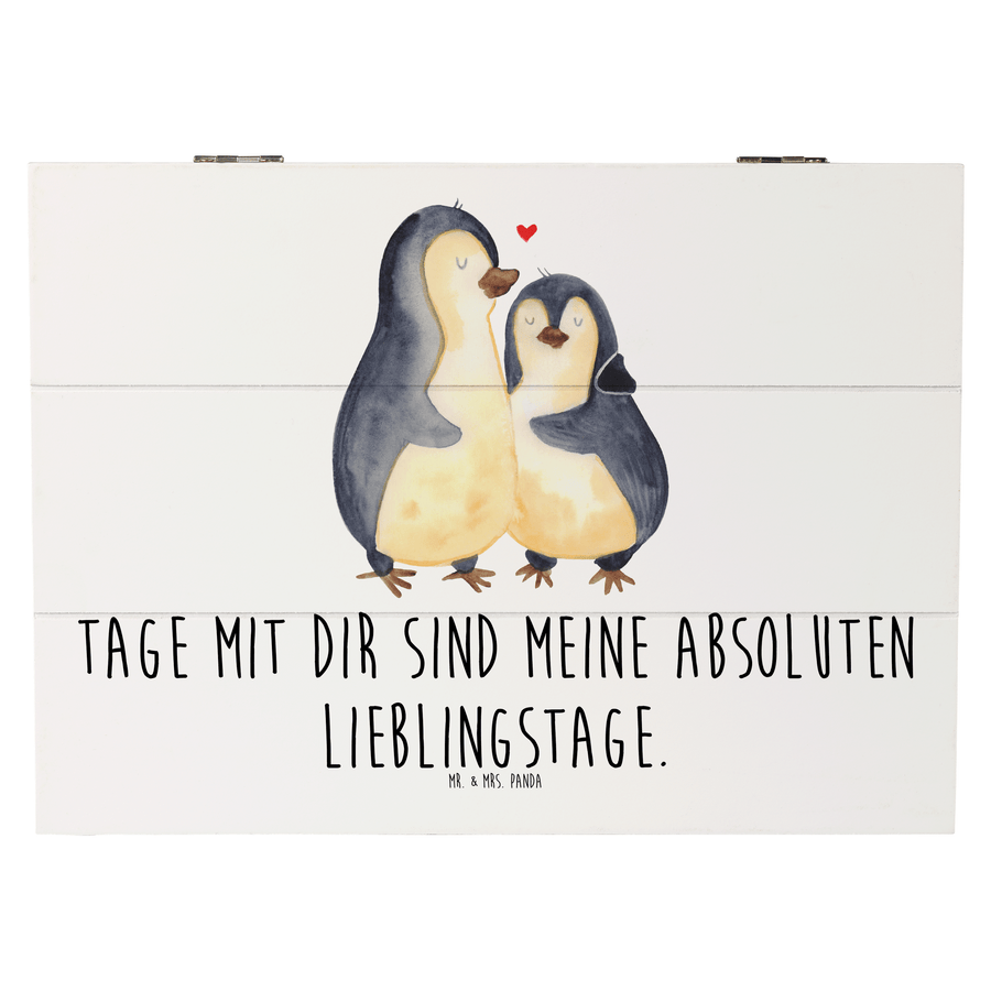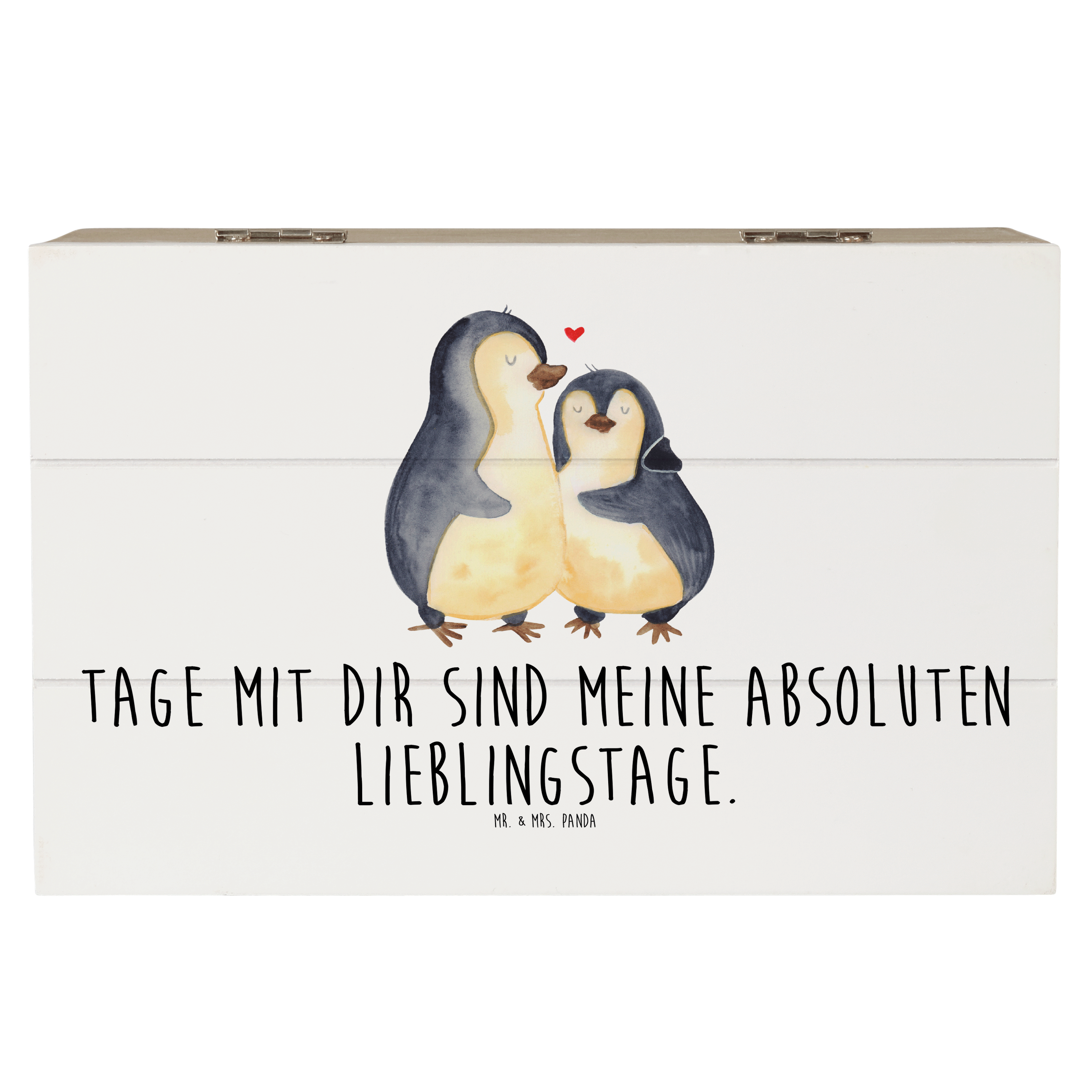 Holzkiste Pinguin umarmend - 25 x 18 cm - mit Spruch - Weiß