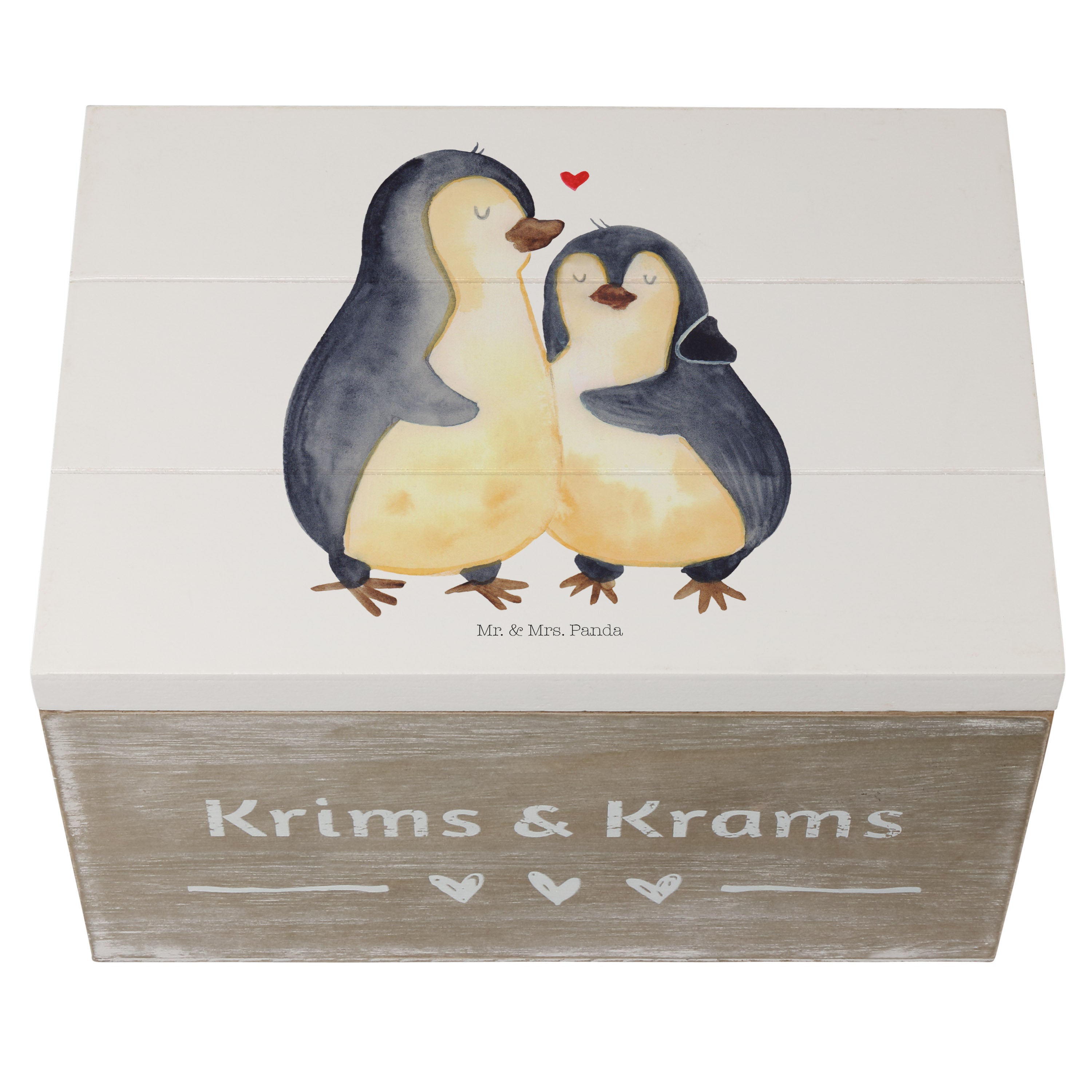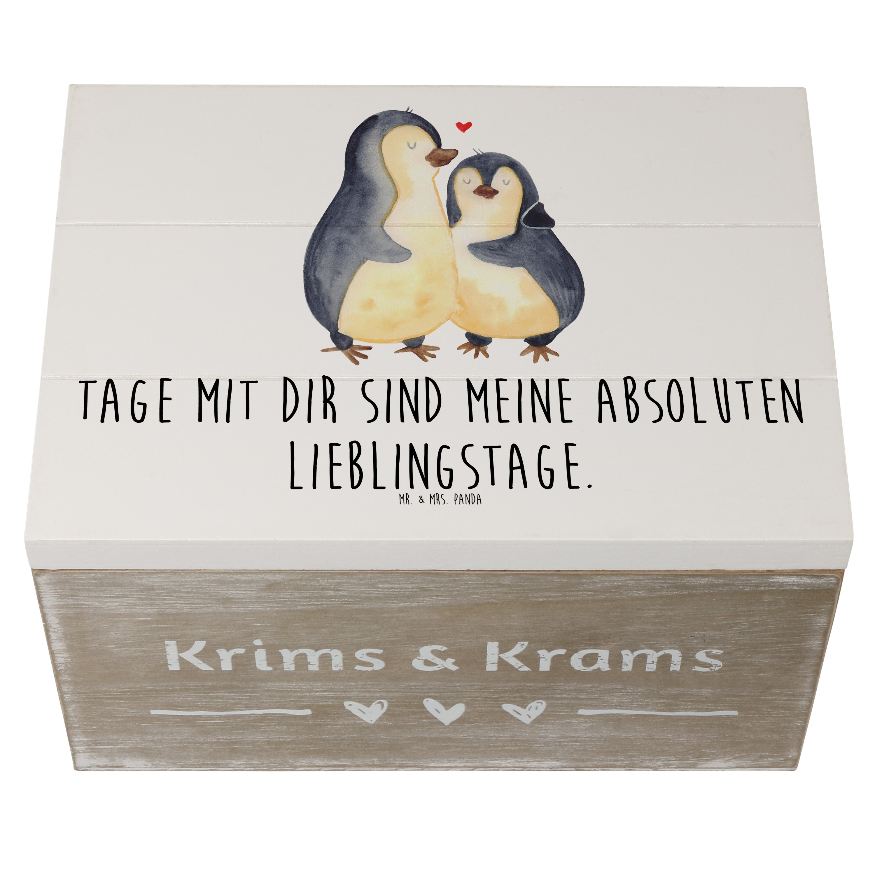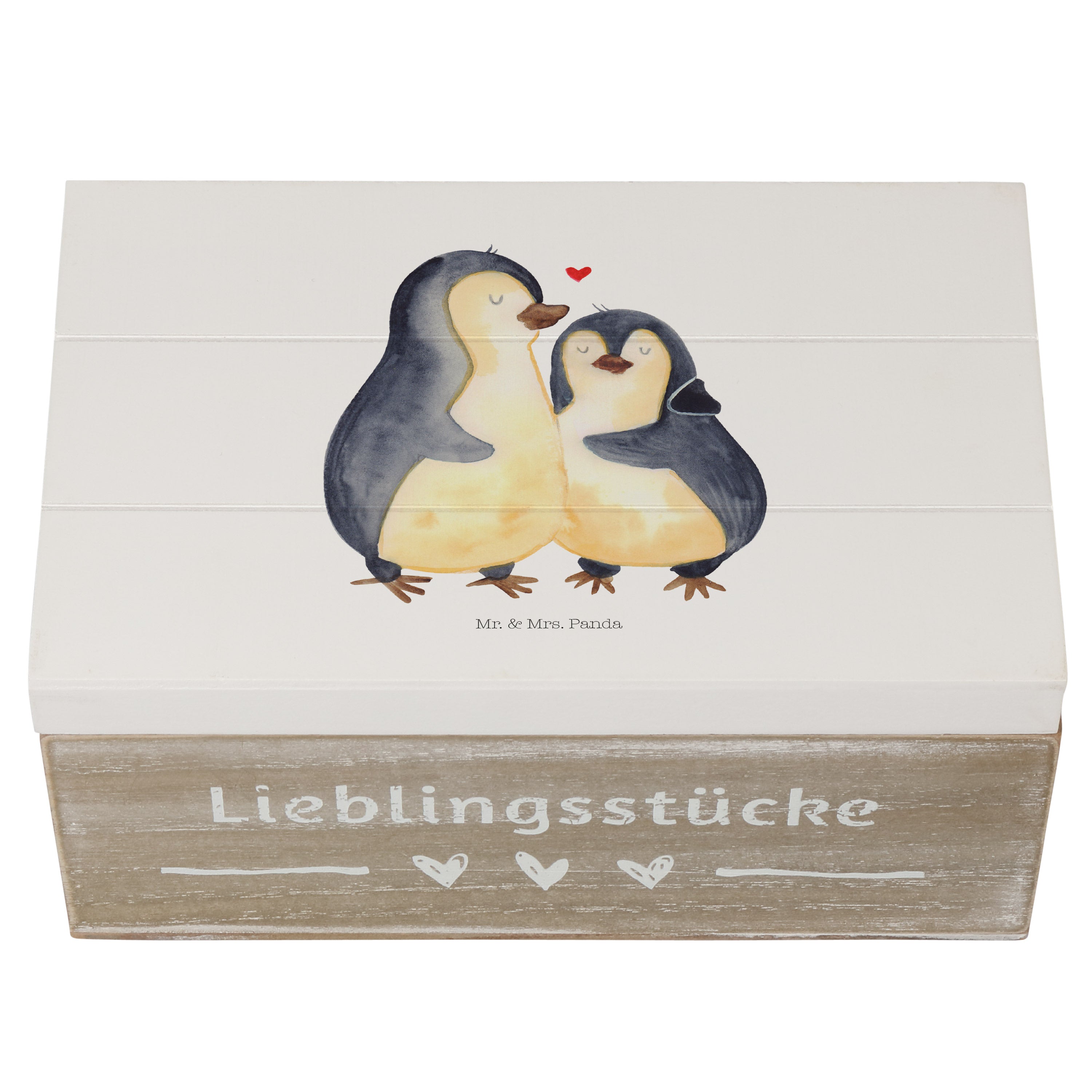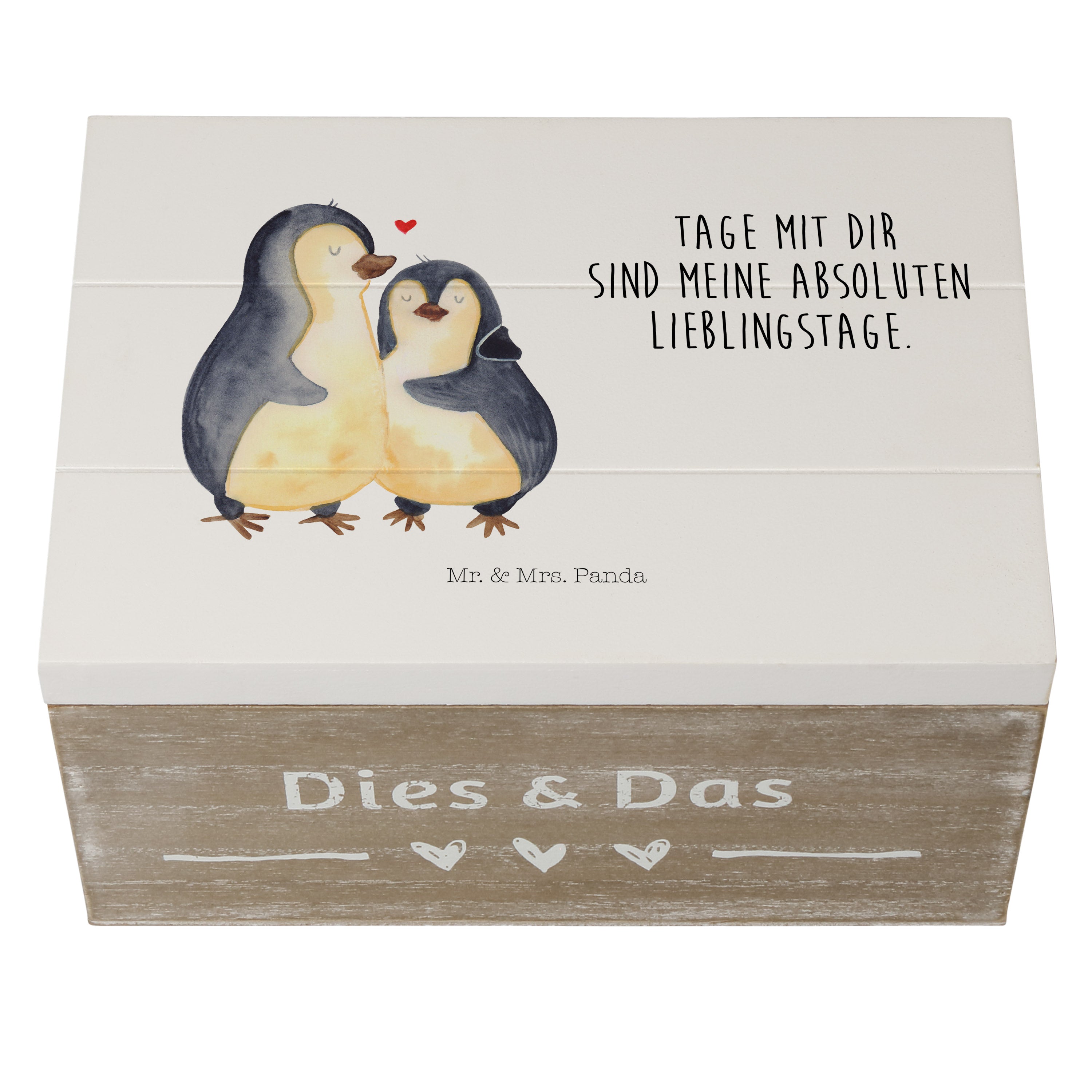 Holzkiste Pinguin umarmend - 25 x 18 cm - mit Spruch - Weiß