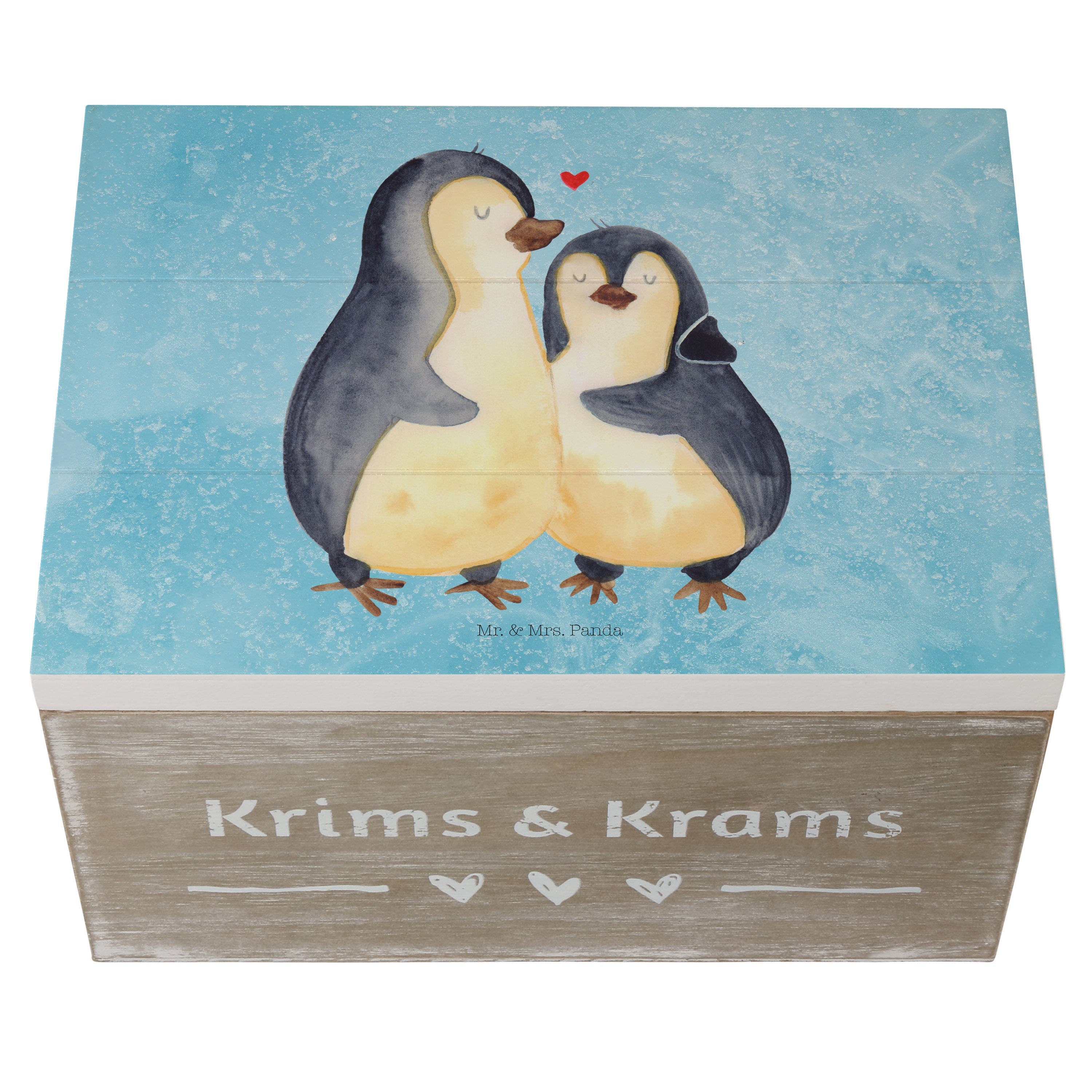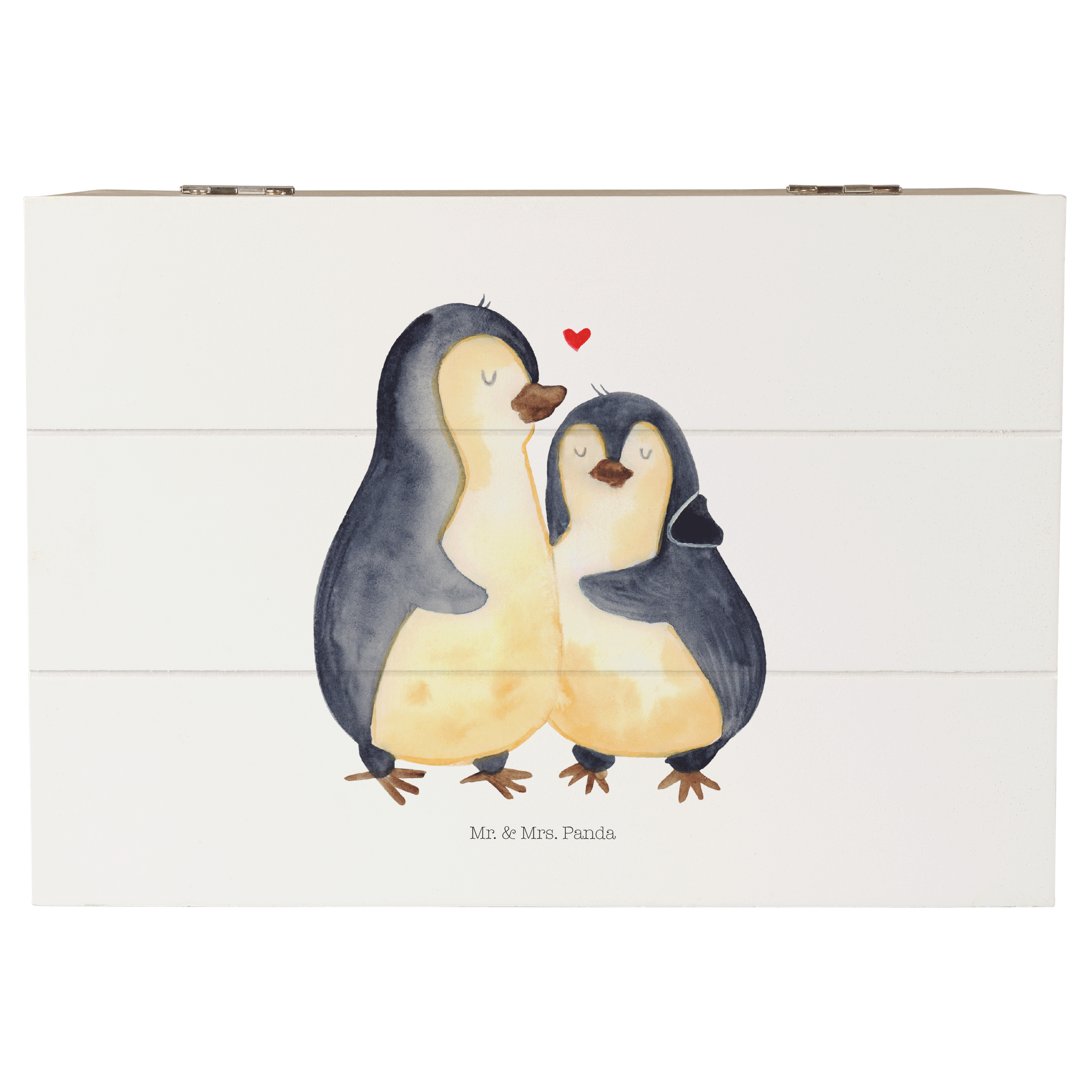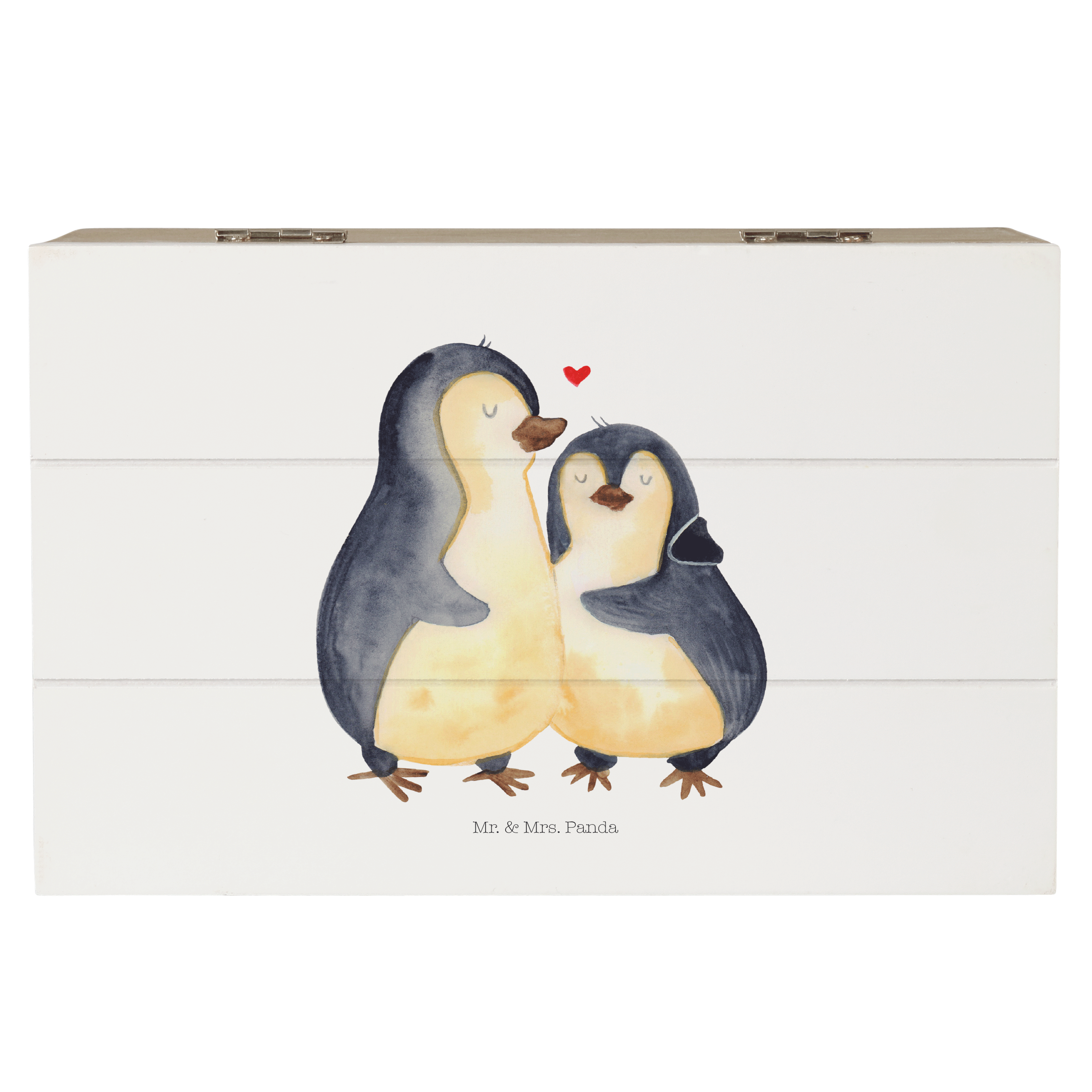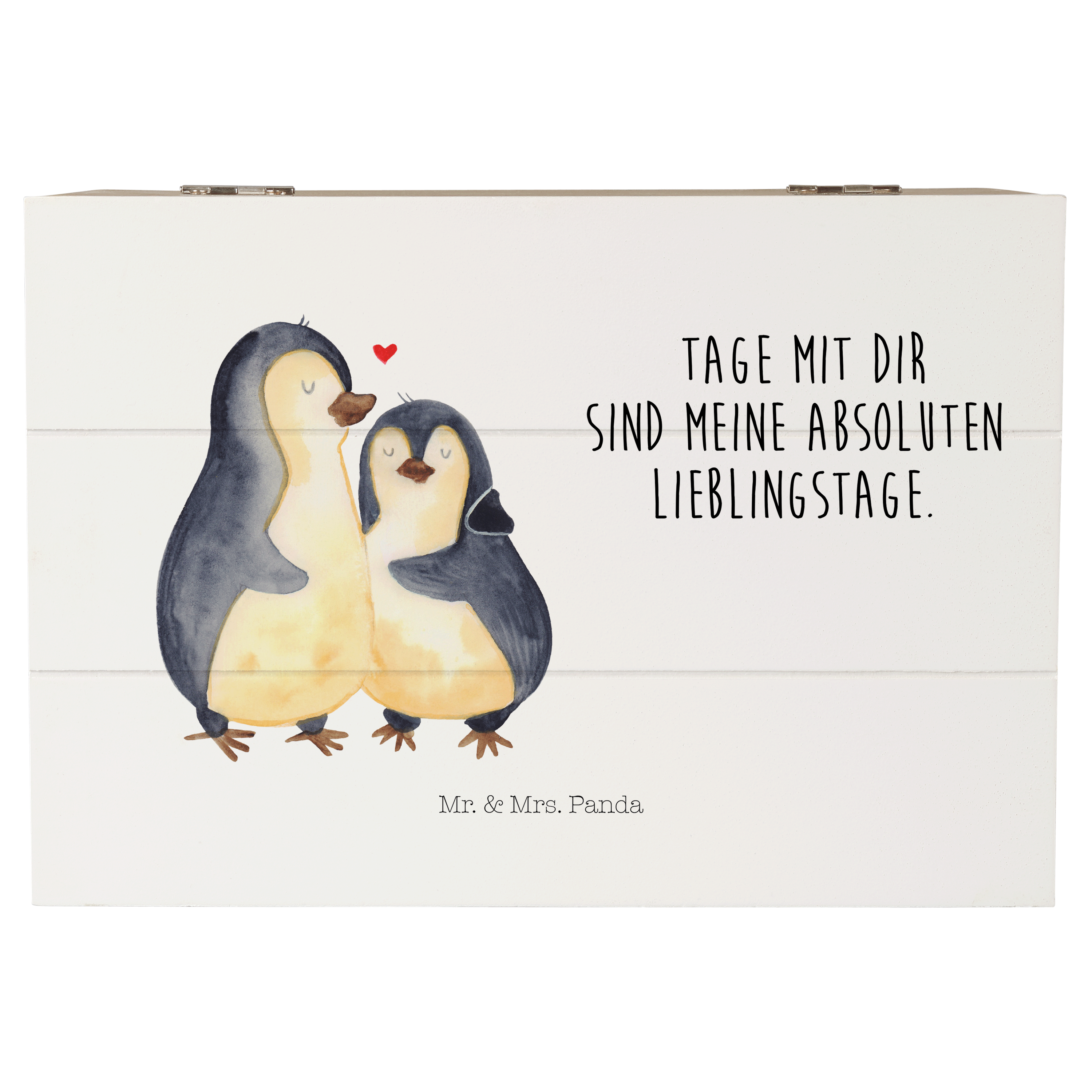 Holzkiste Pinguin umarmend - 25 x 18 cm - mit Spruch - Weiß