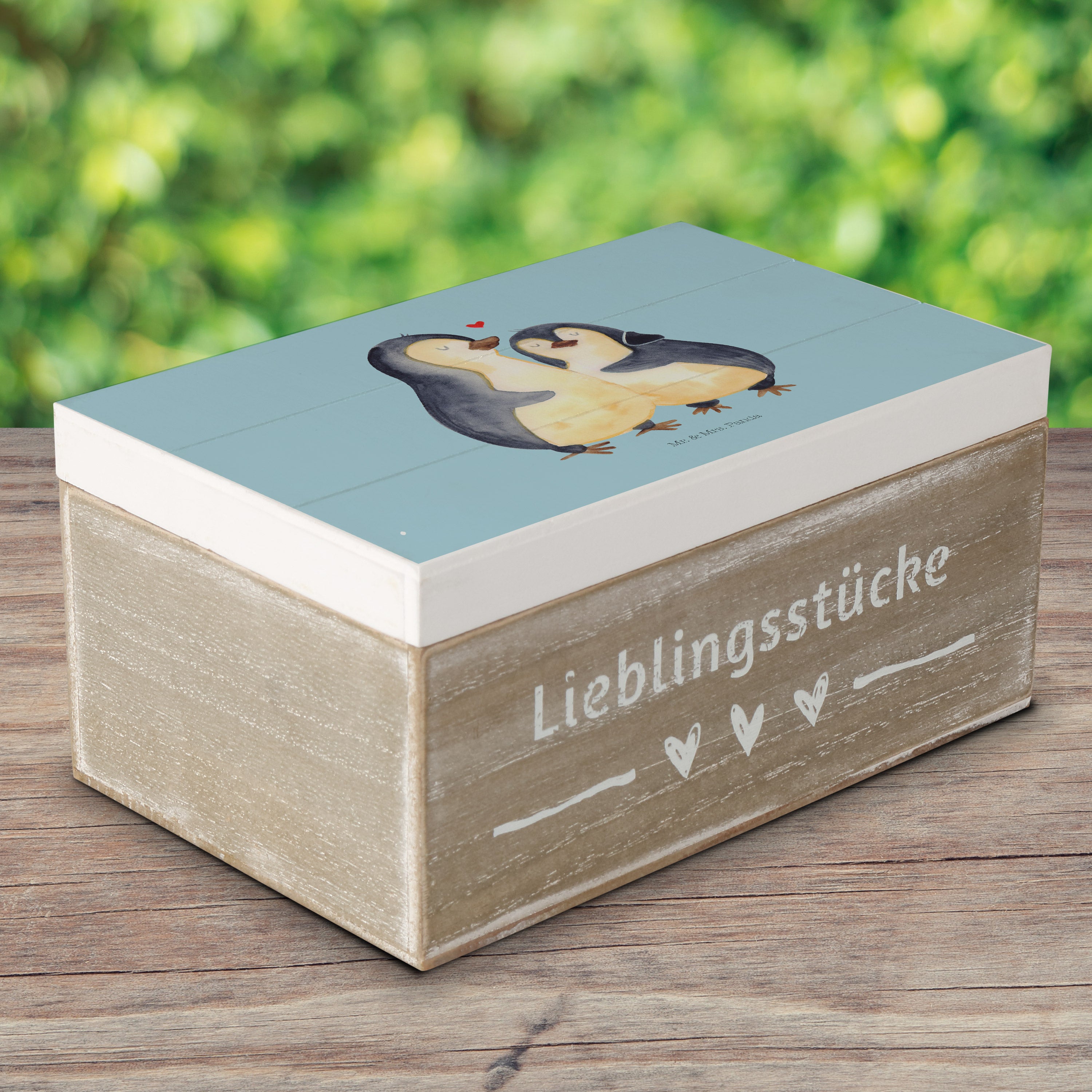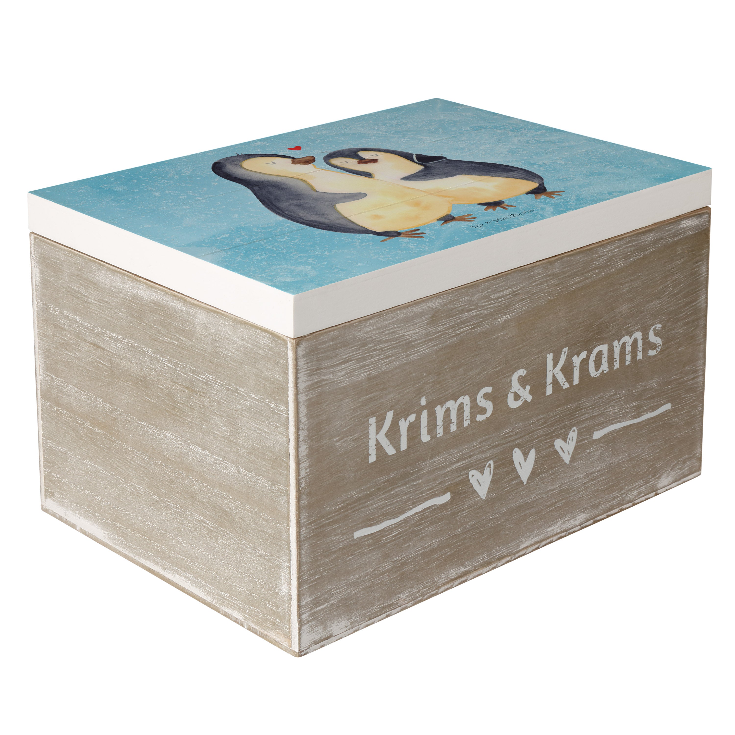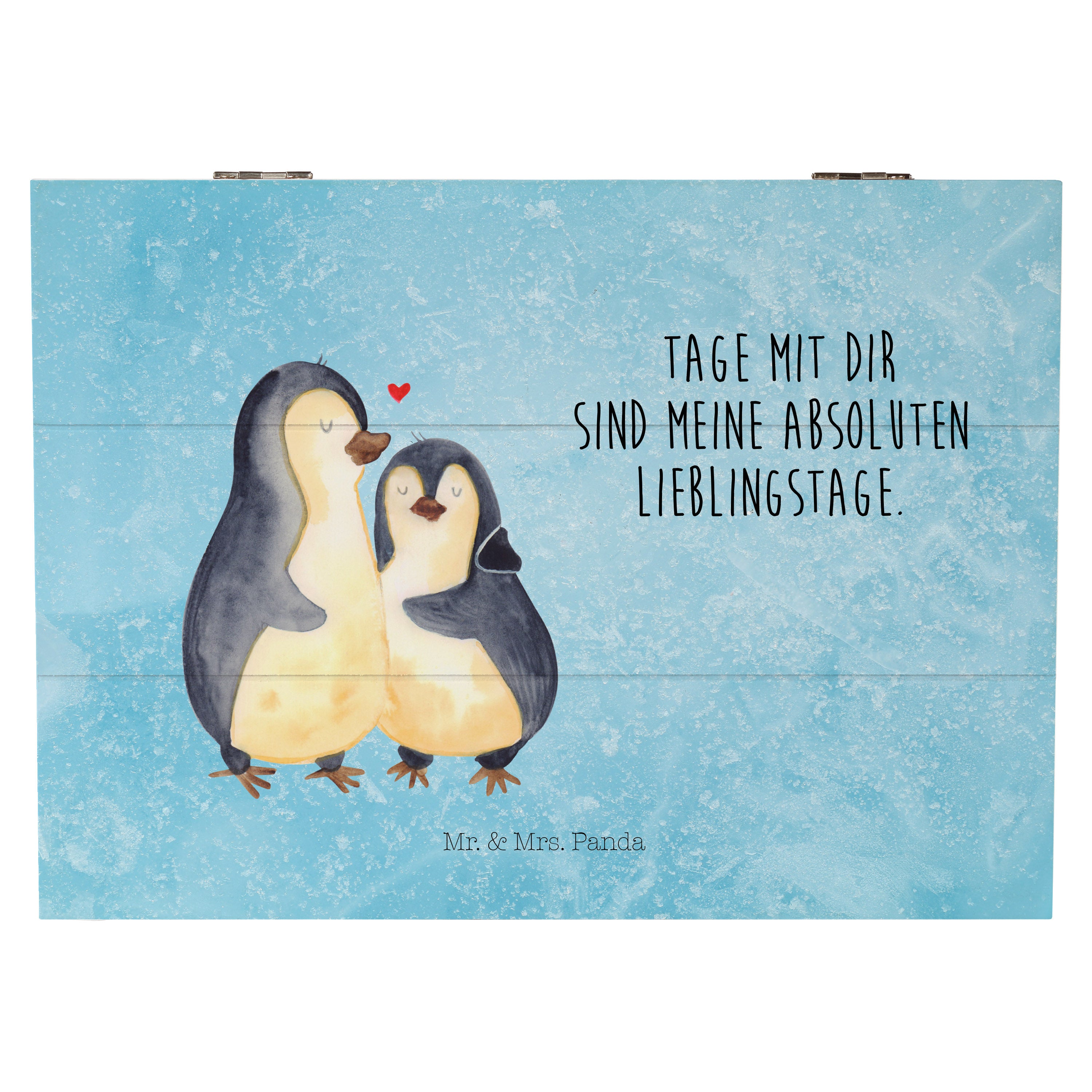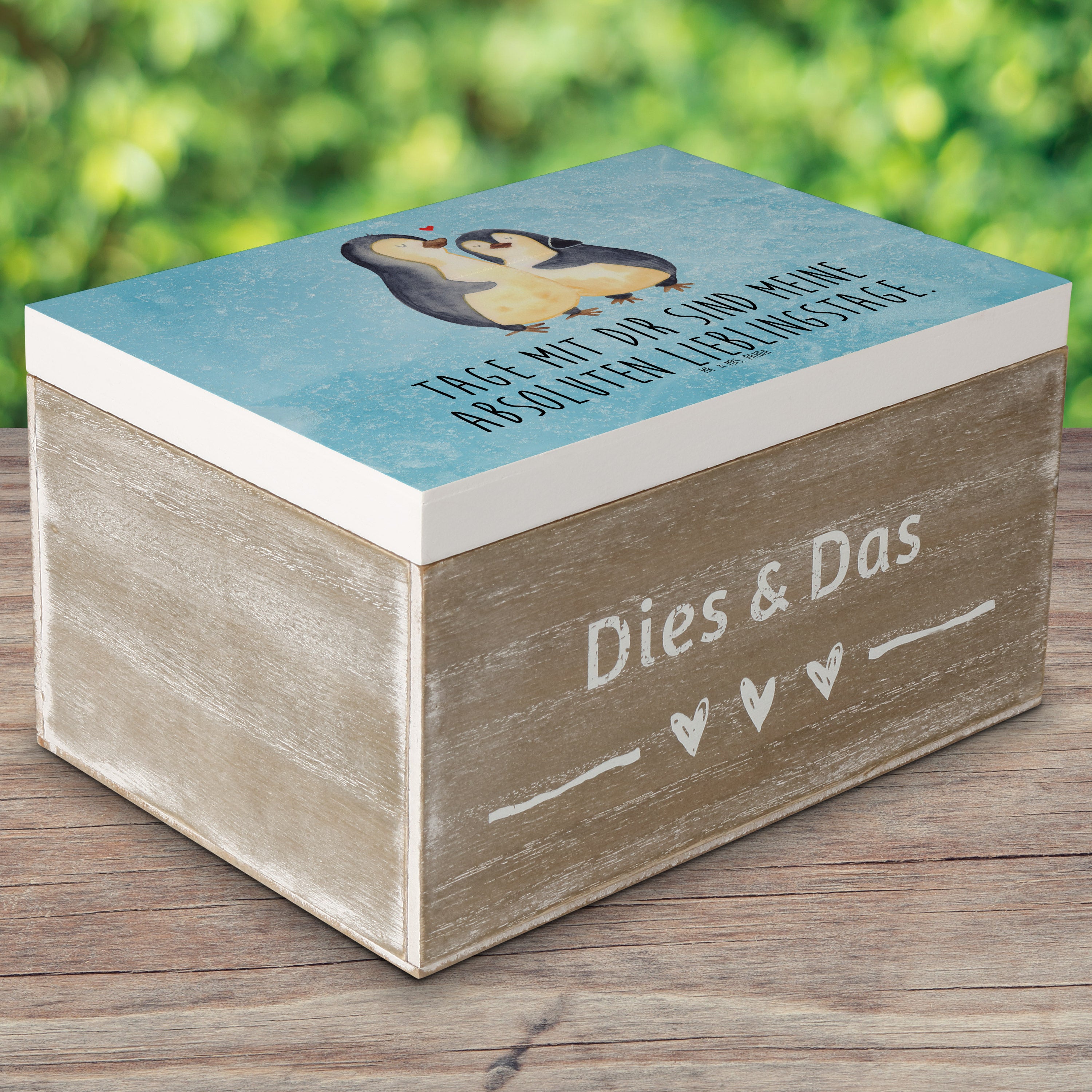 Holzkiste Pinguin umarmend - 25 x 18 cm - mit Spruch - Weiß