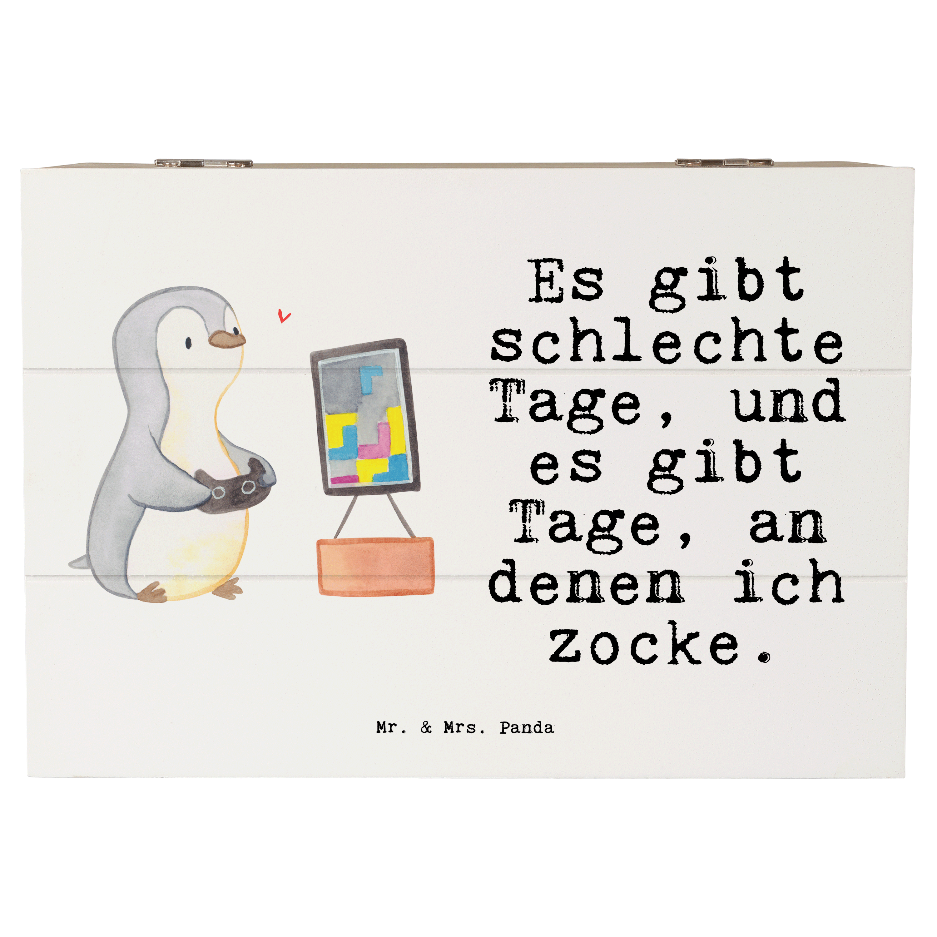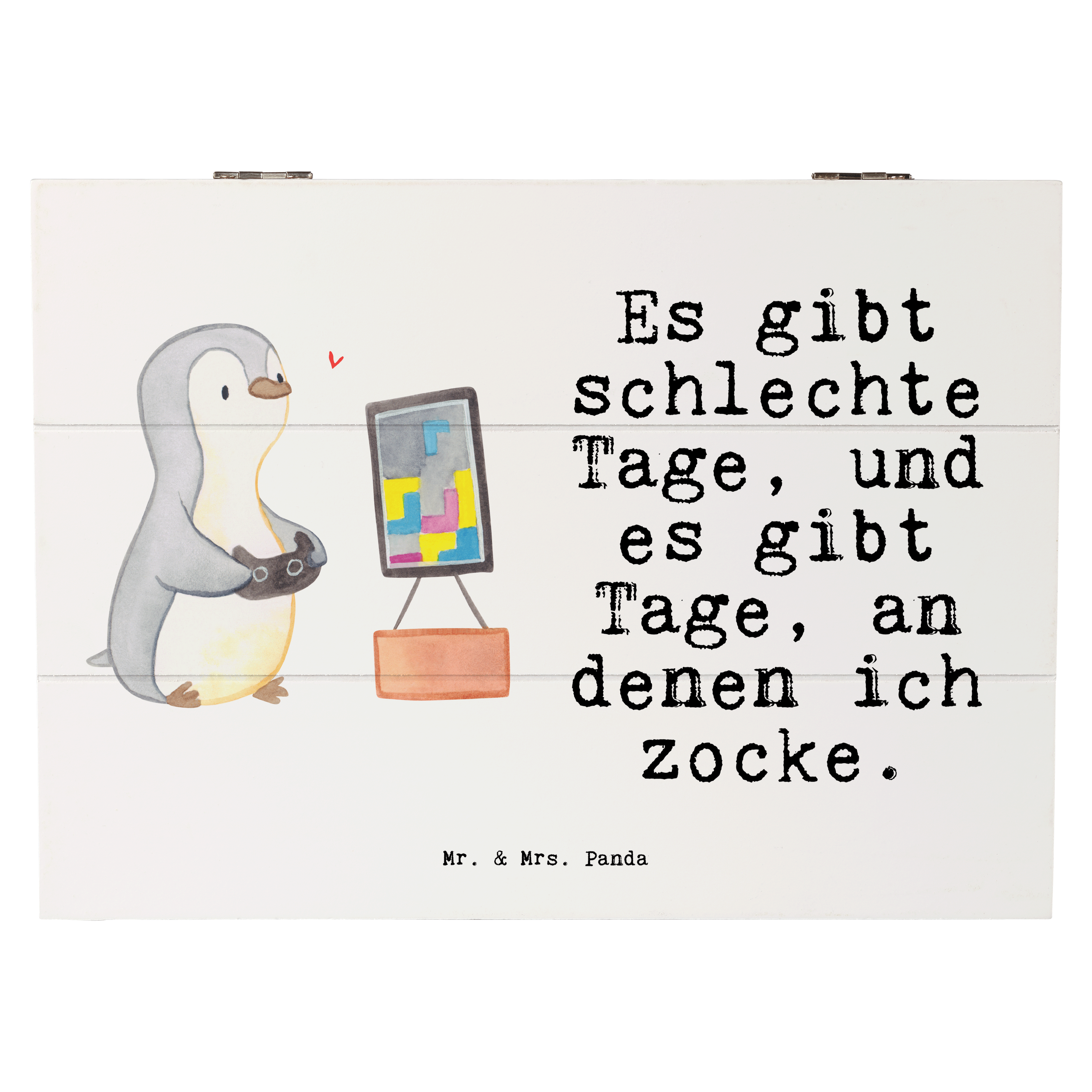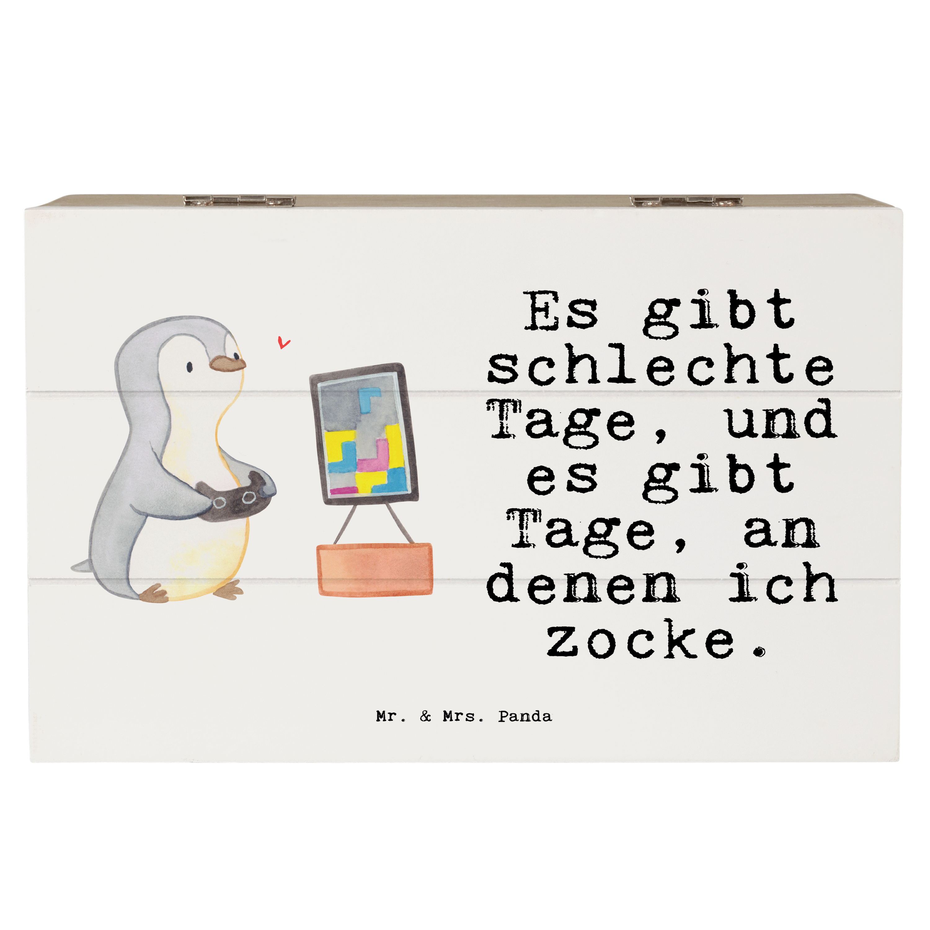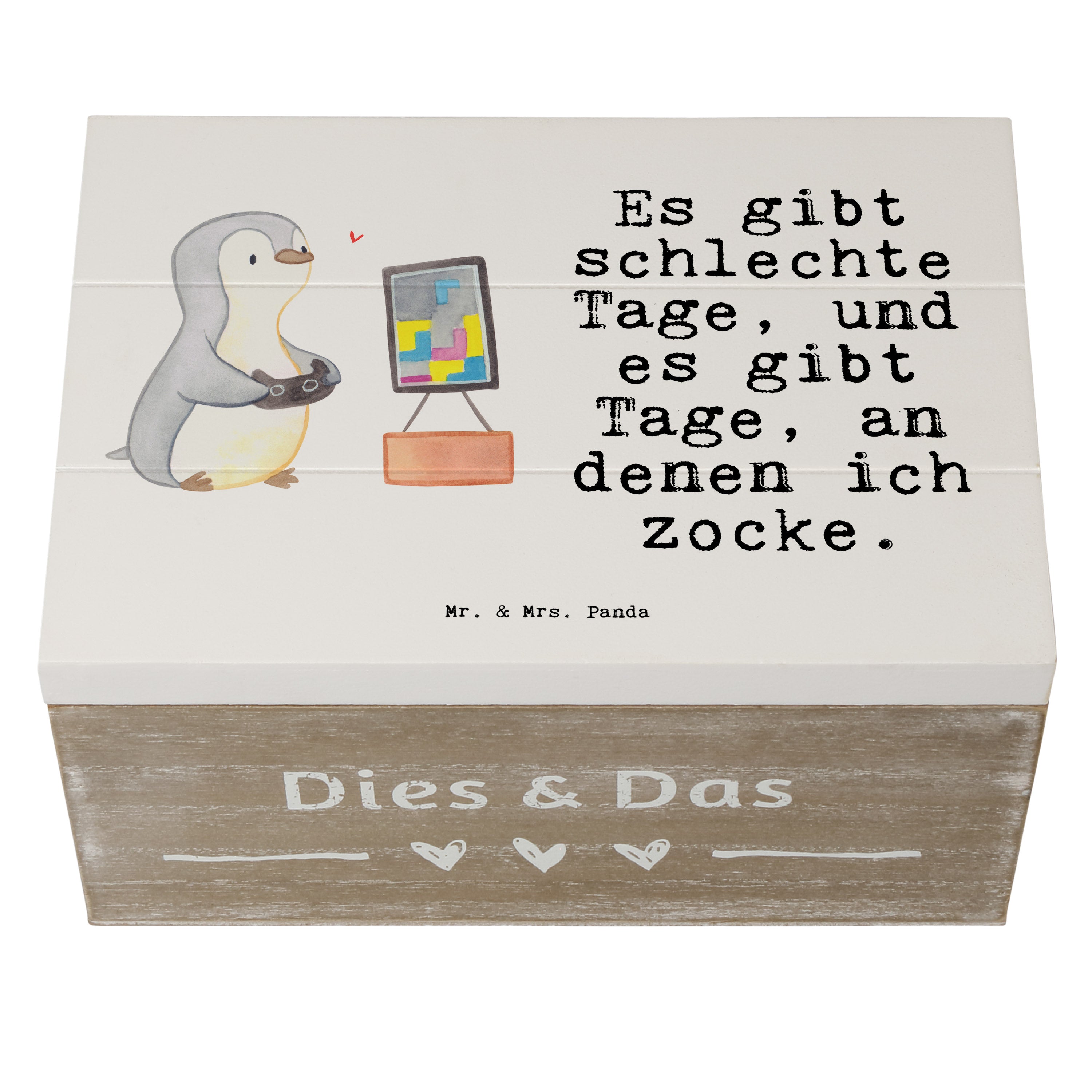 Holzkiste Pinguin Zocken Tage - 19 x 12 cm