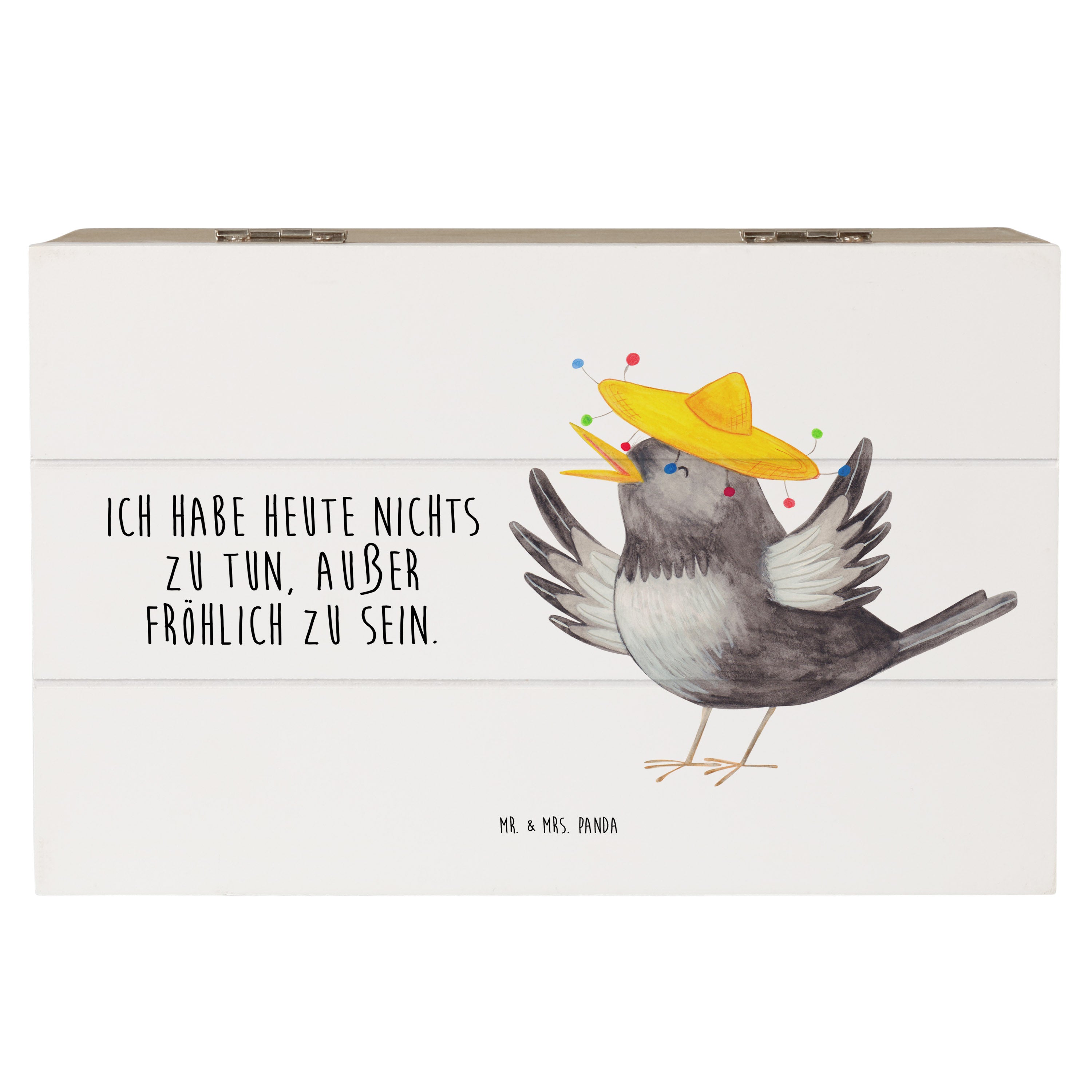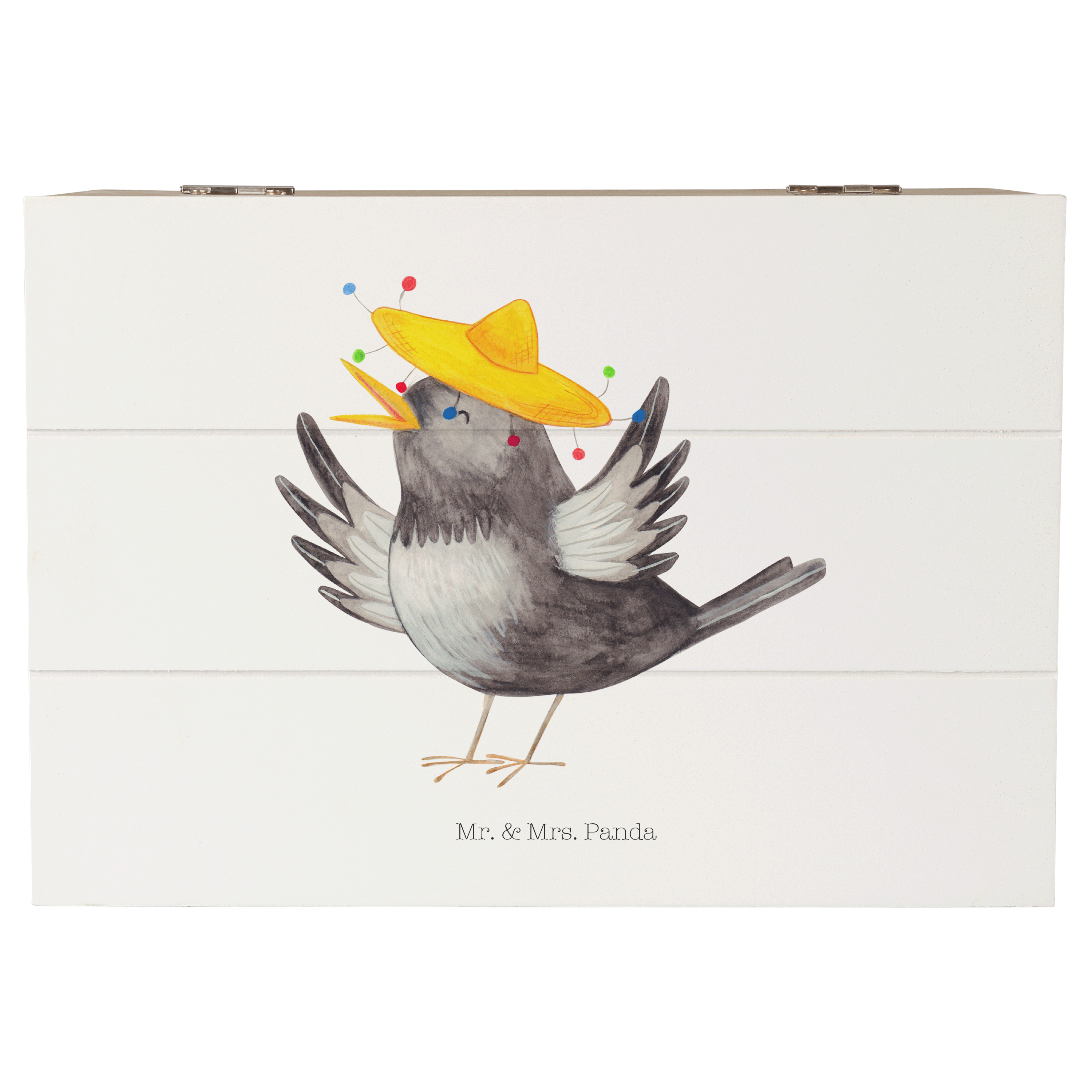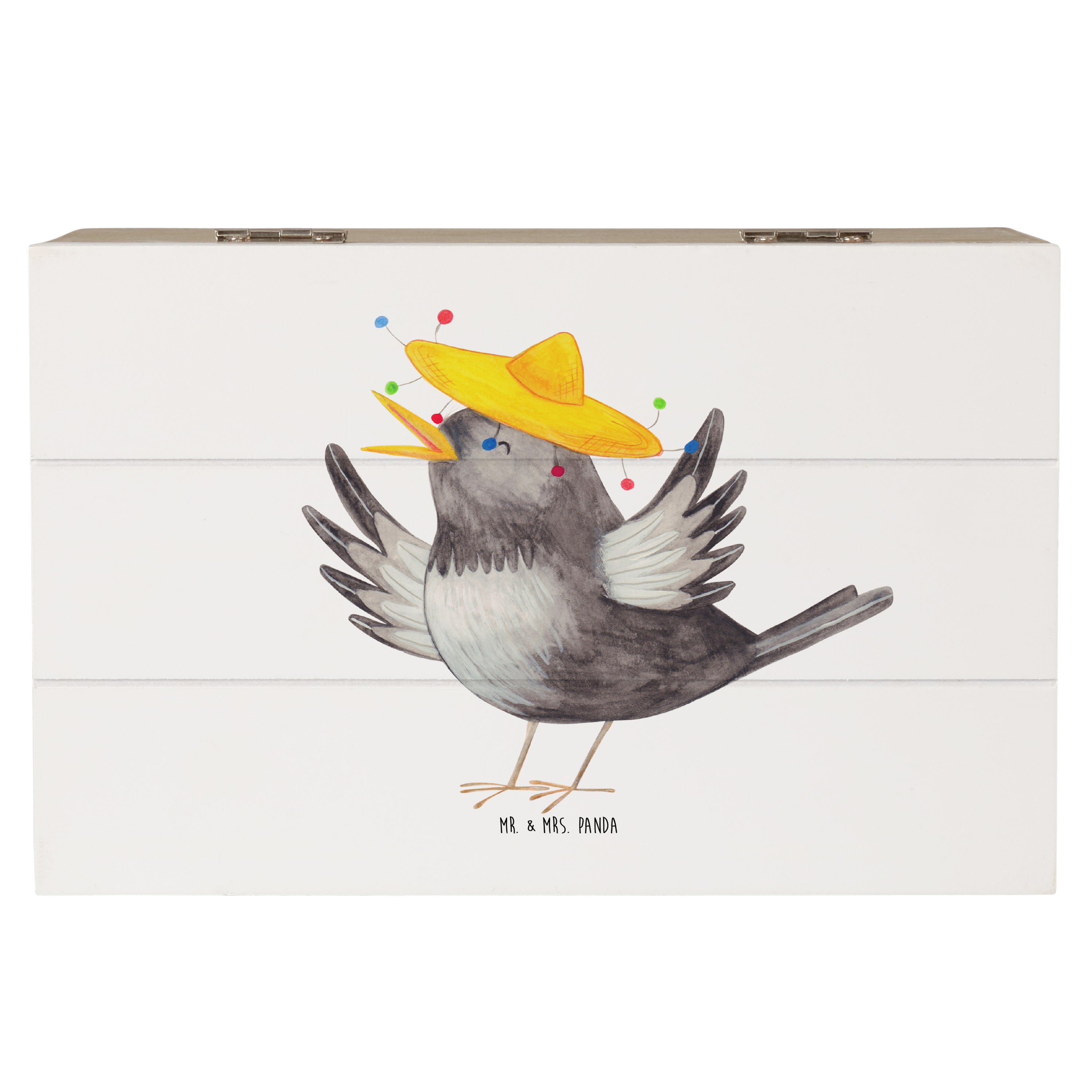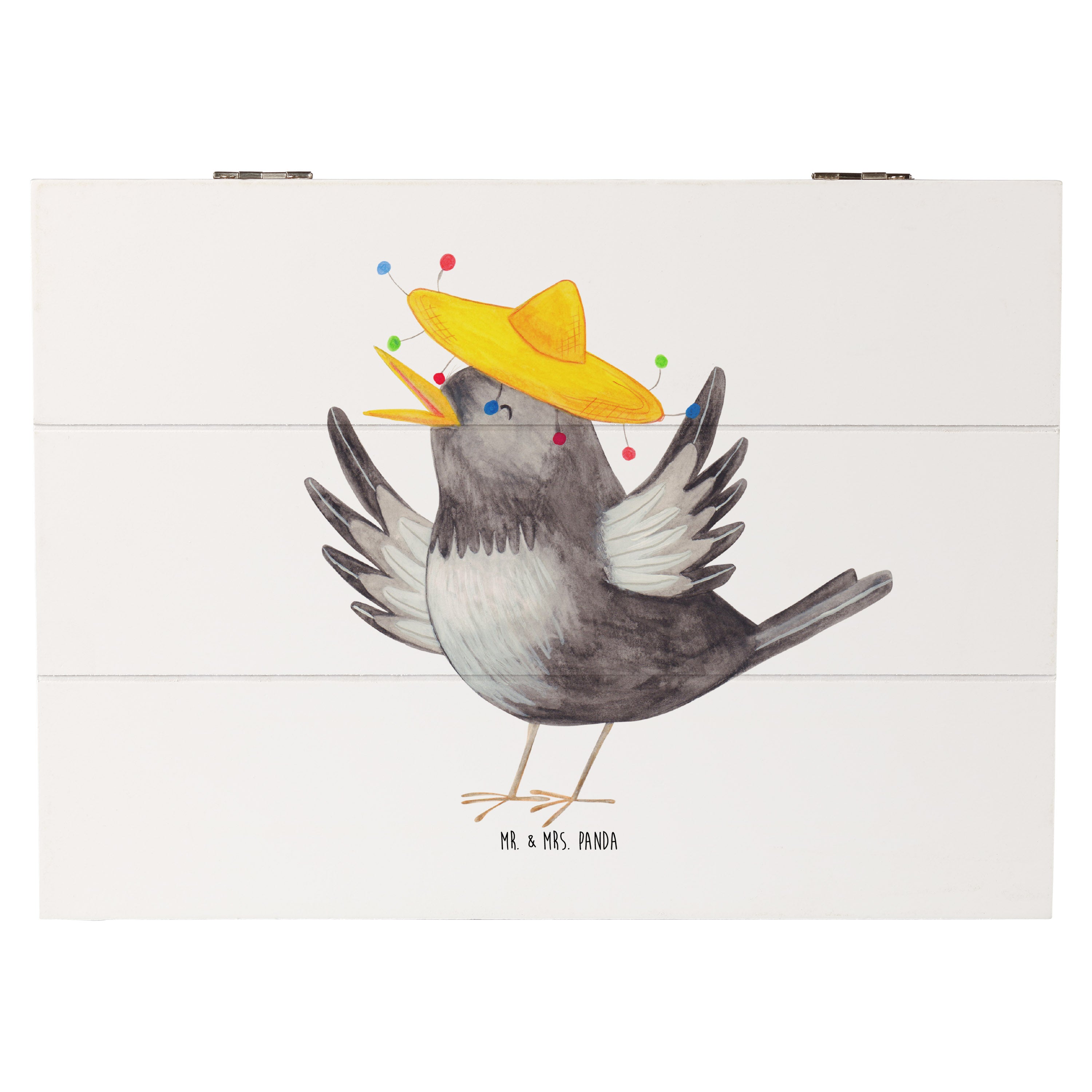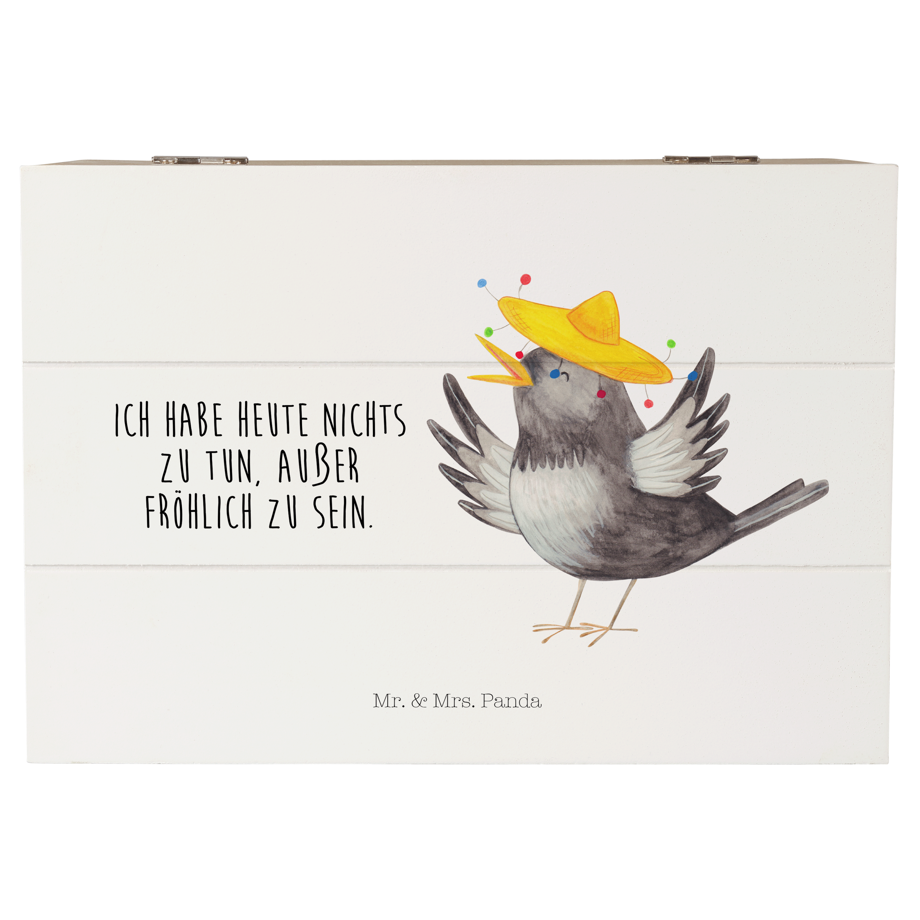 Holzkiste Rabe mit Sombrero Holzkiste, Kiste, Schatzkiste, Truhe, Schatulle, XXL, Erinnerungsbox, Erinnerungskiste, Dekokiste, Aufbewahrungsbox, Tiermotive, Gute Laune, lustige Sprüche, Tiere, Rabe, Vogel, Vögel, Spruch positiv, fröhlich sein, glücklich sein, Glück Spruch, froh, Elster, Motivation