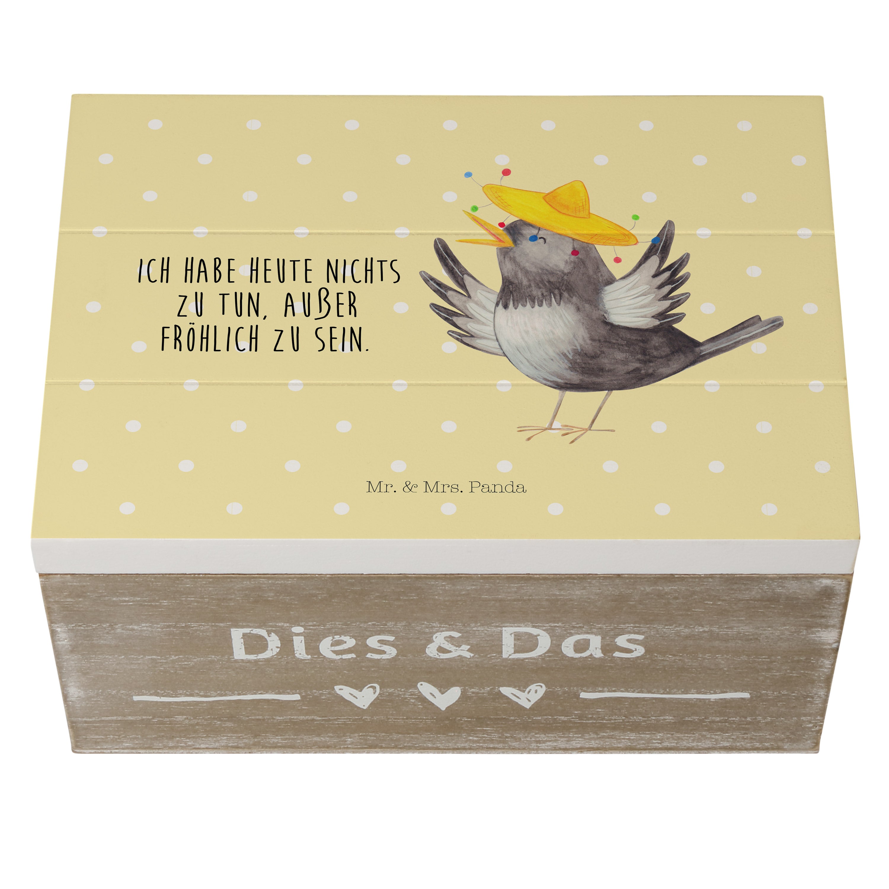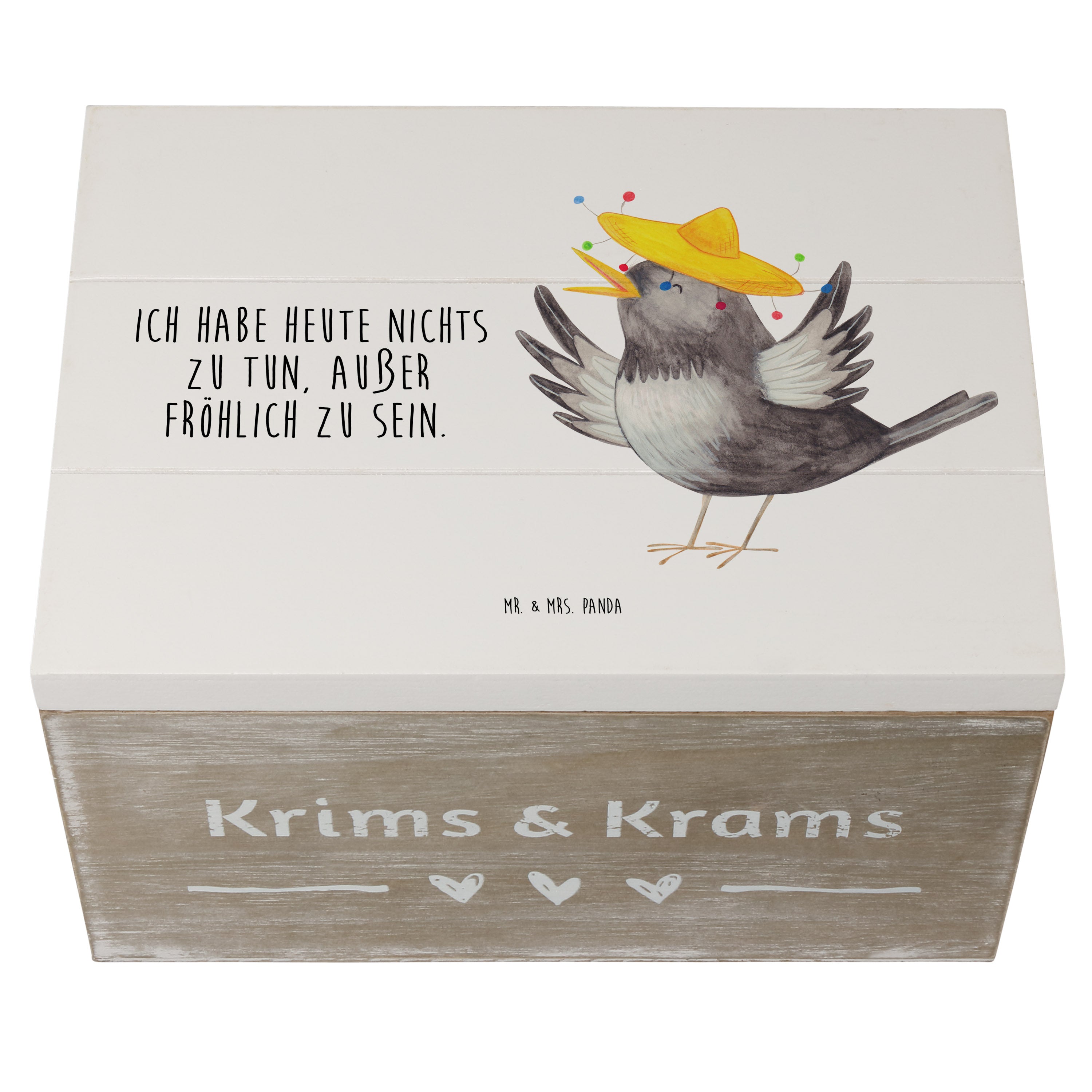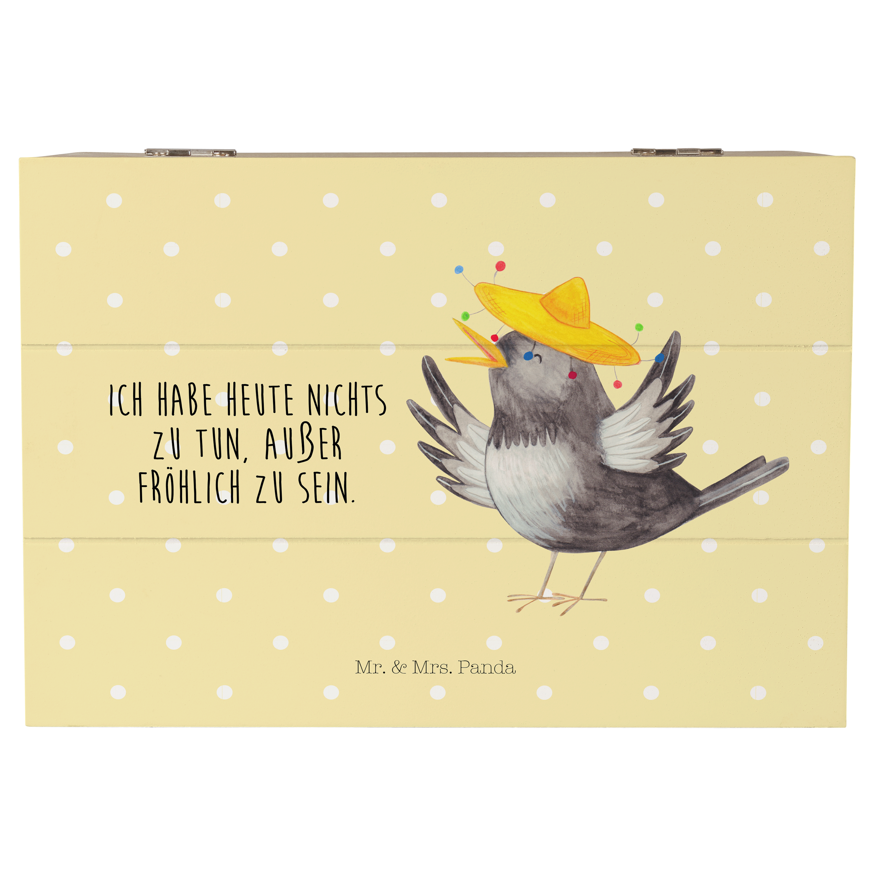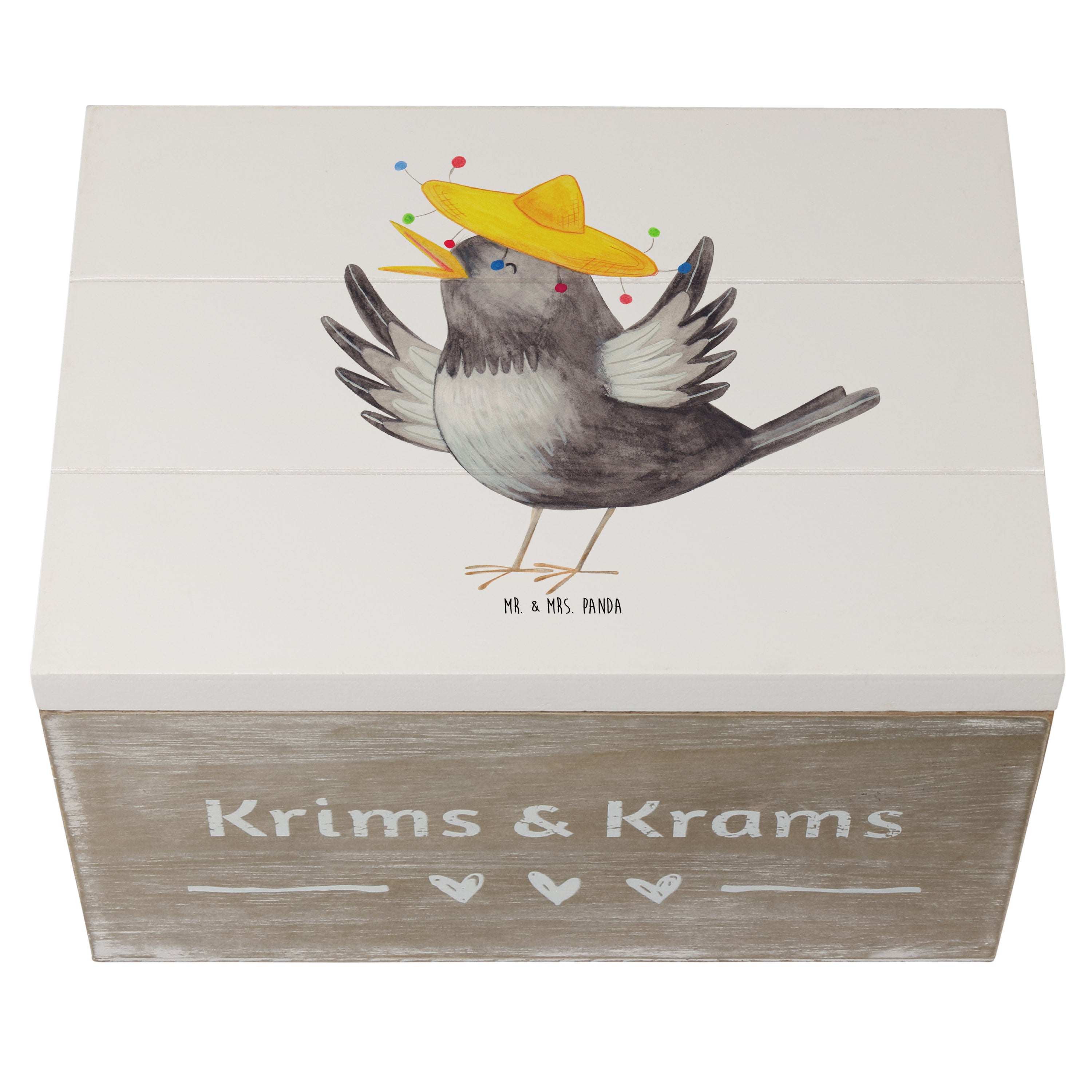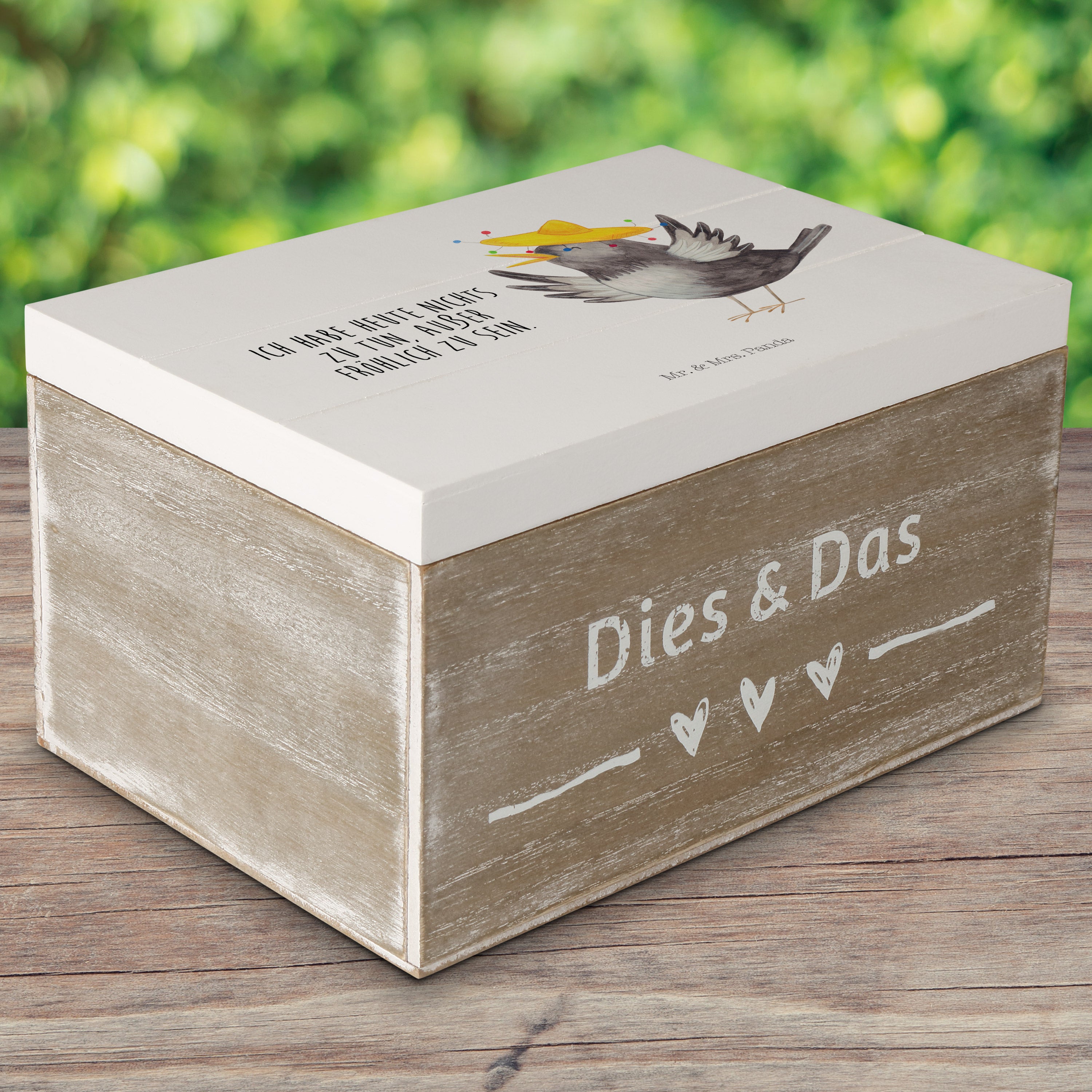 Holzkiste Rabe mit Sombrero Holzkiste, Kiste, Schatzkiste, Truhe, Schatulle, XXL, Erinnerungsbox, Erinnerungskiste, Dekokiste, Aufbewahrungsbox, Tiermotive, Gute Laune, lustige Sprüche, Tiere, Rabe, Vogel, Vögel, Spruch positiv, fröhlich sein, glücklich sein, Glück Spruch, froh, Elster, Motivation