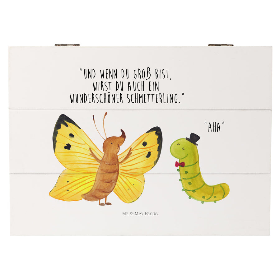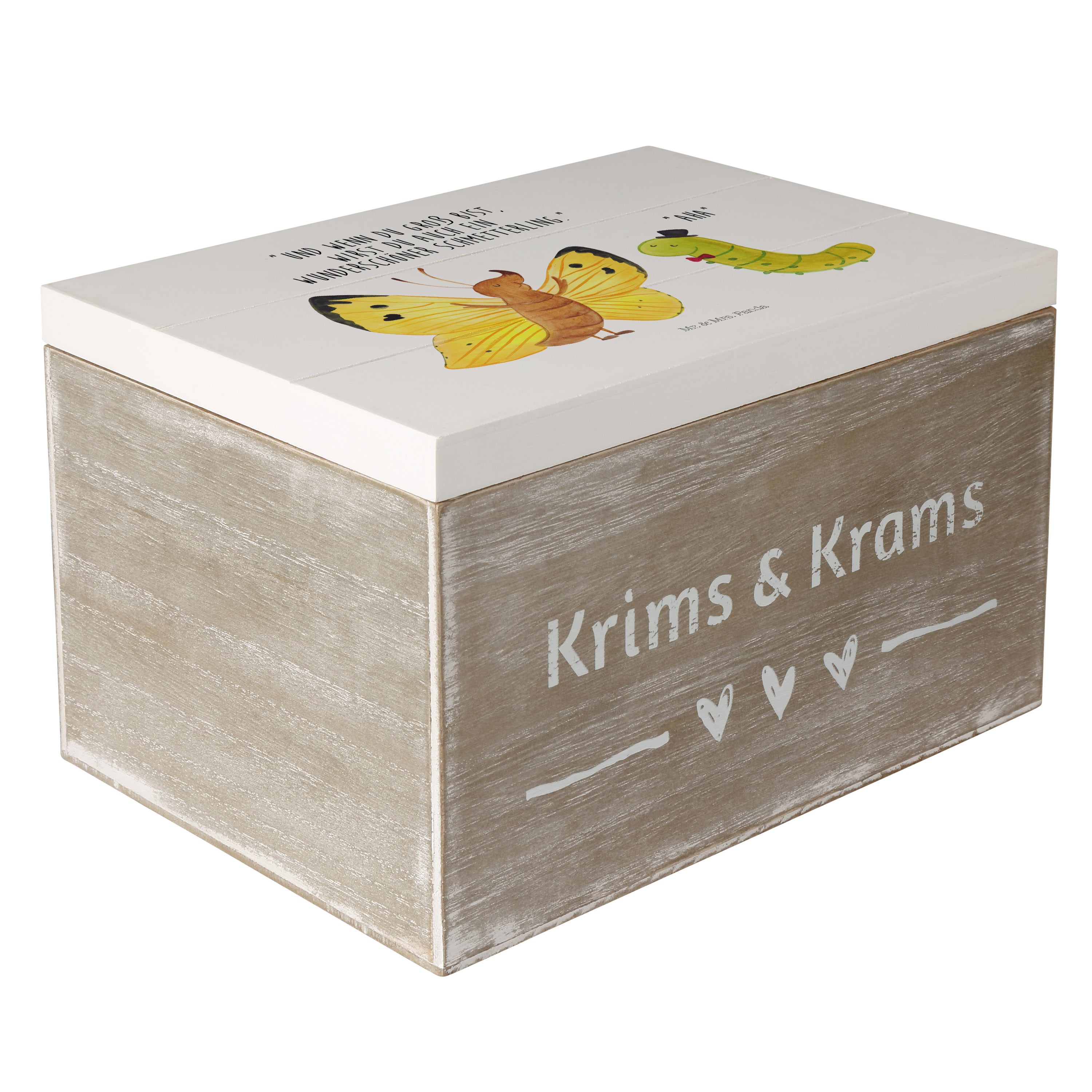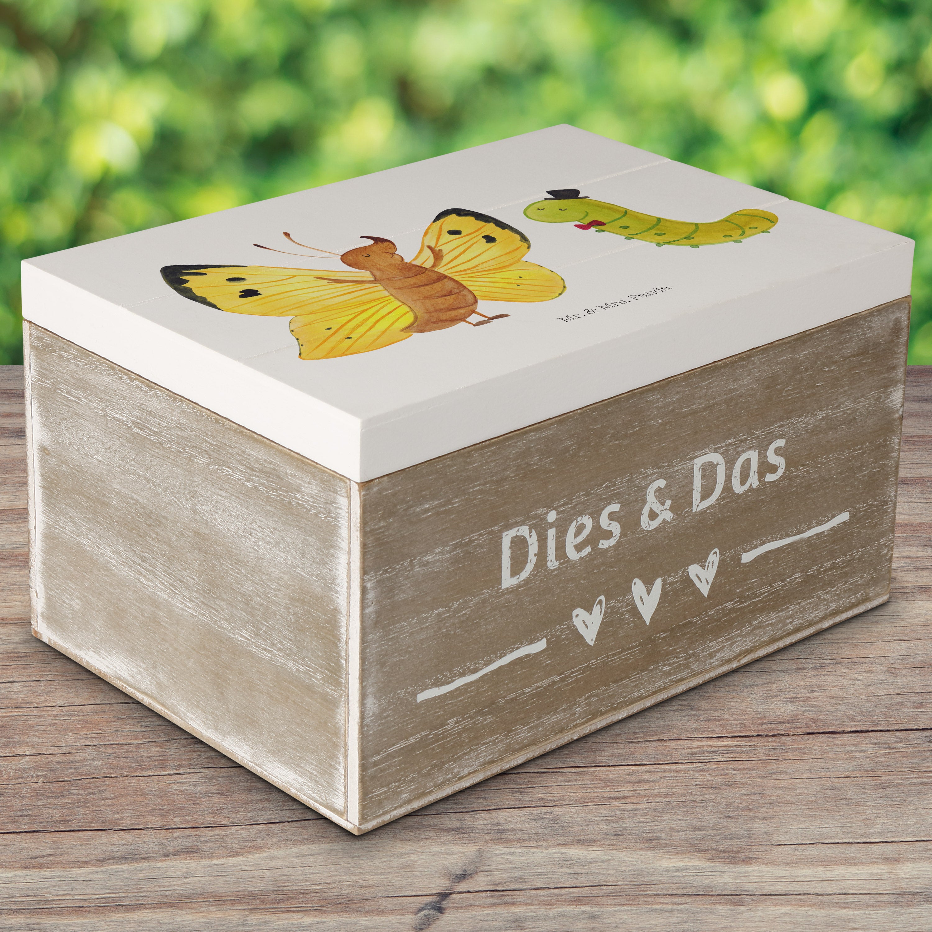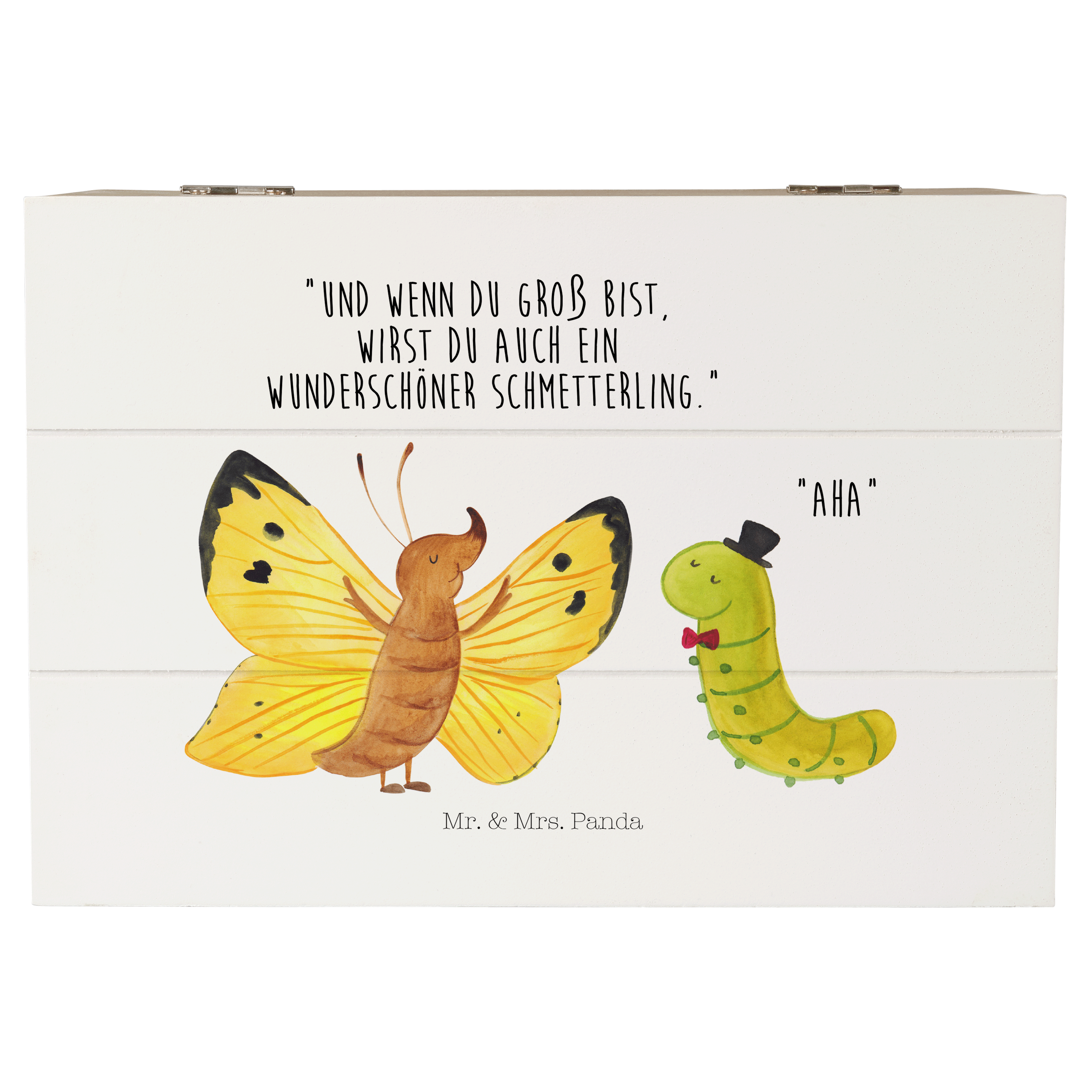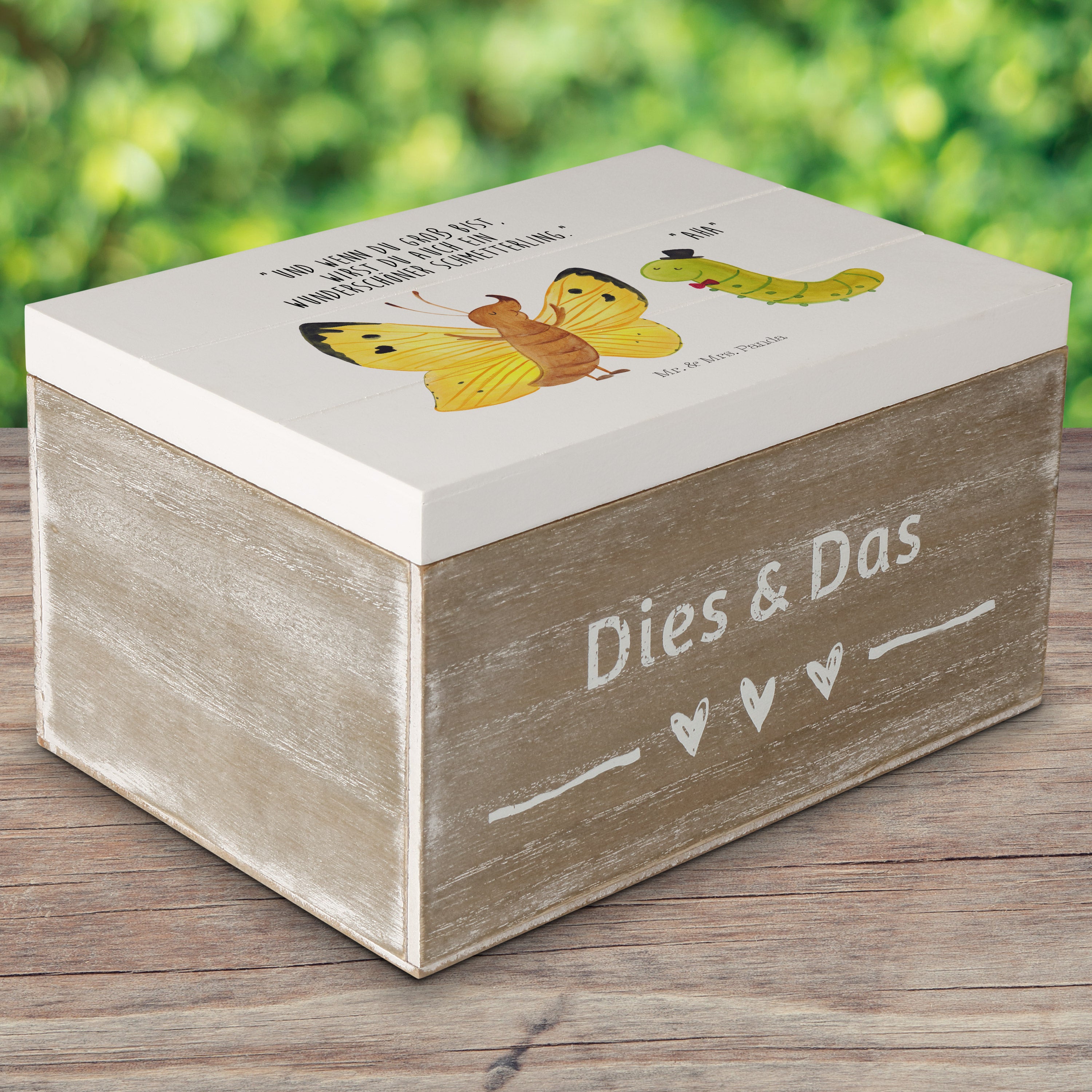 Holzkiste Raupe & Schmetterling Holzkiste, Kiste, Schatzkiste, Truhe, Schatulle, XXL, Erinnerungsbox, Erinnerungskiste, Dekokiste, Aufbewahrungsbox, Tiermotive, Gute Laune, lustige Sprüche, Tiere, Raupe, Schmetterling, Zitronenfalter, Entwicklung, Erwachsen werden, Kokon, Hut, Hütchen, Schönheit, Aufwachsen