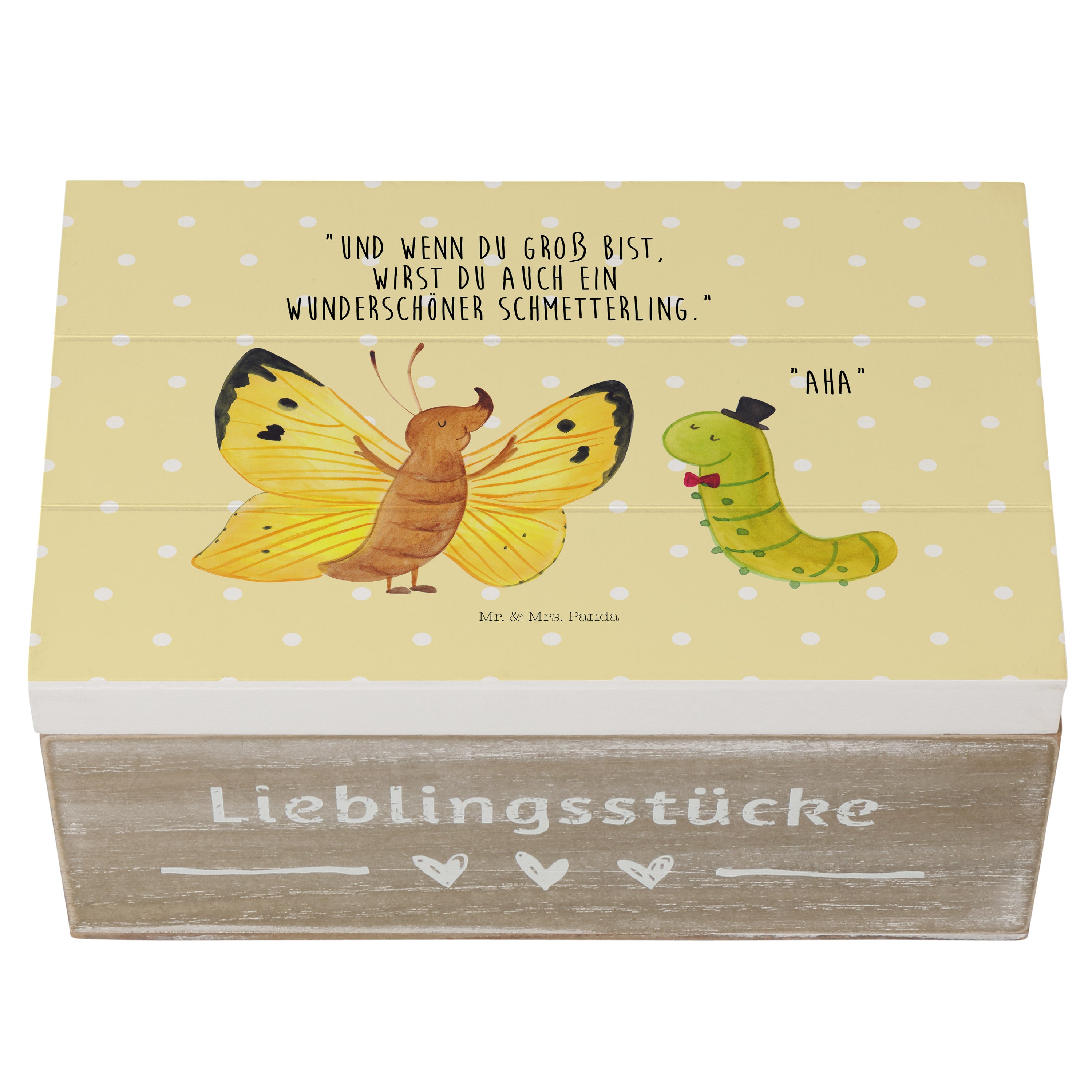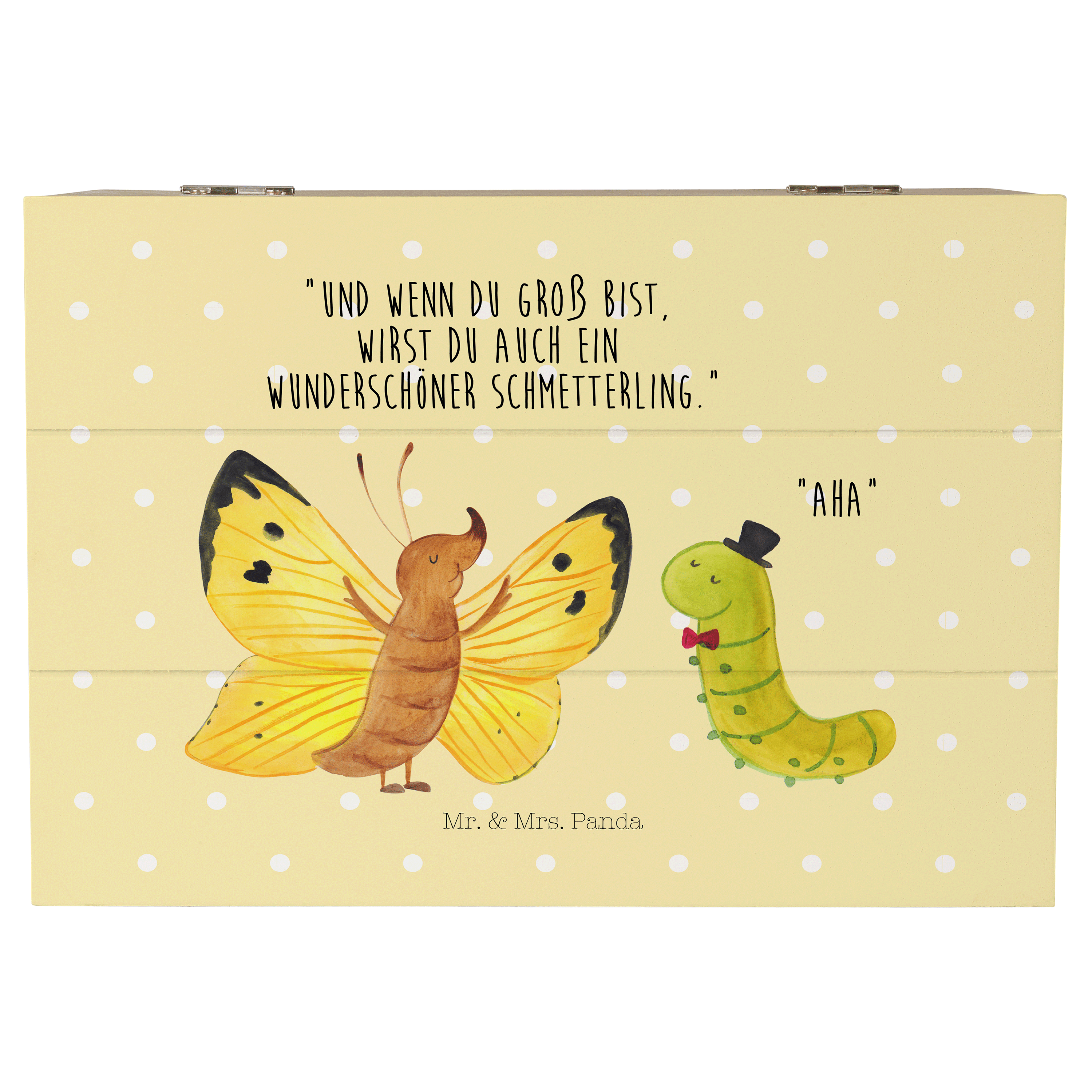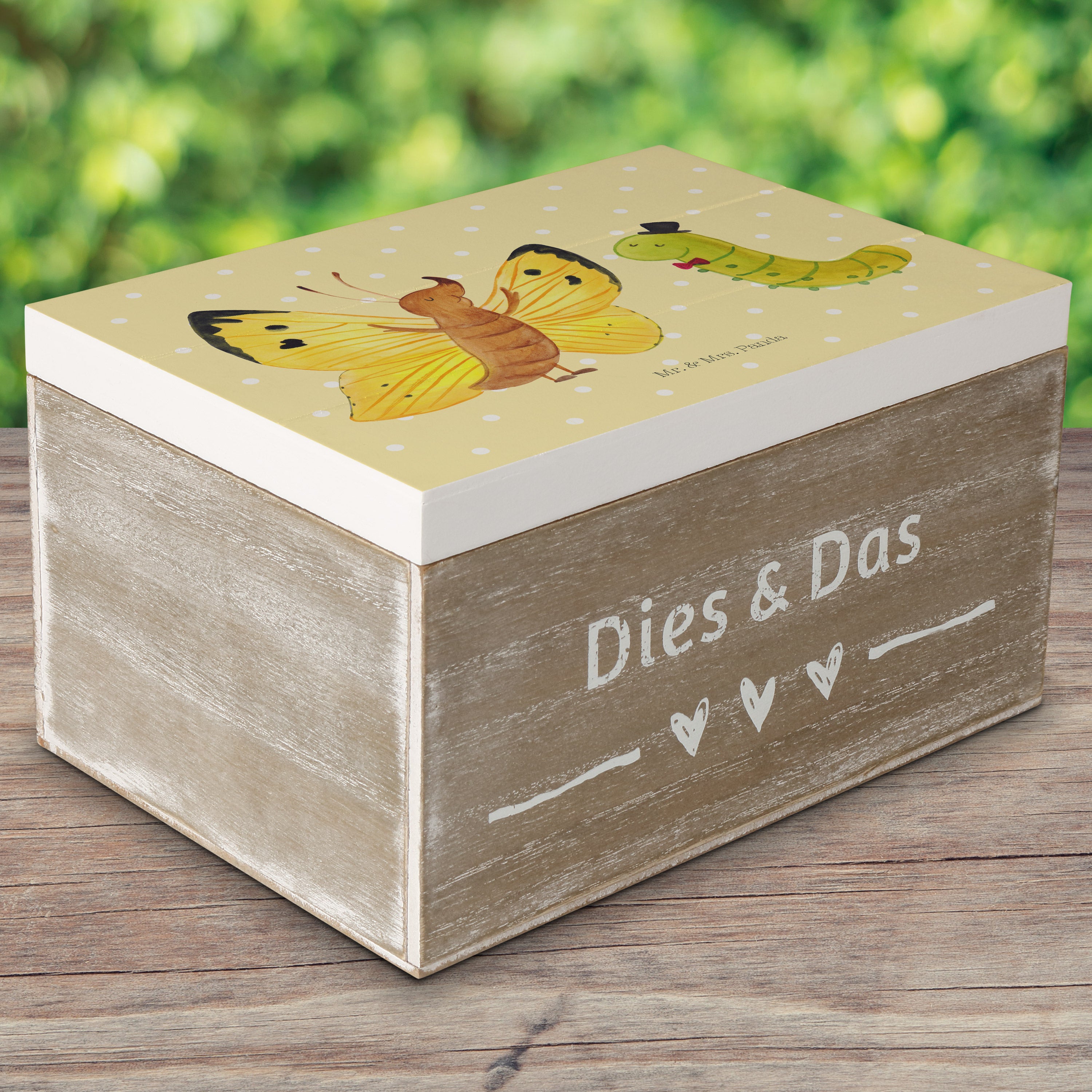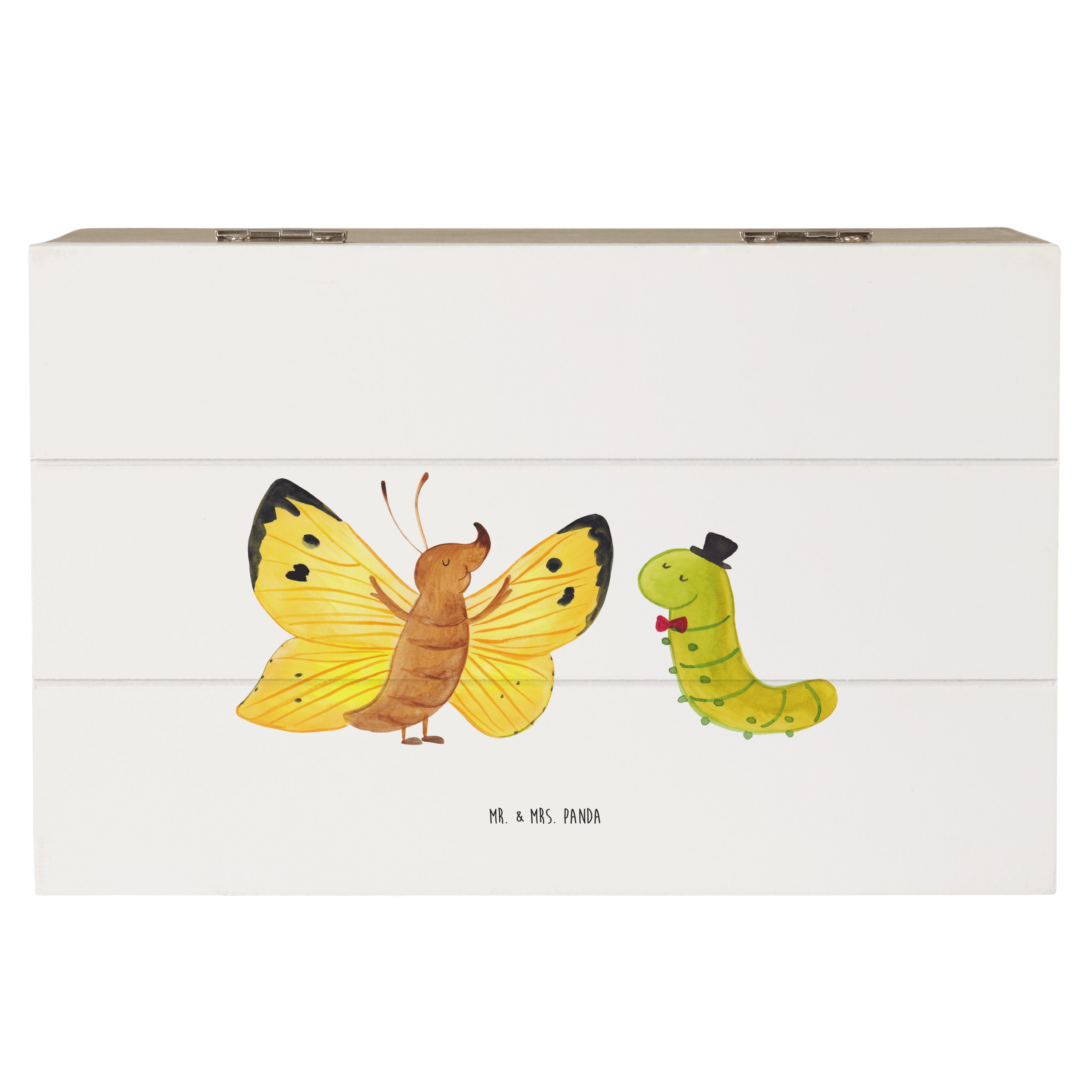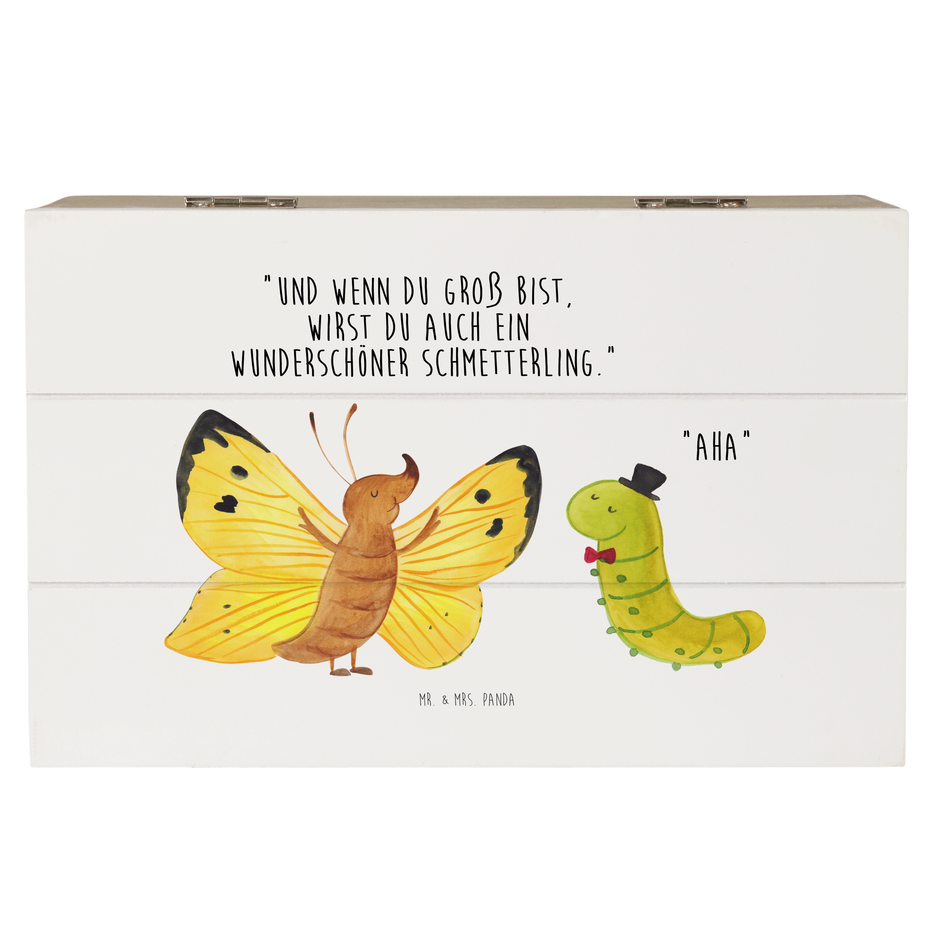 Holzkiste Raupe & Schmetterling Holzkiste, Kiste, Schatzkiste, Truhe, Schatulle, XXL, Erinnerungsbox, Erinnerungskiste, Dekokiste, Aufbewahrungsbox, Tiermotive, Gute Laune, lustige Sprüche, Tiere, Raupe, Schmetterling, Zitronenfalter, Entwicklung, Erwachsen werden, Kokon, Hut, Hütchen, Schönheit, Aufwachsen