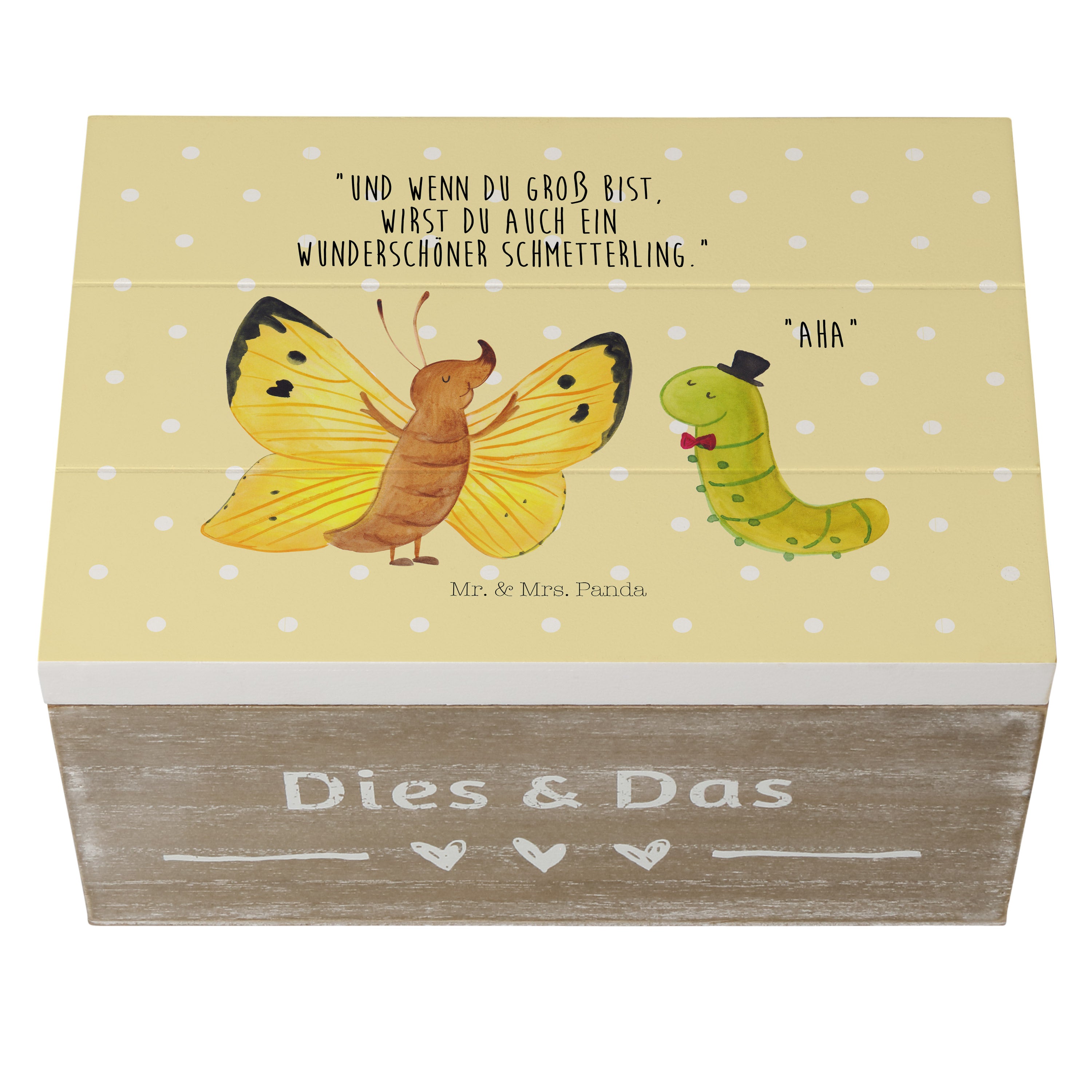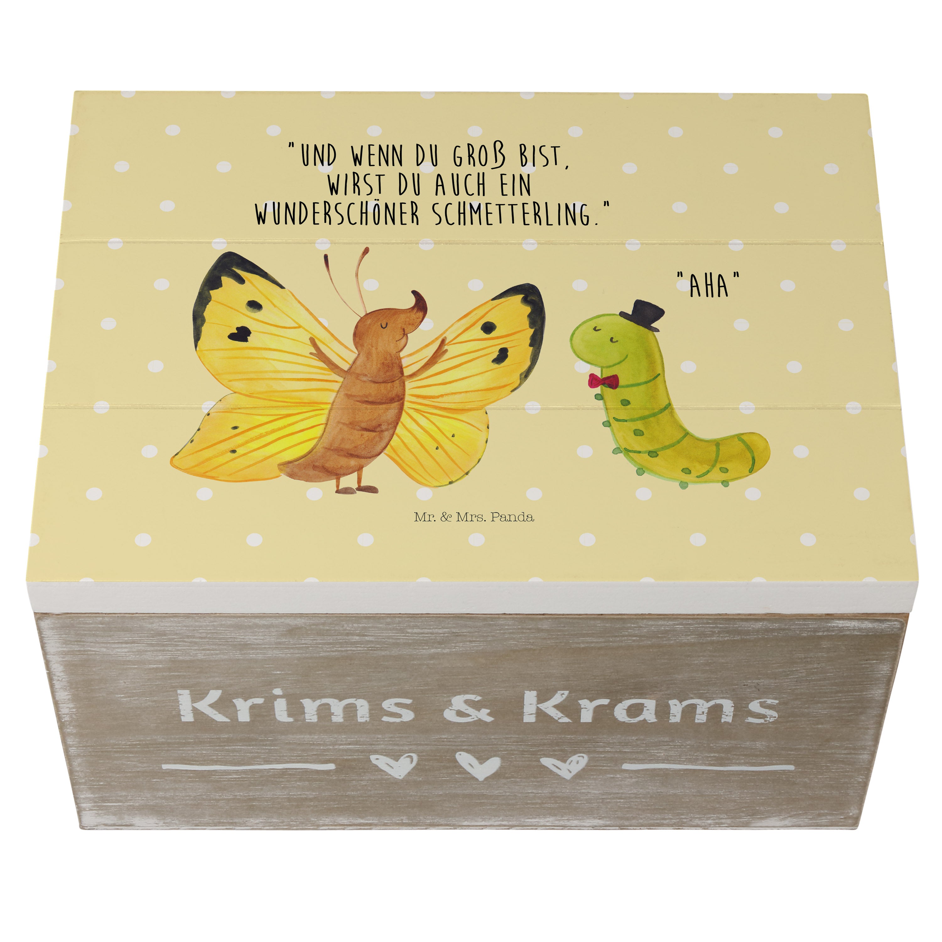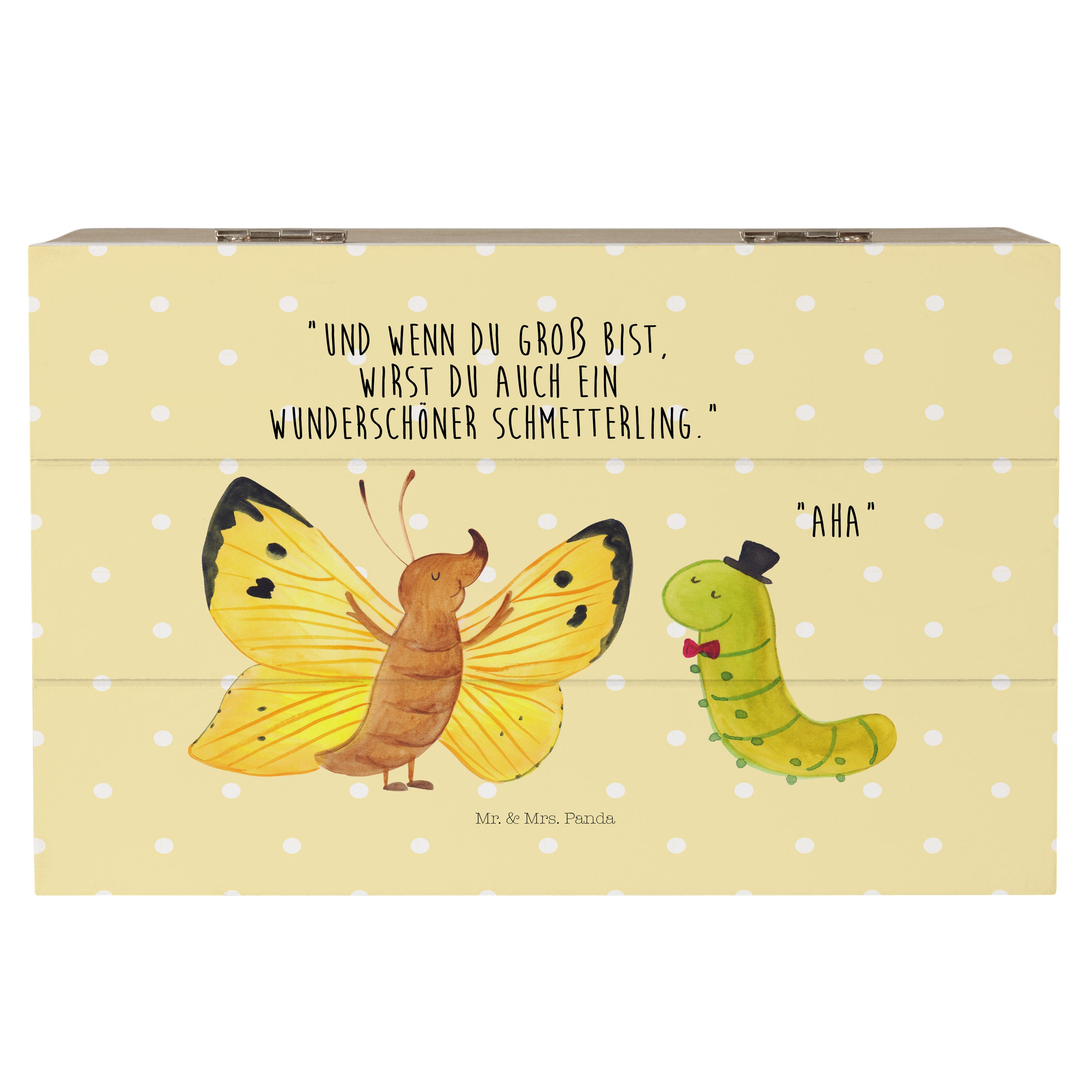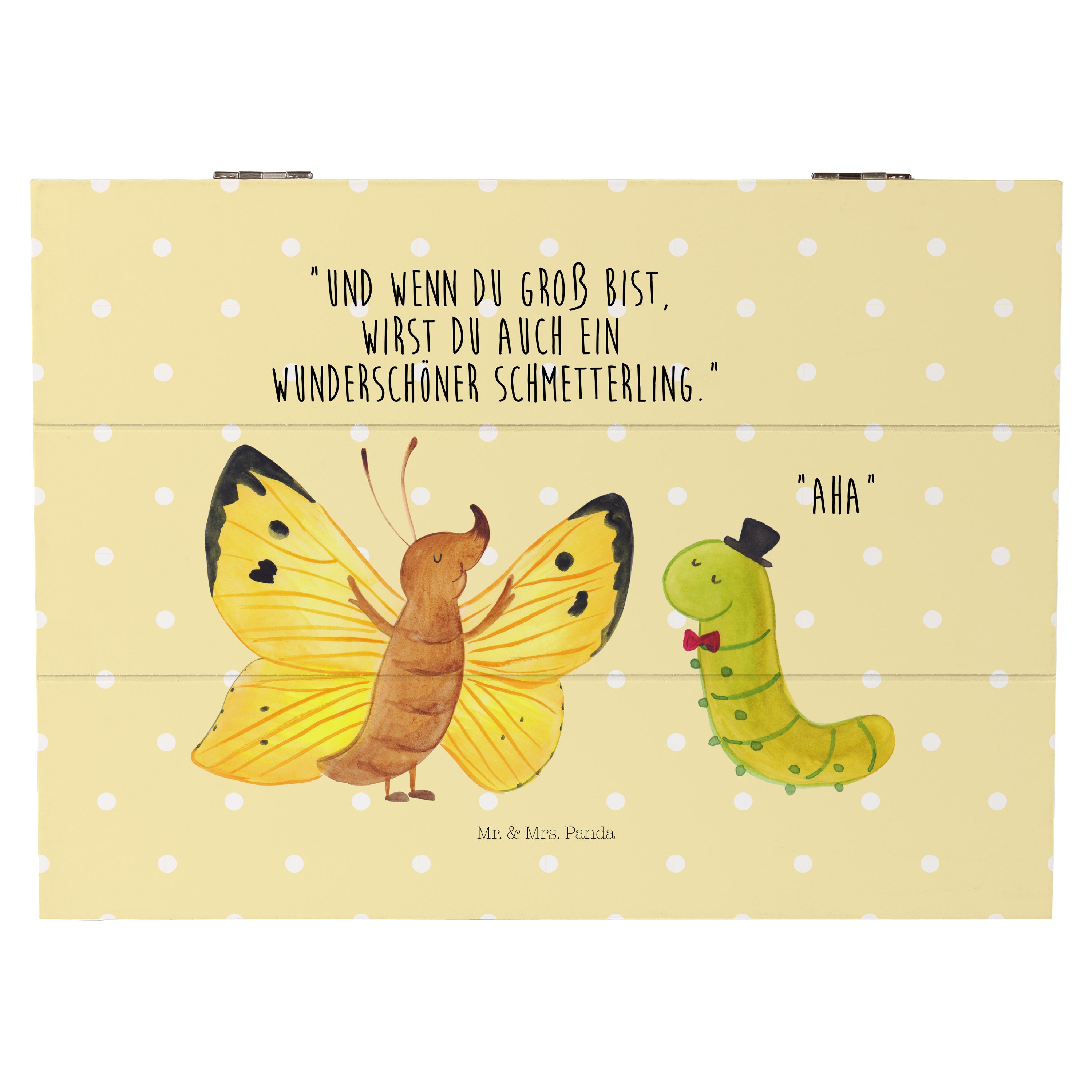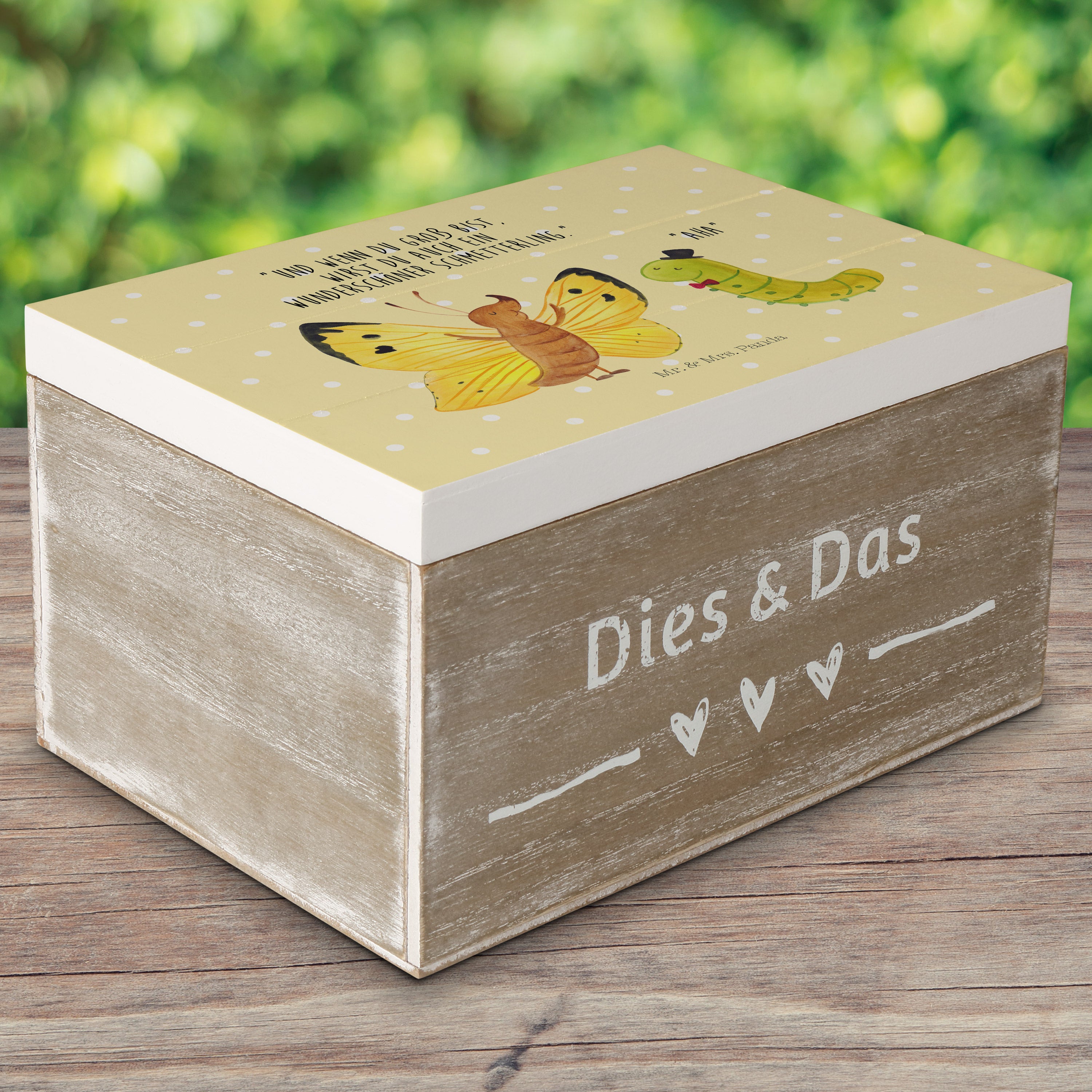 Holzkiste Raupe & Schmetterling Holzkiste, Kiste, Schatzkiste, Truhe, Schatulle, XXL, Erinnerungsbox, Erinnerungskiste, Dekokiste, Aufbewahrungsbox, Tiermotive, Gute Laune, lustige Sprüche, Tiere, Raupe, Schmetterling, Zitronenfalter, Entwicklung, Erwachsen werden, Kokon, Hut, Hütchen, Schönheit, Aufwachsen