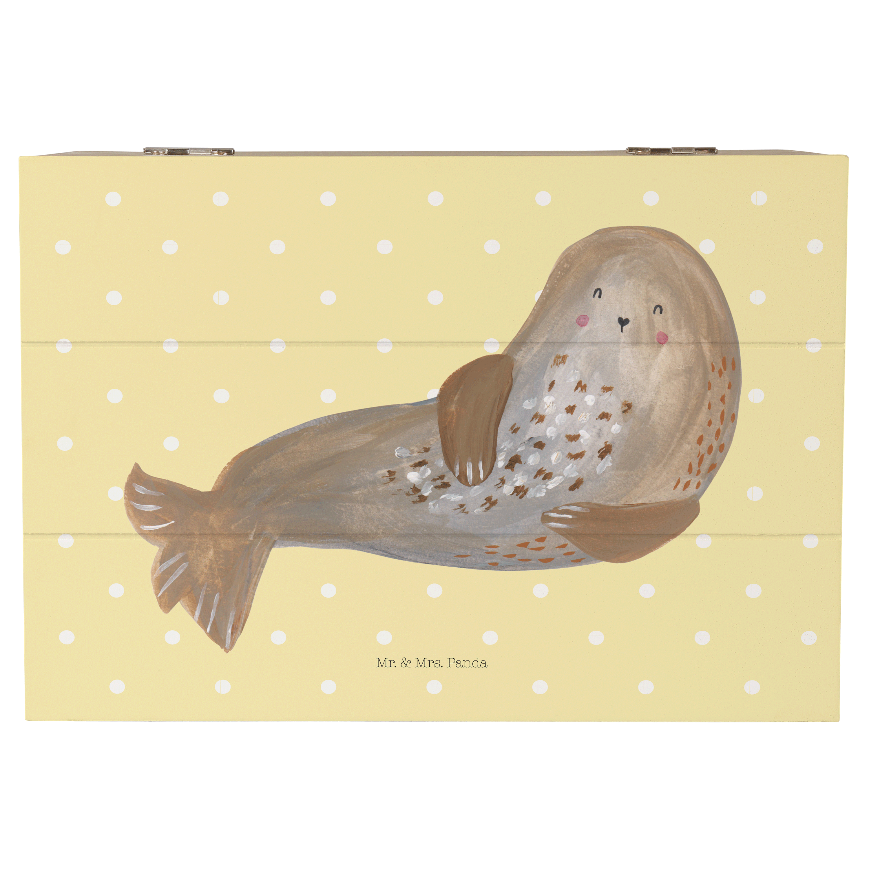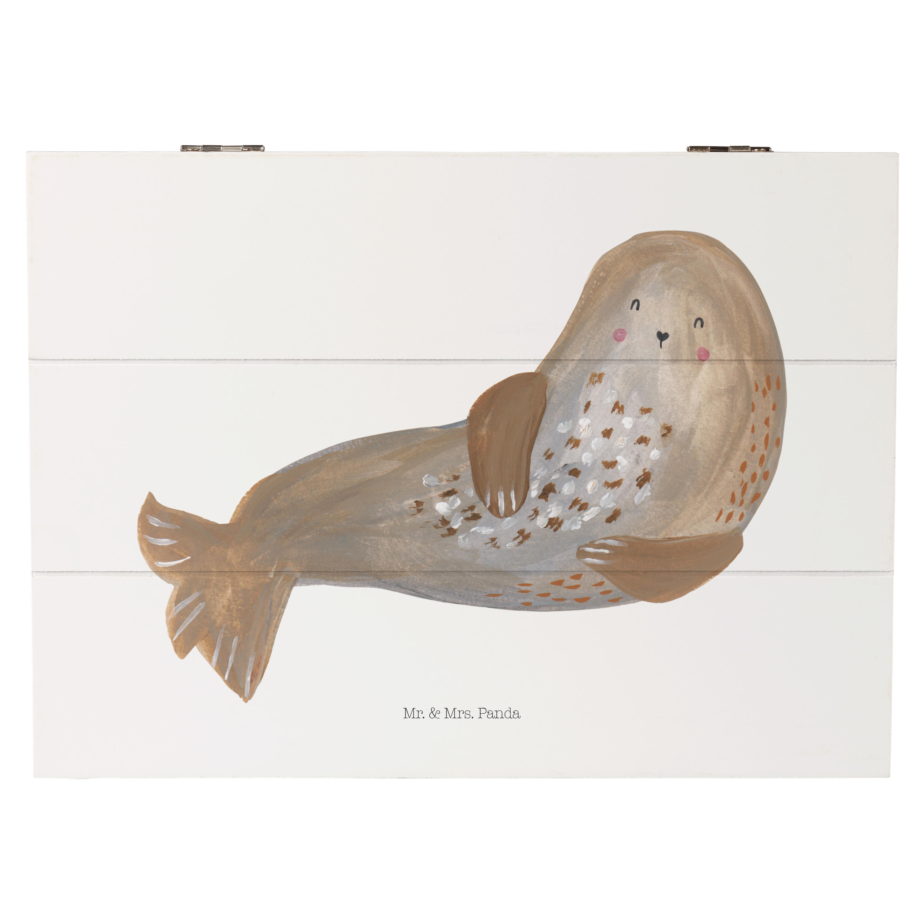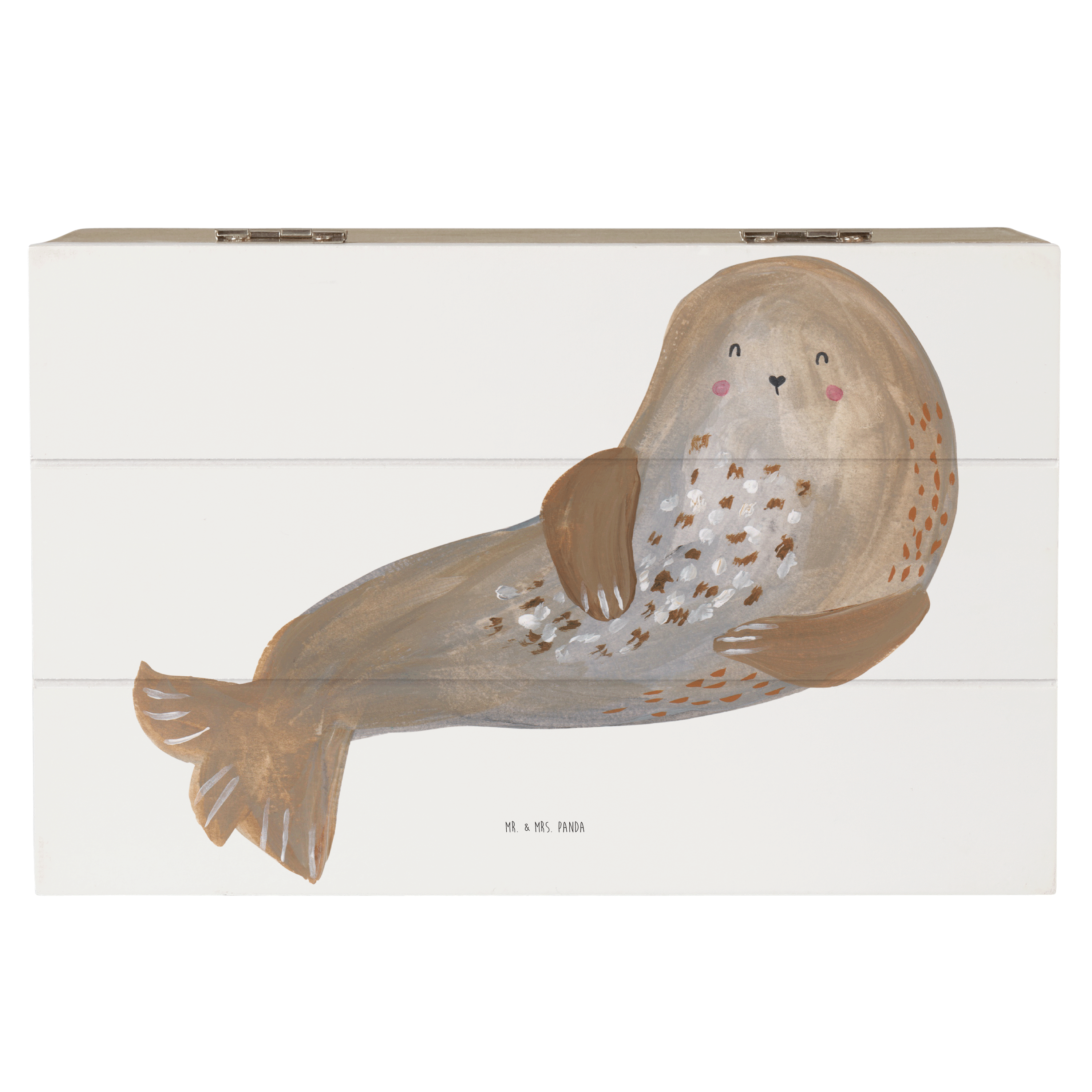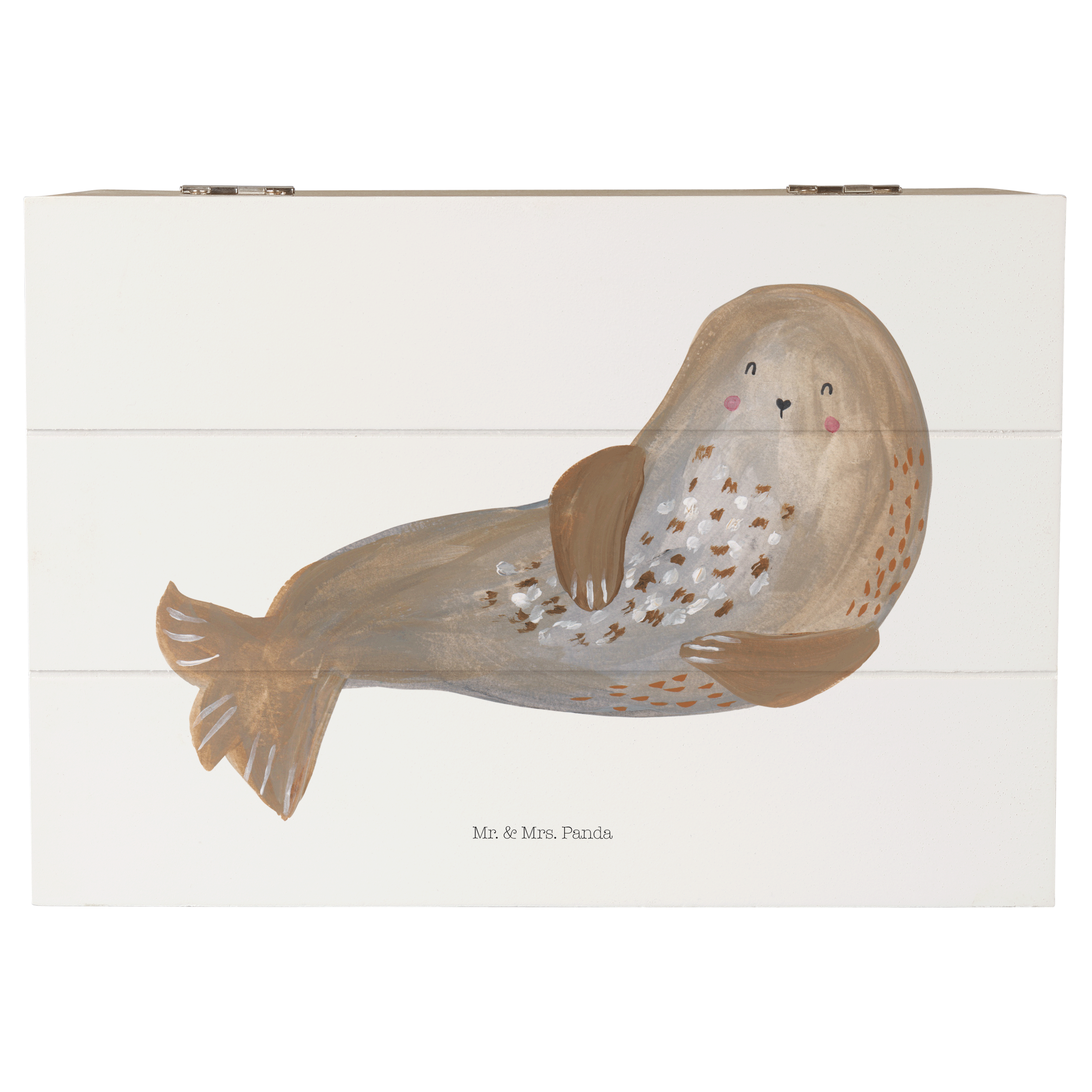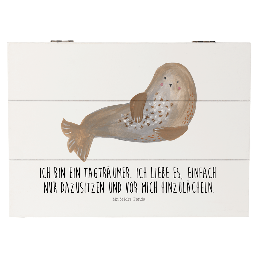 Holzkiste Robbe lachend Holzkiste, Kiste, Schatzkiste, Truhe, Schatulle, XXL, Erinnerungsbox, Erinnerungskiste, Dekokiste, Aufbewahrungsbox, Tiermotive, Gute Laune, lustige Sprüche, Tiere, Robbe, Robben, Seehund, Strand, Meerestier, Ostsee, Nordsee