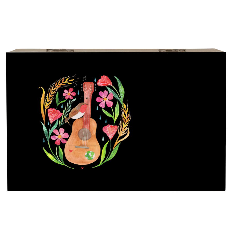 Holzkiste Rotkehlchen Gitarre Gitarre, Musiker, Musik, Sänger, Sängerin, Songs, Lebensgefühl Holzkiste, Kiste, Schatzkiste, Truhe, Schatulle, XXL,  Erinnerungsbox, Erinnerungskiste, Dekokiste, Aufbewahrungsbox  Blumen Deko, Frühlings Deko, Sommer Deko, Dekoration, positive Botschaft, Naturliebhaber, Outdoor, Natur, Abenteuer