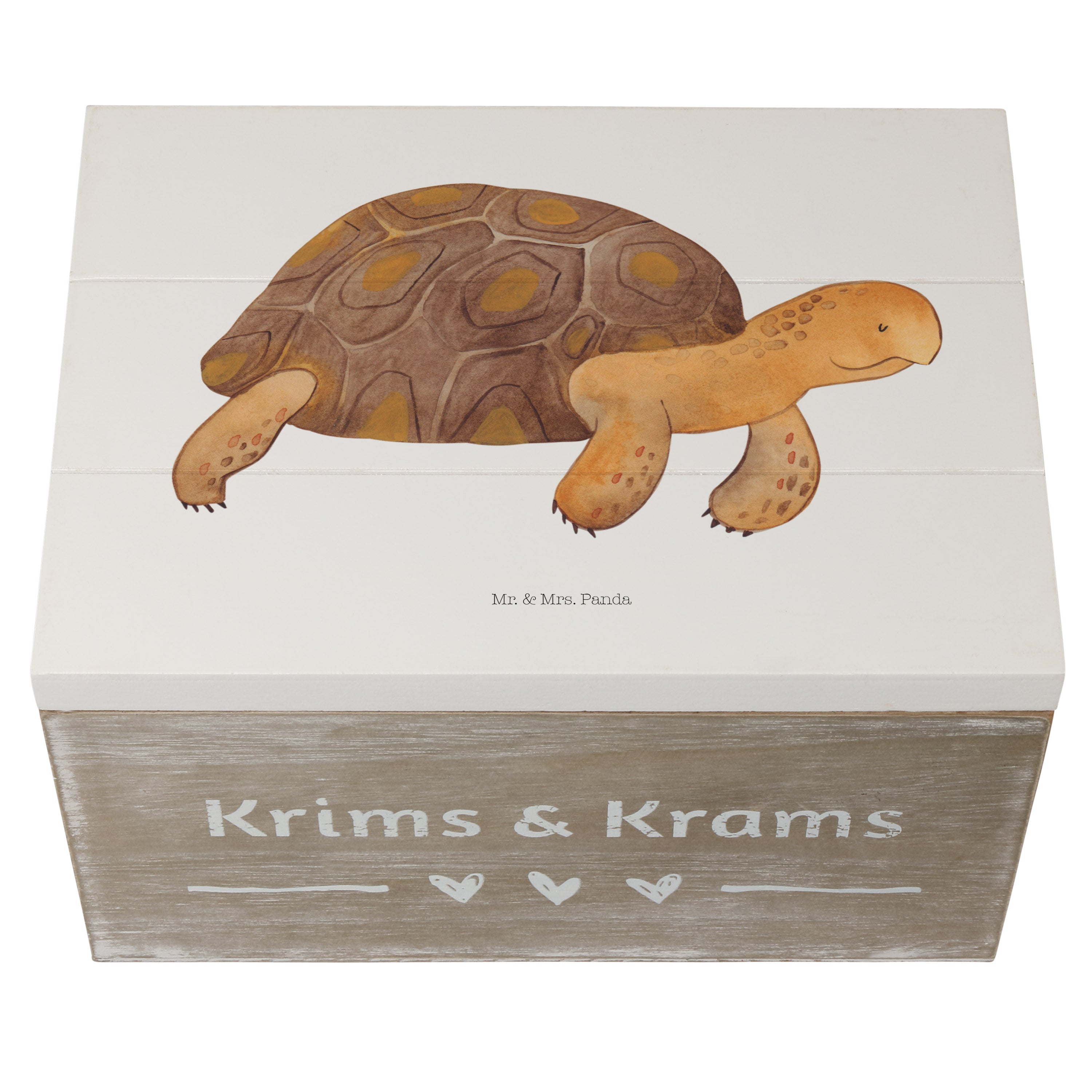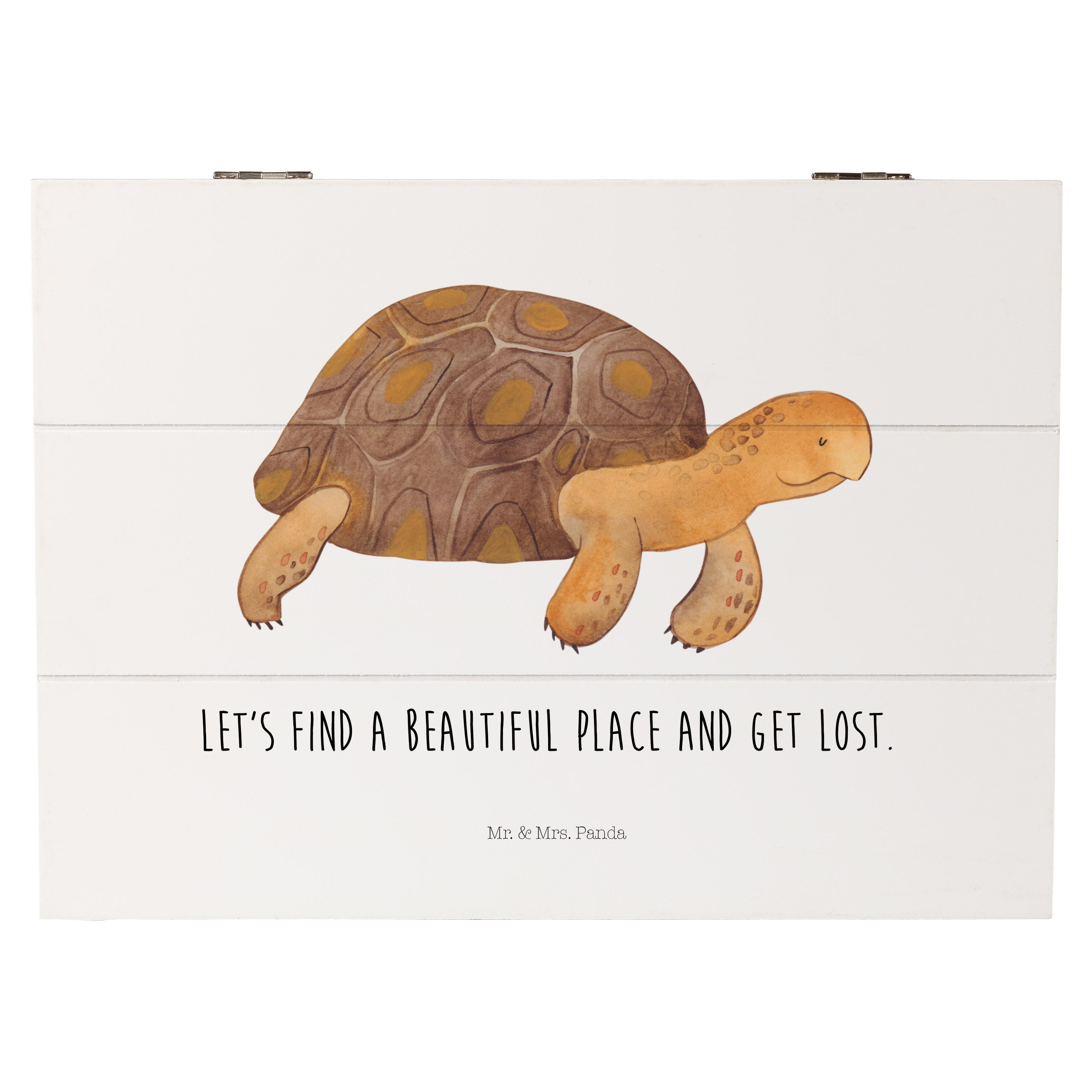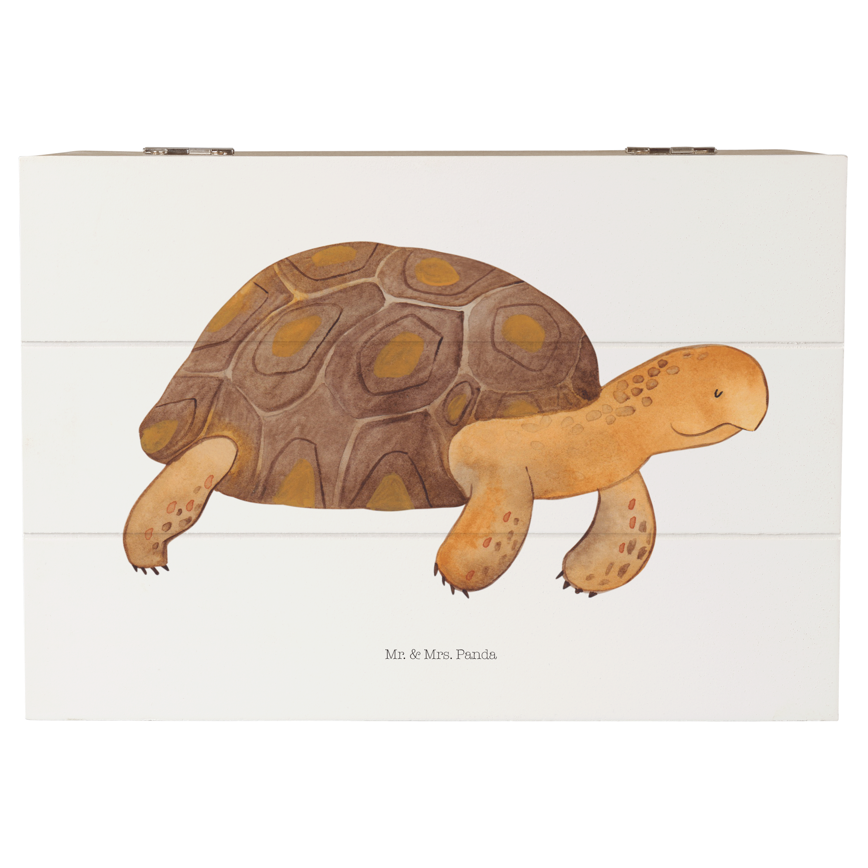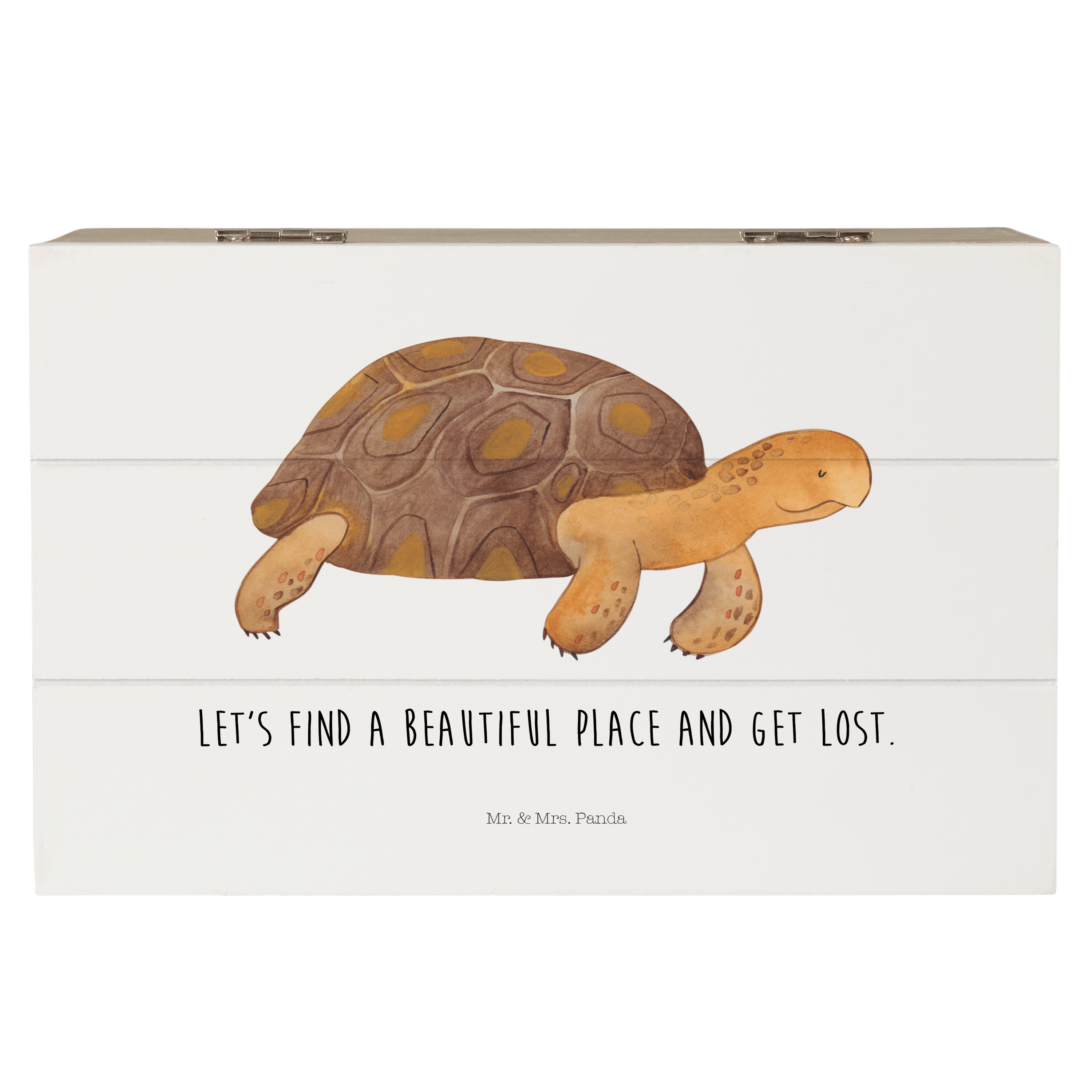 Holzkiste Schildkröte marschiert - 25 x 18 cm - mit Spruch - Weiß