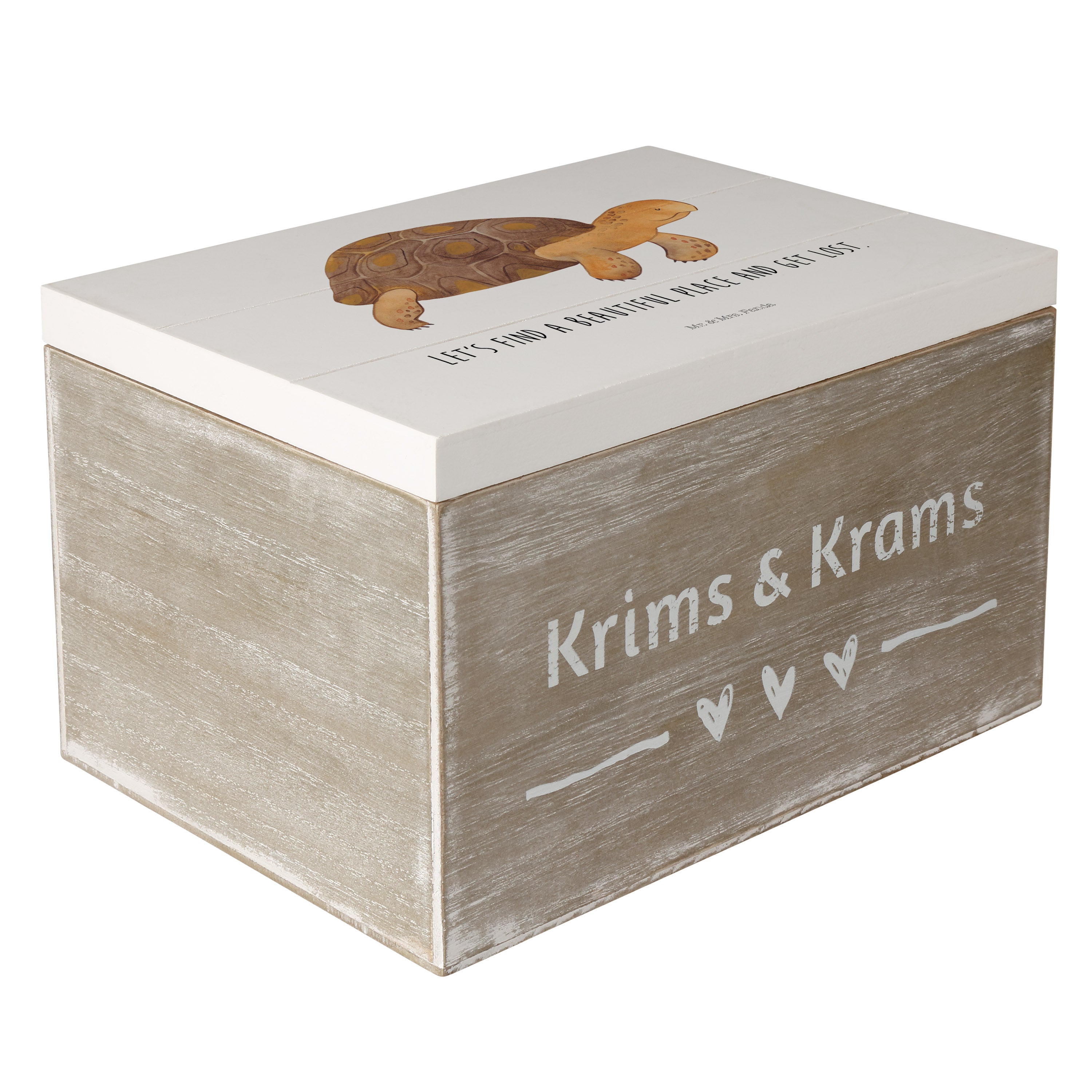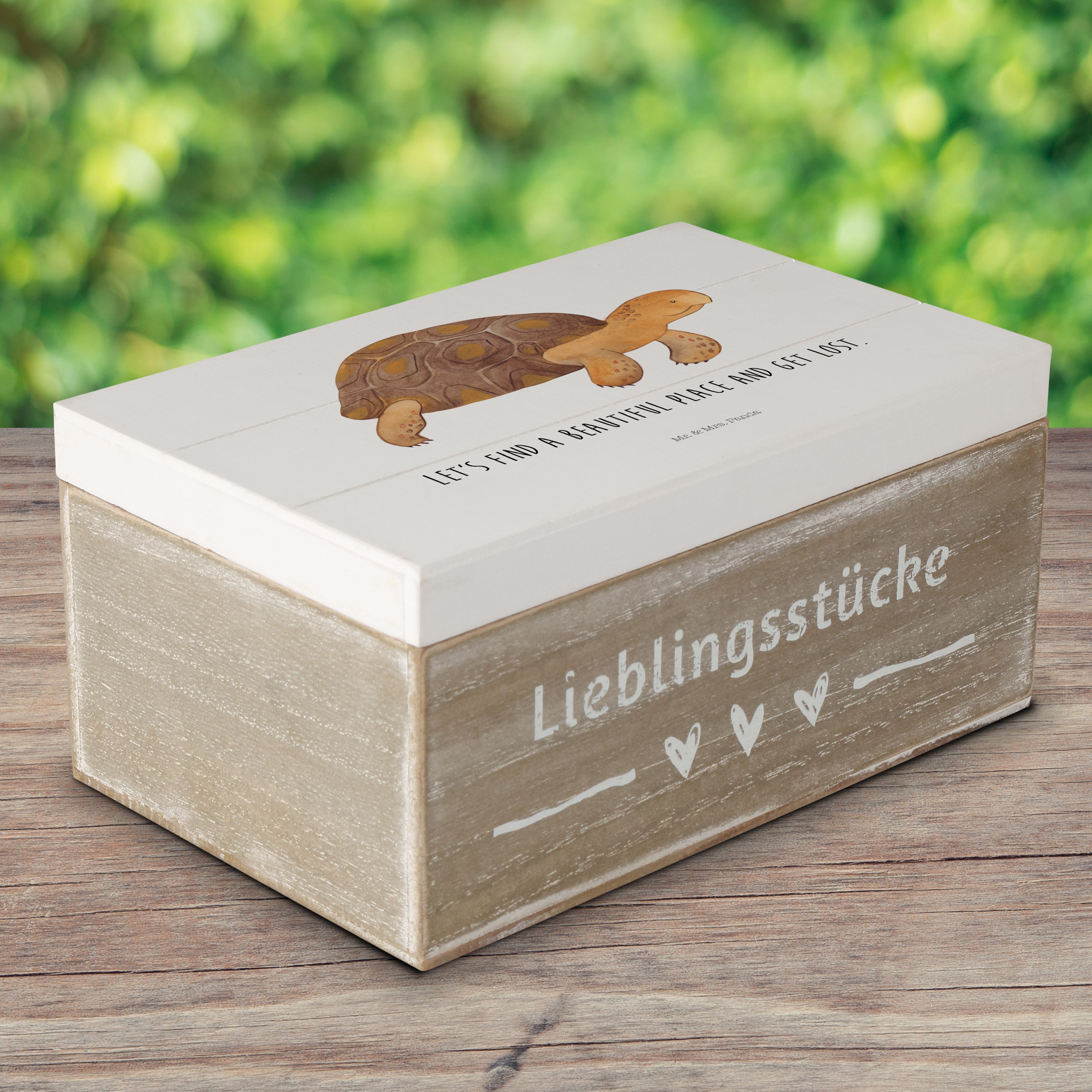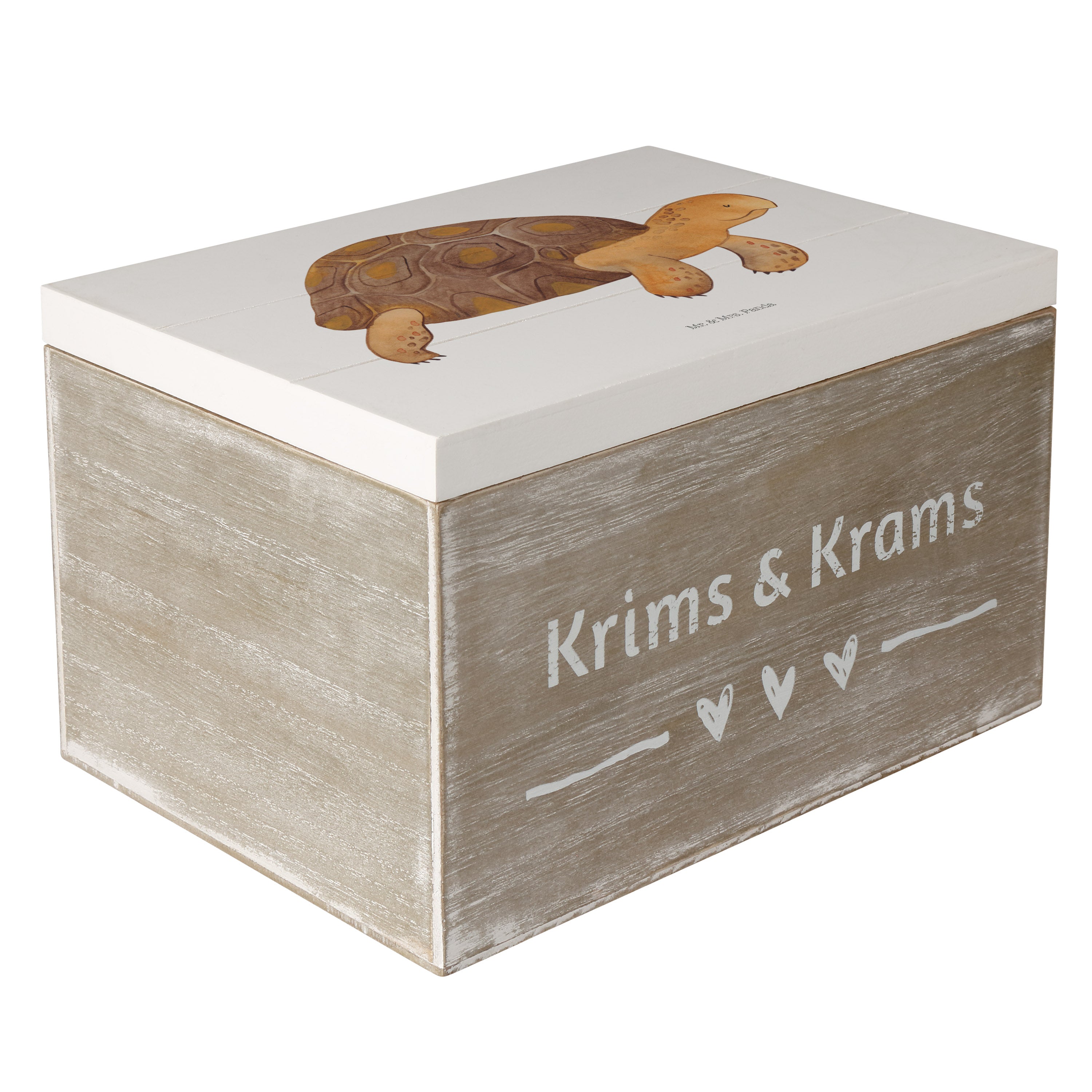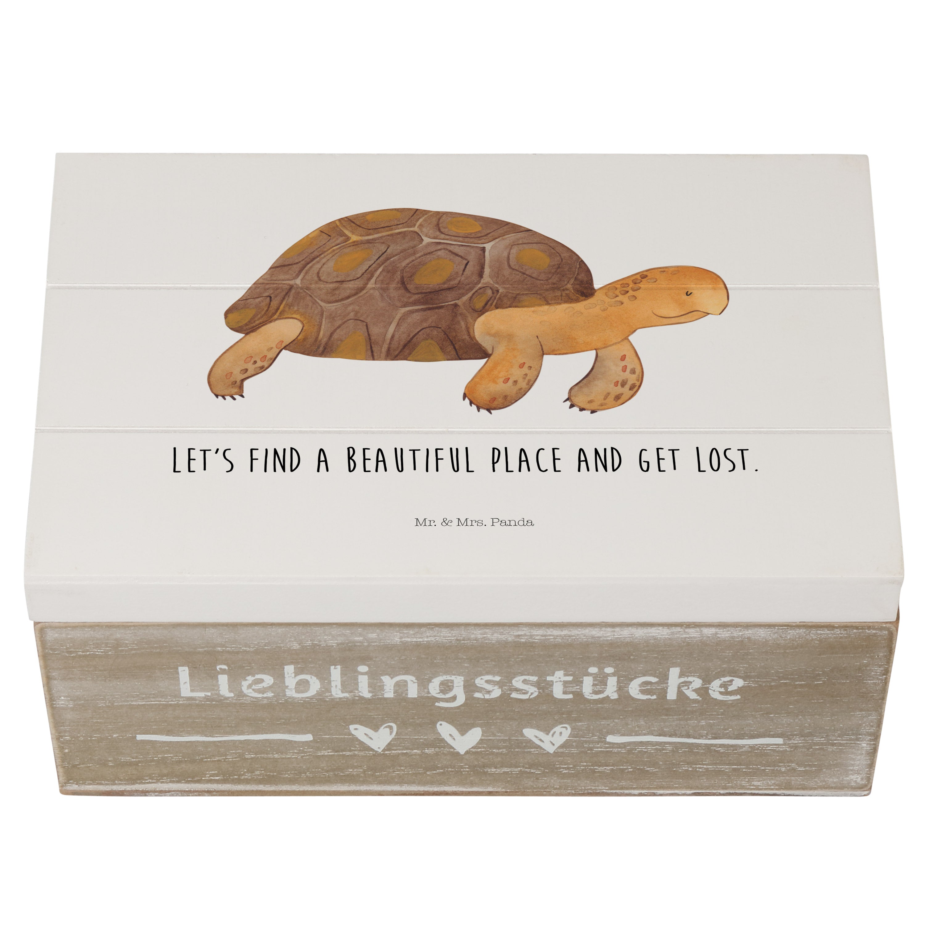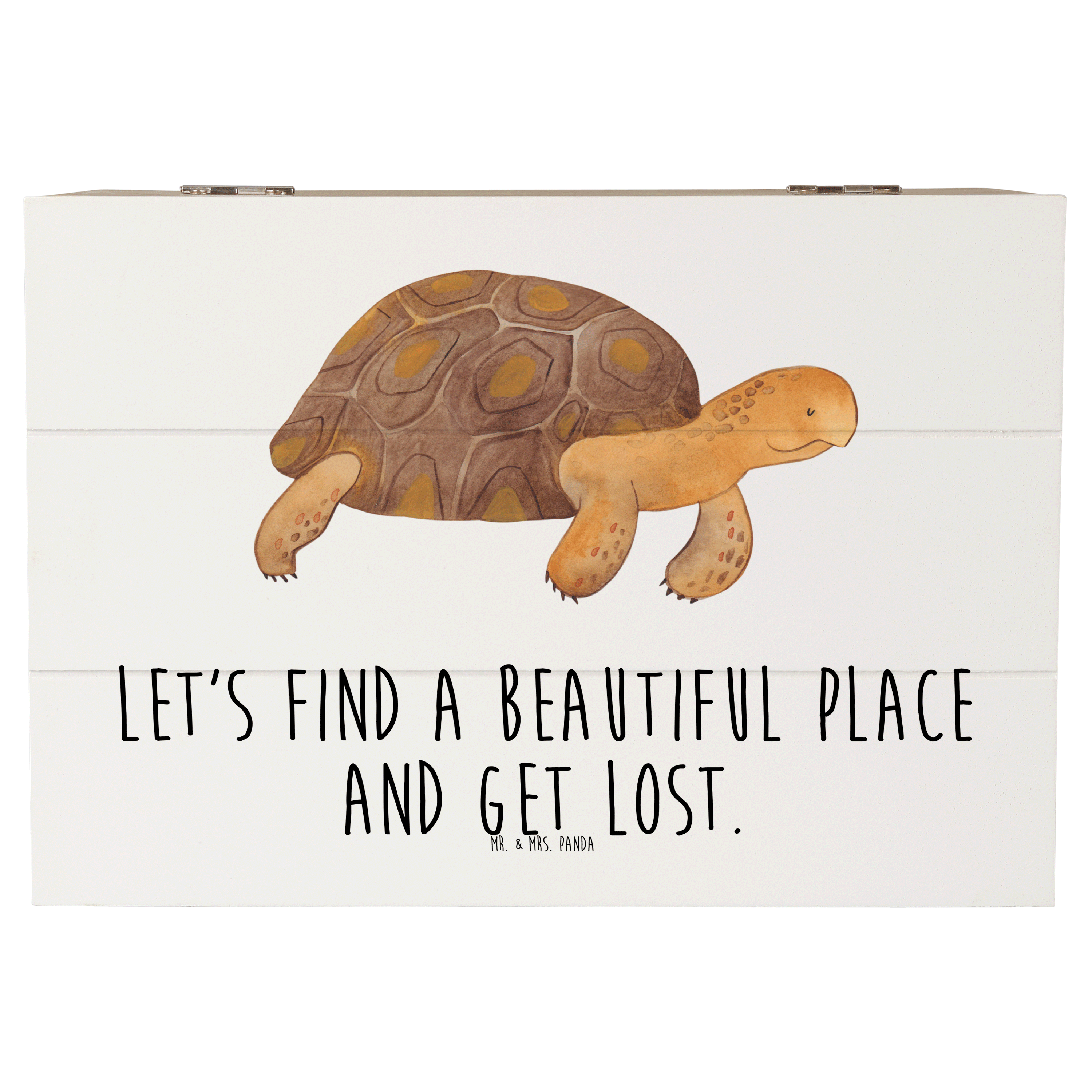 Holzkiste Schildkröte marschiert - 25 x 18 cm - mit Spruch - Weiß