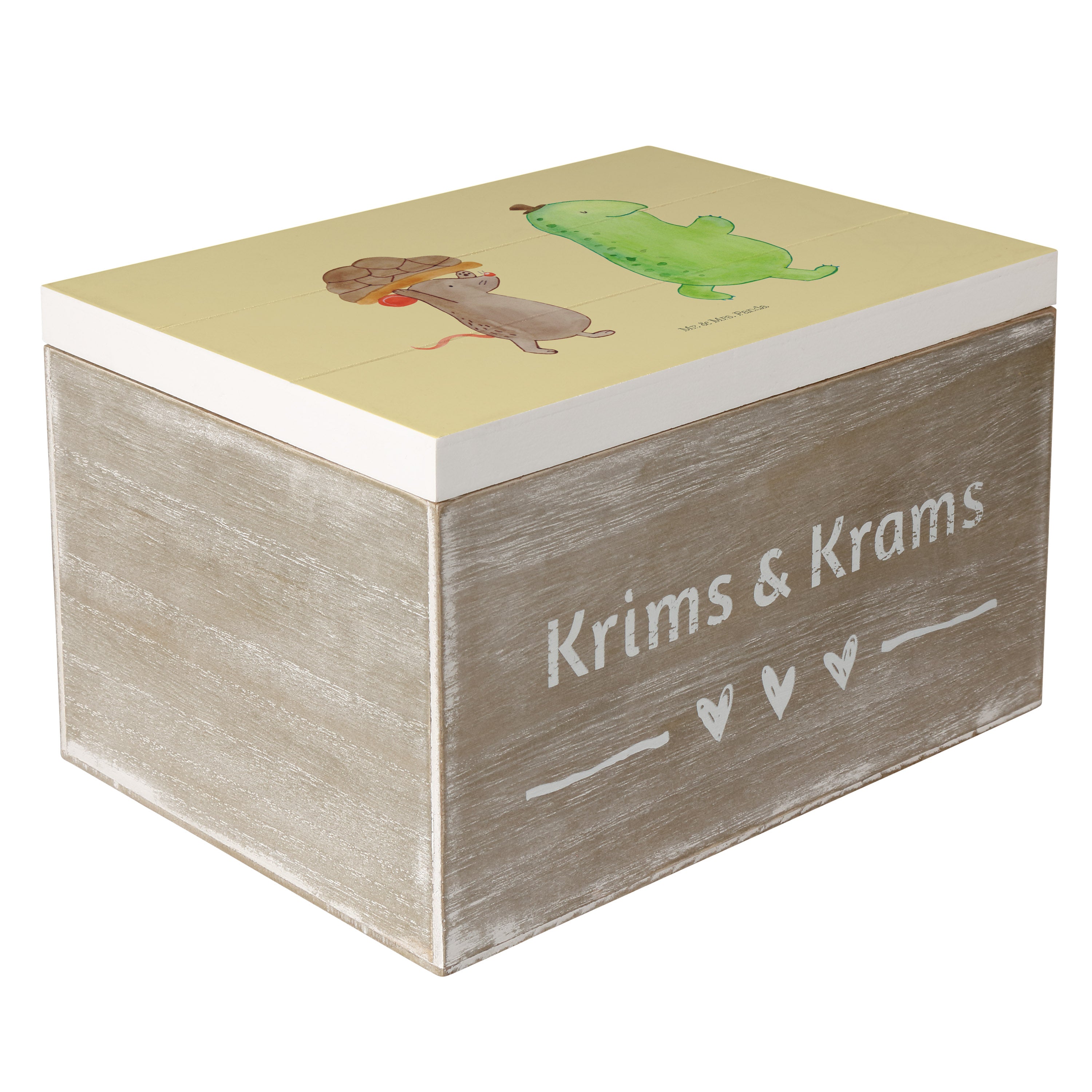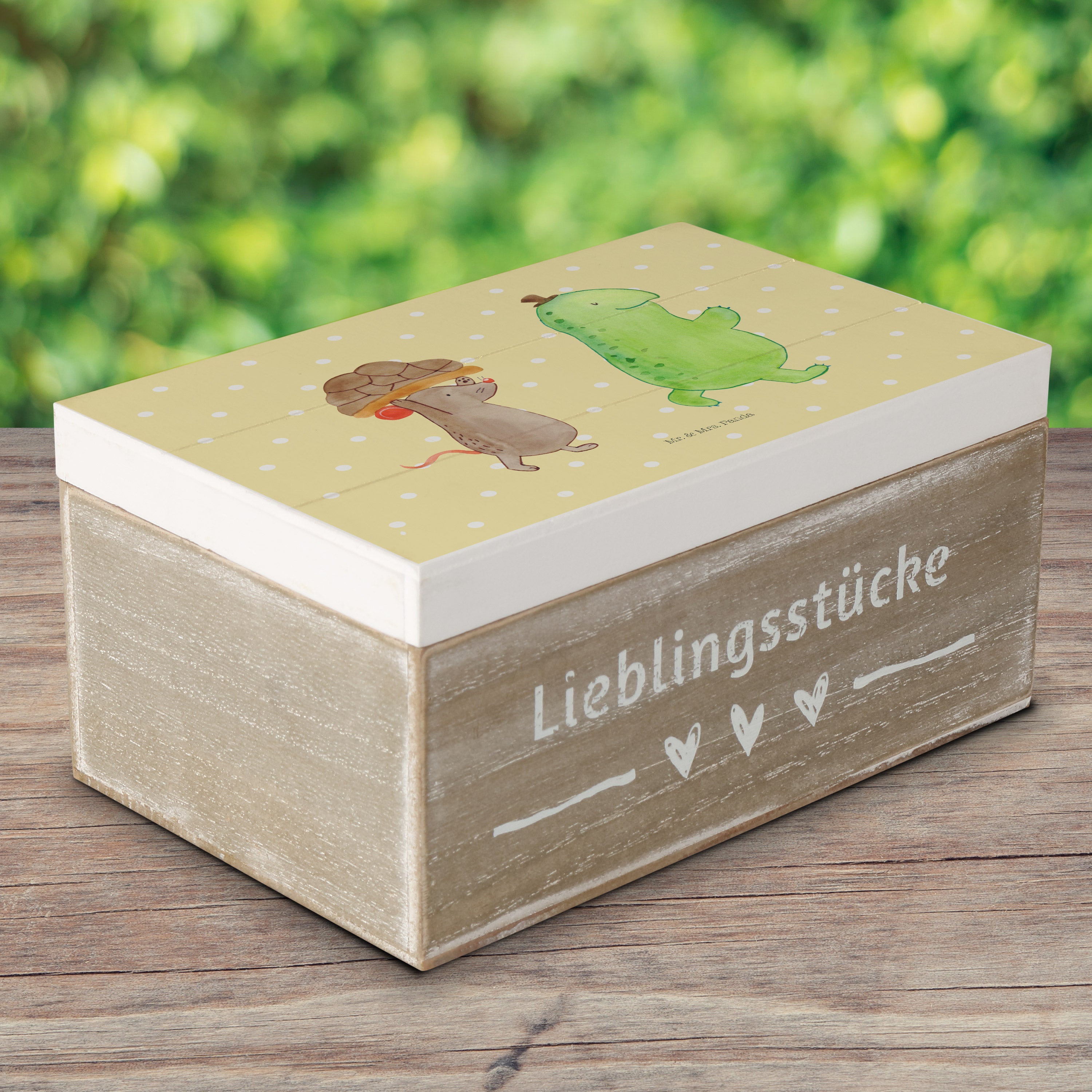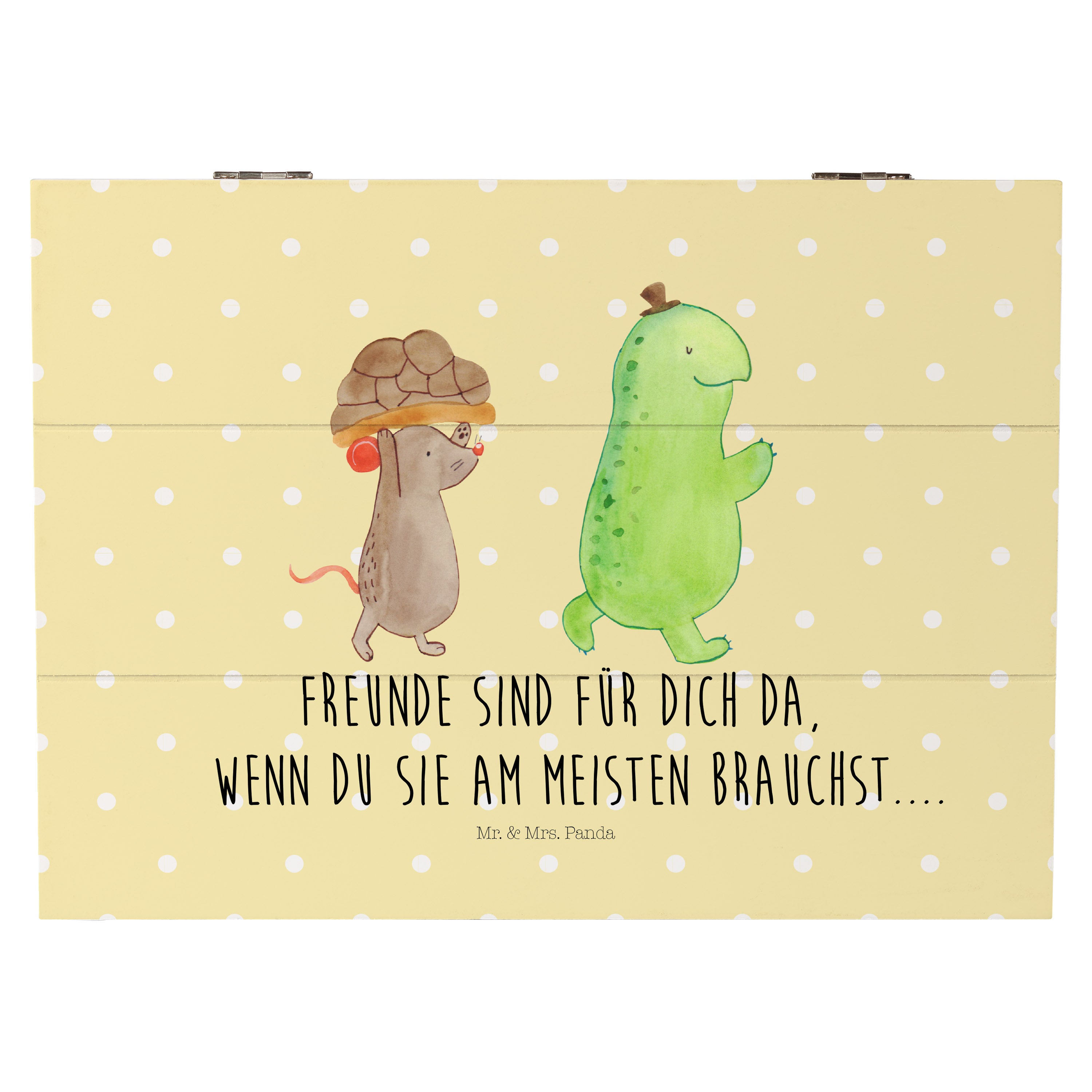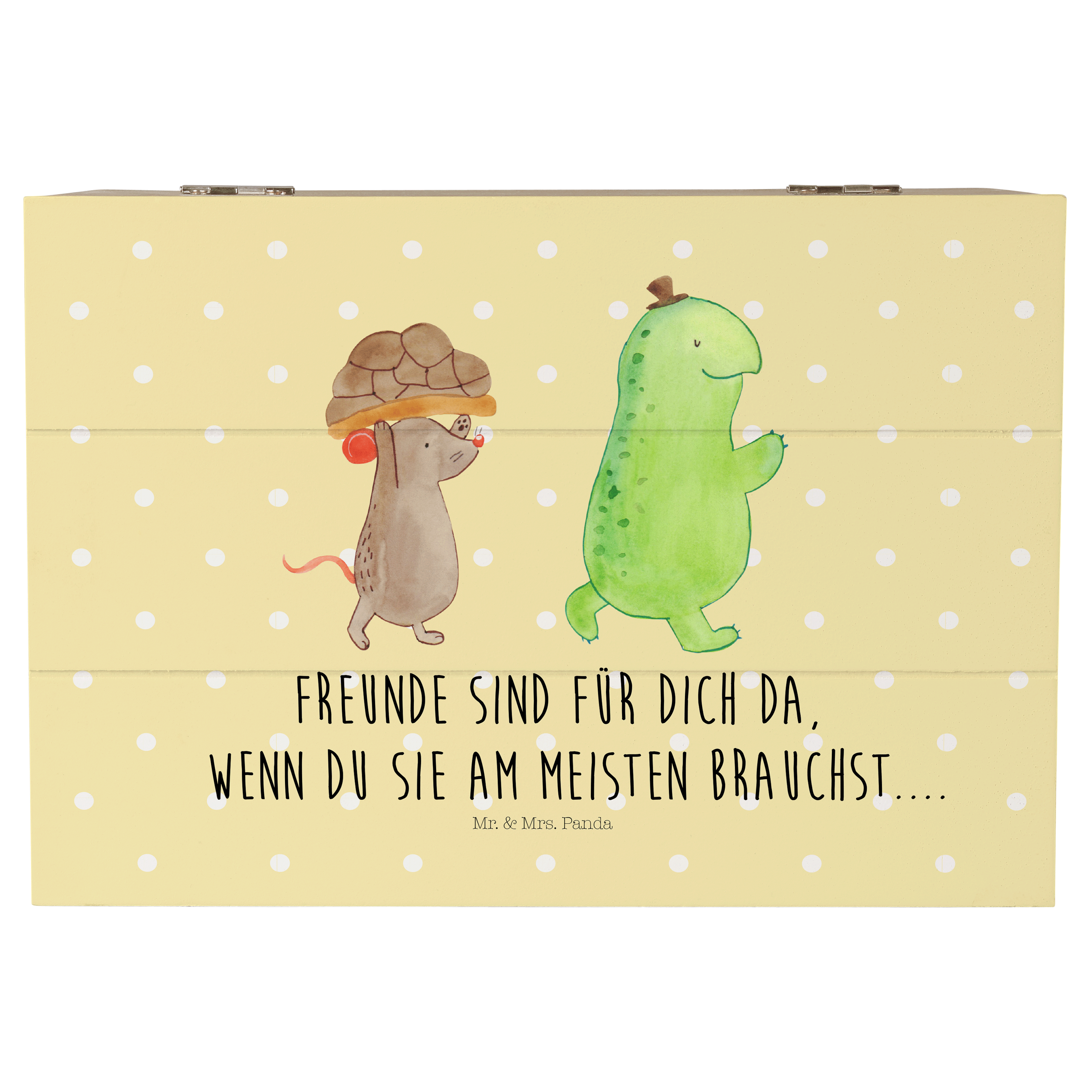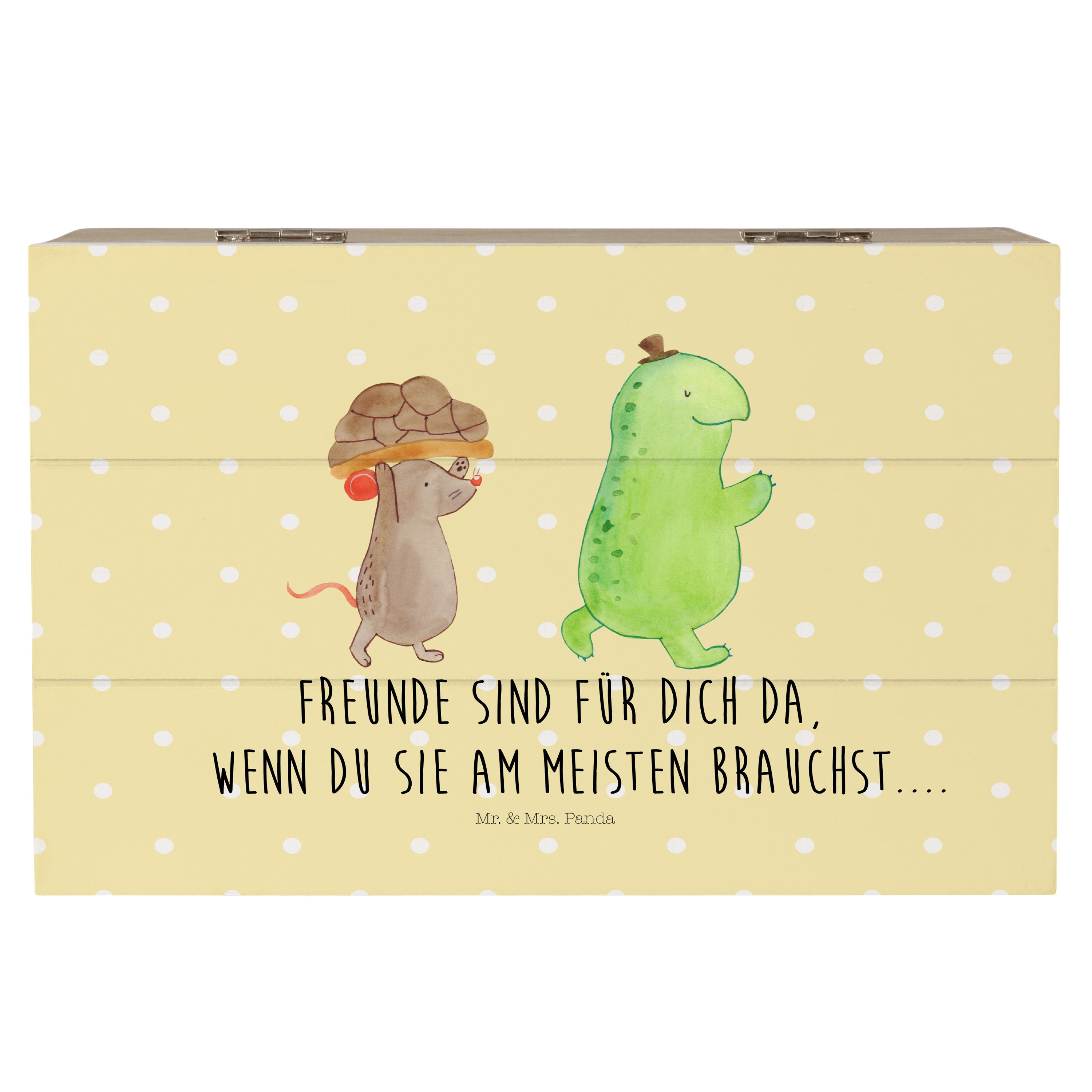 Holzkiste Schildkröte & Maus - 25 x 18 cm - mit Spruch - Gelb Pastell