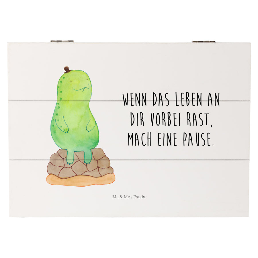 Holzkiste Schildkröte pausiert - 25 x 18 cm - mit Spruch - Weiß