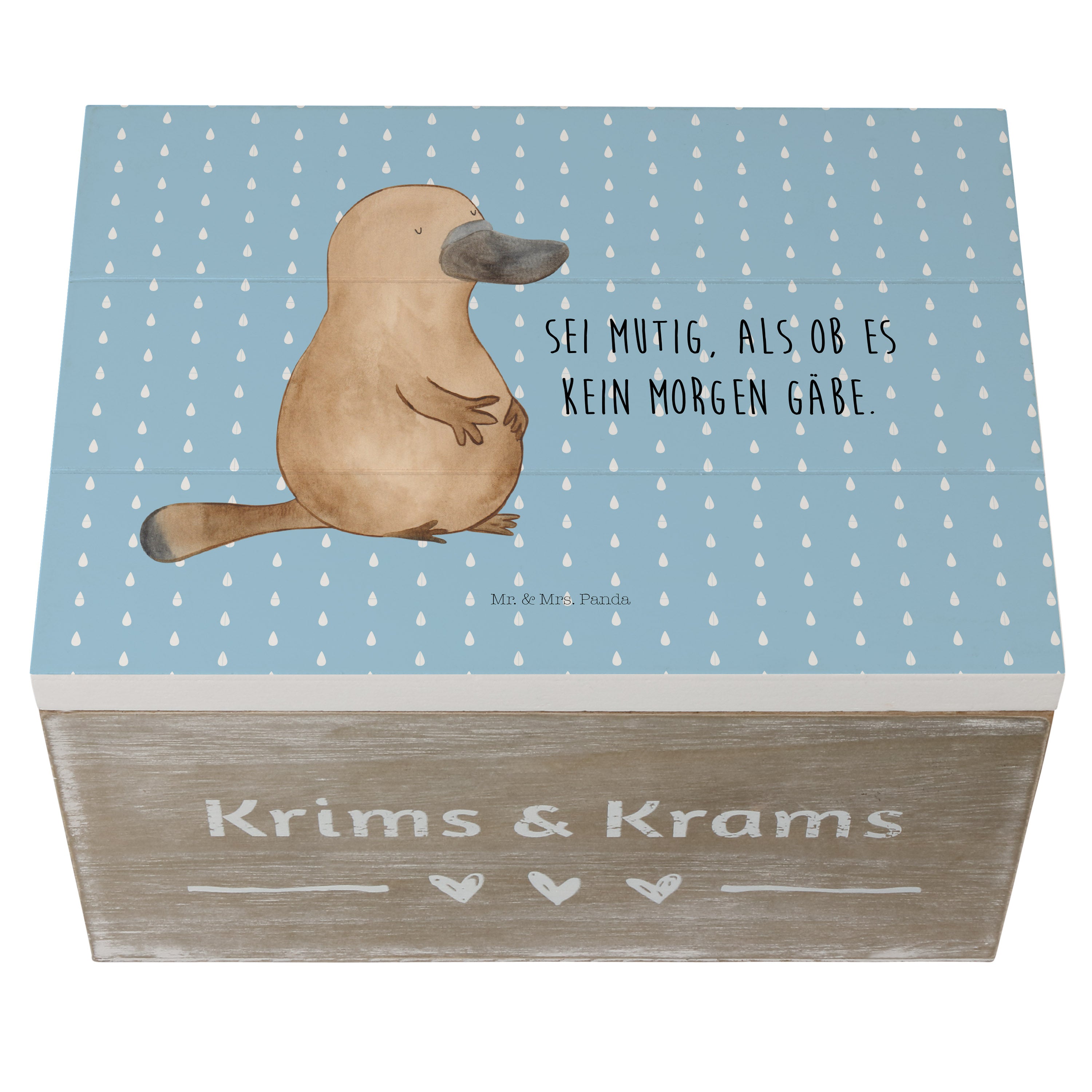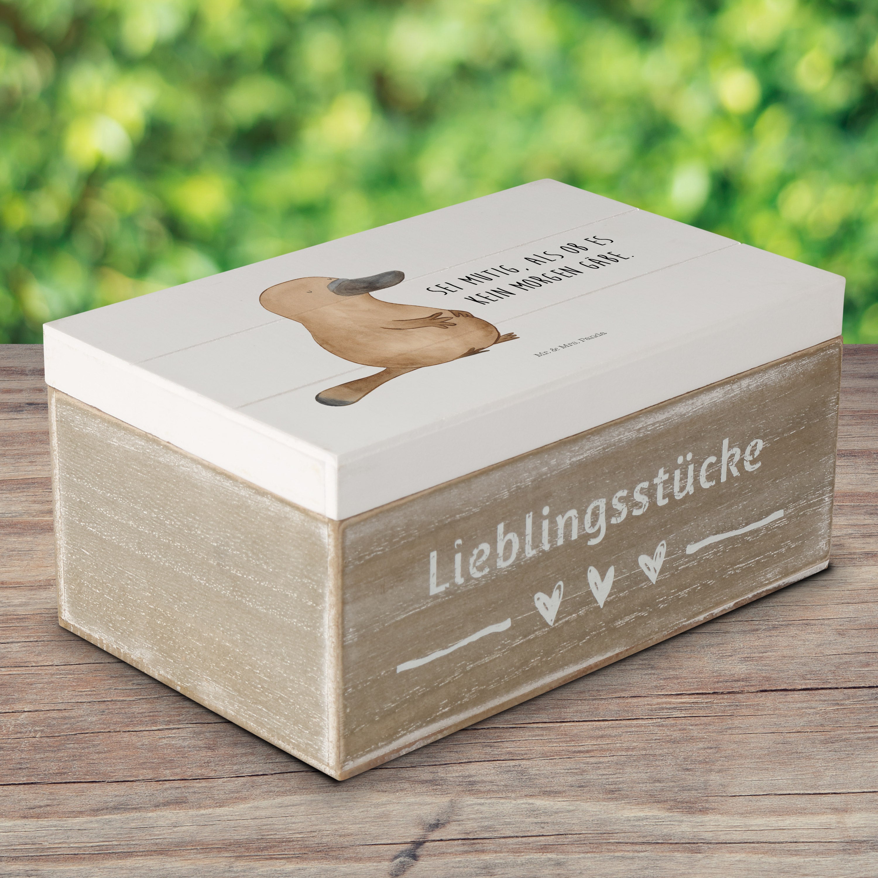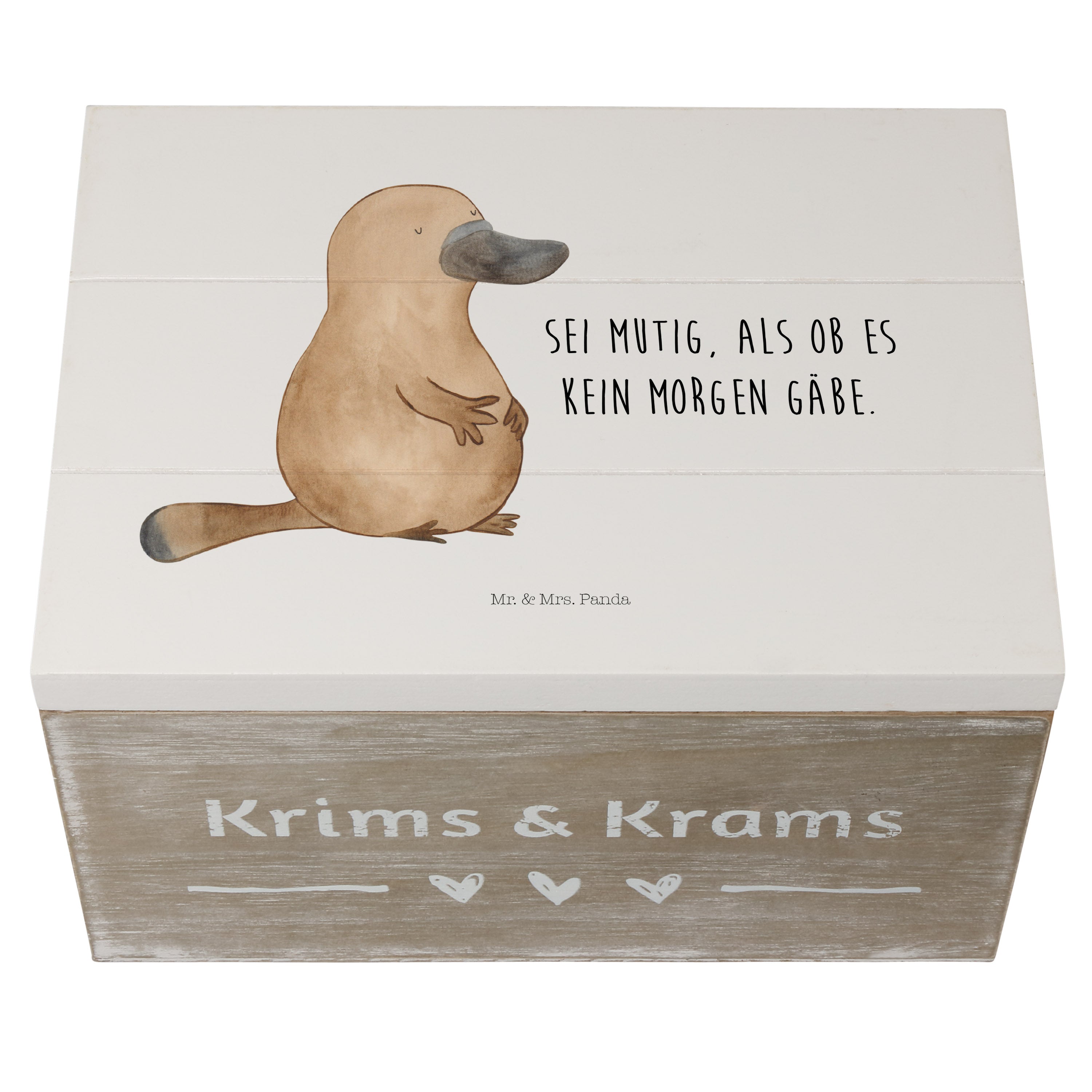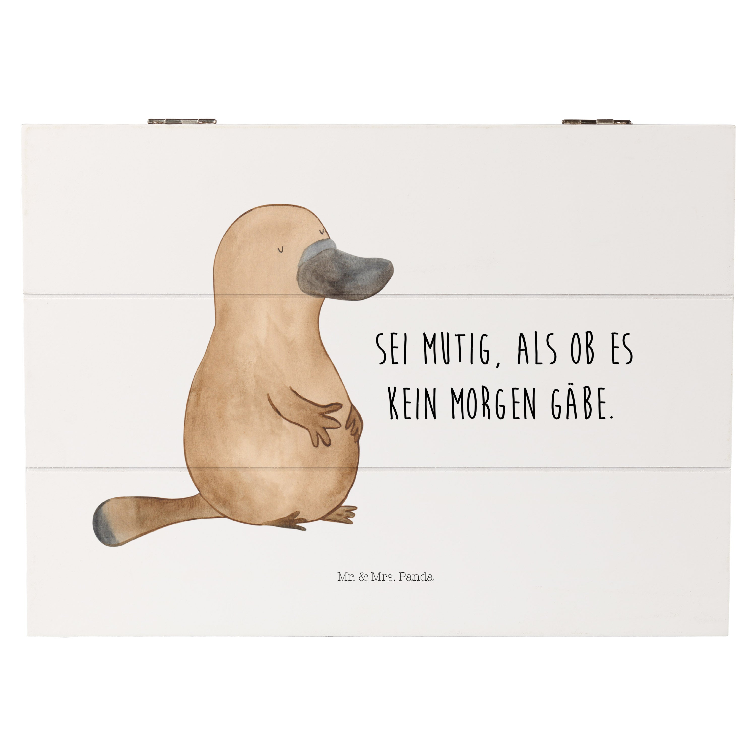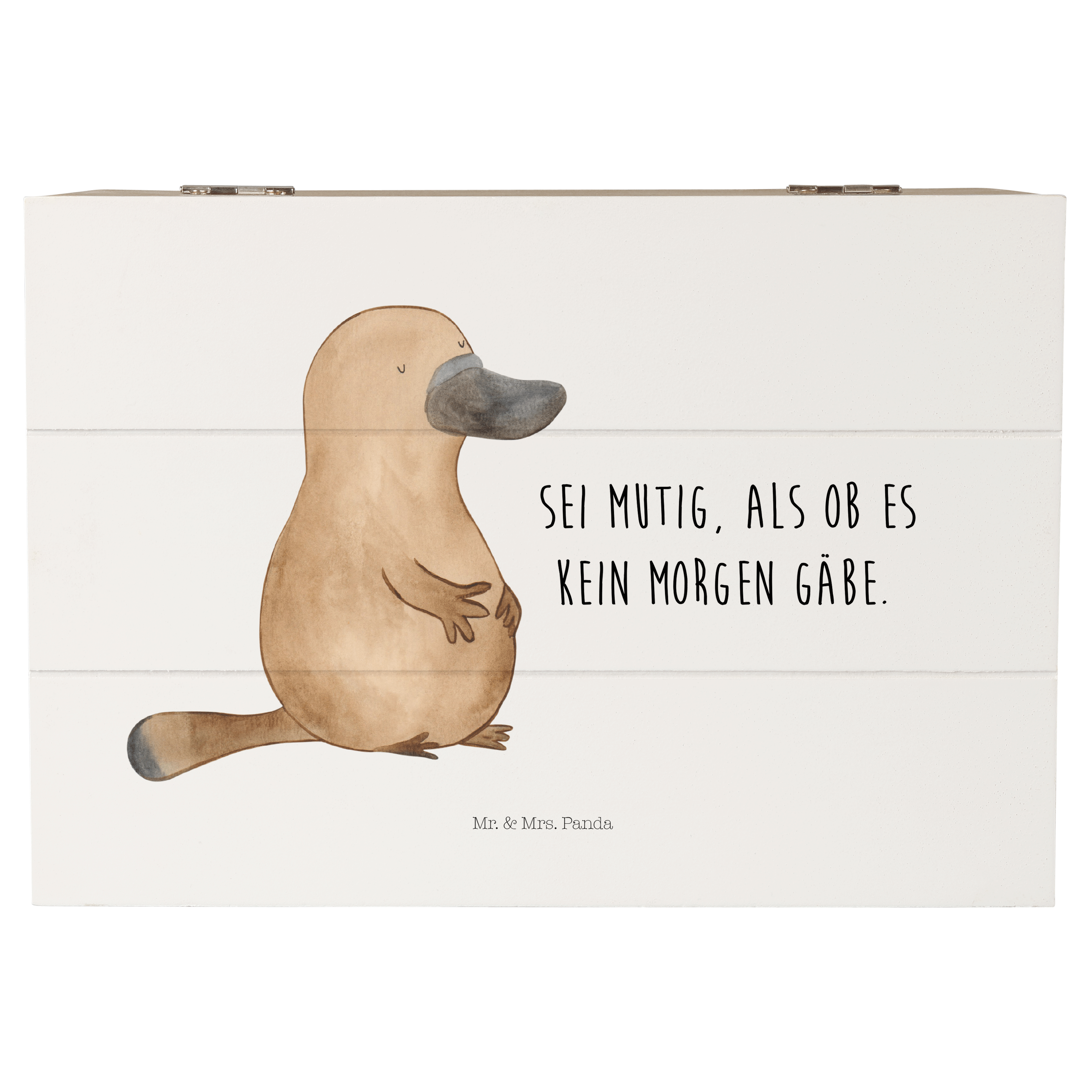Holzkiste Schnabeltier mutig - 25 x 18 cm - mit Spruch - Weiß
