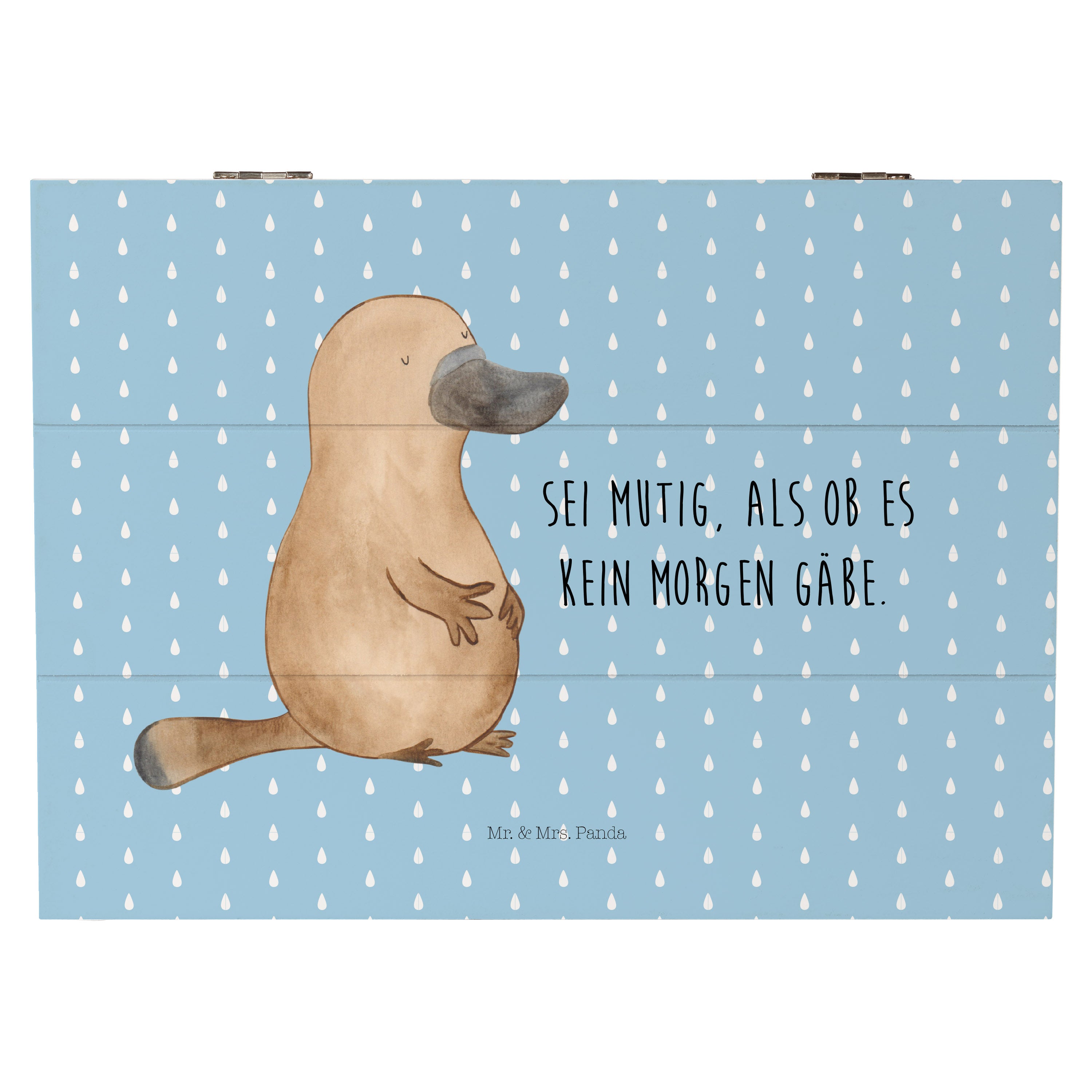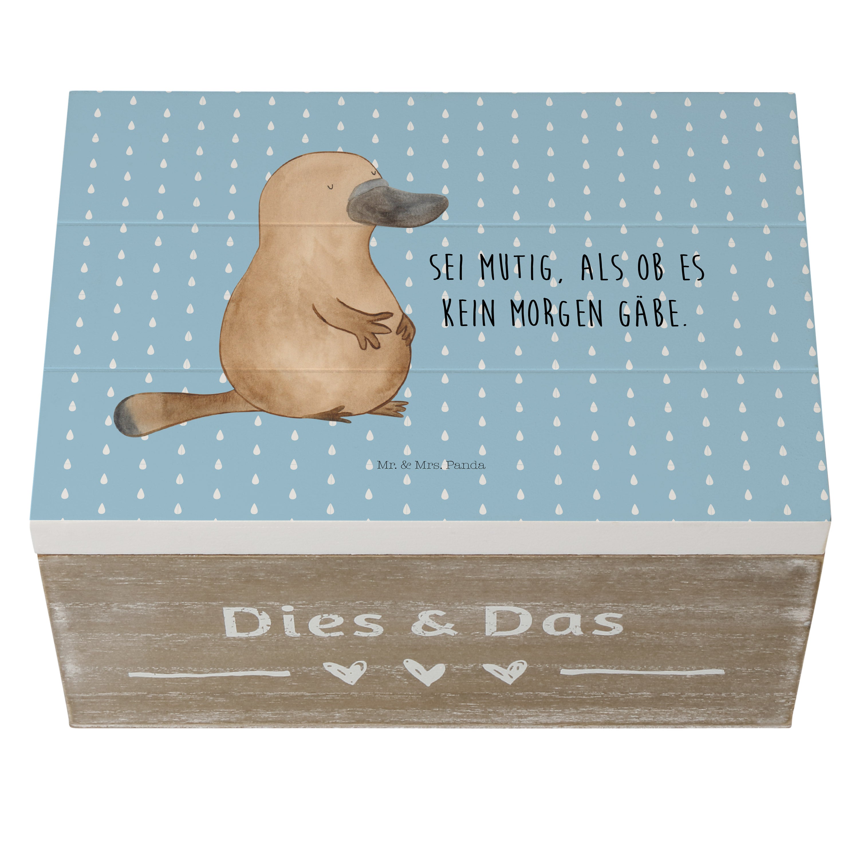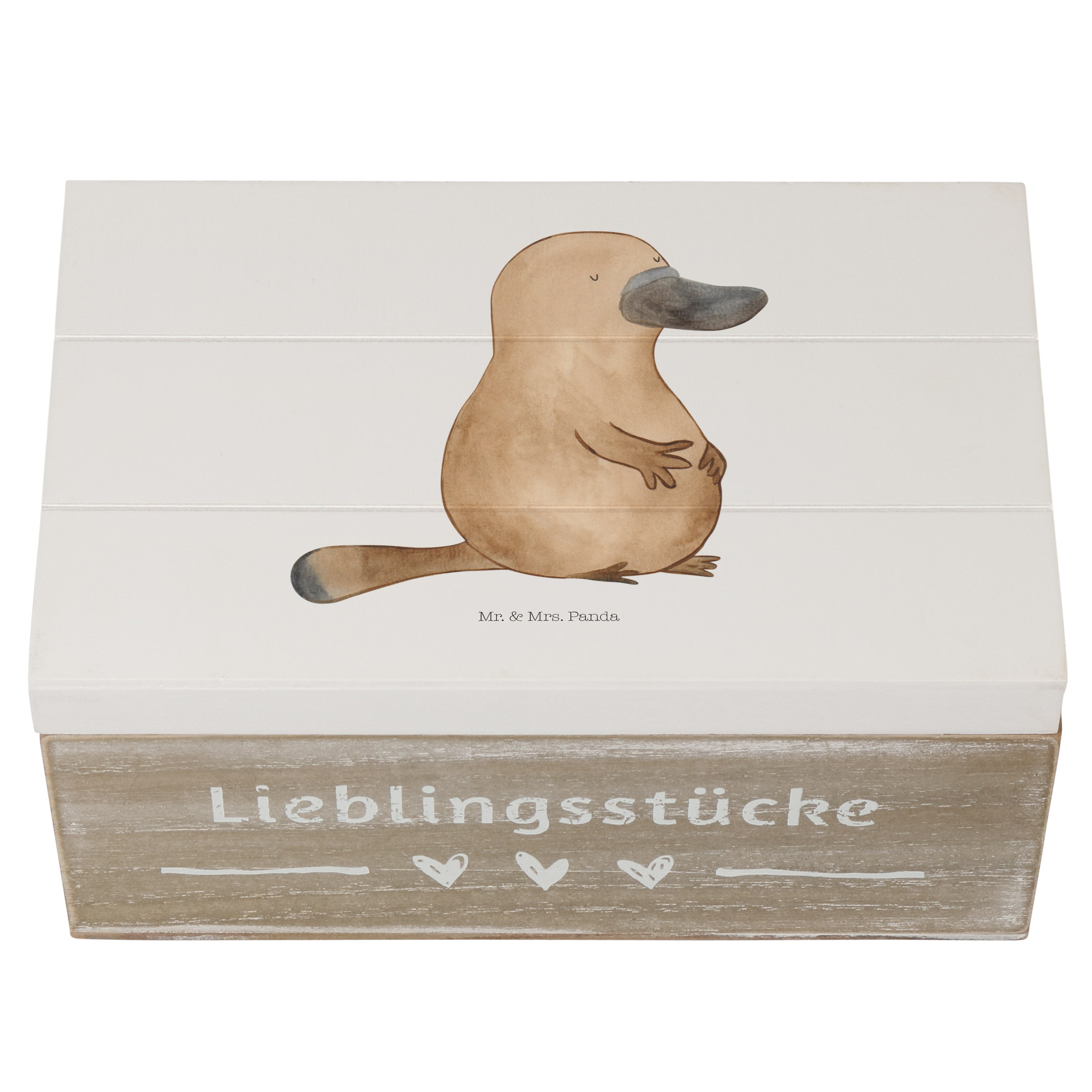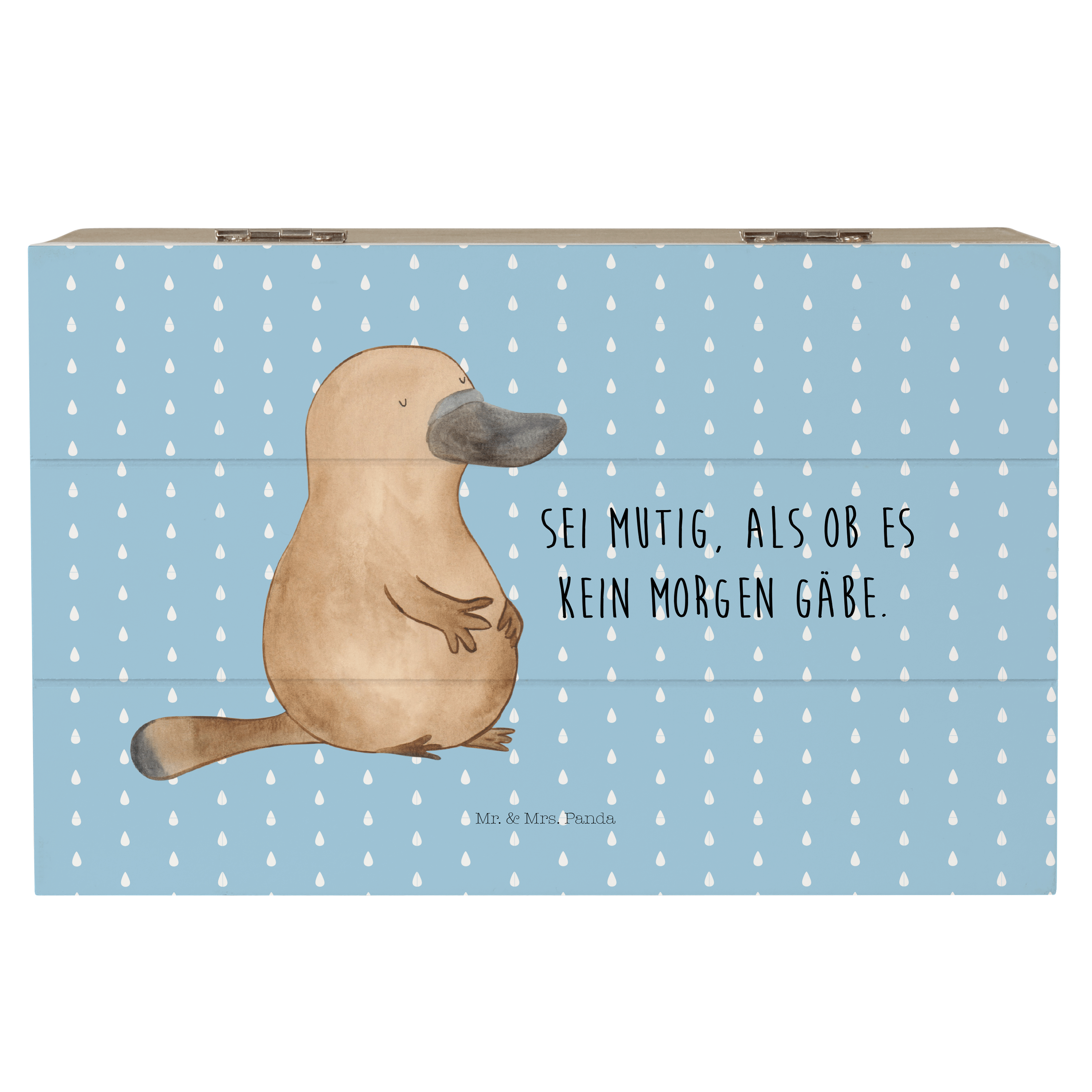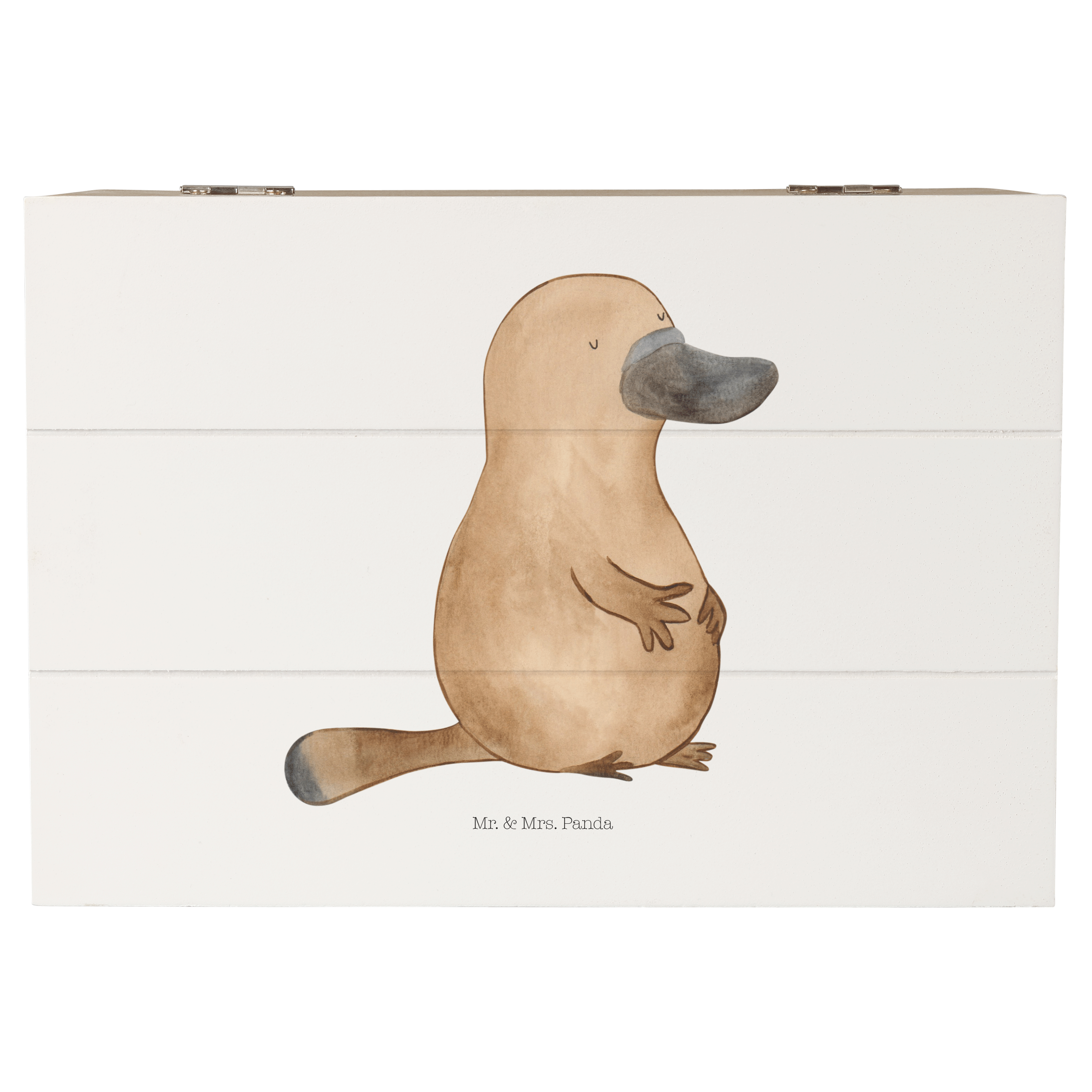 Holzkiste Schnabeltier mutig - 25 x 18 cm - mit Spruch - Weiß