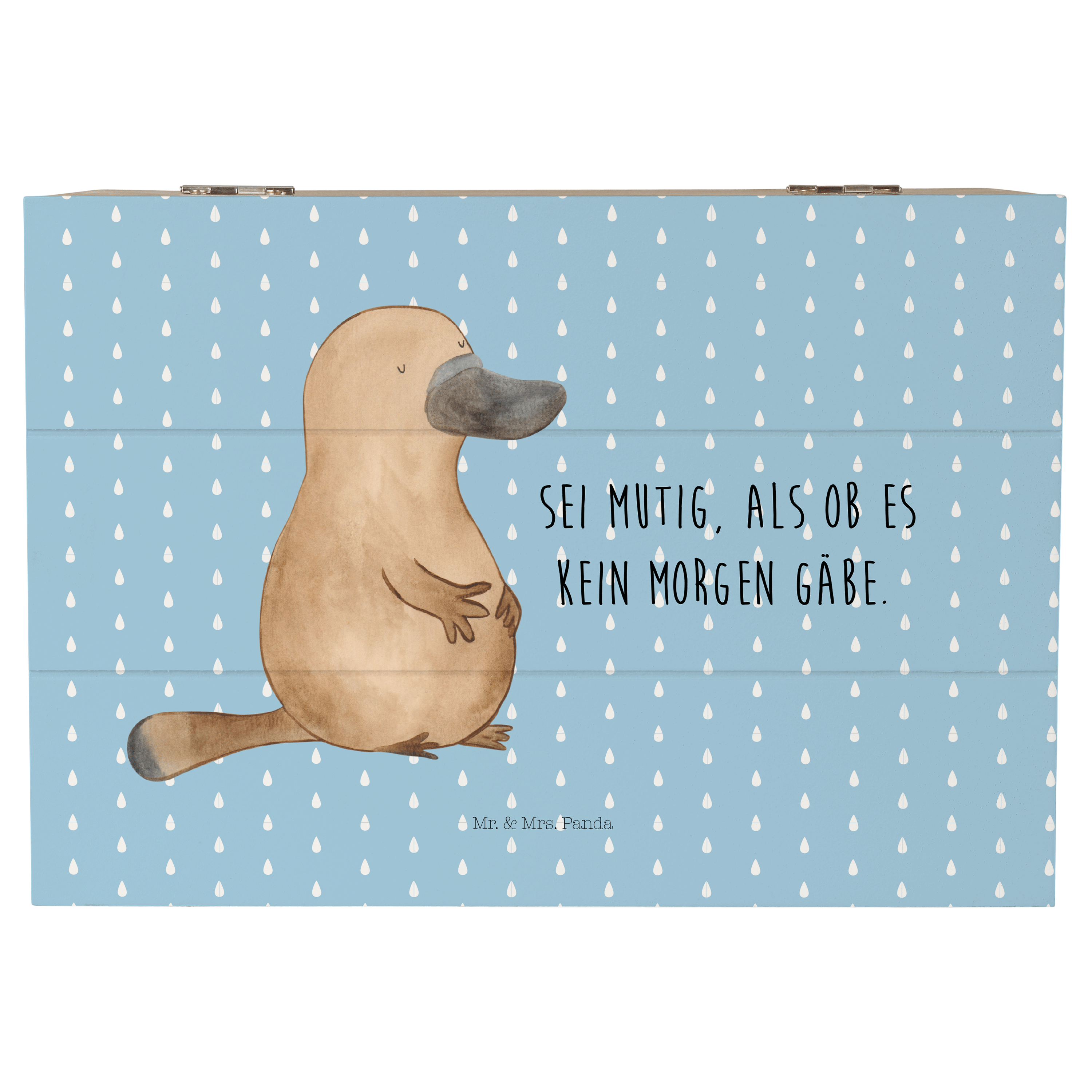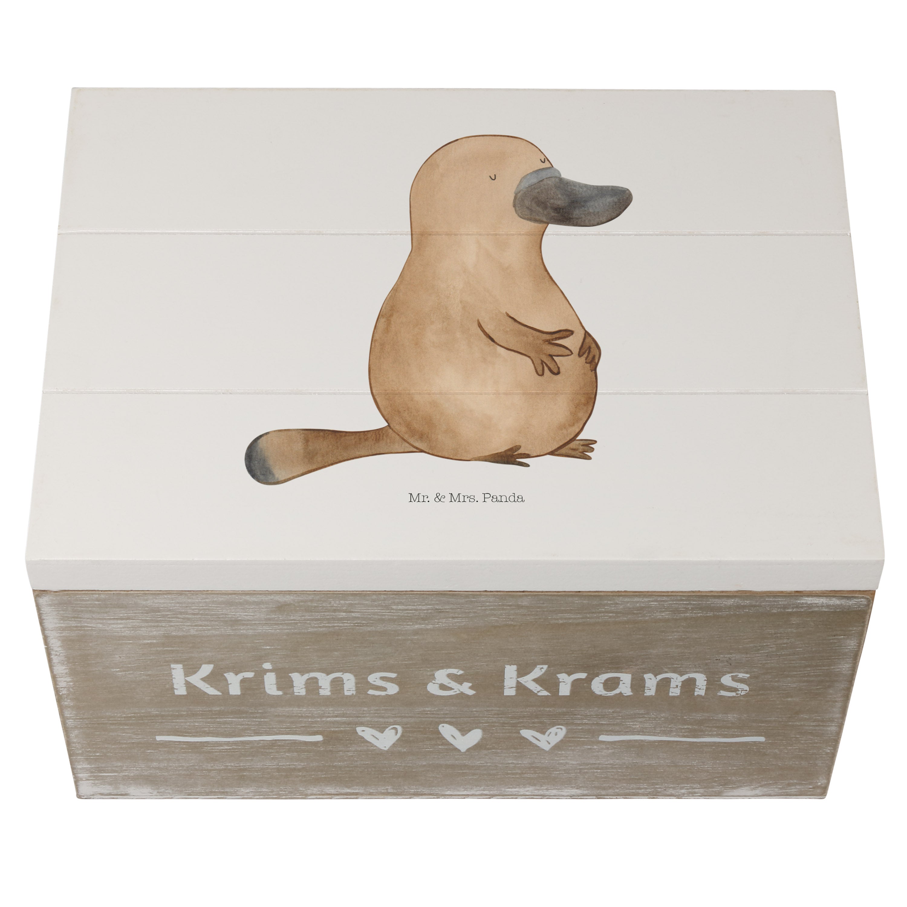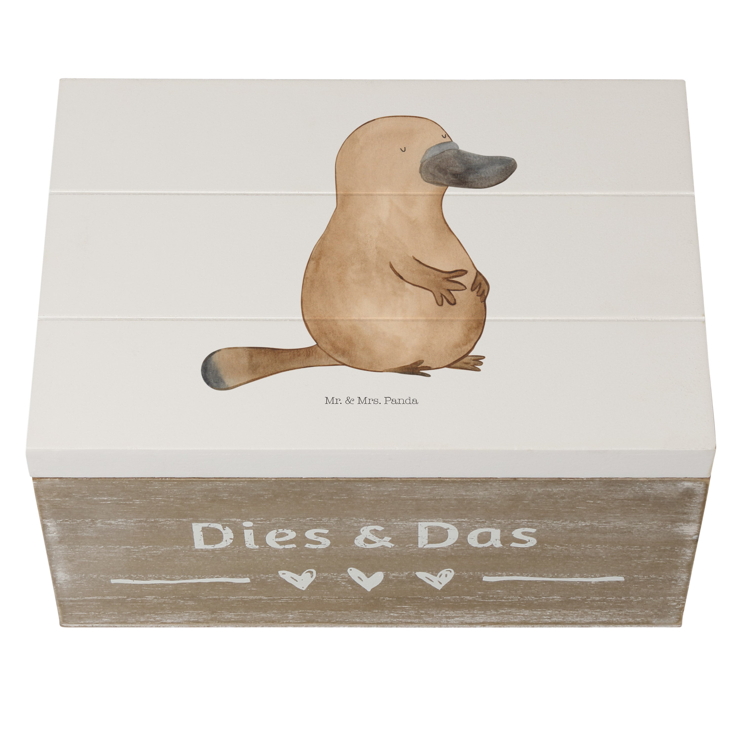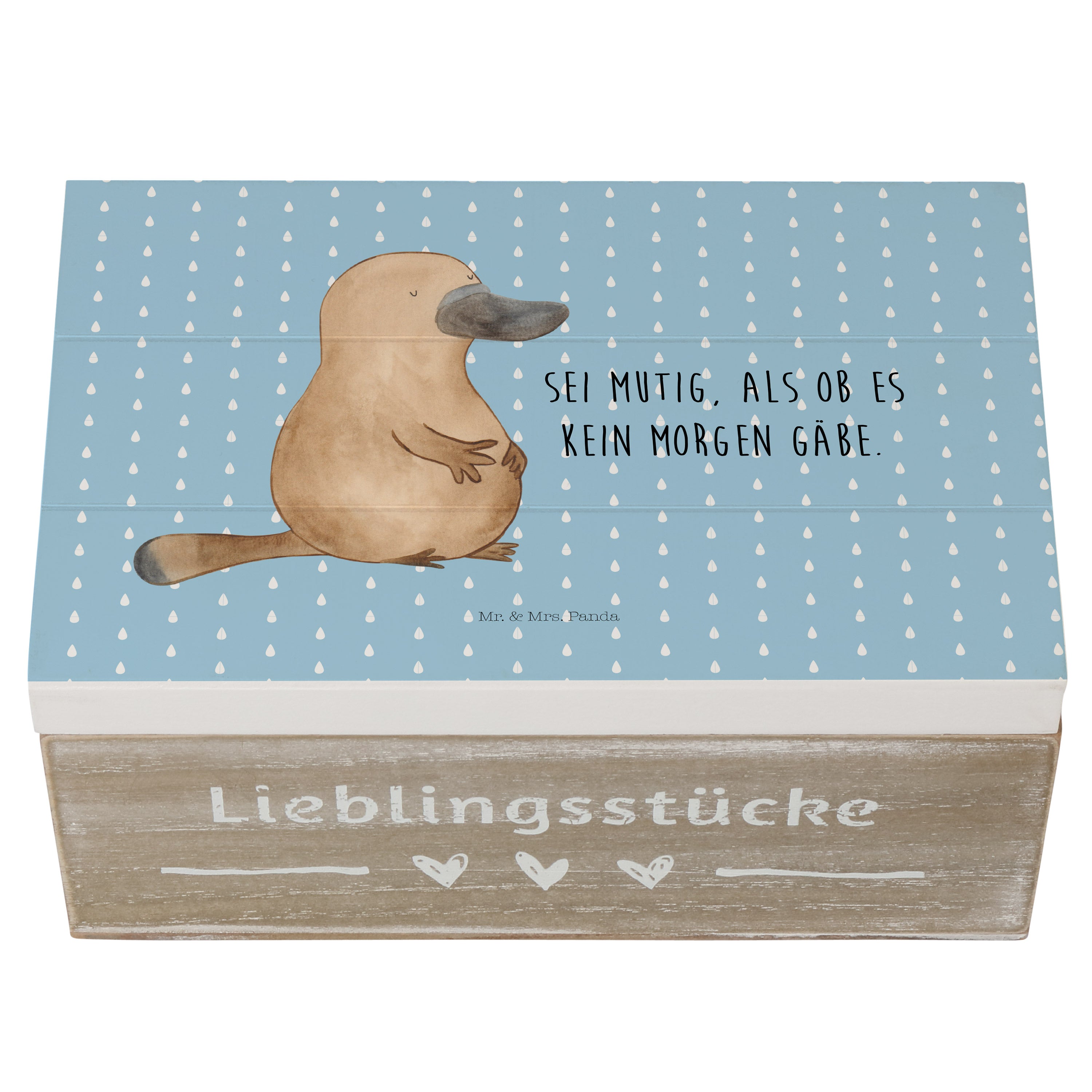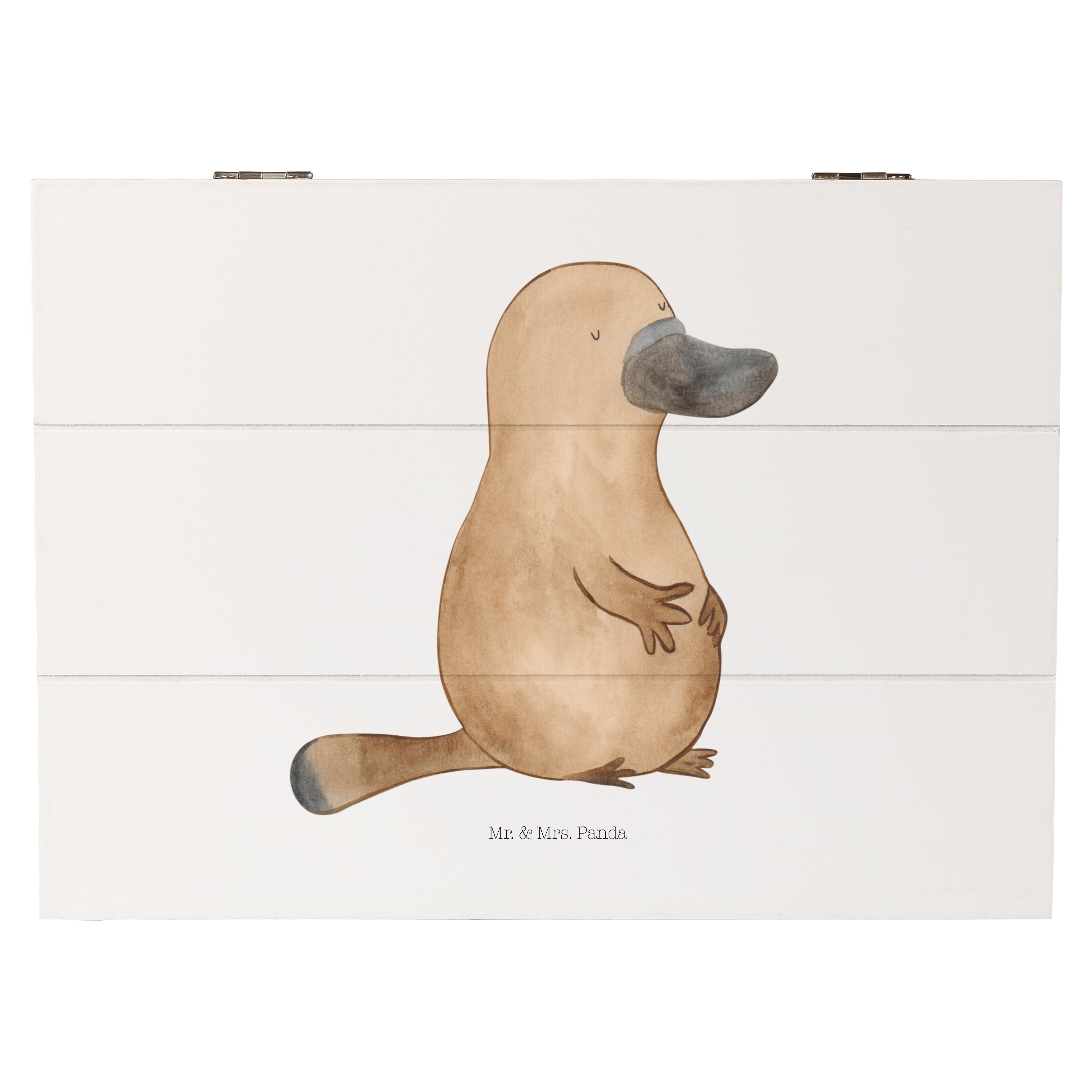 Holzkiste Schnabeltier mutig - 25 x 18 cm - mit Spruch - Weiß