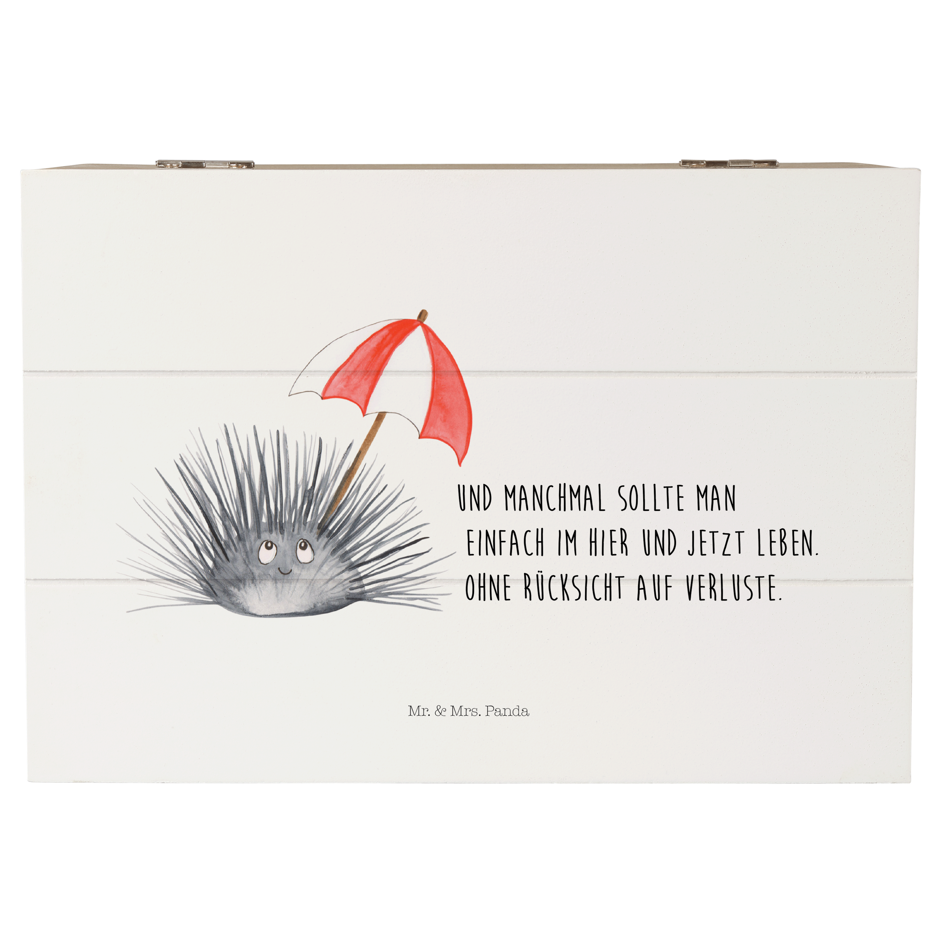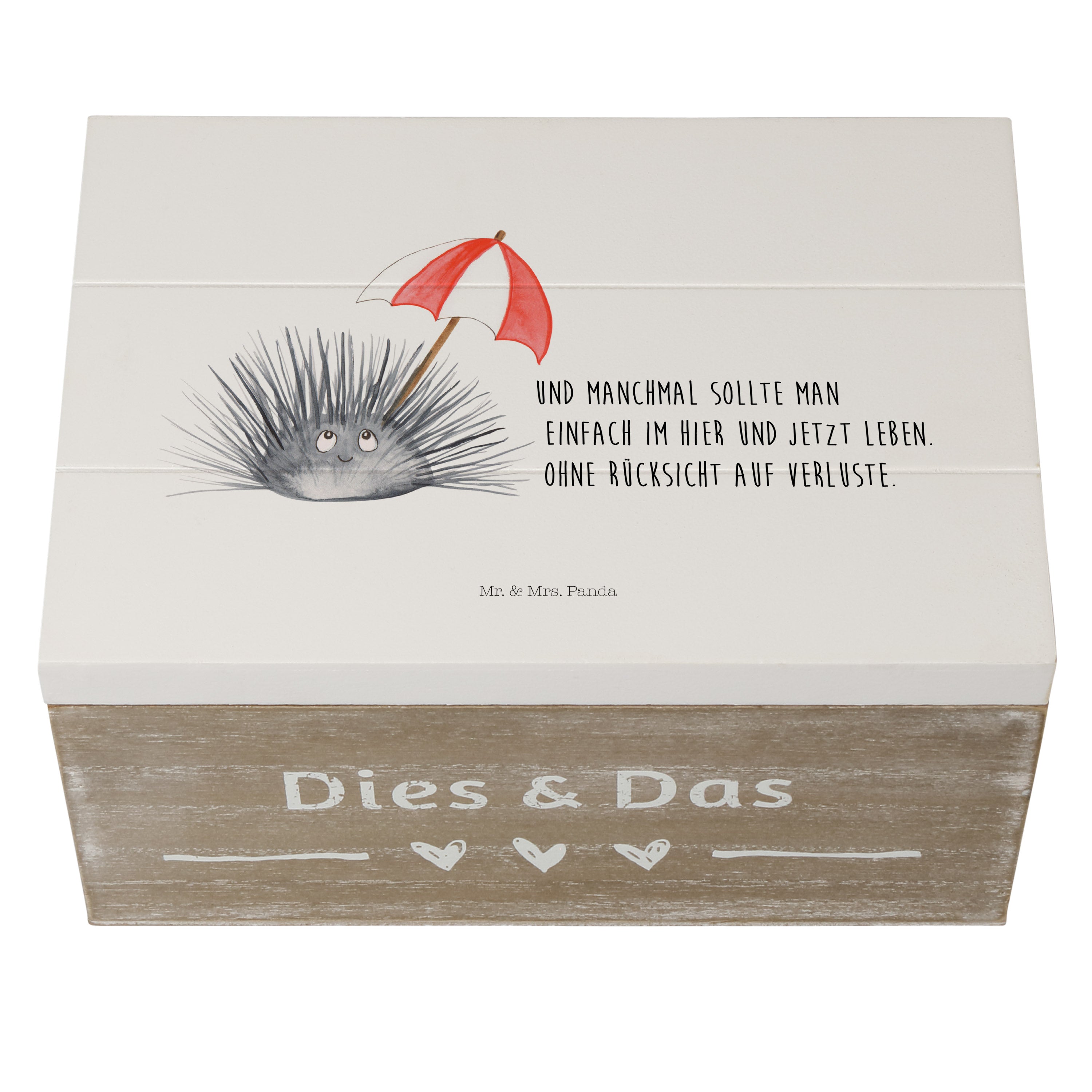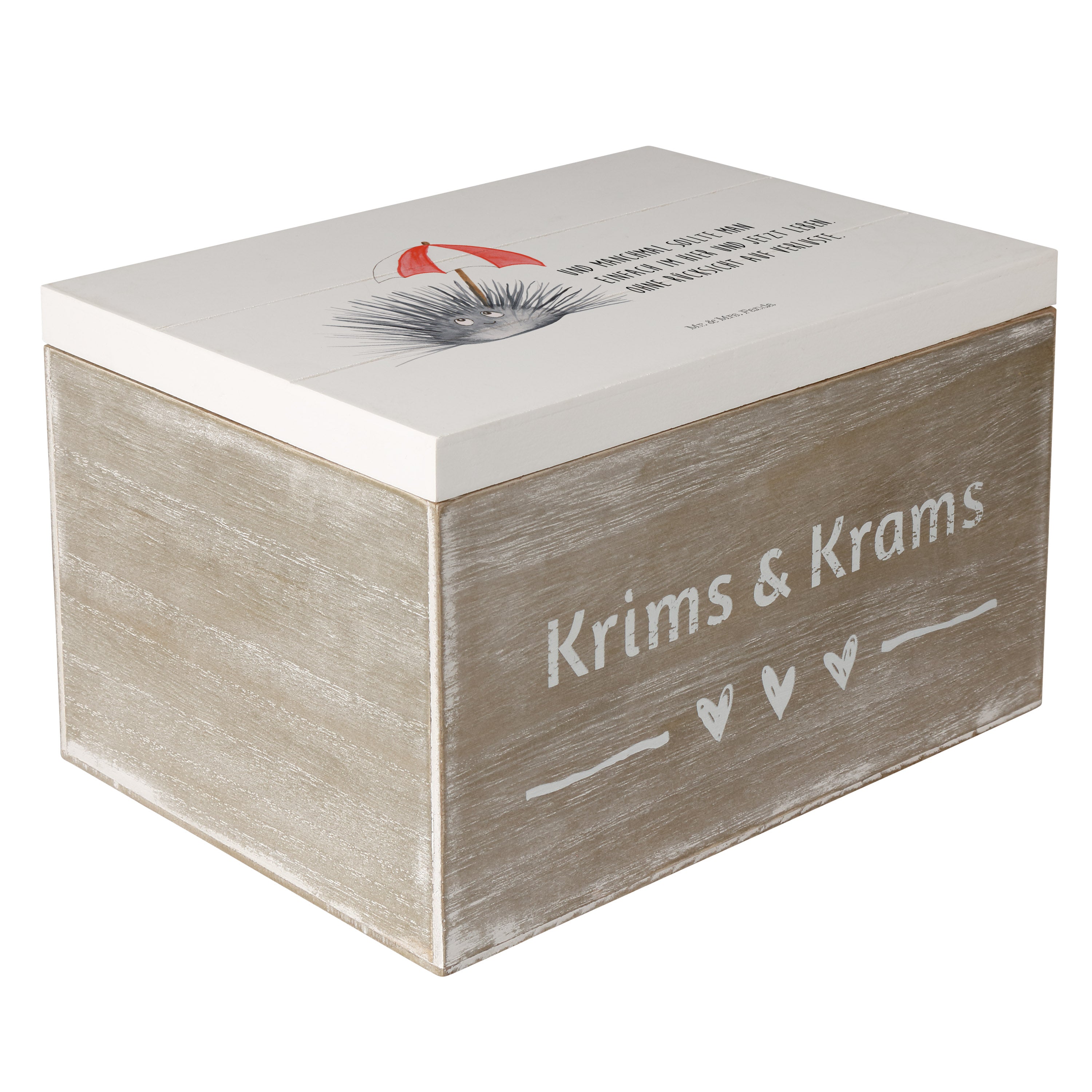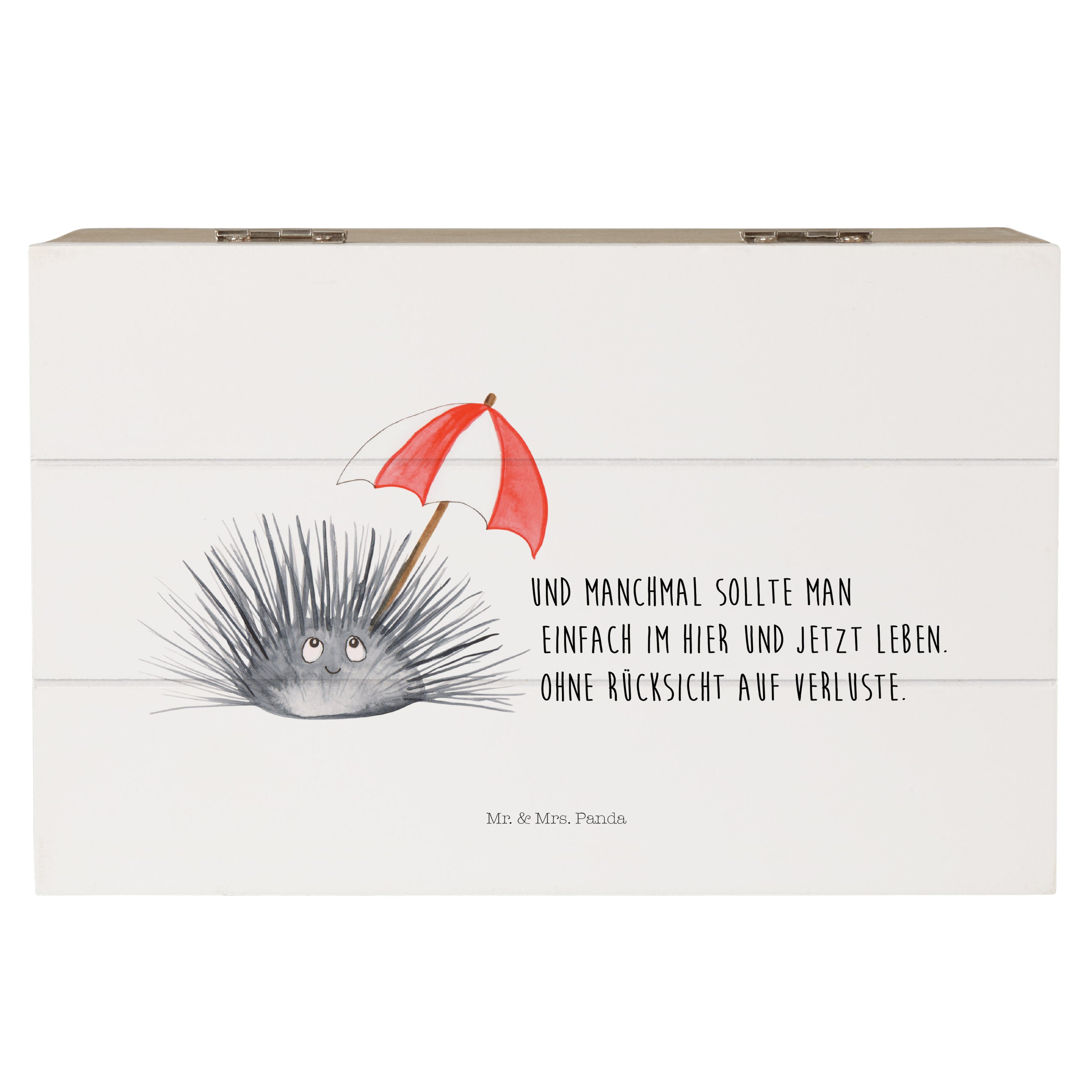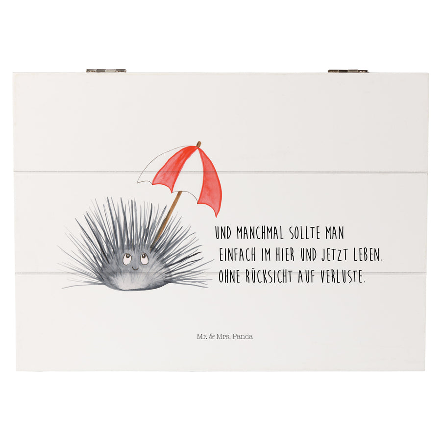 Holzkiste Seeigel - 25 x 18 cm - mit Spruch - Weiß