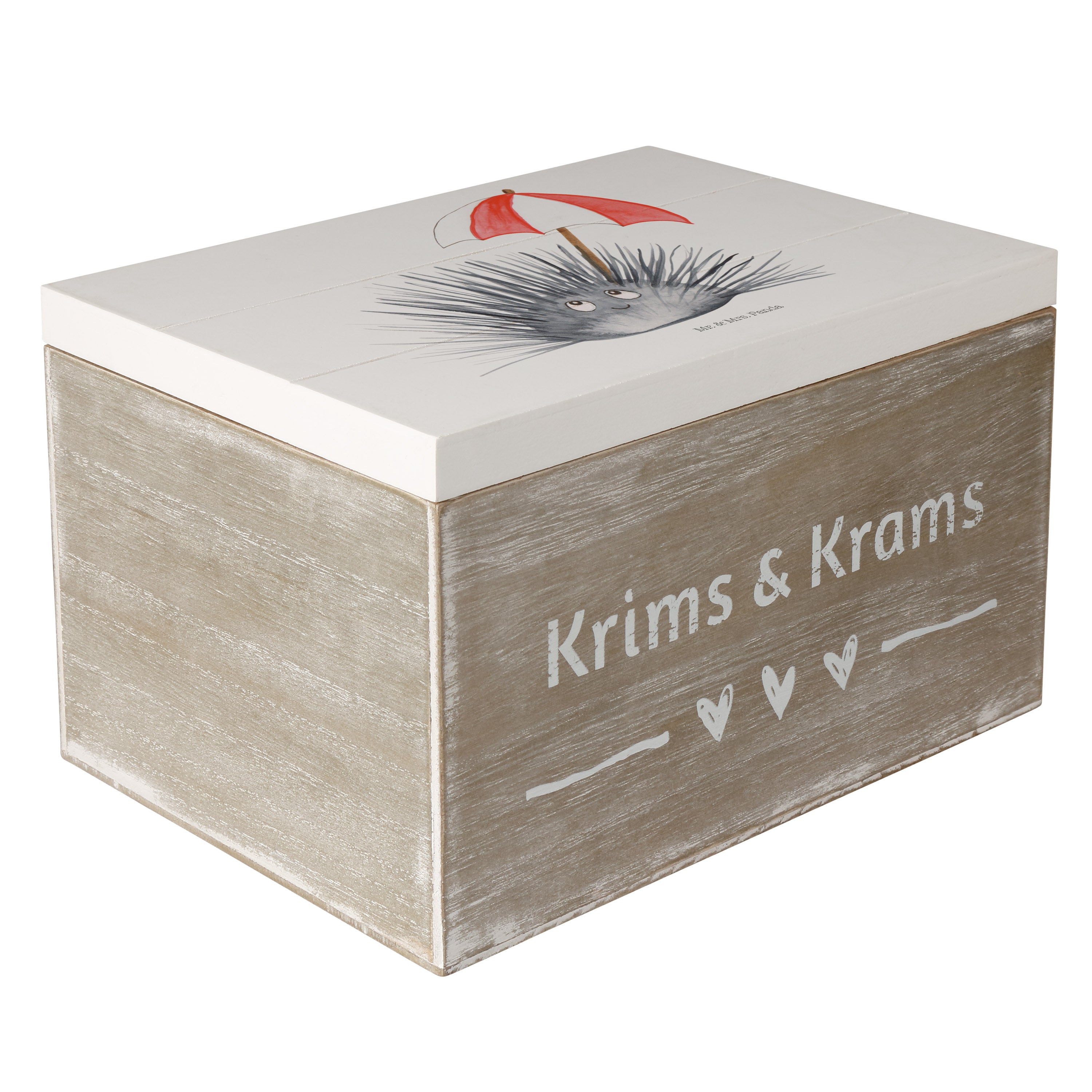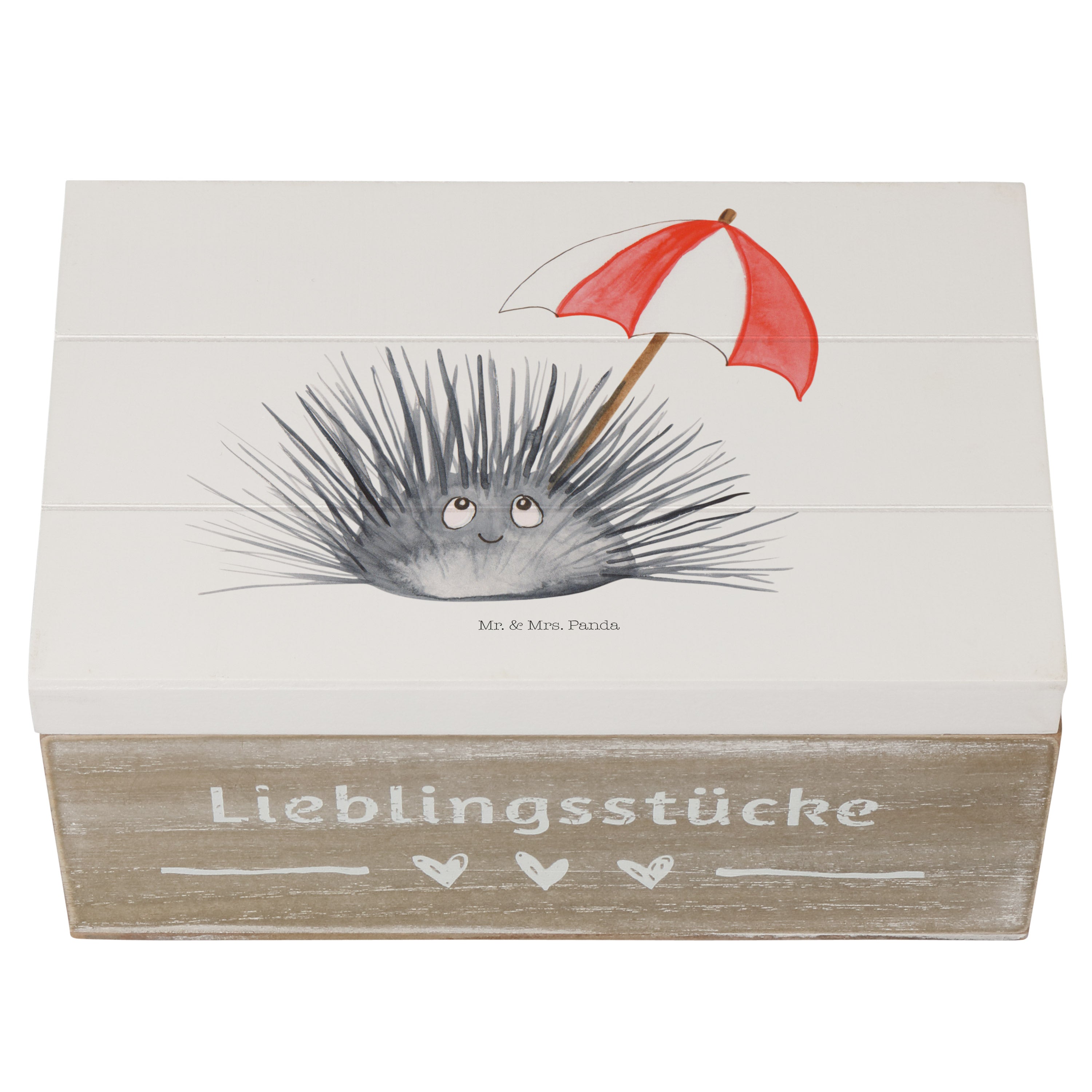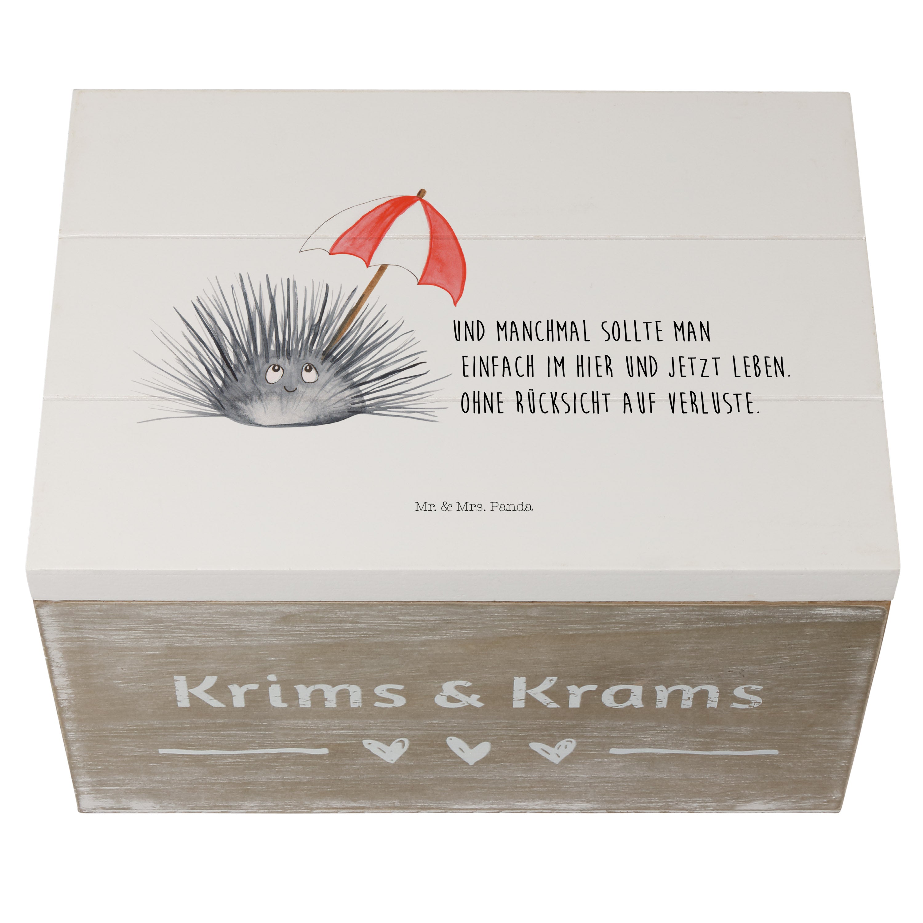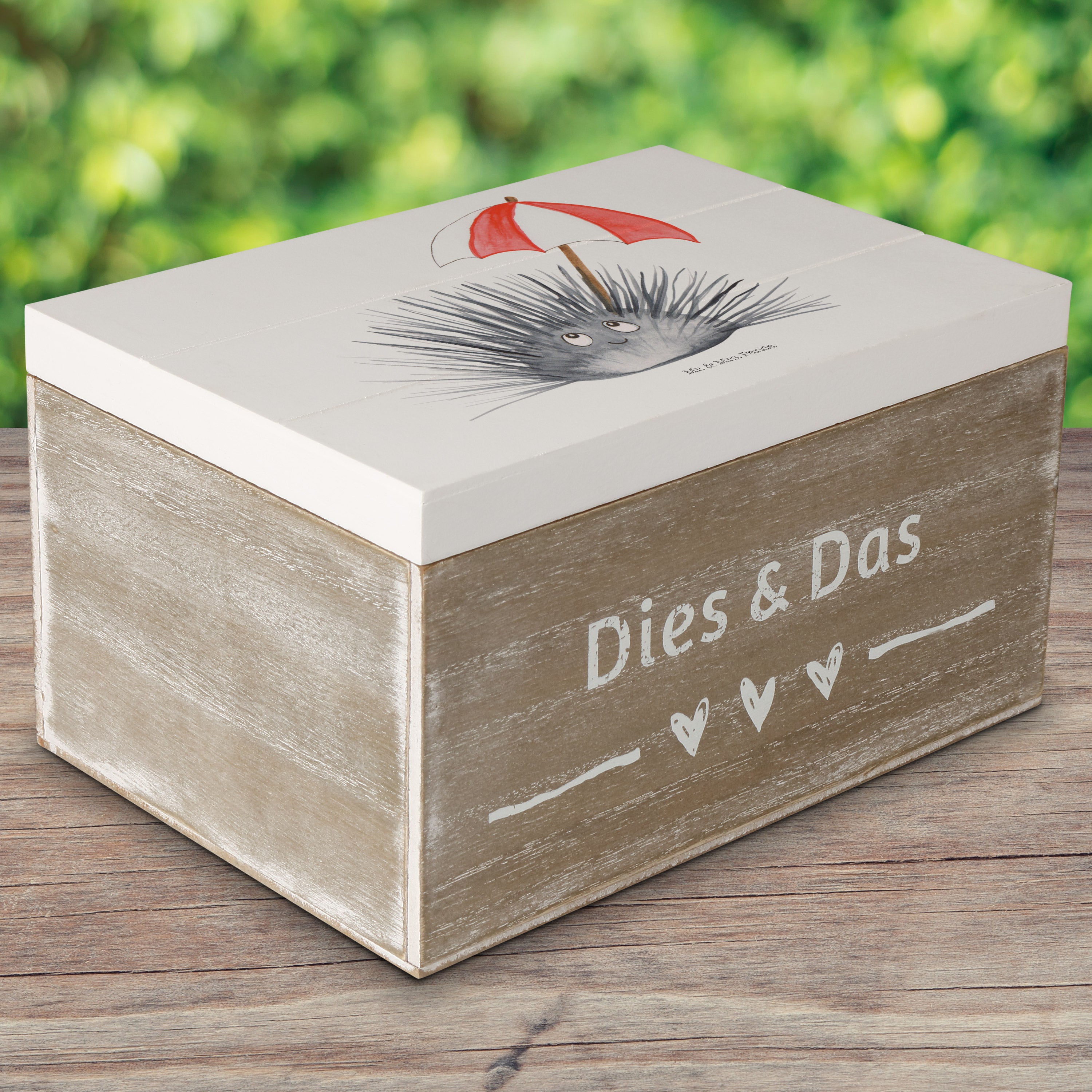 Holzkiste Seeigel - 25 x 18 cm - mit Spruch - Weiß